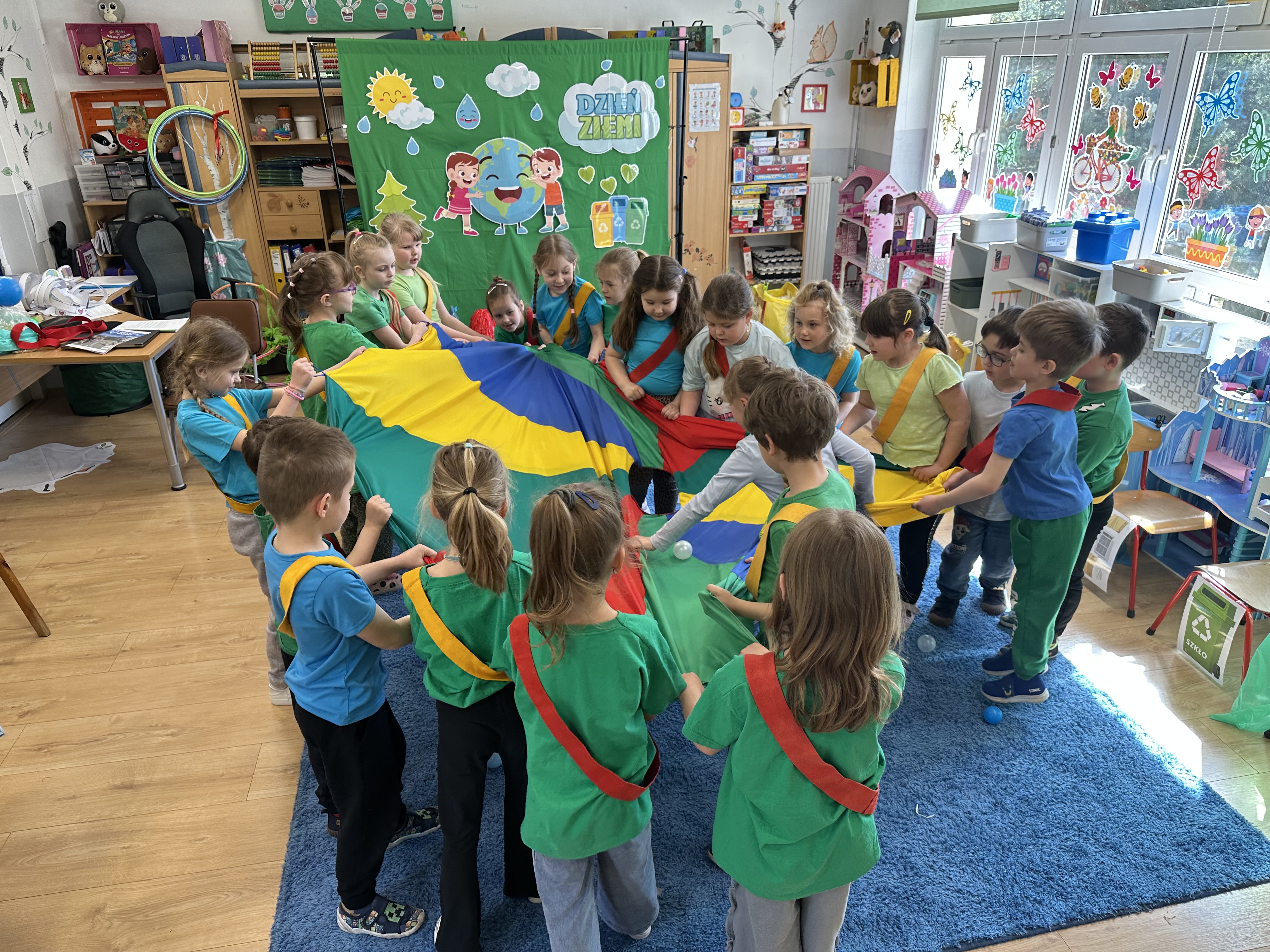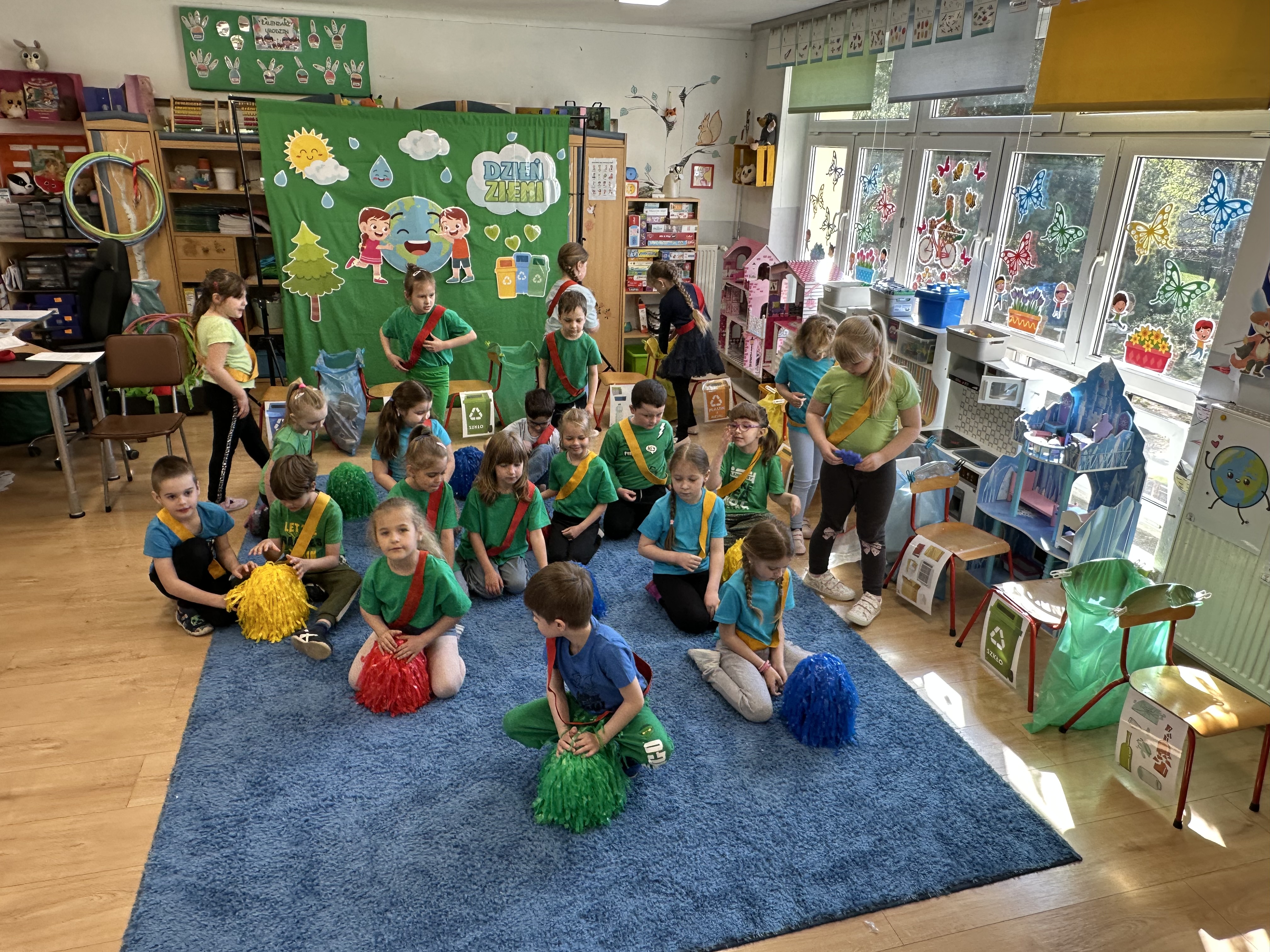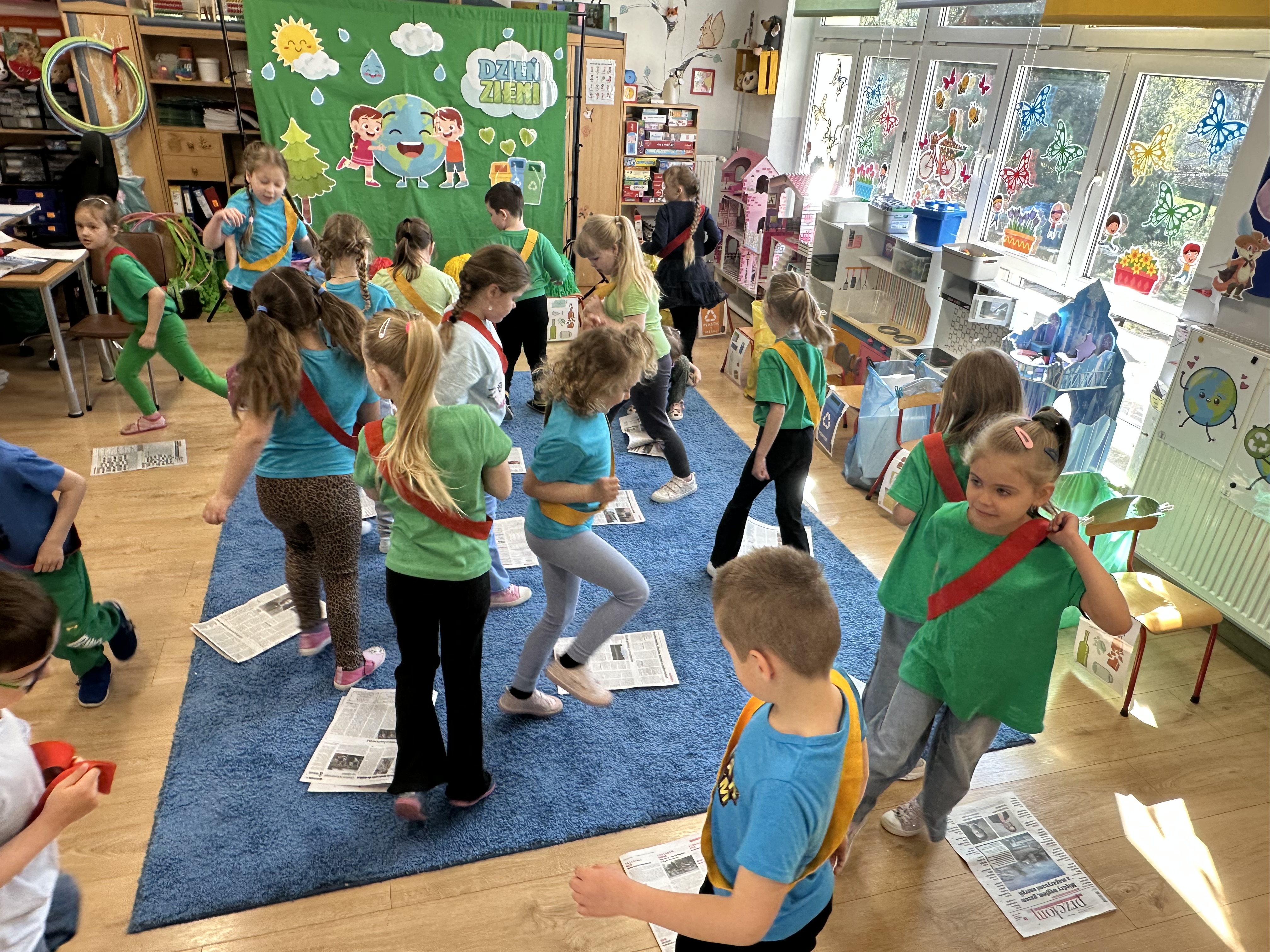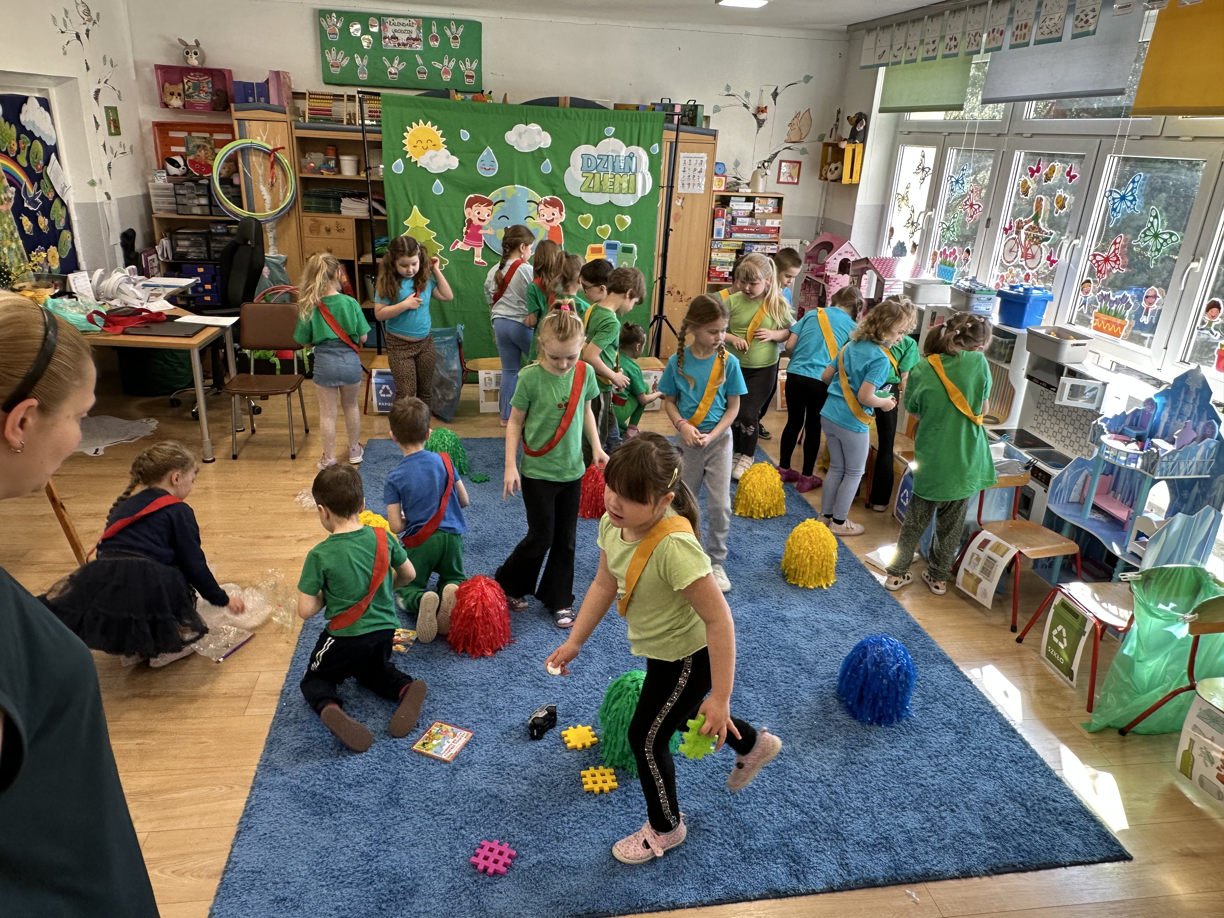 Z okazji Dnia Ziemi w grupie ,,Pszczółek” odbyły się sytuacje edukacyjne, których celem było kształtowanie postaw proekologicznych wśród dzieci poprzez zabawę, ruch i wspólne działania.