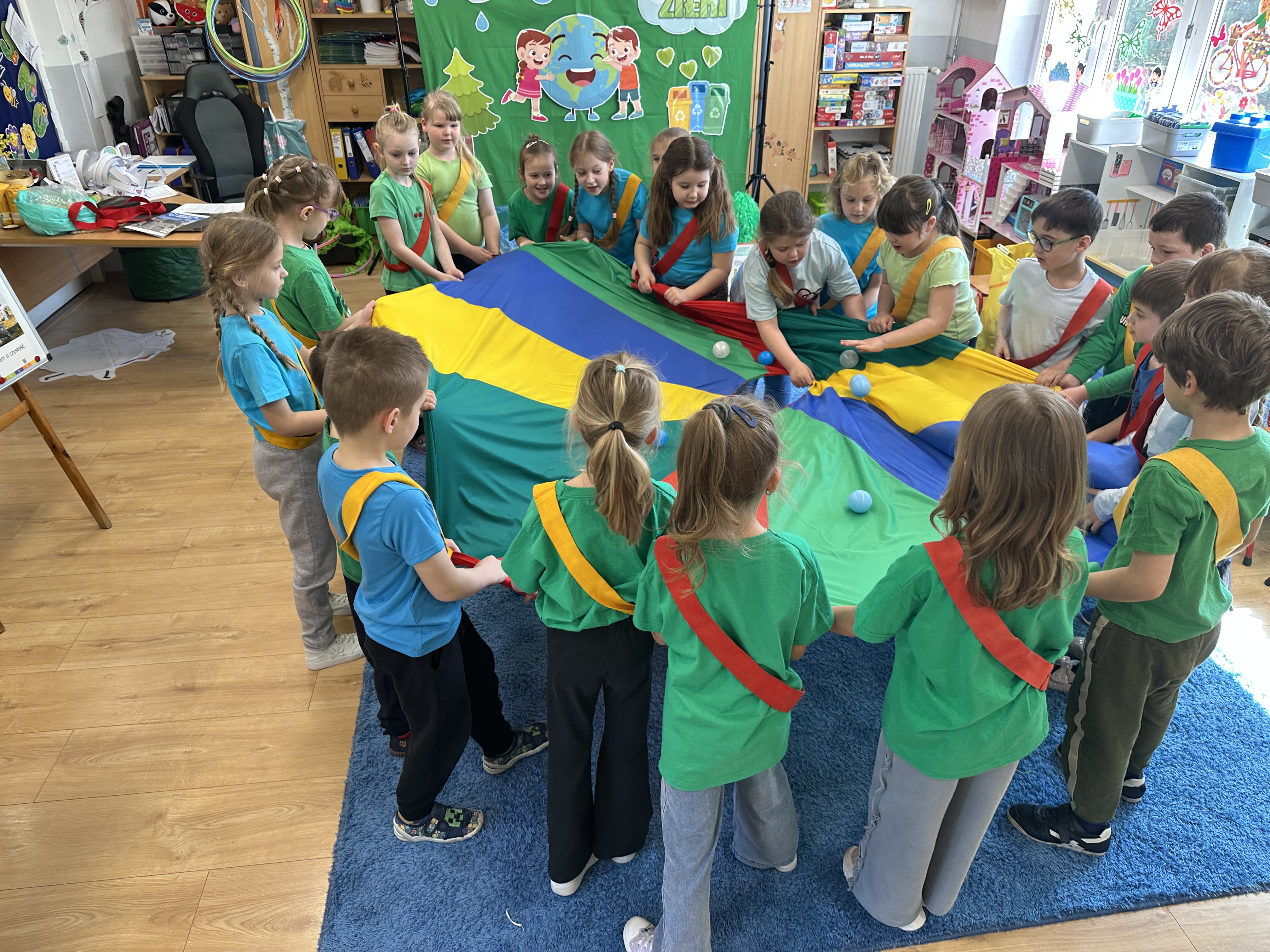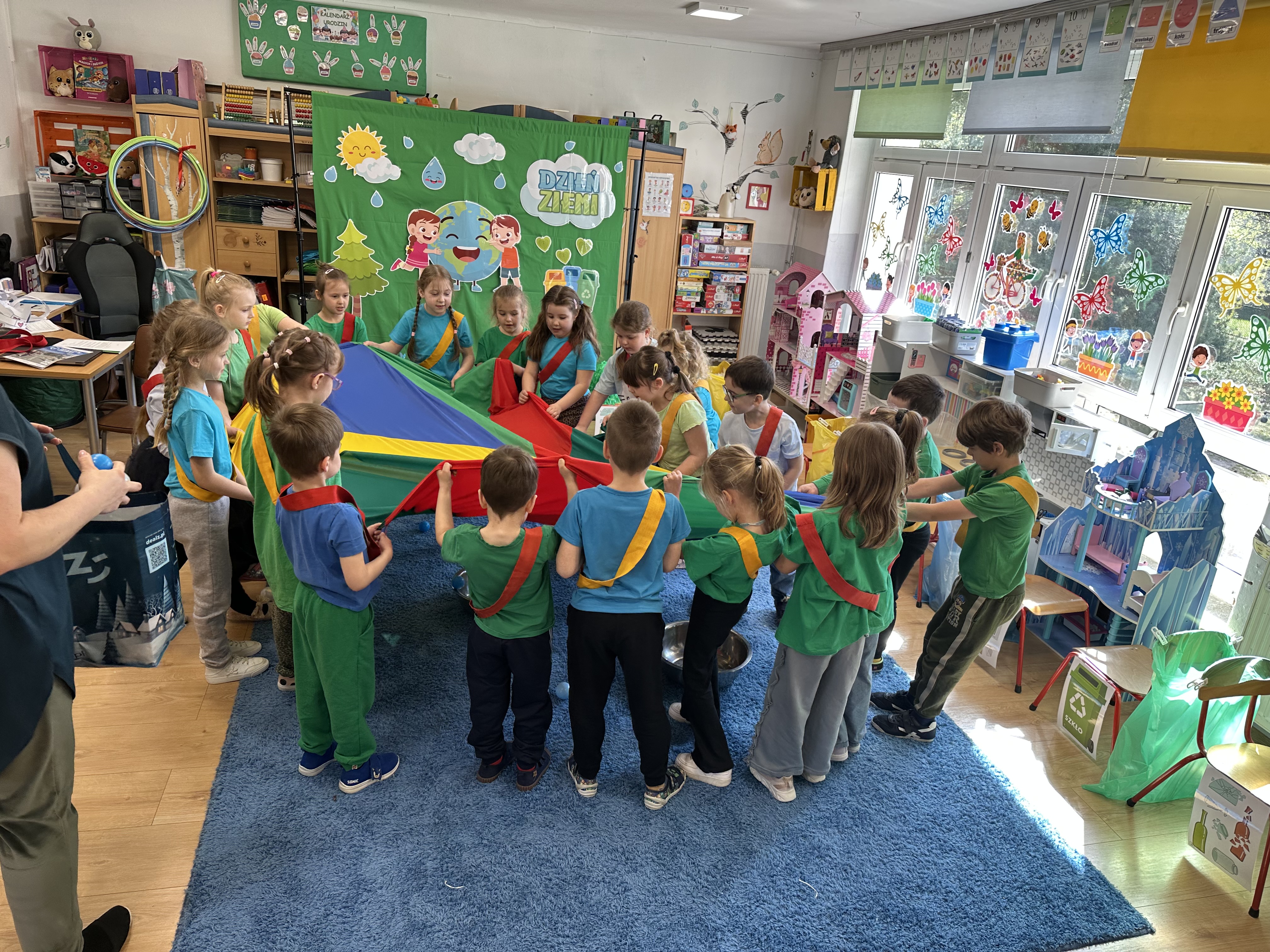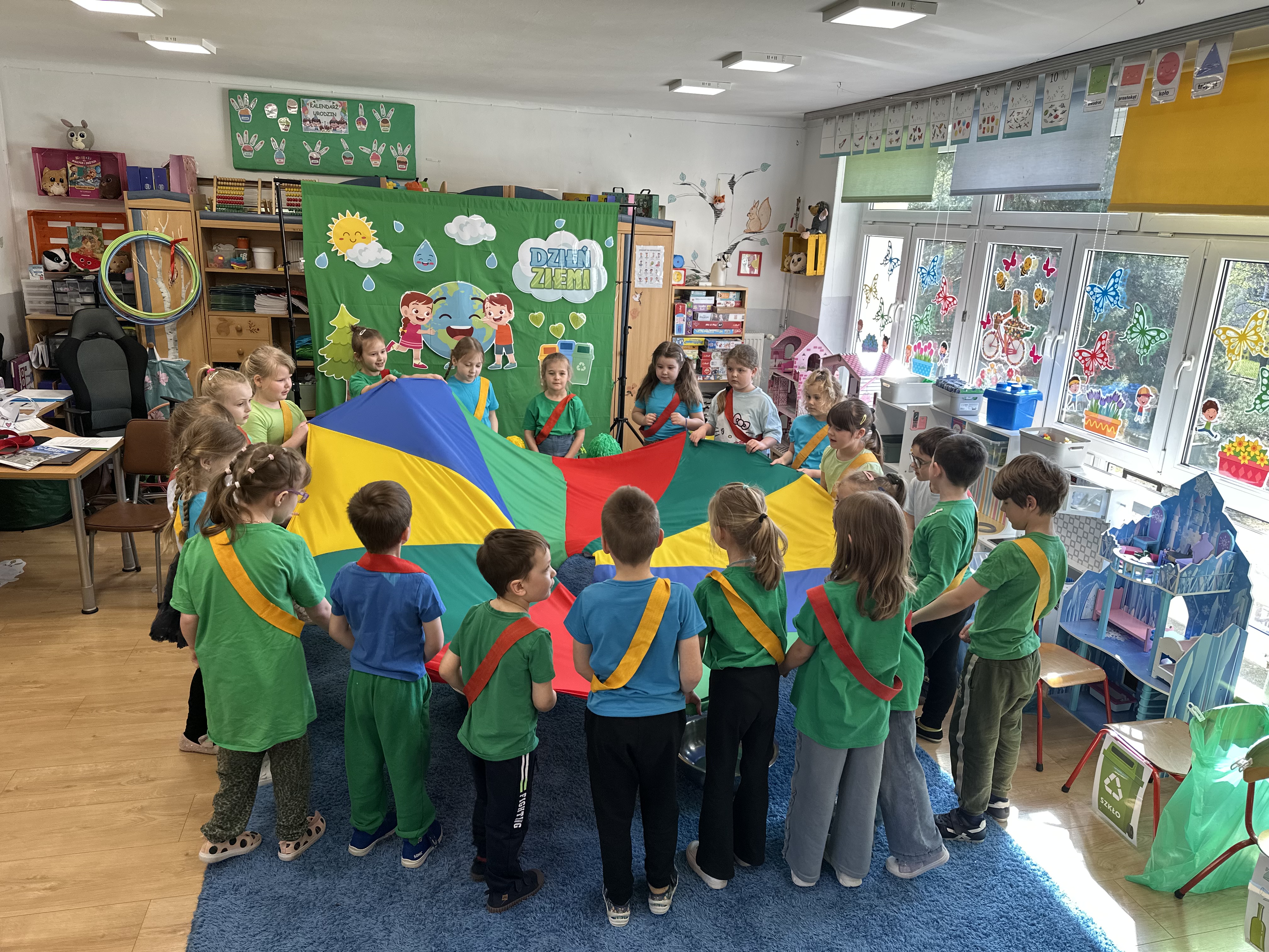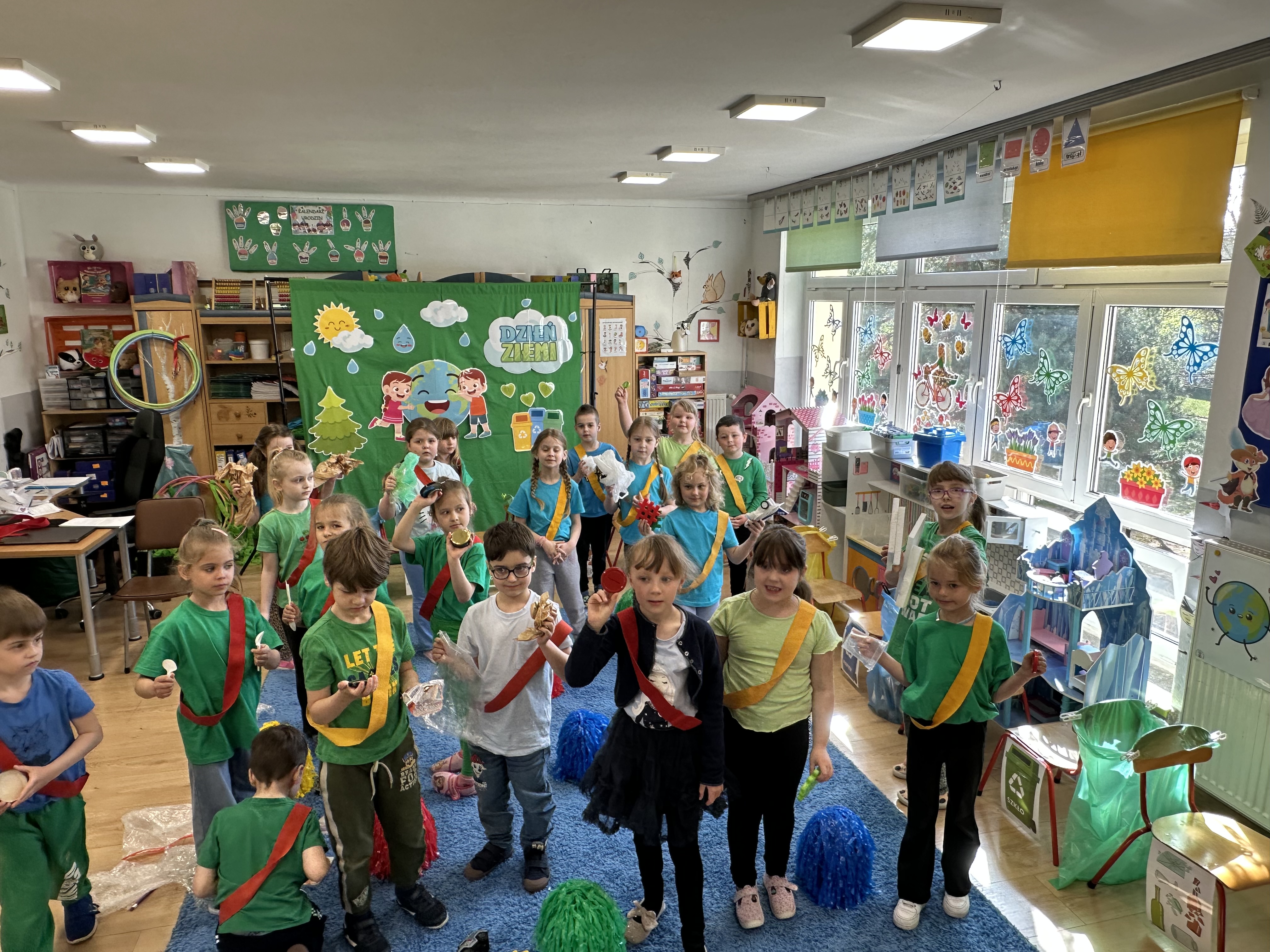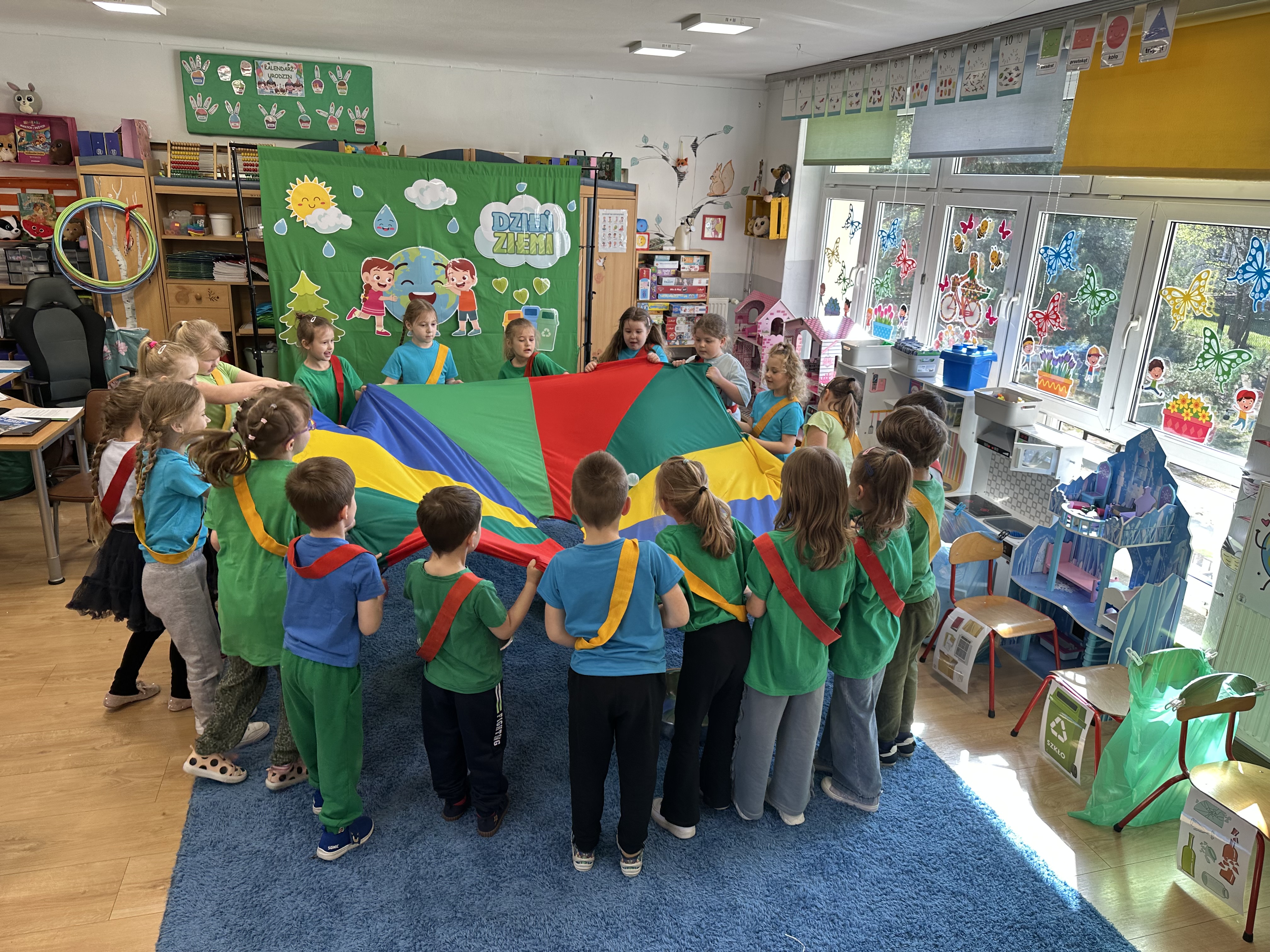 Z okazji Dnia Ziemi w grupie ,,Pszczółek” odbyły się sytuacje edukacyjne, których celem było kształtowanie postaw proekologicznych wśród dzieci poprzez zabawę, ruch i wspólne działania.