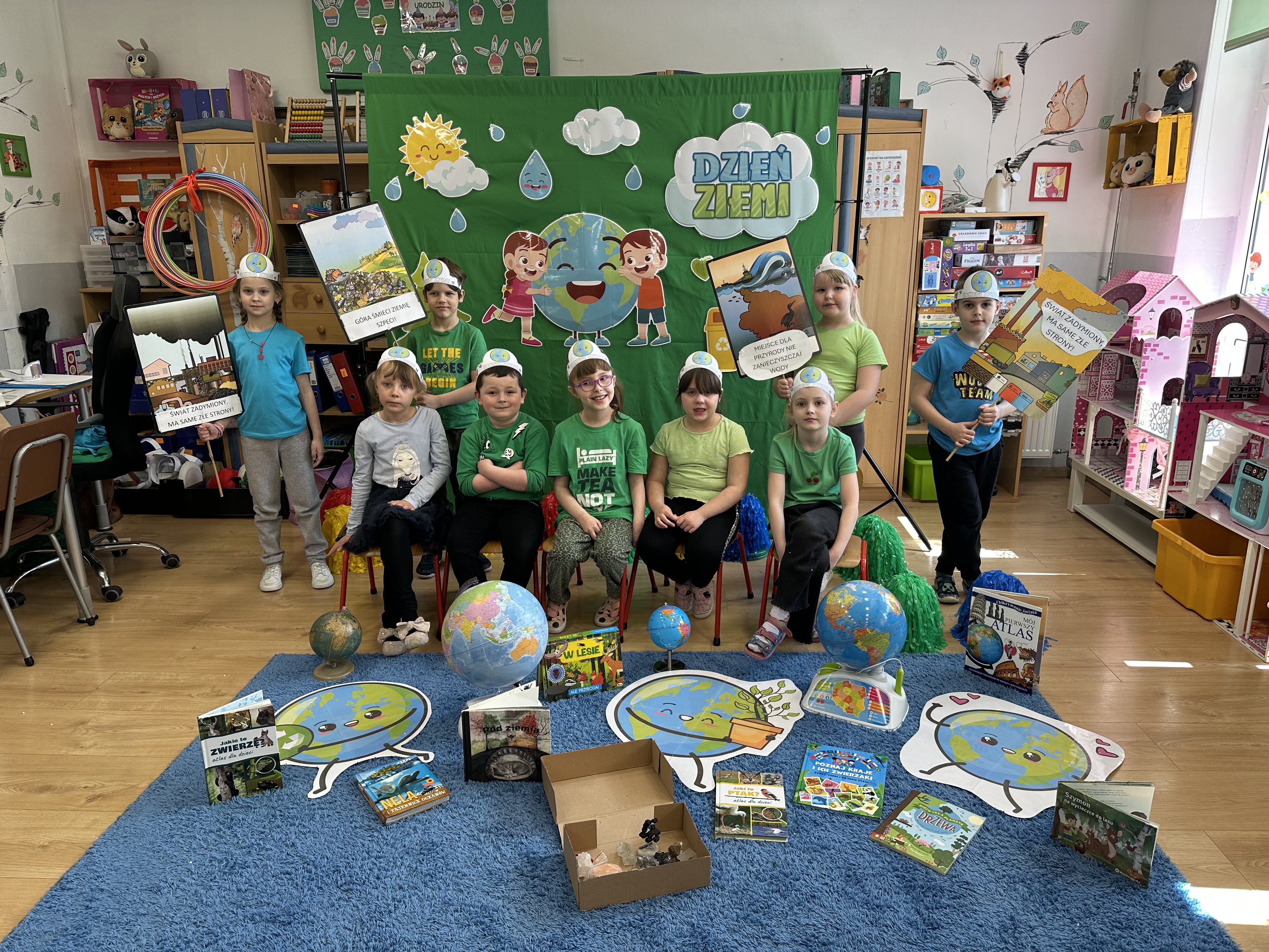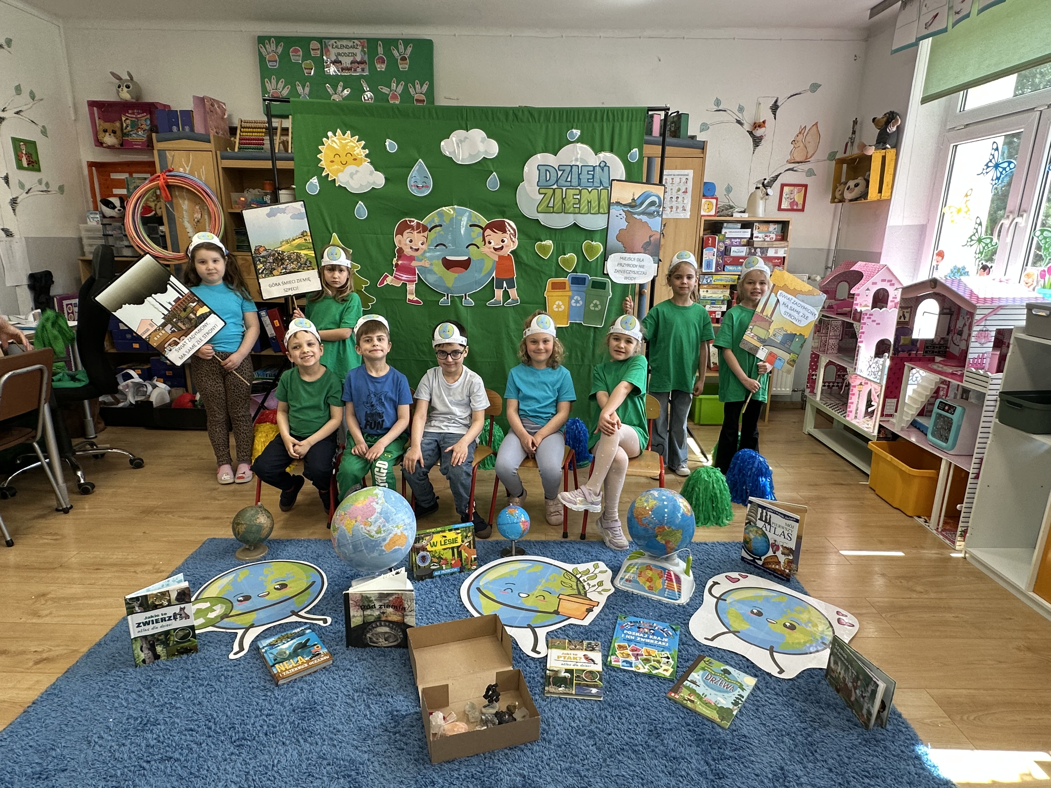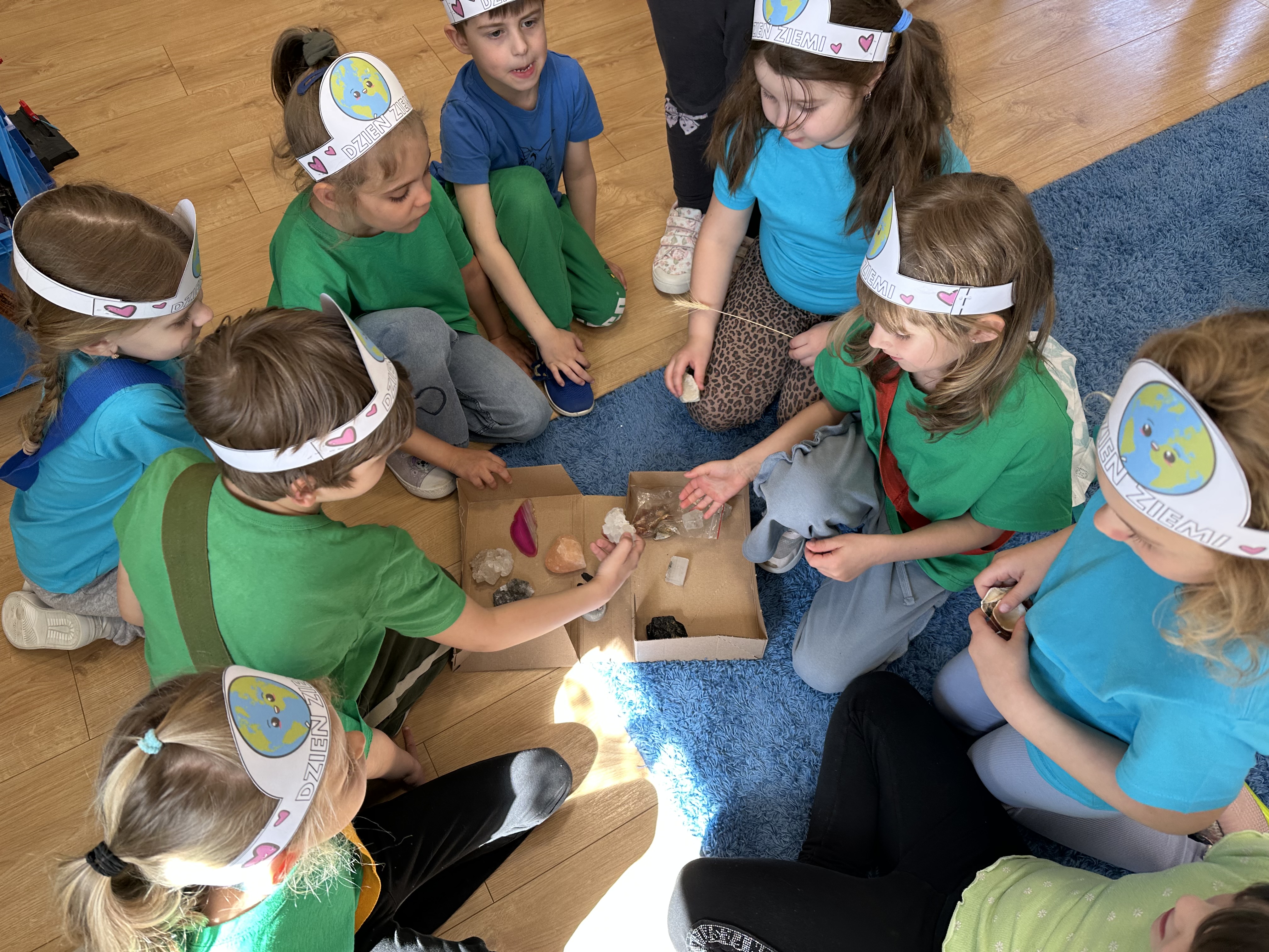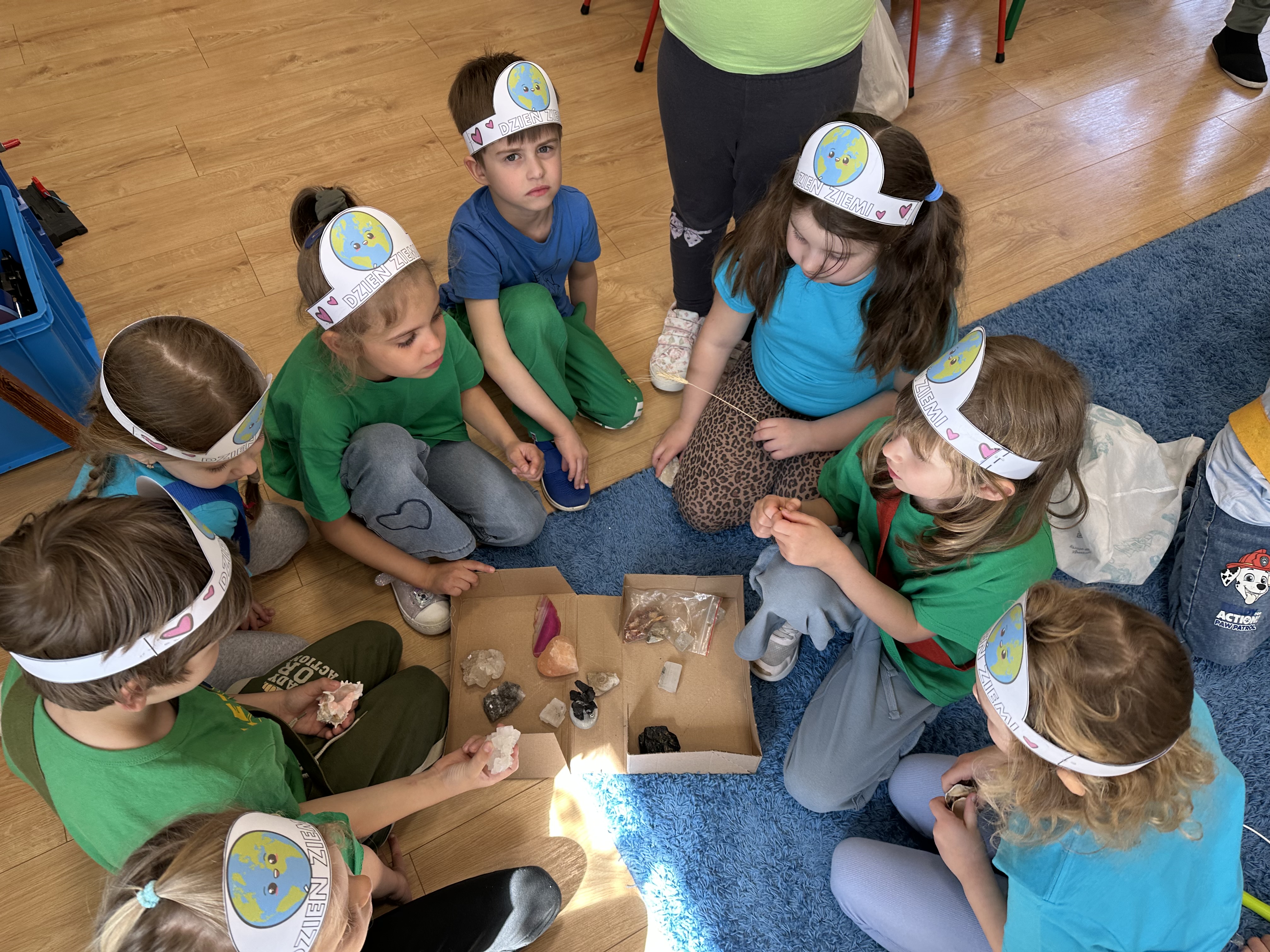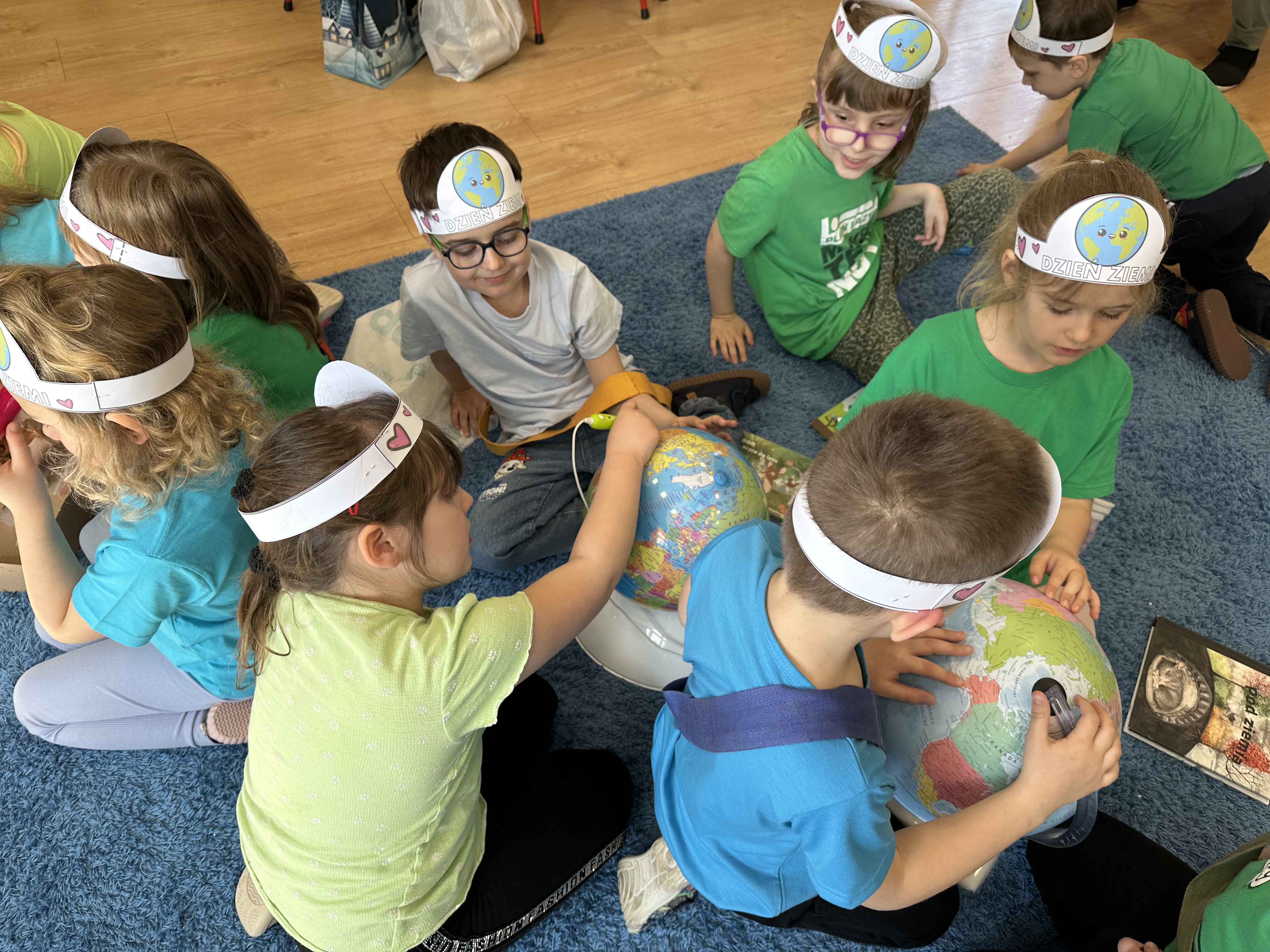 -prezentacja przedmiotów przyniesionych przez dzieci, takich jak globusy, książki czy „skarby Ziemi” (np. bursztyny, pamiątki z kopalni soli),