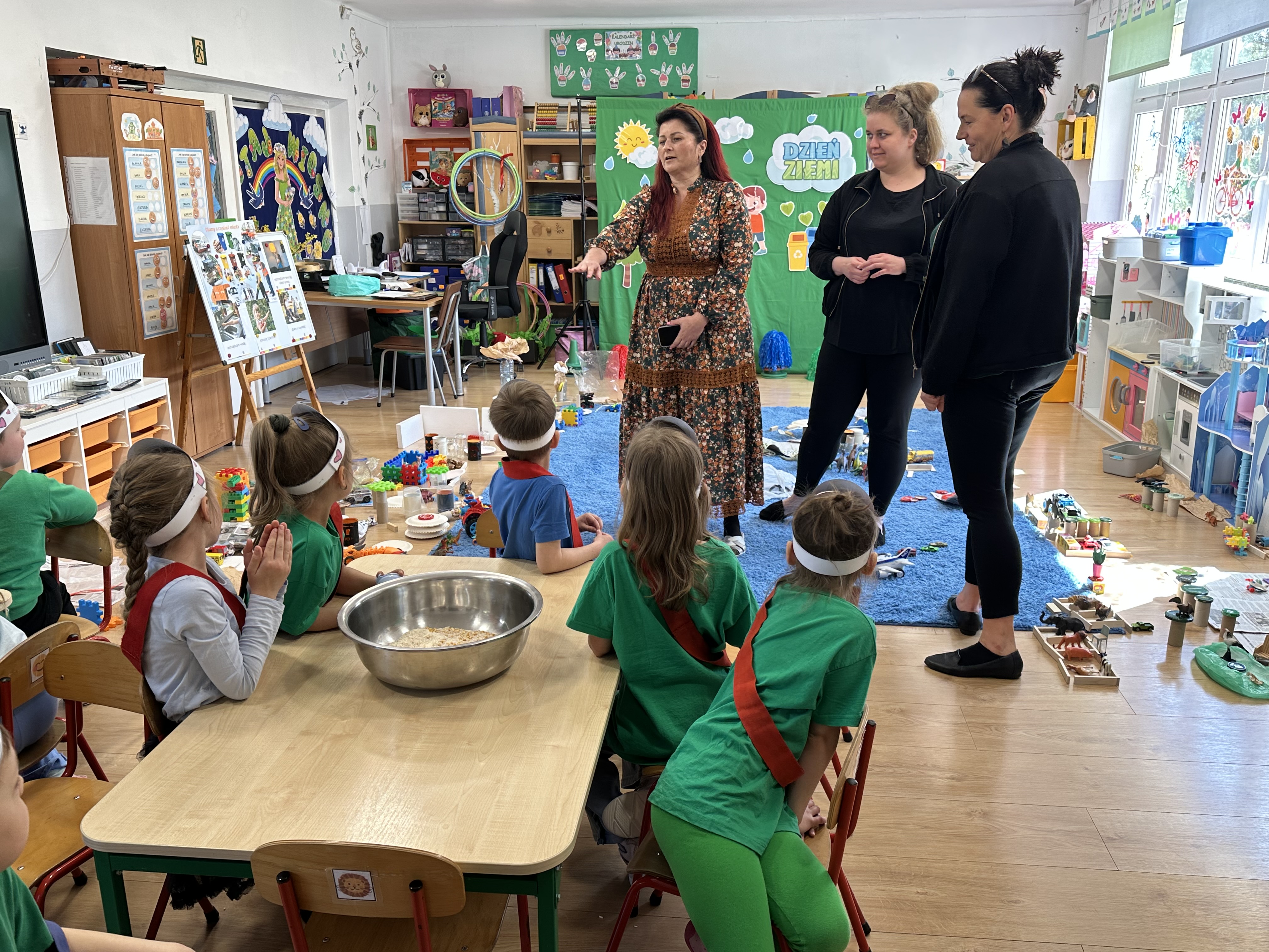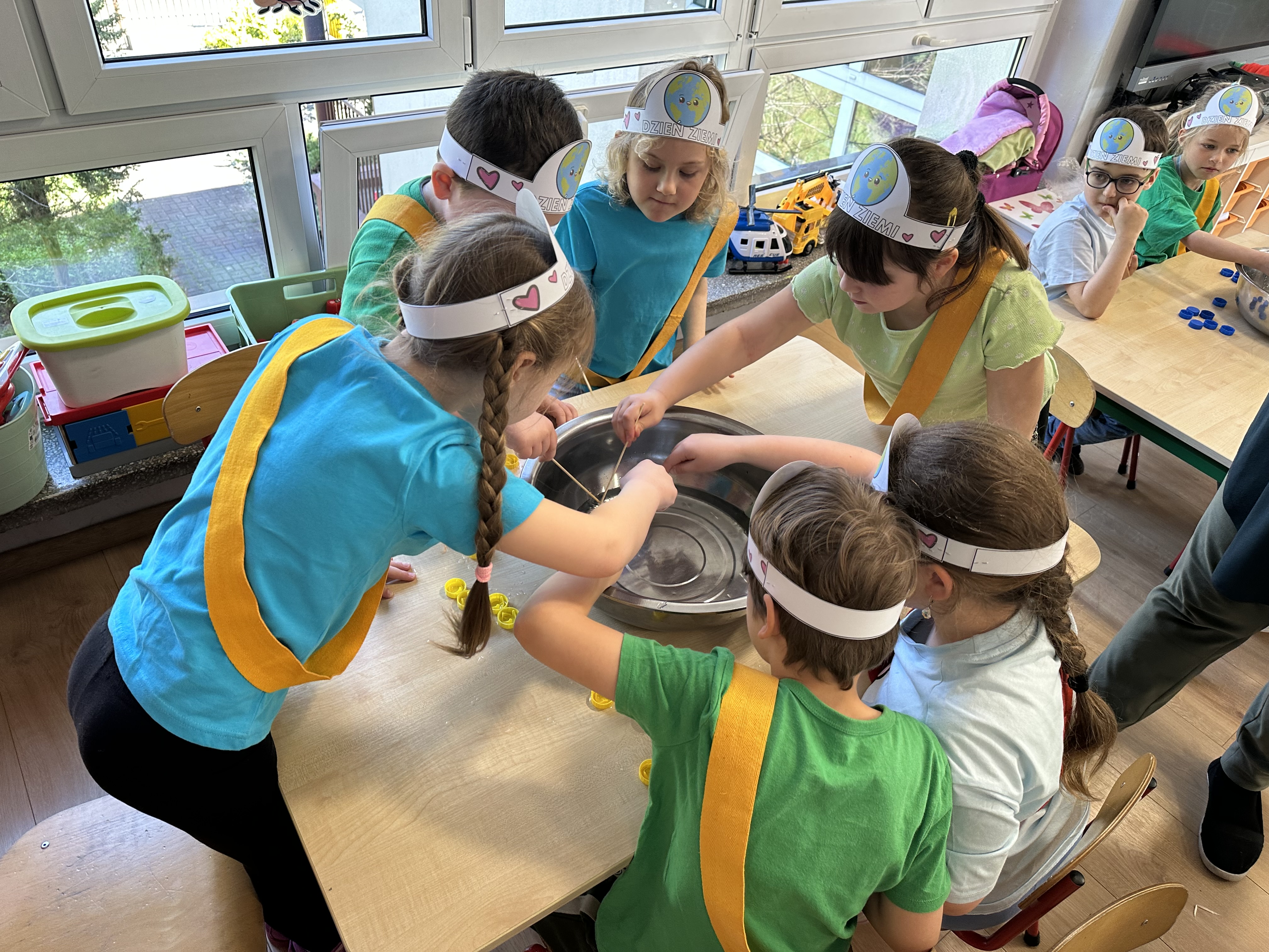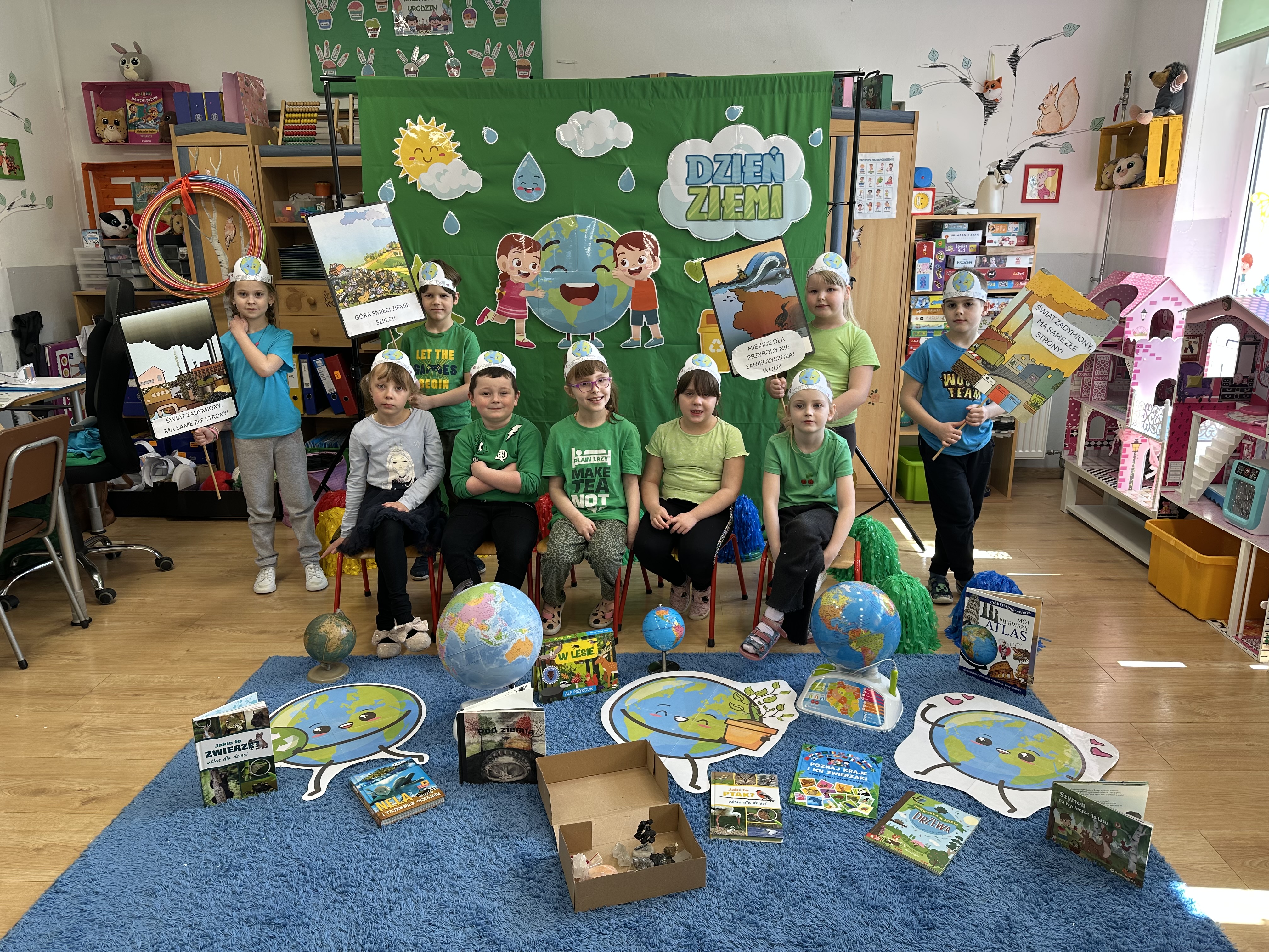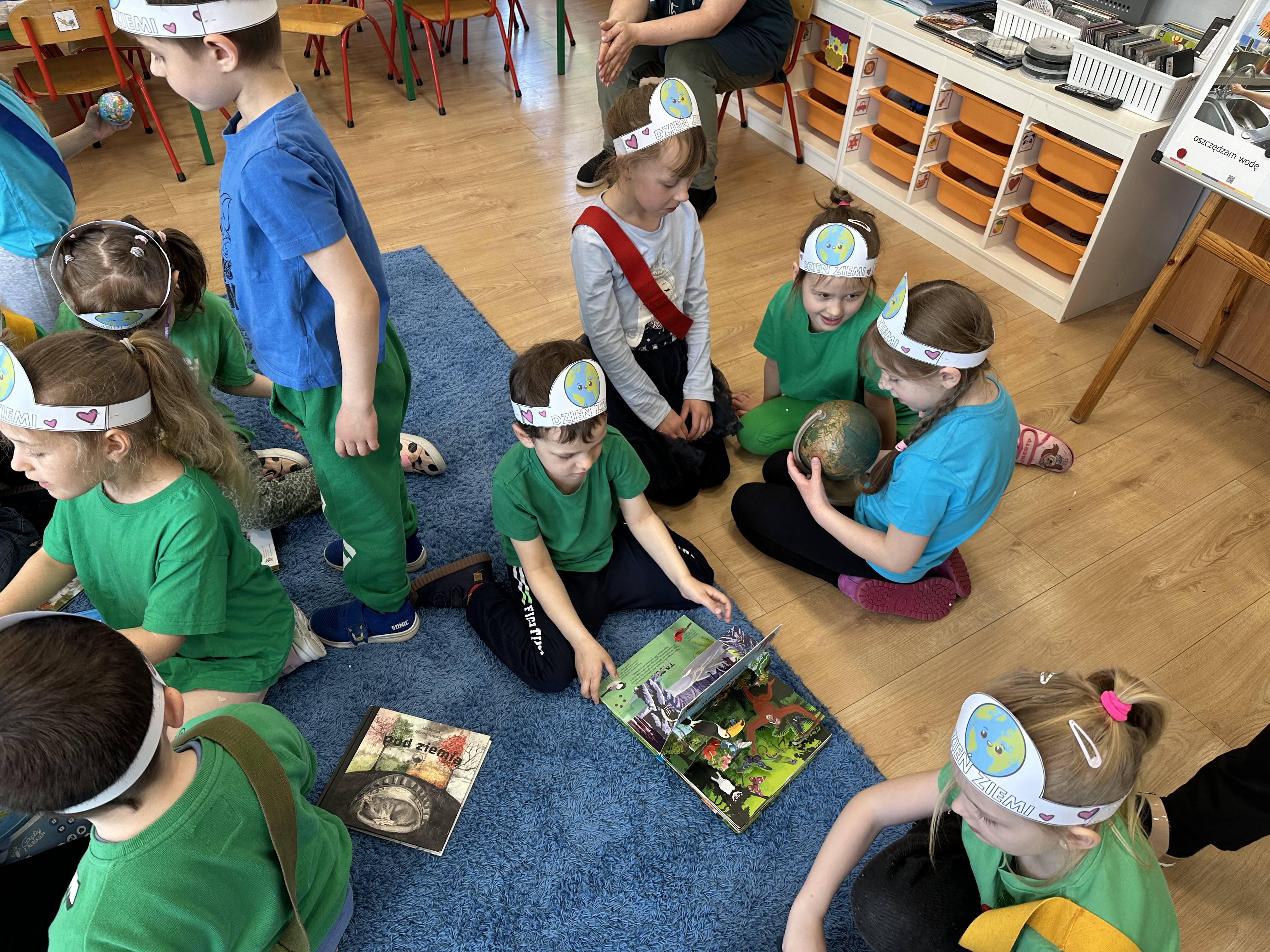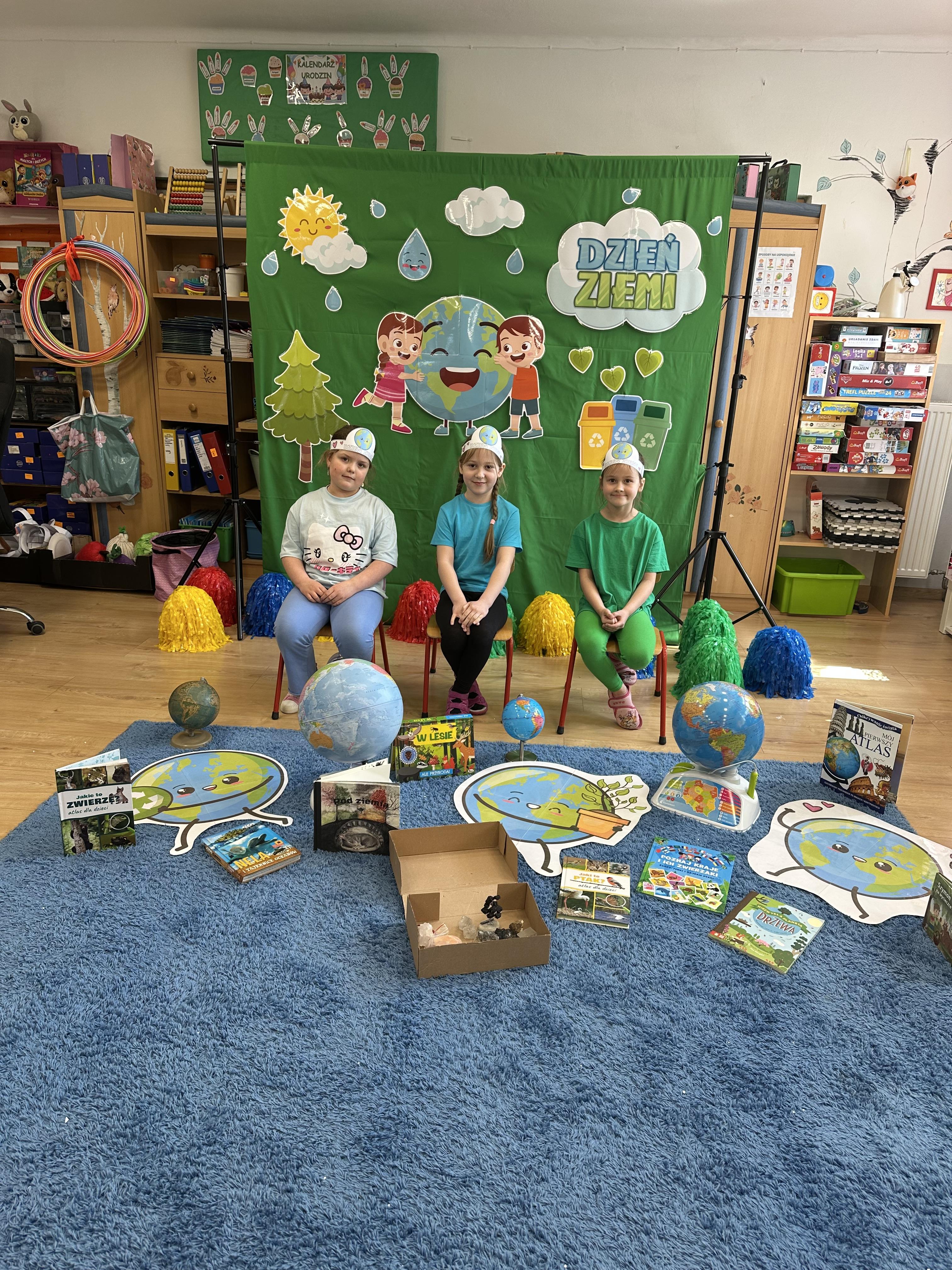 -prezentacja przedmiotów przyniesionych przez dzieci, takich jak globusy, książki czy „skarby Ziemi” (np. bursztyny, pamiątki z kopalni soli),