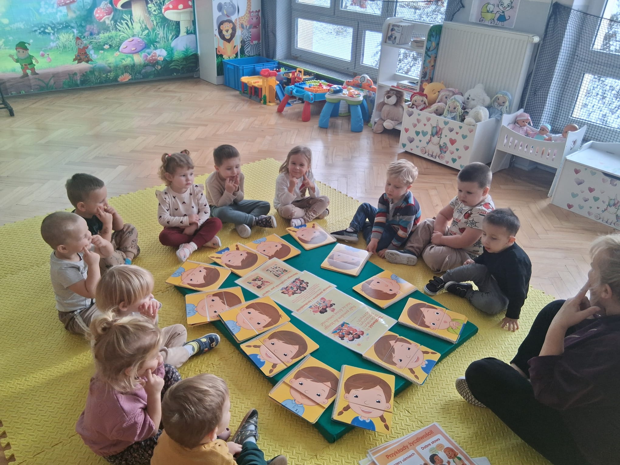 Dzień Życzliwości u ,,Krasnoludków’’ był okazją do nauki podstawowych zasad grzeczności i empatii poprzez zabawę. Skupia się na pozytywnych emocjach i dobrych uczynkach, takich jak „uśmiechnij się do kolegi”, „podziel się zabawką”, czy używanie "magicznych słów" jak „proszę”, „dziękuję” i „przepraszam”.