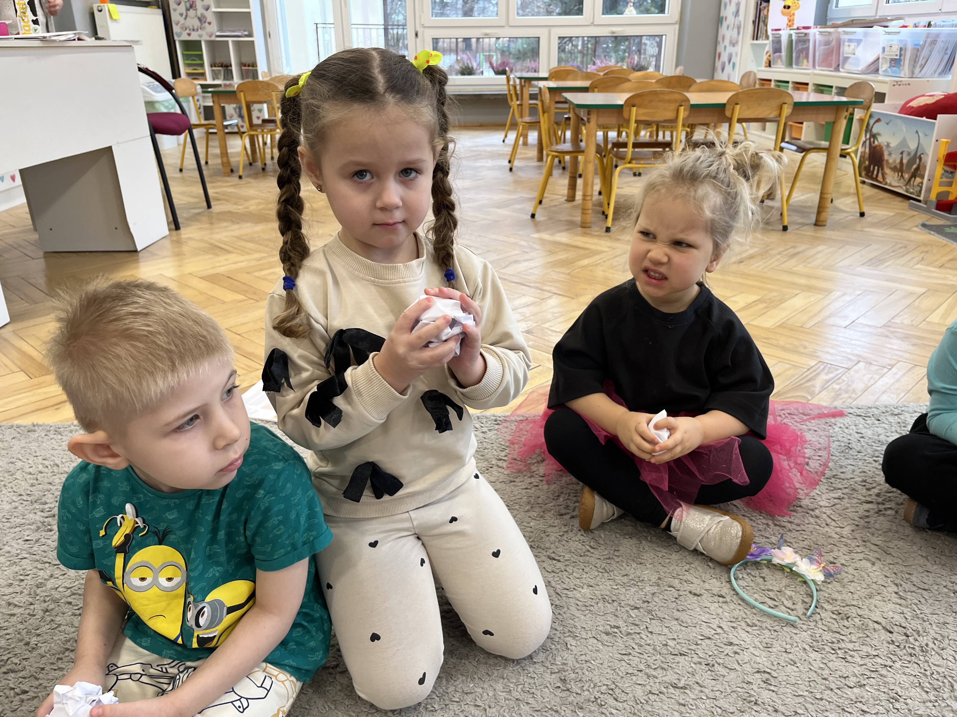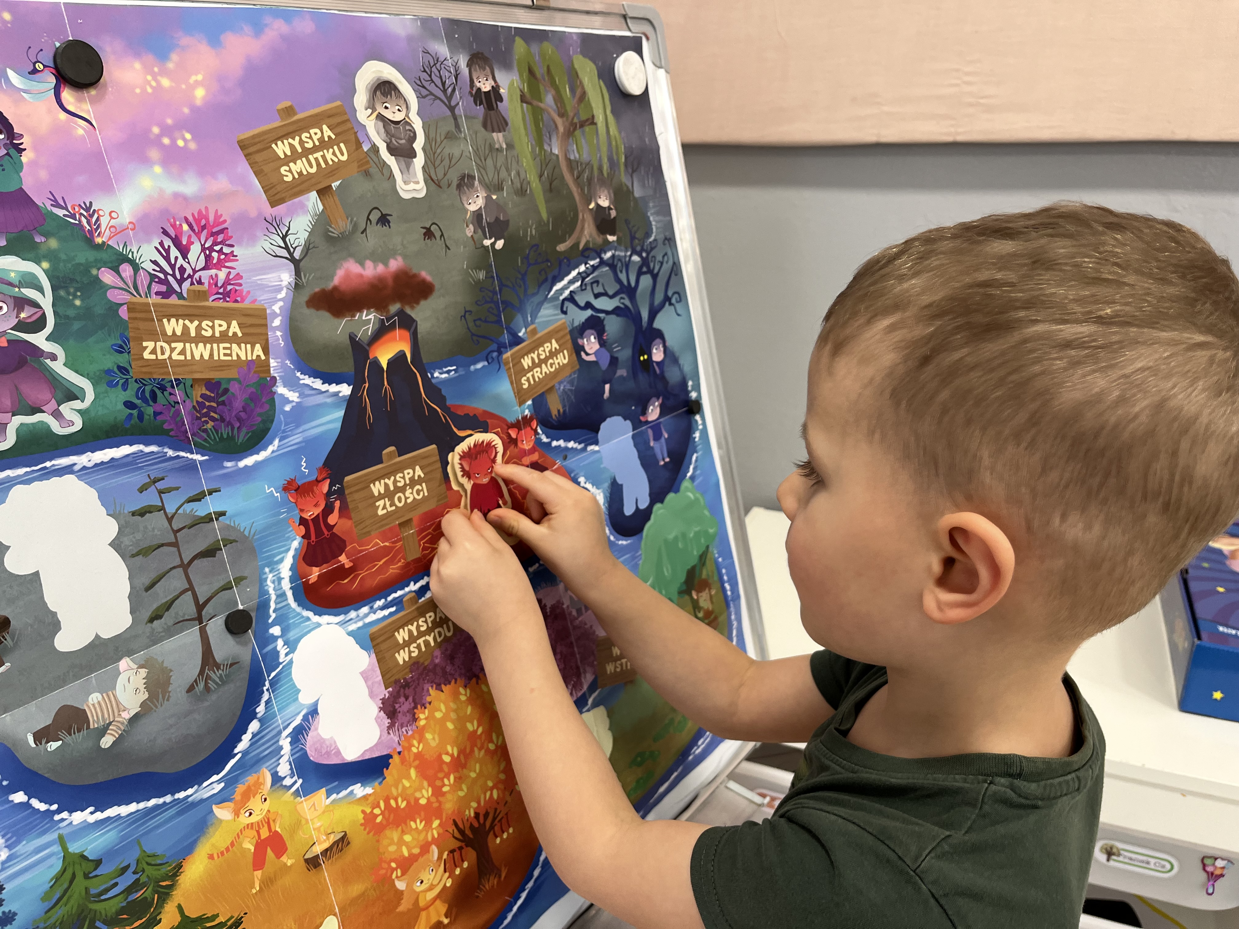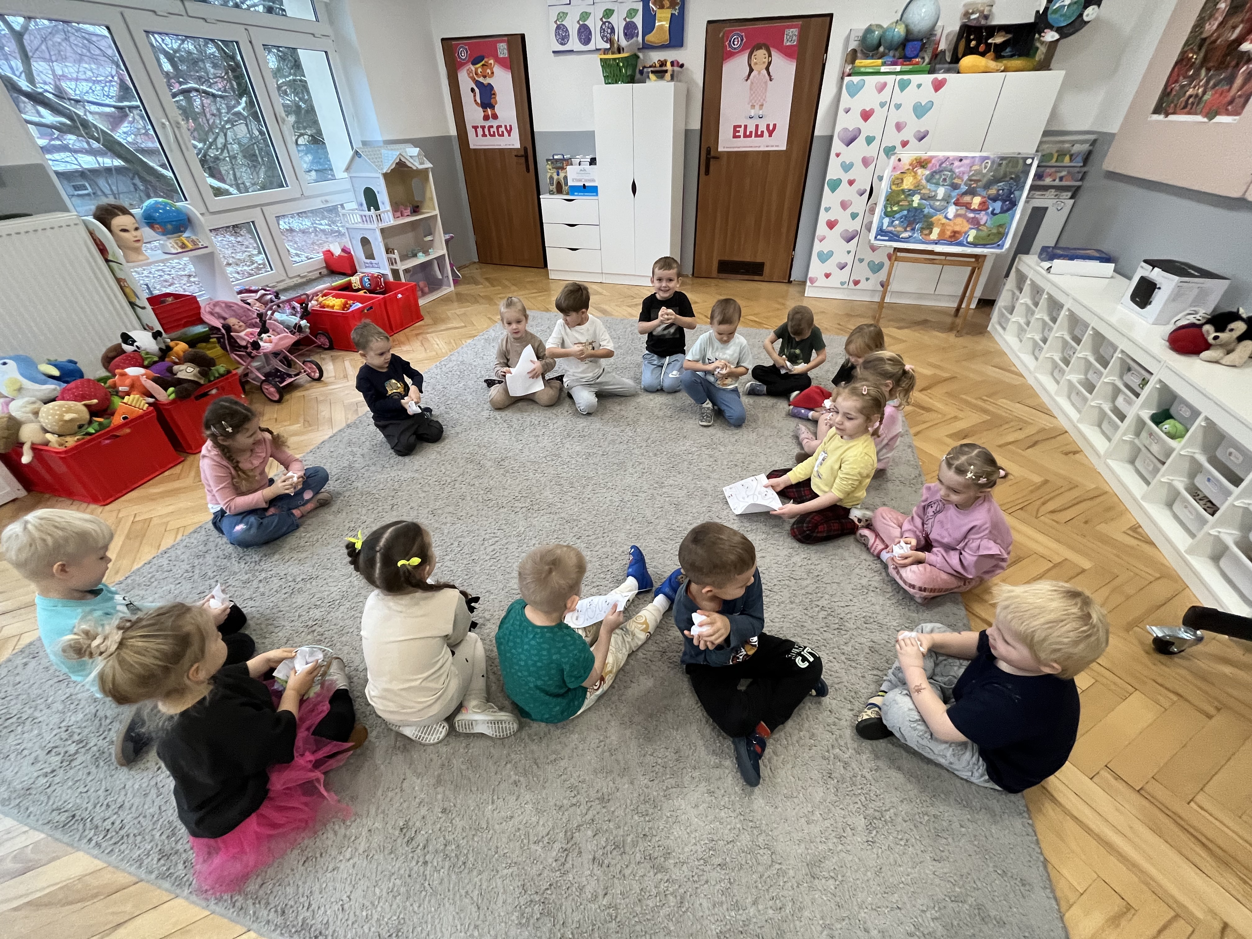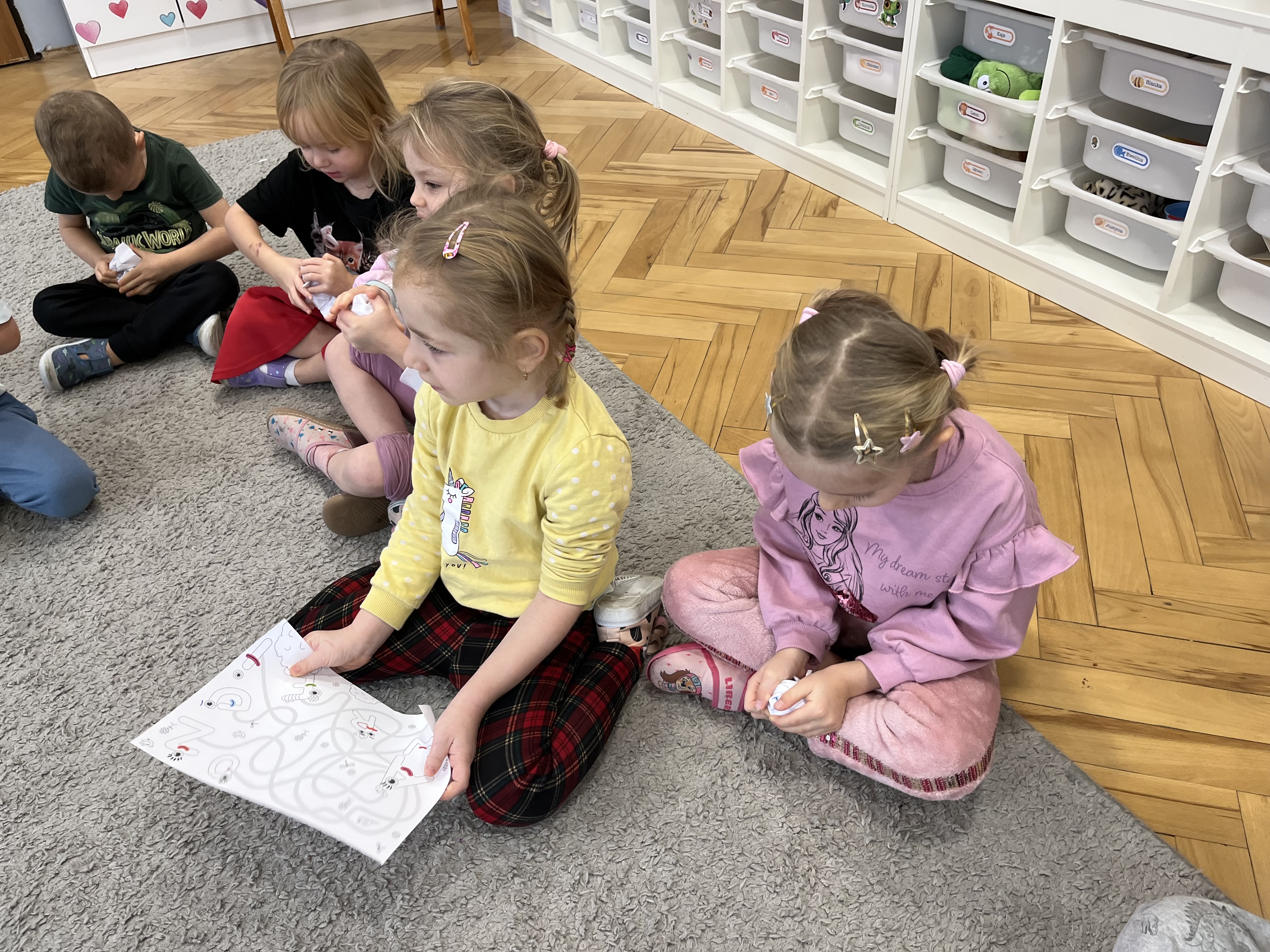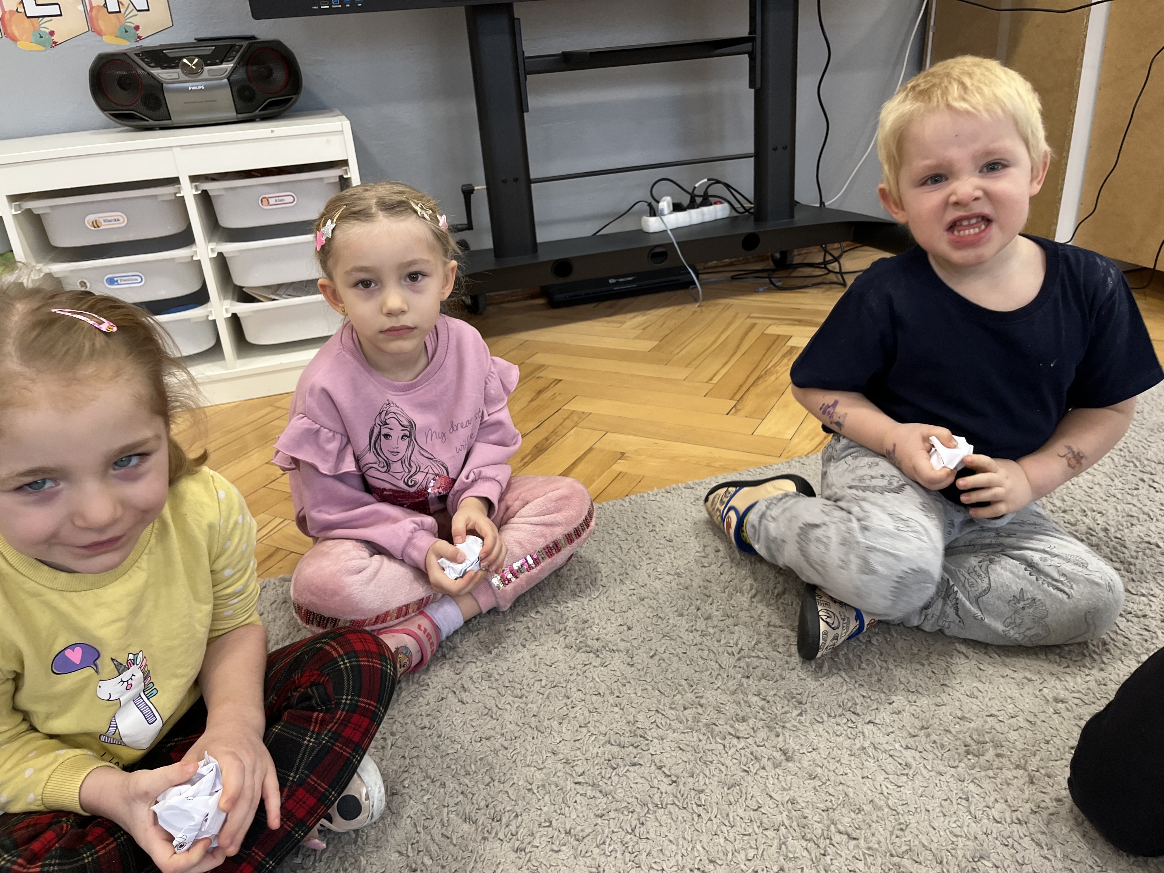 w grudniu w naszej grupie realizowaliśmy kolejne zajęcia w ramach projektu „Czuciaki”, tym razem poświęcone emocji złości. Punktem wyjścia była bajka „Gniewek z Wyspy Złości” Natalii Łasochy, której bohaterką jest Martynka przeżywająca bardzo intensywne emocje w dniu swoich urodzin. Podczas zajęć dzieci wysłuchały bajki, oglądały ilustracje i rozmawiały o tym, co czuła Martynka oraz dlaczego pojawił się u niej Gniewek – Czuciak symbolizujący złość. Wspólnie doszliśmy do wniosku, że złość jest naturalną emocją, którą odczuwa każdy z nas, zarówno dzieci, jak i dorośli. Rozmawialiśmy jednak także o tym, że bardzo ważne jest, w jaki sposób ją wyrażamy, aby nie ranić innych.