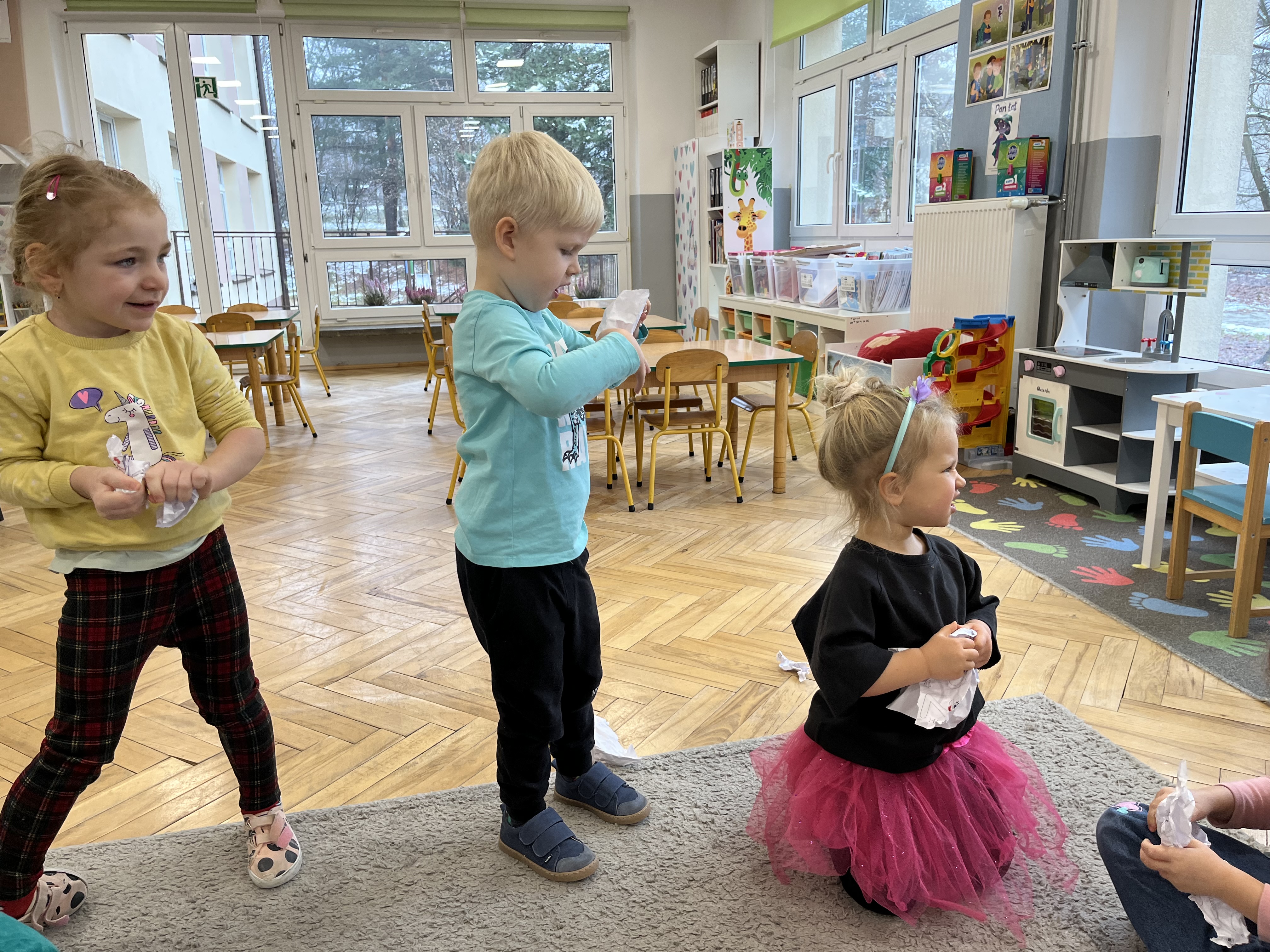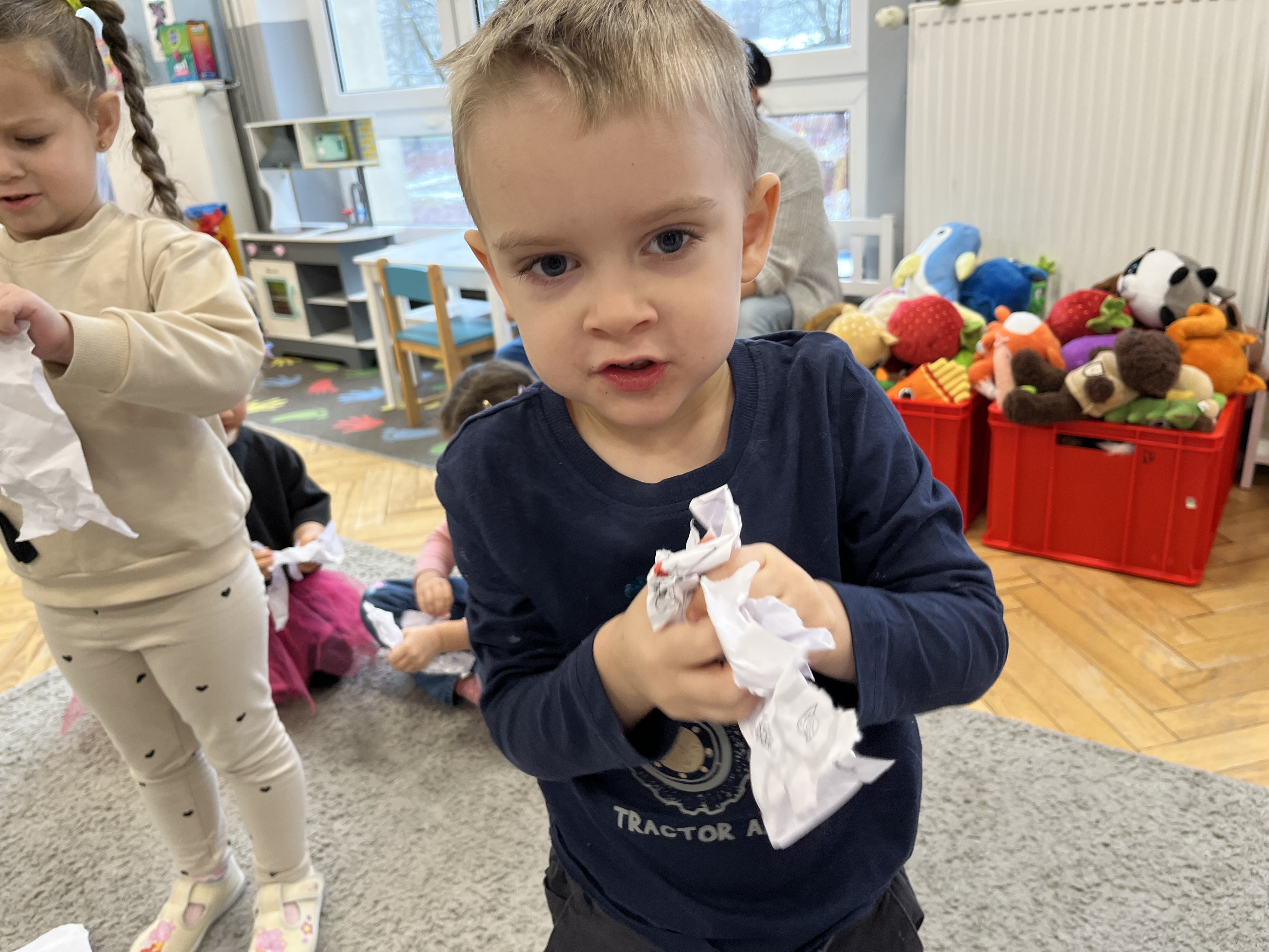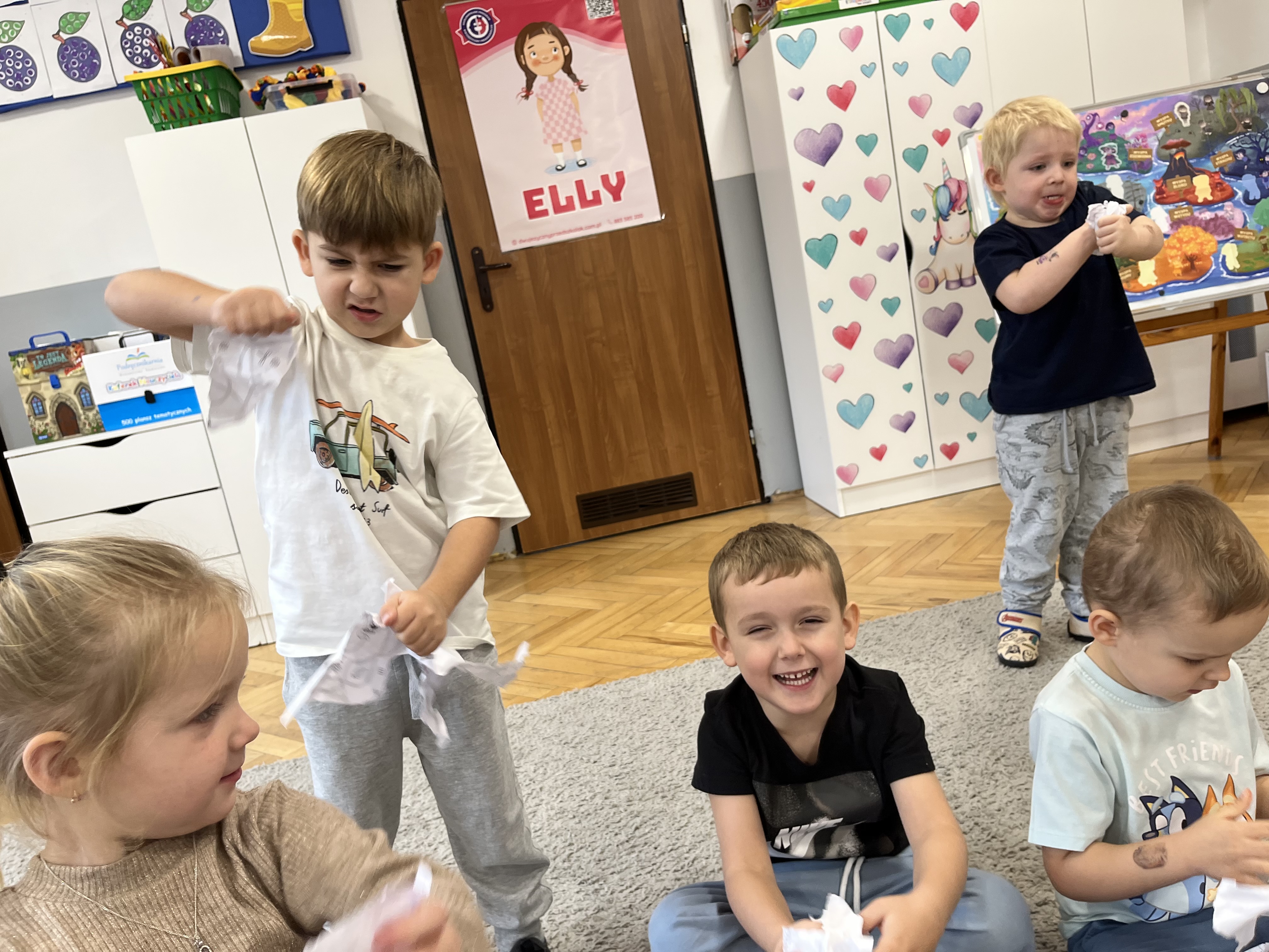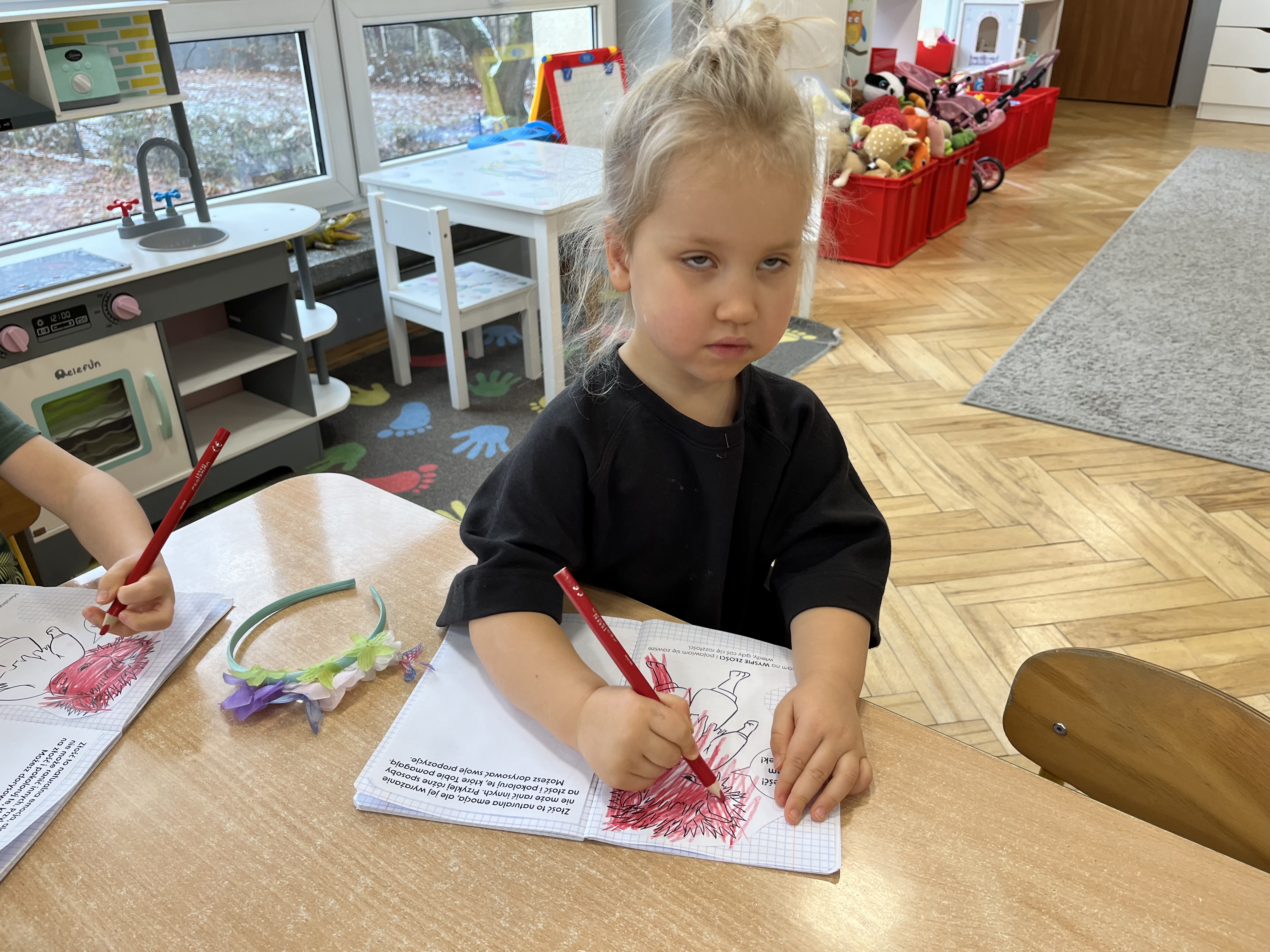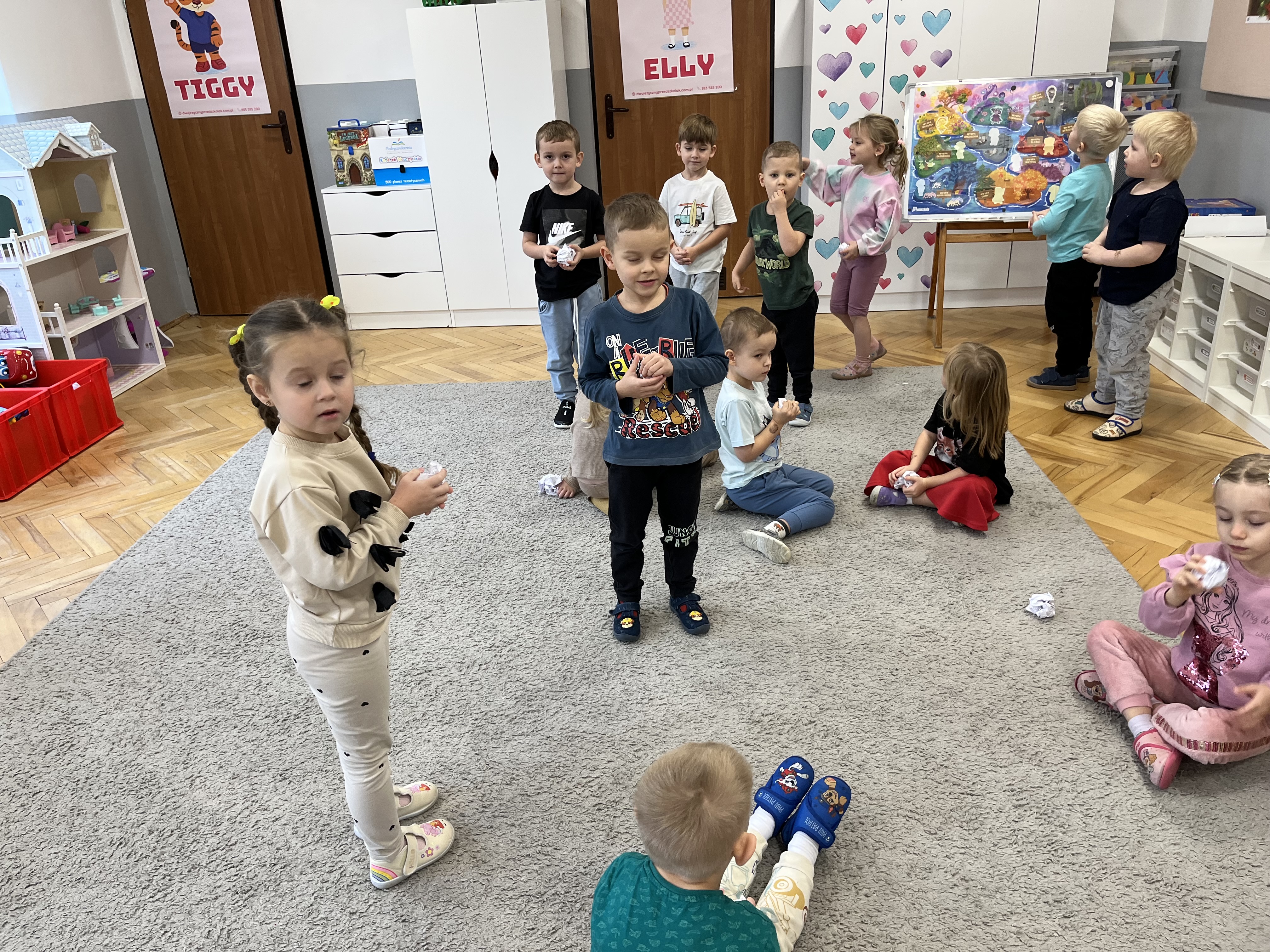 w grudniu w naszej grupie realizowaliśmy kolejne zajęcia w ramach projektu „Czuciaki”, tym razem poświęcone emocji złości. Punktem wyjścia była bajka „Gniewek z Wyspy Złości” Natalii Łasochy, której bohaterką jest Martynka przeżywająca bardzo intensywne emocje w dniu swoich urodzin. Podczas zajęć dzieci wysłuchały bajki, oglądały ilustracje i rozmawiały o tym, co czuła Martynka oraz dlaczego pojawił się u niej Gniewek – Czuciak symbolizujący złość. Wspólnie doszliśmy do wniosku, że złość jest naturalną emocją, którą odczuwa każdy z nas, zarówno dzieci, jak i dorośli. Rozmawialiśmy jednak także o tym, że bardzo ważne jest, w jaki sposób ją wyrażamy, aby nie ranić innych.