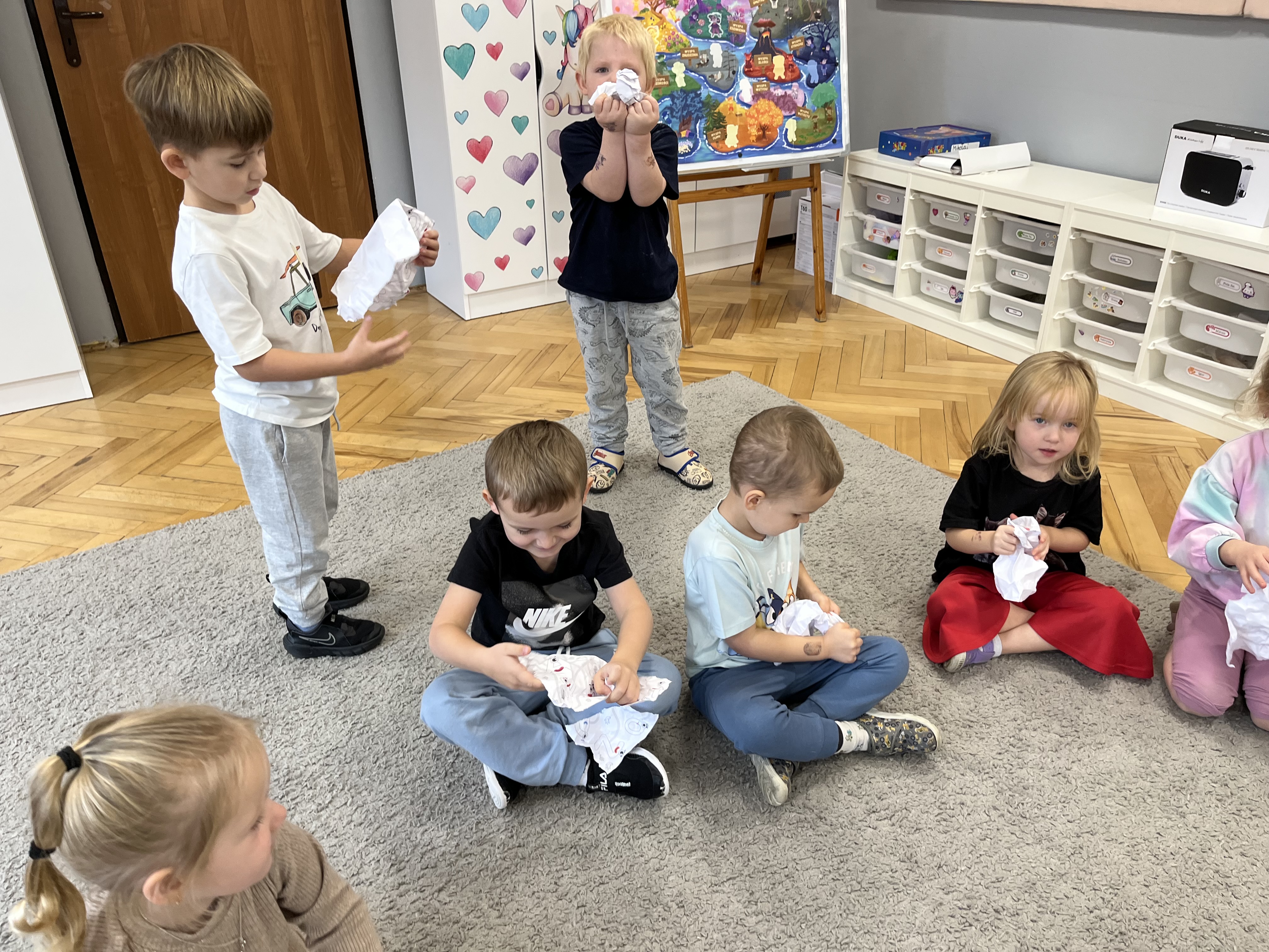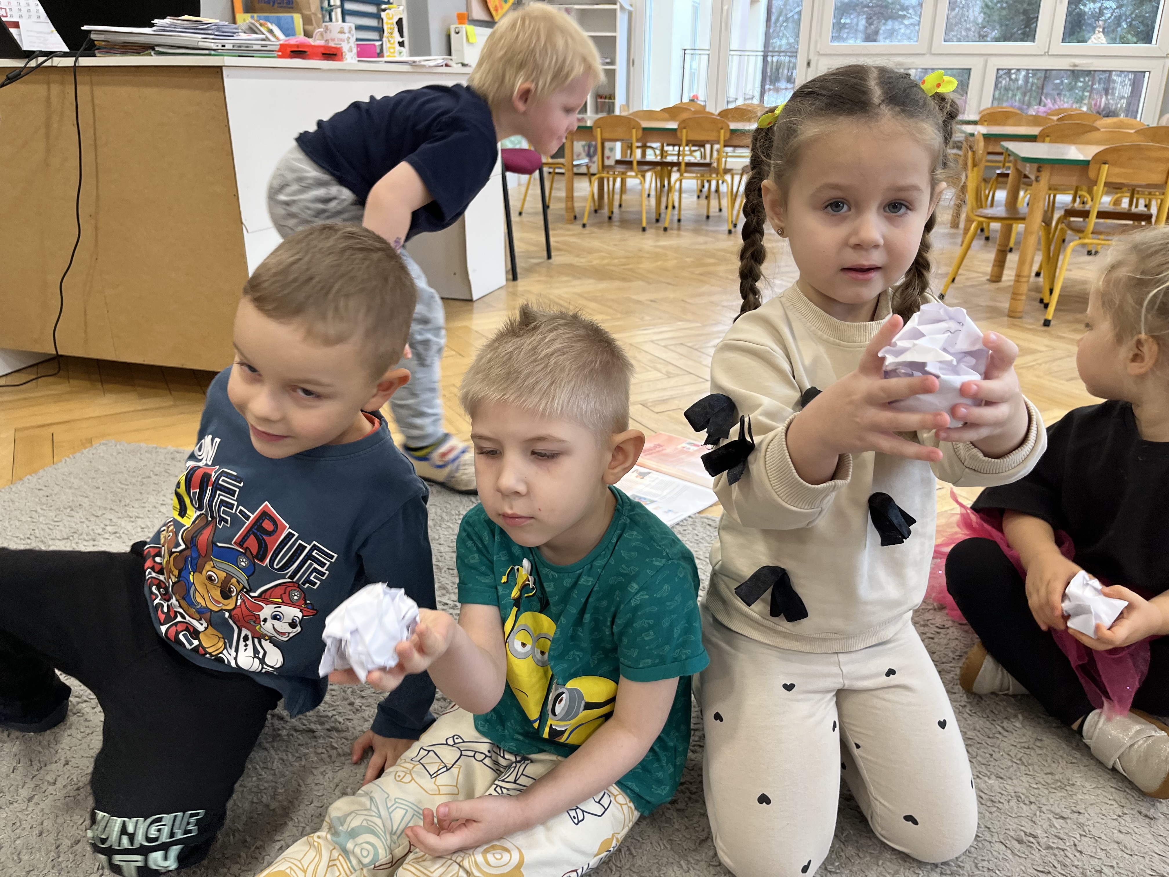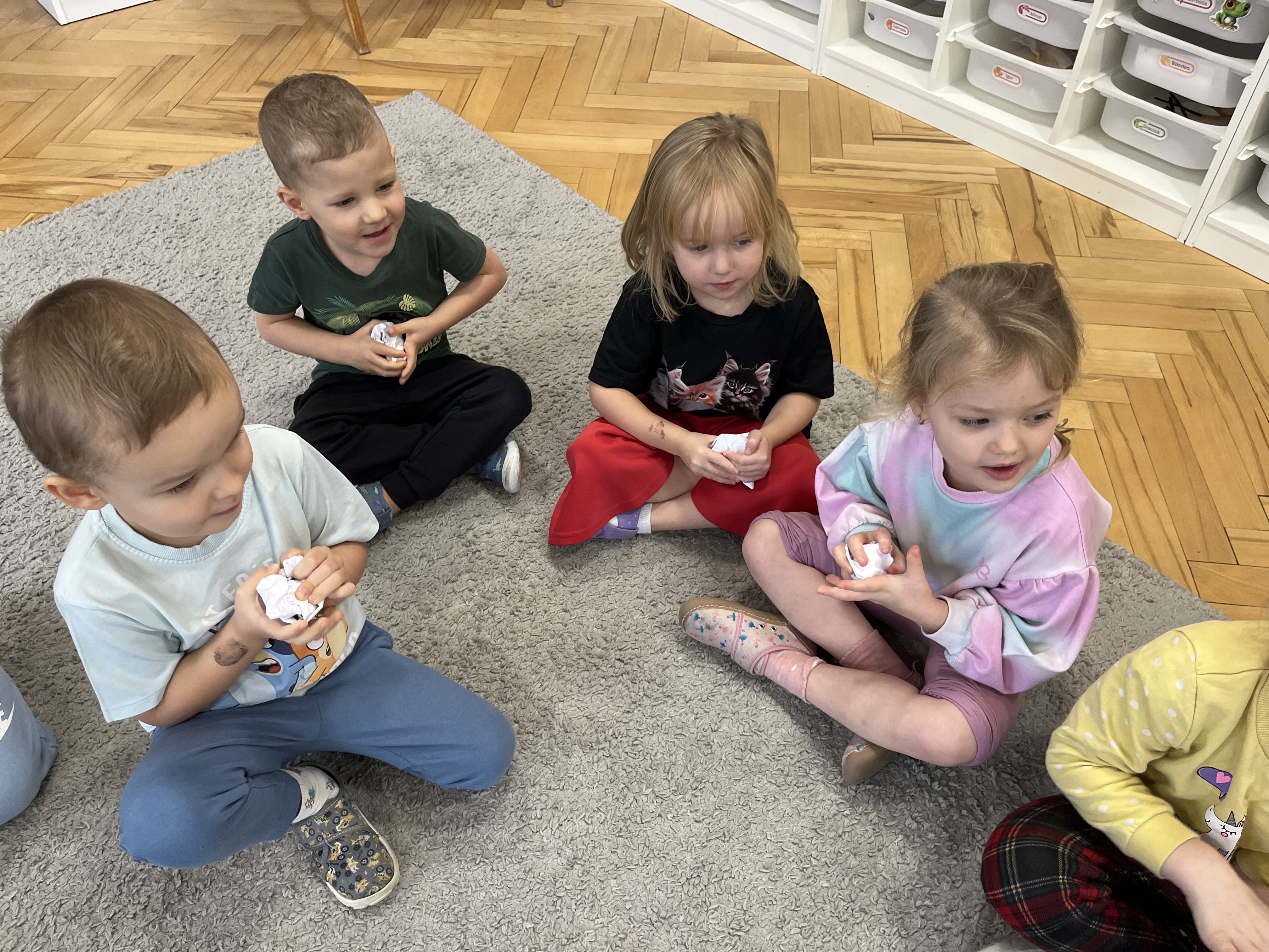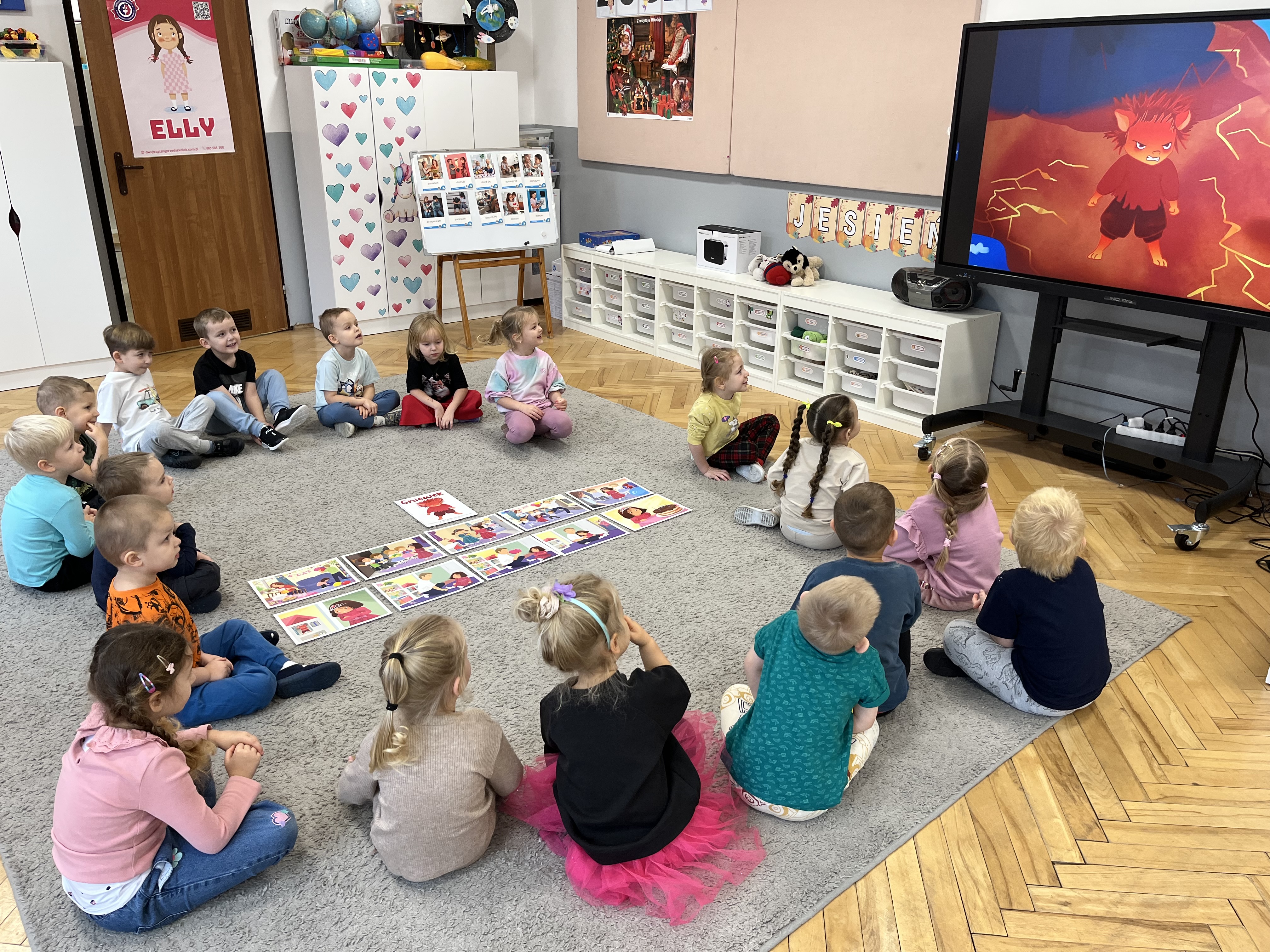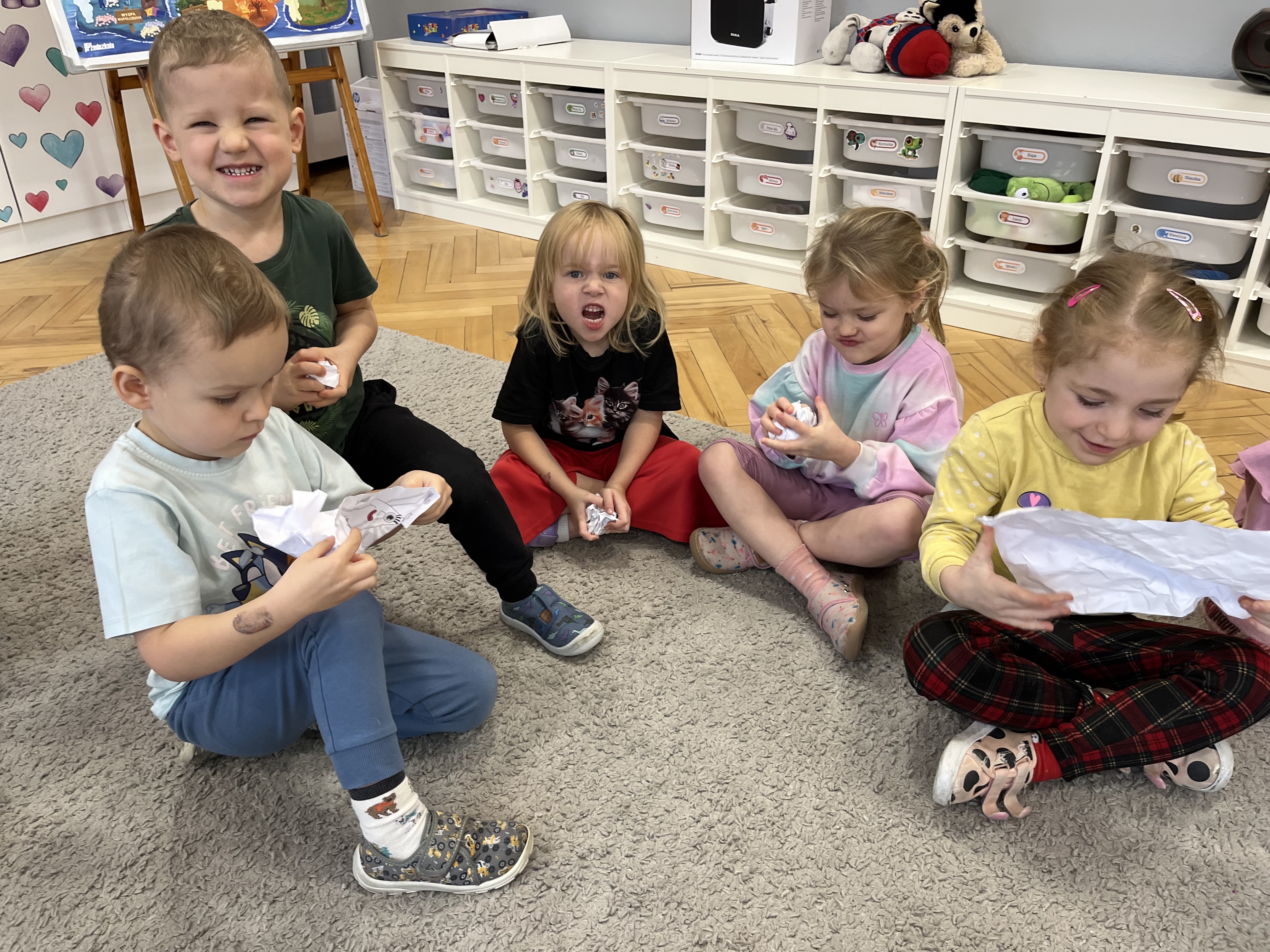 w grudniu w naszej grupie realizowaliśmy kolejne zajęcia w ramach projektu „Czuciaki”, tym razem poświęcone emocji złości. Punktem wyjścia była bajka „Gniewek z Wyspy Złości” Natalii Łasochy, której bohaterką jest Martynka przeżywająca bardzo intensywne emocje w dniu swoich urodzin. Podczas zajęć dzieci wysłuchały bajki, oglądały ilustracje i rozmawiały o tym, co czuła Martynka oraz dlaczego pojawił się u niej Gniewek – Czuciak symbolizujący złość. Wspólnie doszliśmy do wniosku, że złość jest naturalną emocją, którą odczuwa każdy z nas, zarówno dzieci, jak i dorośli. Rozmawialiśmy jednak także o tym, że bardzo ważne jest, w jaki sposób ją wyrażamy, aby nie ranić innych.