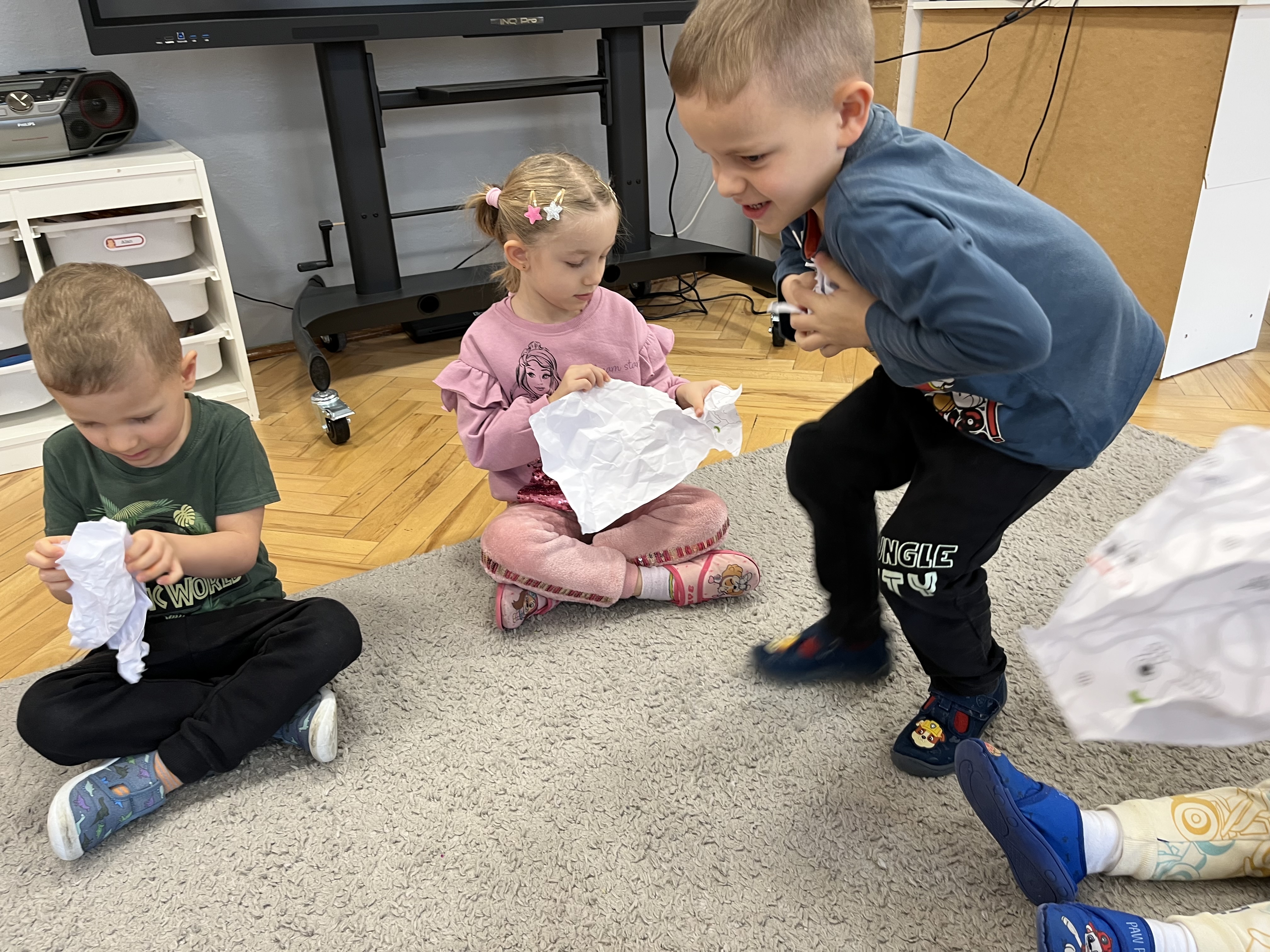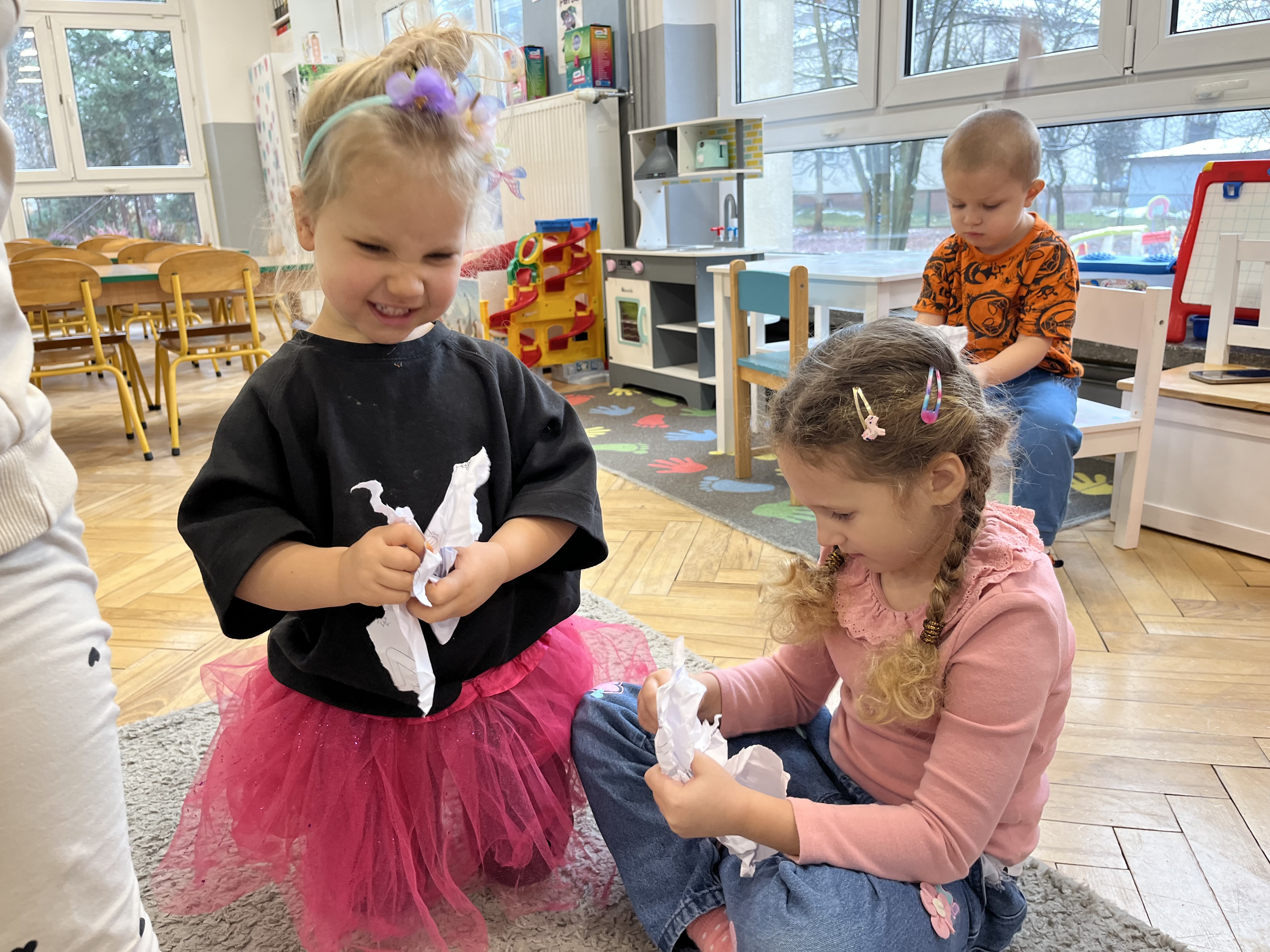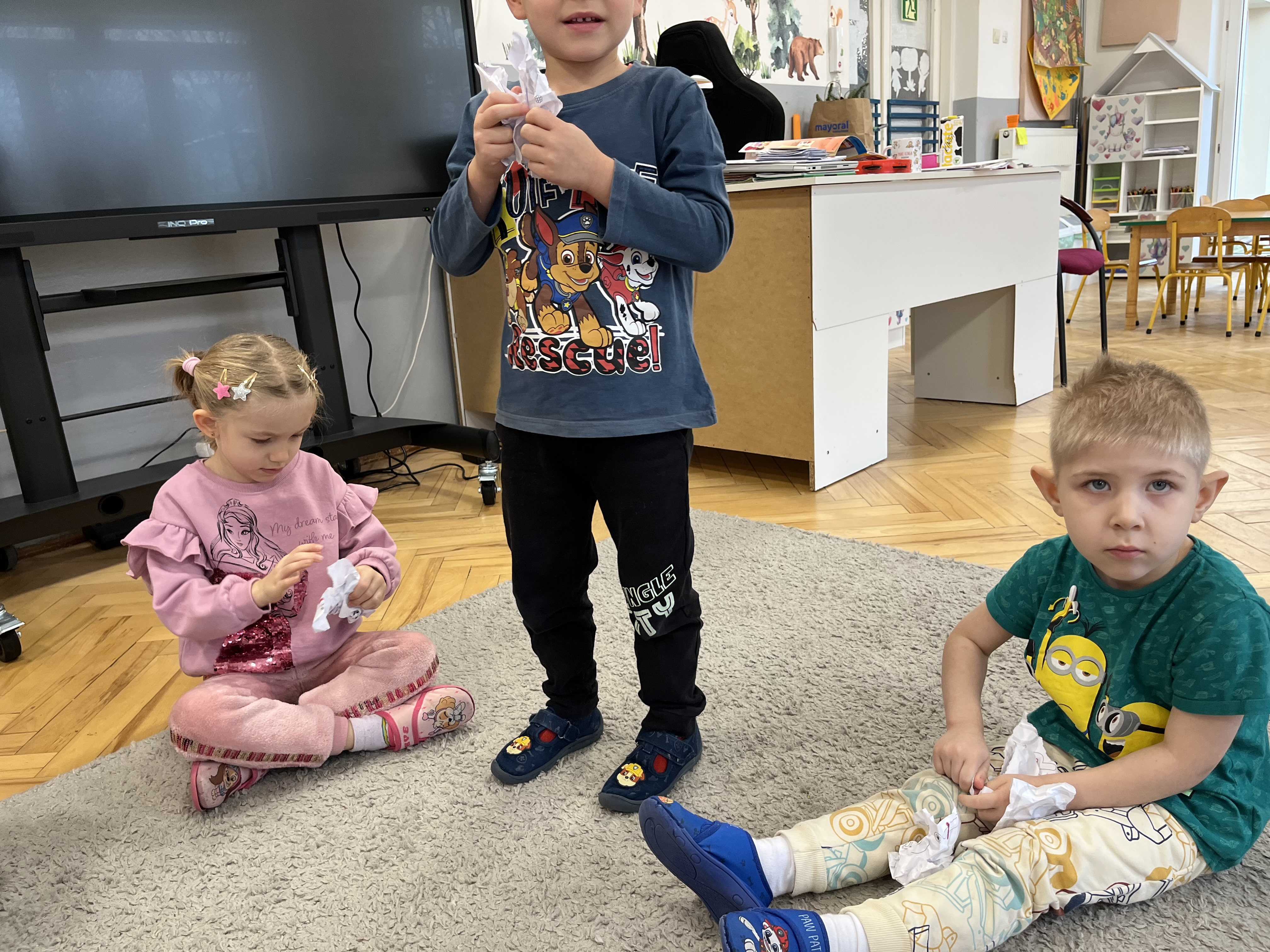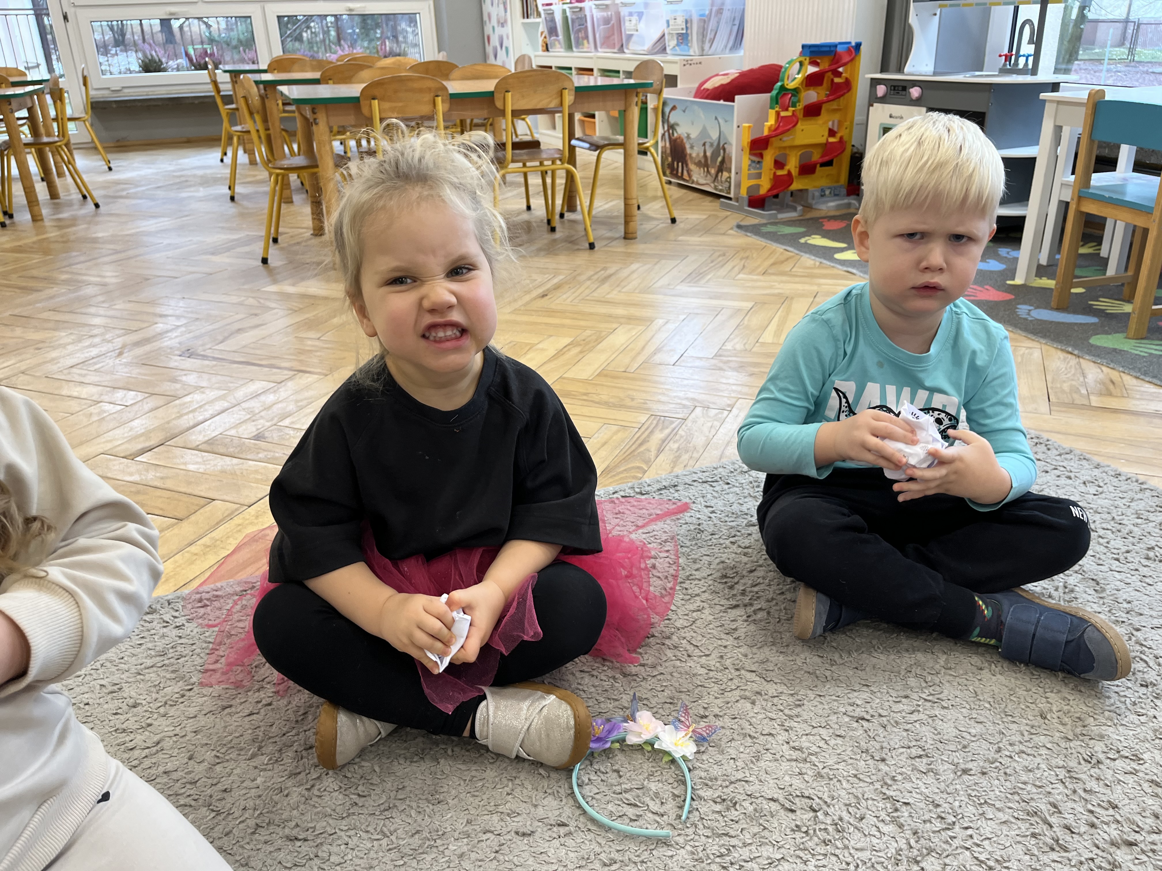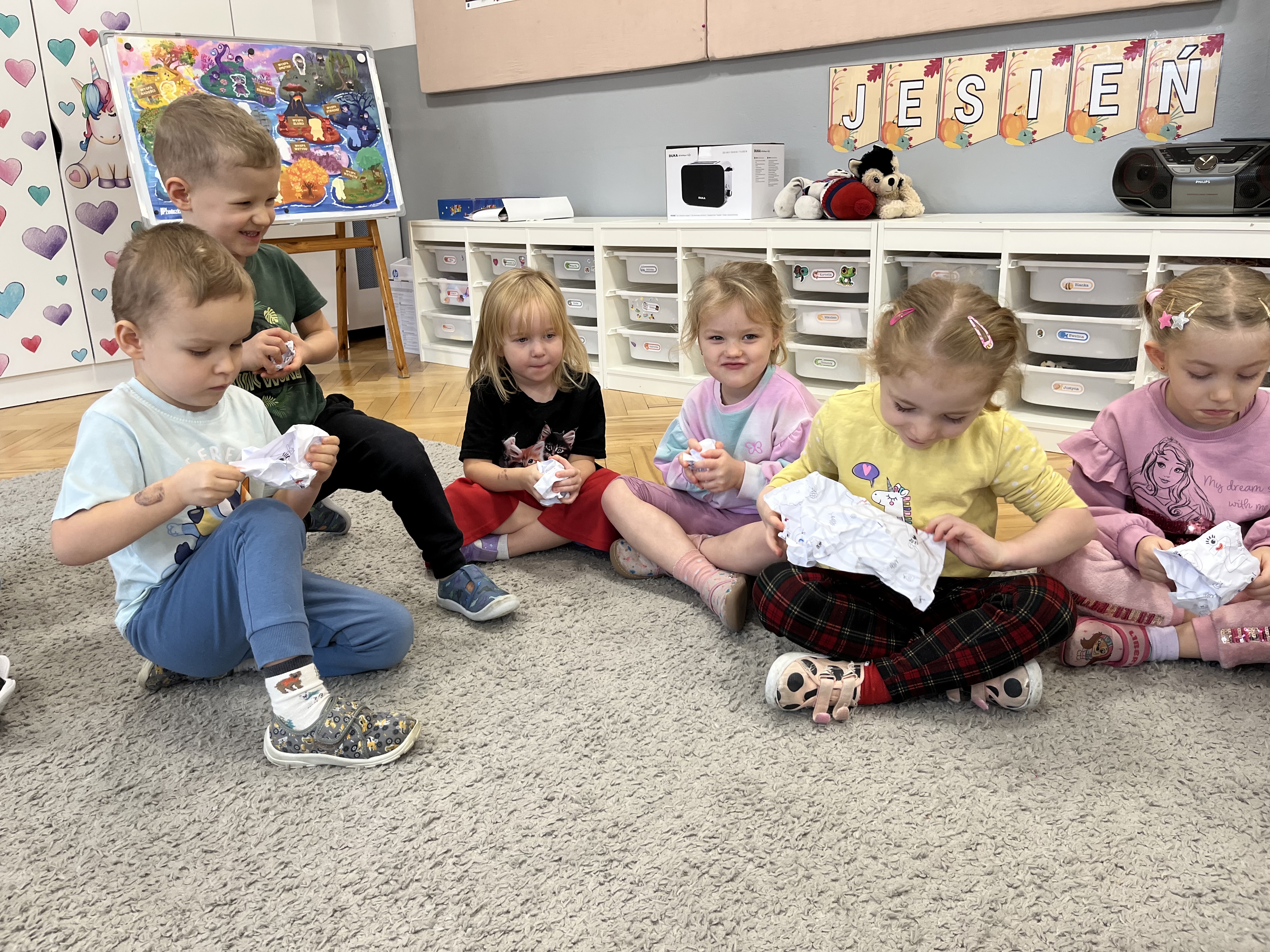 w grudniu w naszej grupie realizowaliśmy kolejne zajęcia w ramach projektu „Czuciaki”, tym razem poświęcone emocji złości. Punktem wyjścia była bajka „Gniewek z Wyspy Złości” Natalii Łasochy, której bohaterką jest Martynka przeżywająca bardzo intensywne emocje w dniu swoich urodzin. Podczas zajęć dzieci wysłuchały bajki, oglądały ilustracje i rozmawiały o tym, co czuła Martynka oraz dlaczego pojawił się u niej Gniewek – Czuciak symbolizujący złość. Wspólnie doszliśmy do wniosku, że złość jest naturalną emocją, którą odczuwa każdy z nas, zarówno dzieci, jak i dorośli. Rozmawialiśmy jednak także o tym, że bardzo ważne jest, w jaki sposób ją wyrażamy, aby nie ranić innych.