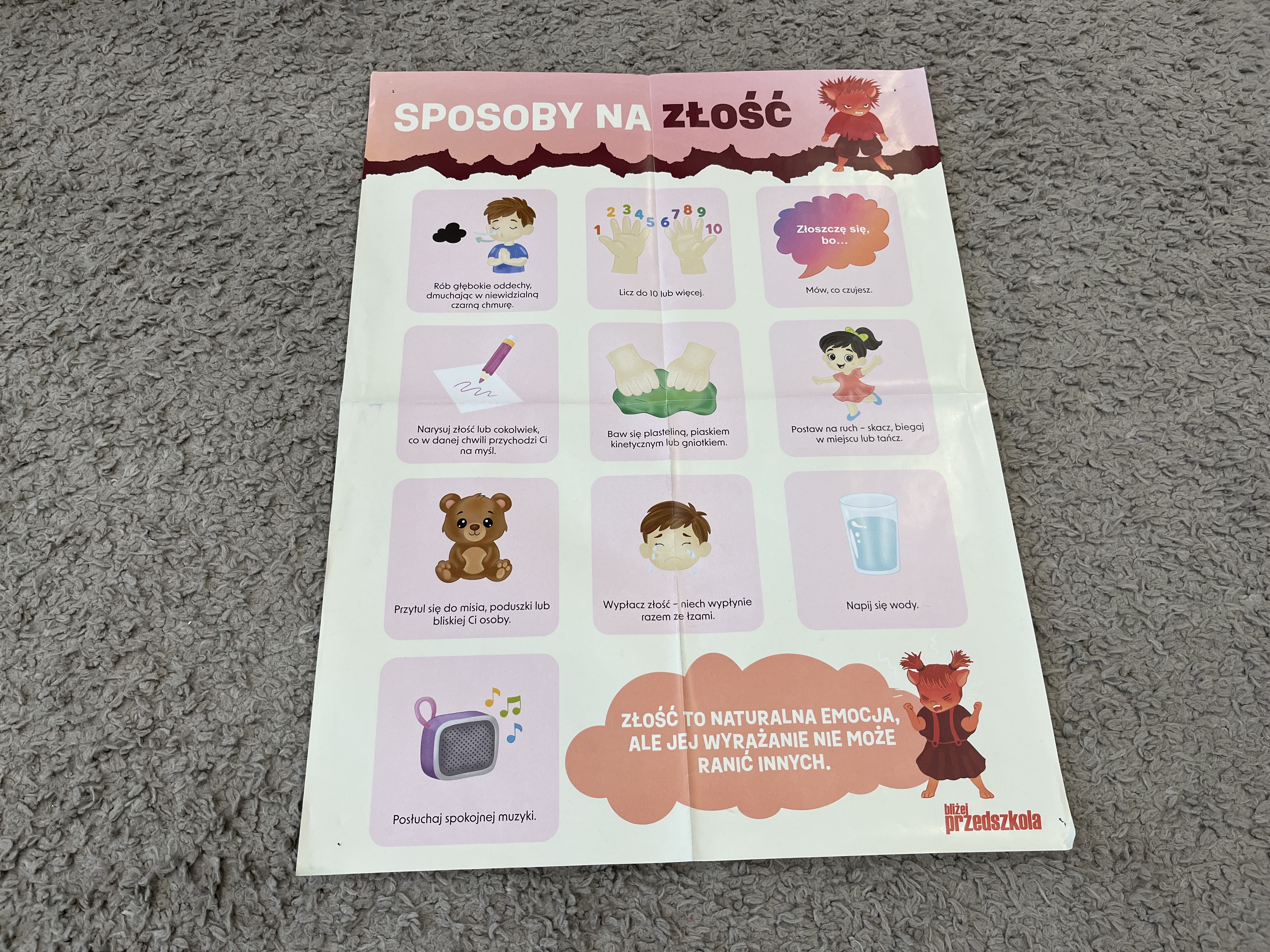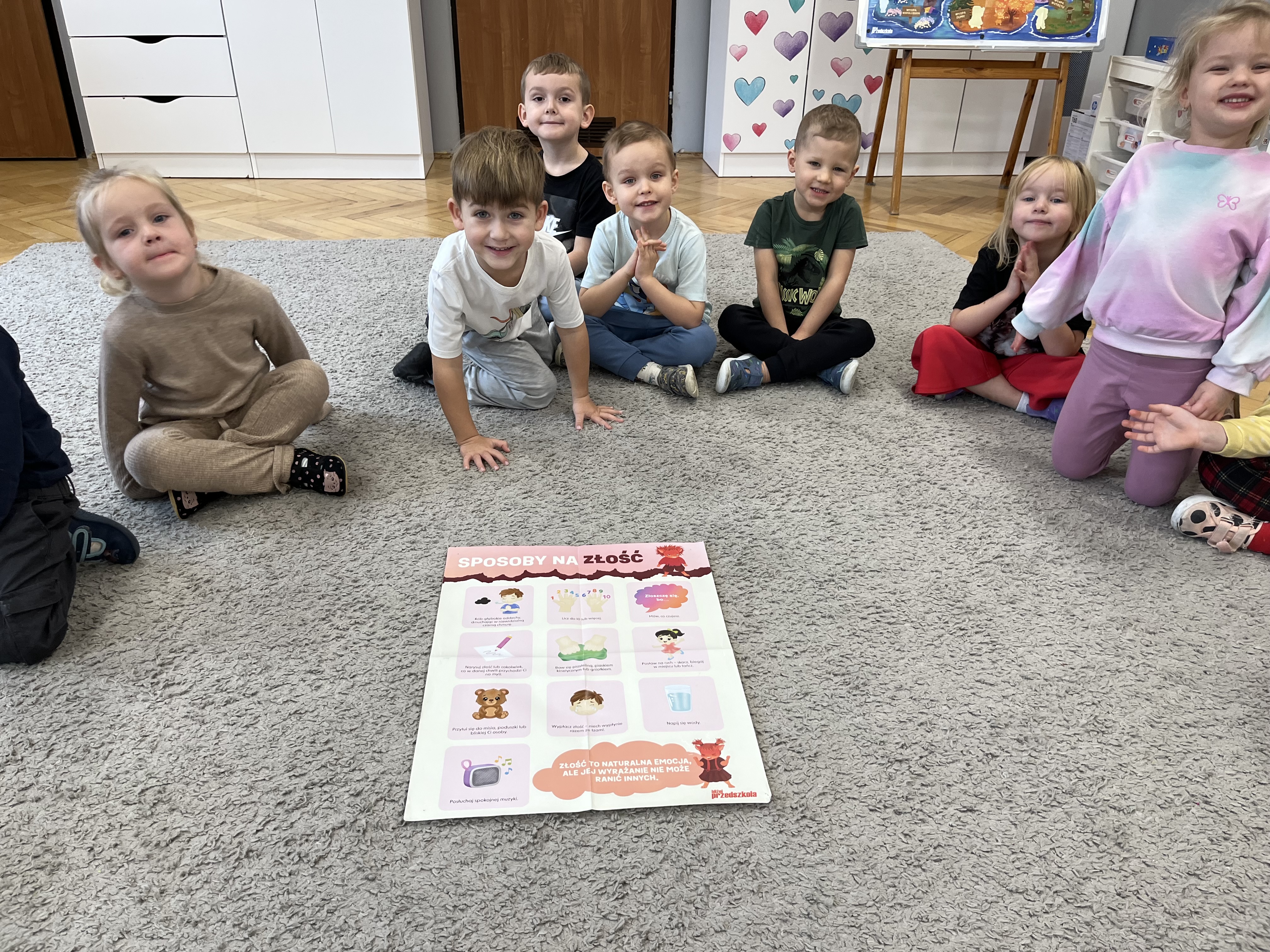 Zachęcamy Państwa do rozmów z dziećmi w domu na temat emocji, szczególnie złości, oraz do wspólnego zastanawiania się, jakie sposoby pomagają Waszemu dziecku się uspokoić. Wspólne nazywanie uczuć i akceptowanie ich jest ogromnym wsparciem w rozwoju emocjonalnym dziecka.