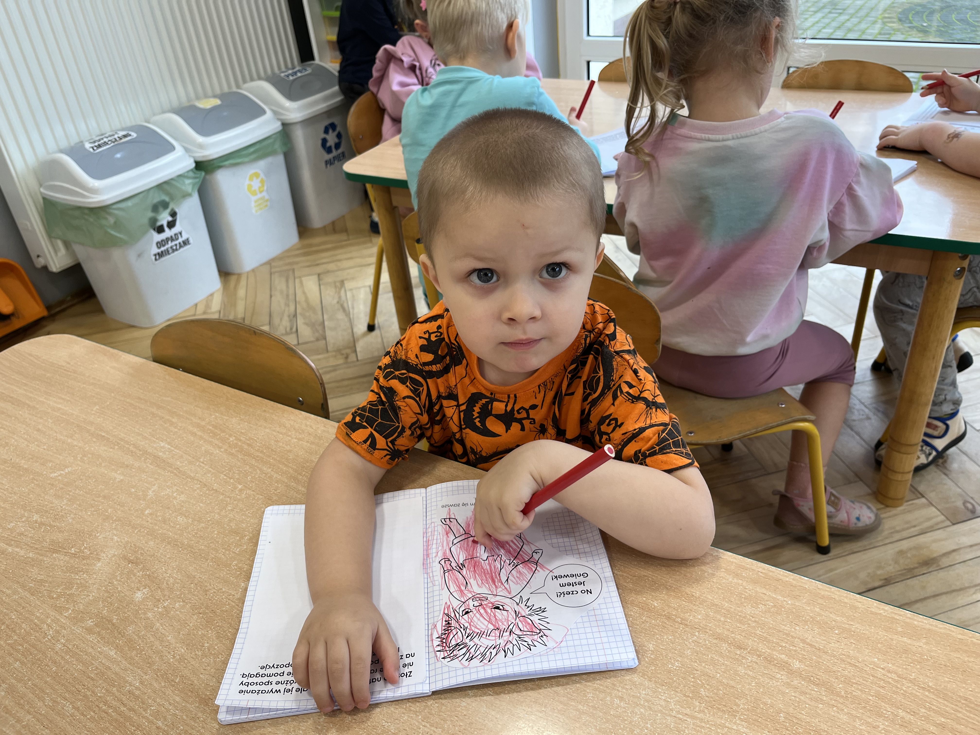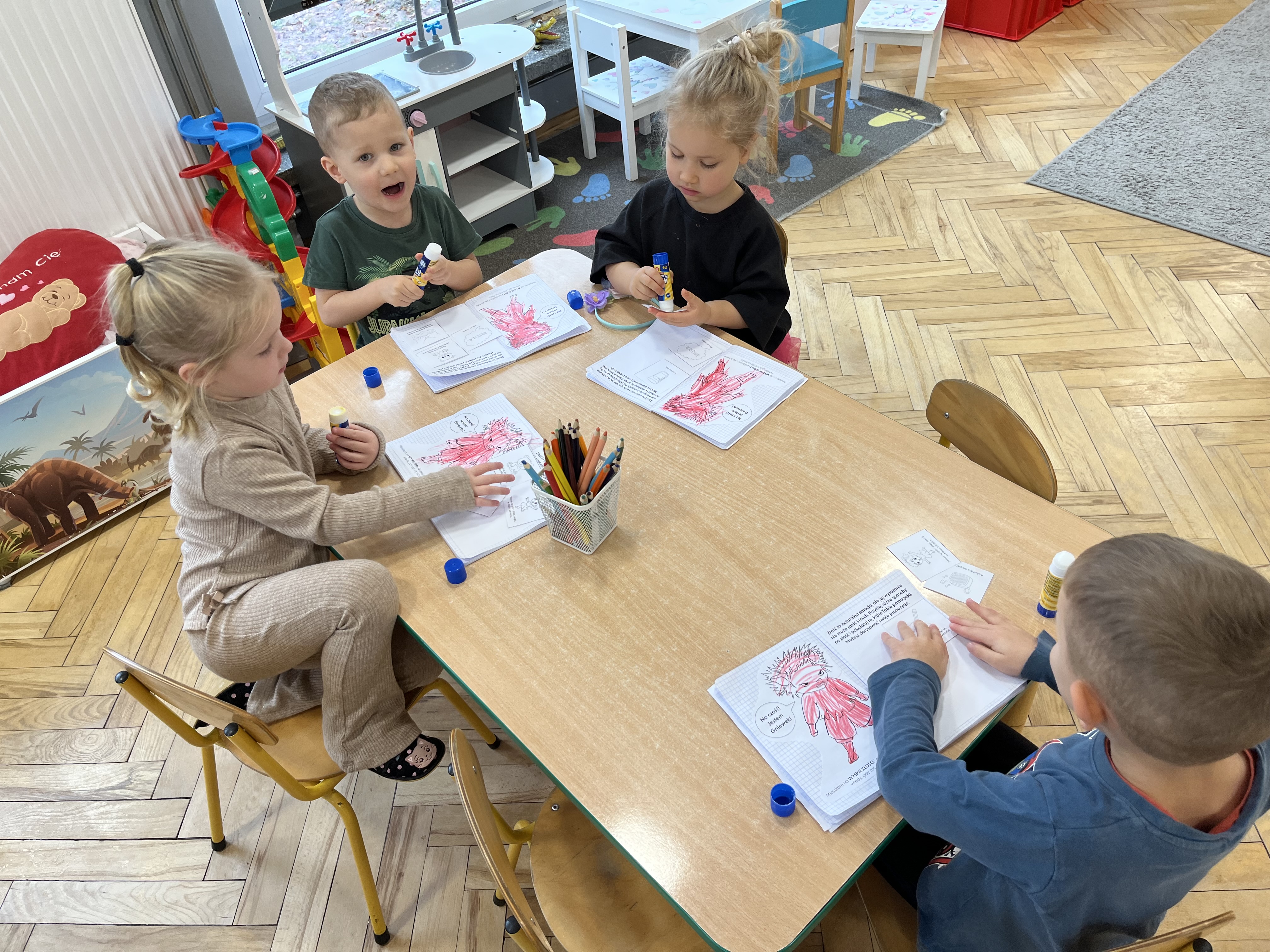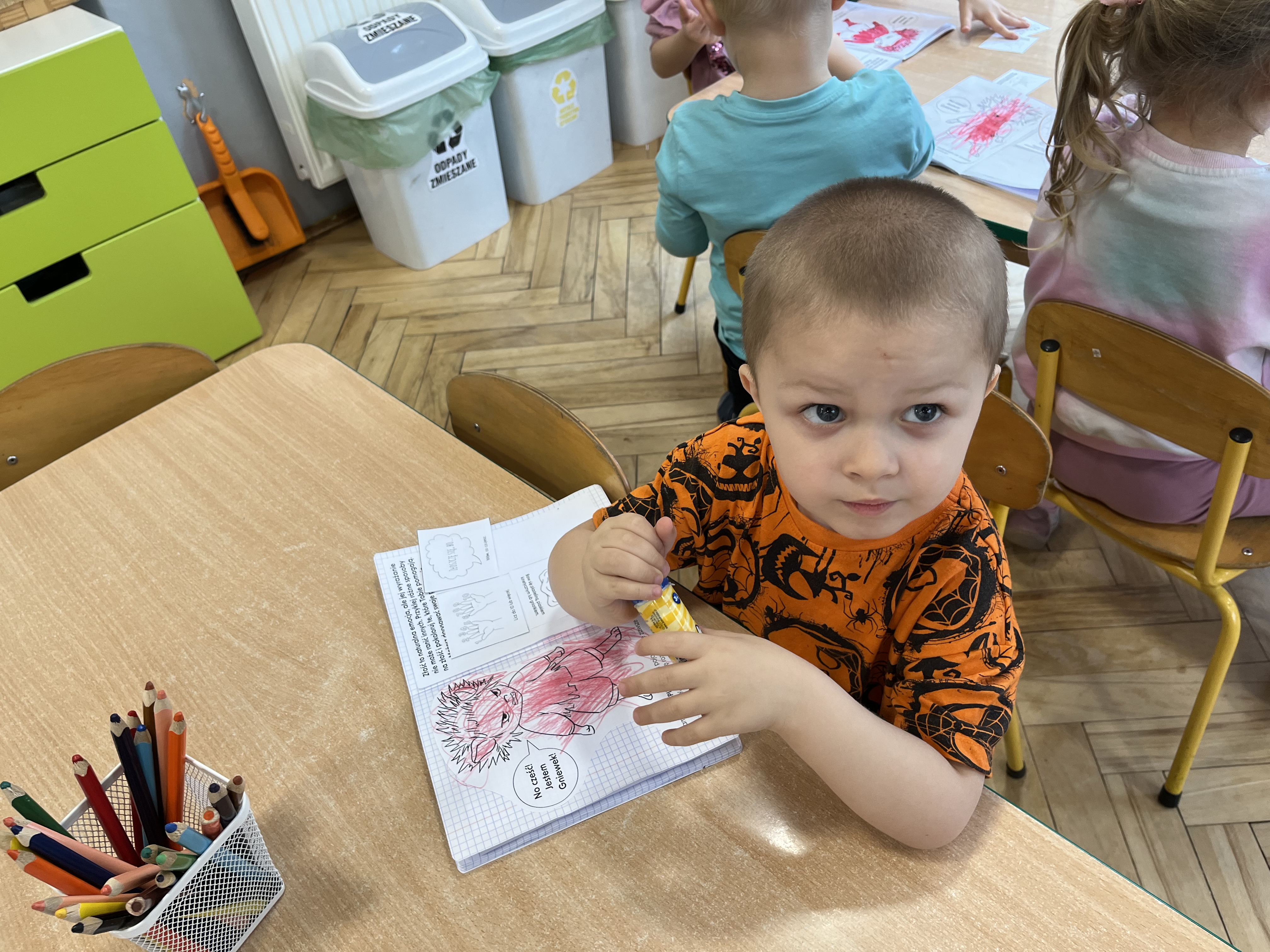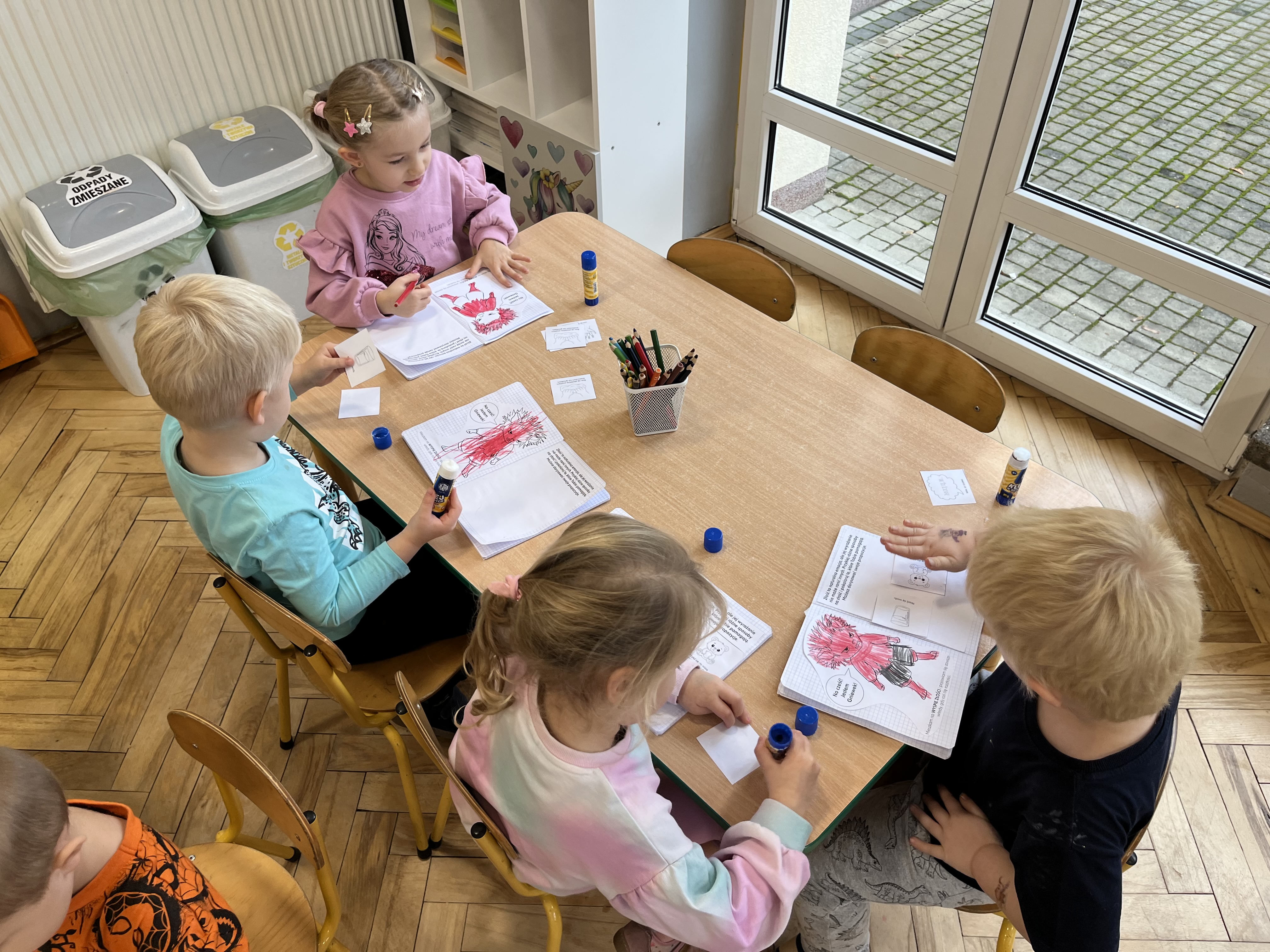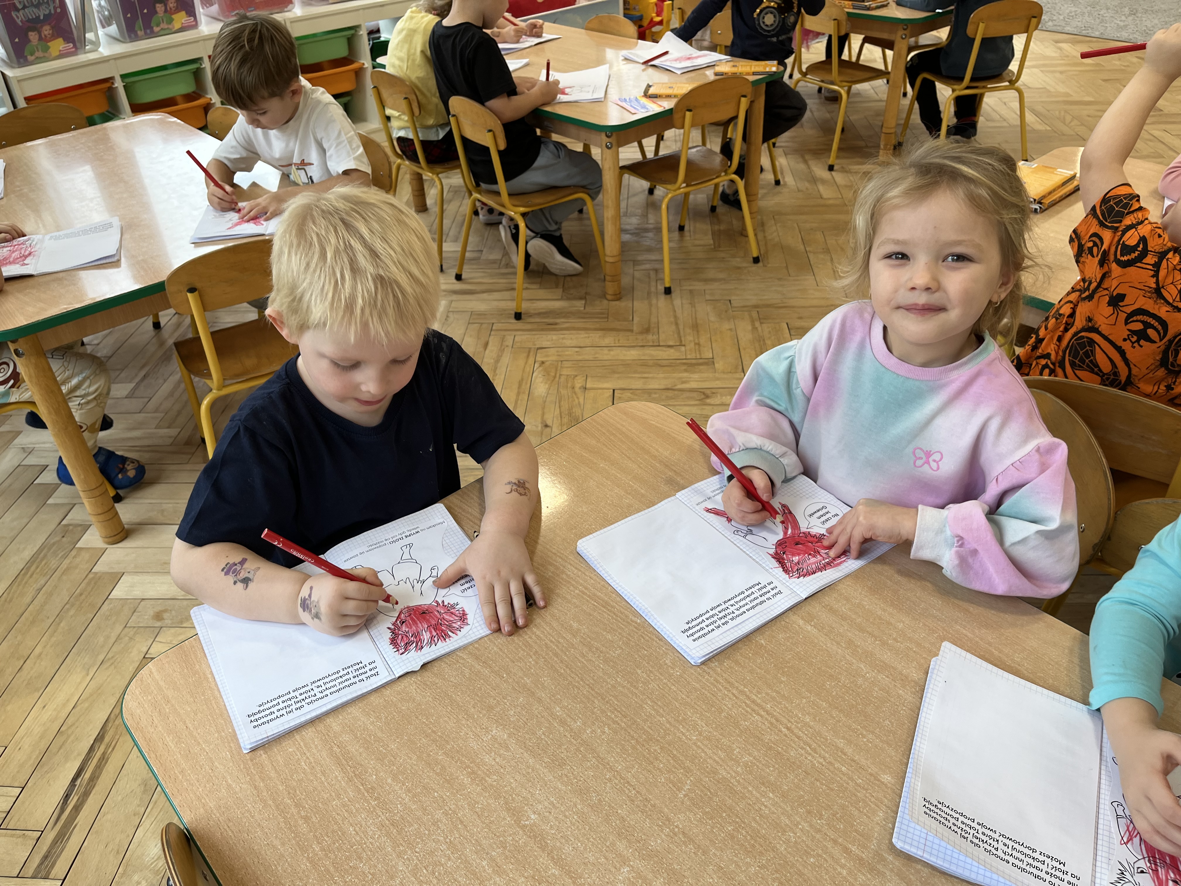 W trakcie zajęć dzieci uczestniczyły w prostym doświadczeniu z balonem, które obrazowało narastanie napięcia emocjonalnego. Przedszkolaki zauważyły, że tłumienie złości może prowadzić do „wybuchu”, natomiast mówienie o uczuciach i stosowanie odpowiednich sposobów pomaga to napięcie zmniejszyć. Wspólnie stworzyliśmy „bank pomysłów na złość”, w którym znalazły się m.in. głębokie oddechy, ruch, rysowanie, przytulanie, rozmowa o emocjach czy chwila wyciszenia. Dzieci pracowały również z emocjonalną książeczką – wklejały sylwetę Gniewka, kolorowały go oraz zaznaczały własne sposoby radzenia sobie ze złością. Zwracaliśmy uwagę, że na nasze emocje wpływa także zmęczenie czy głód, co było widoczne w historii Martynki.