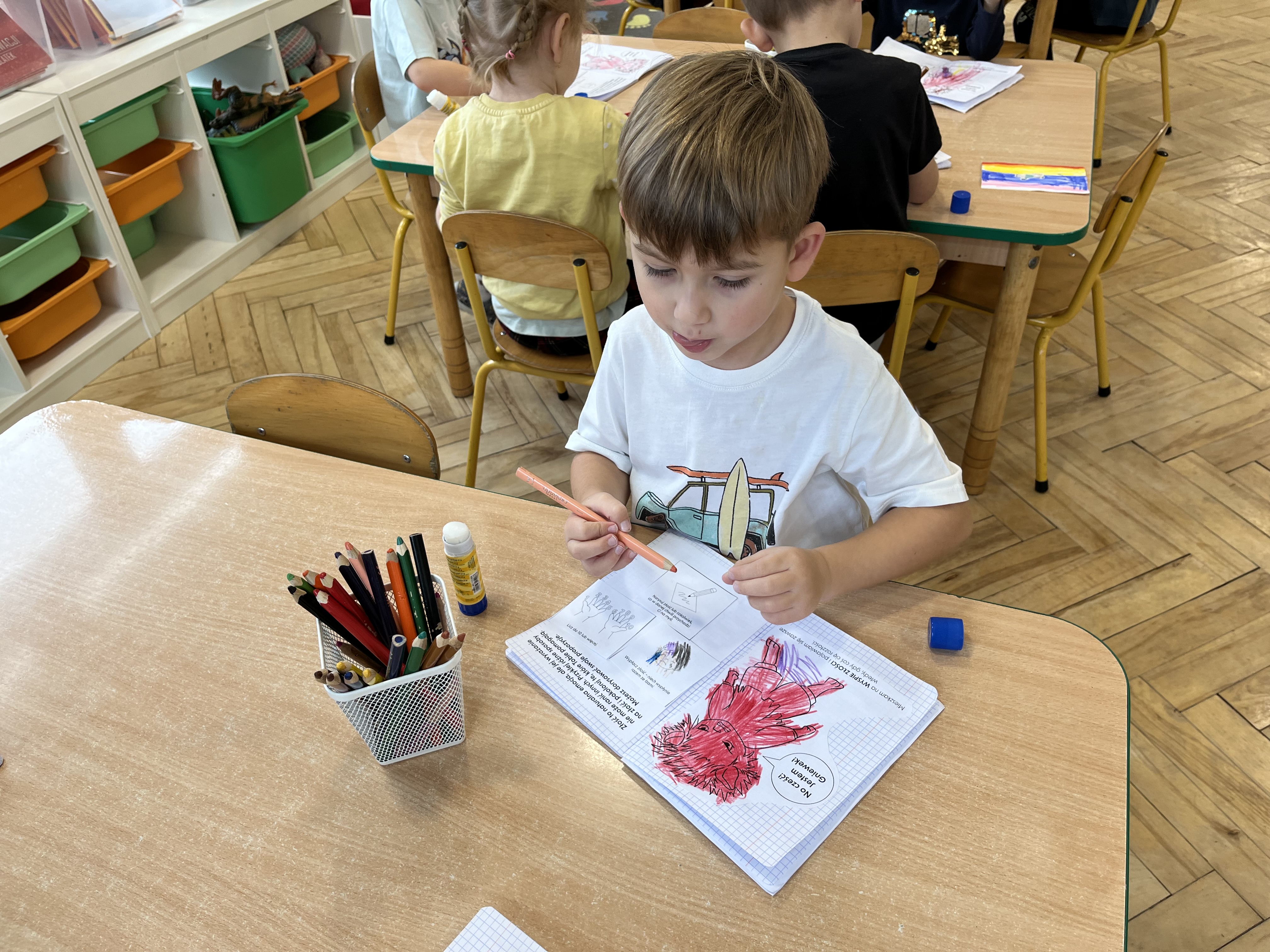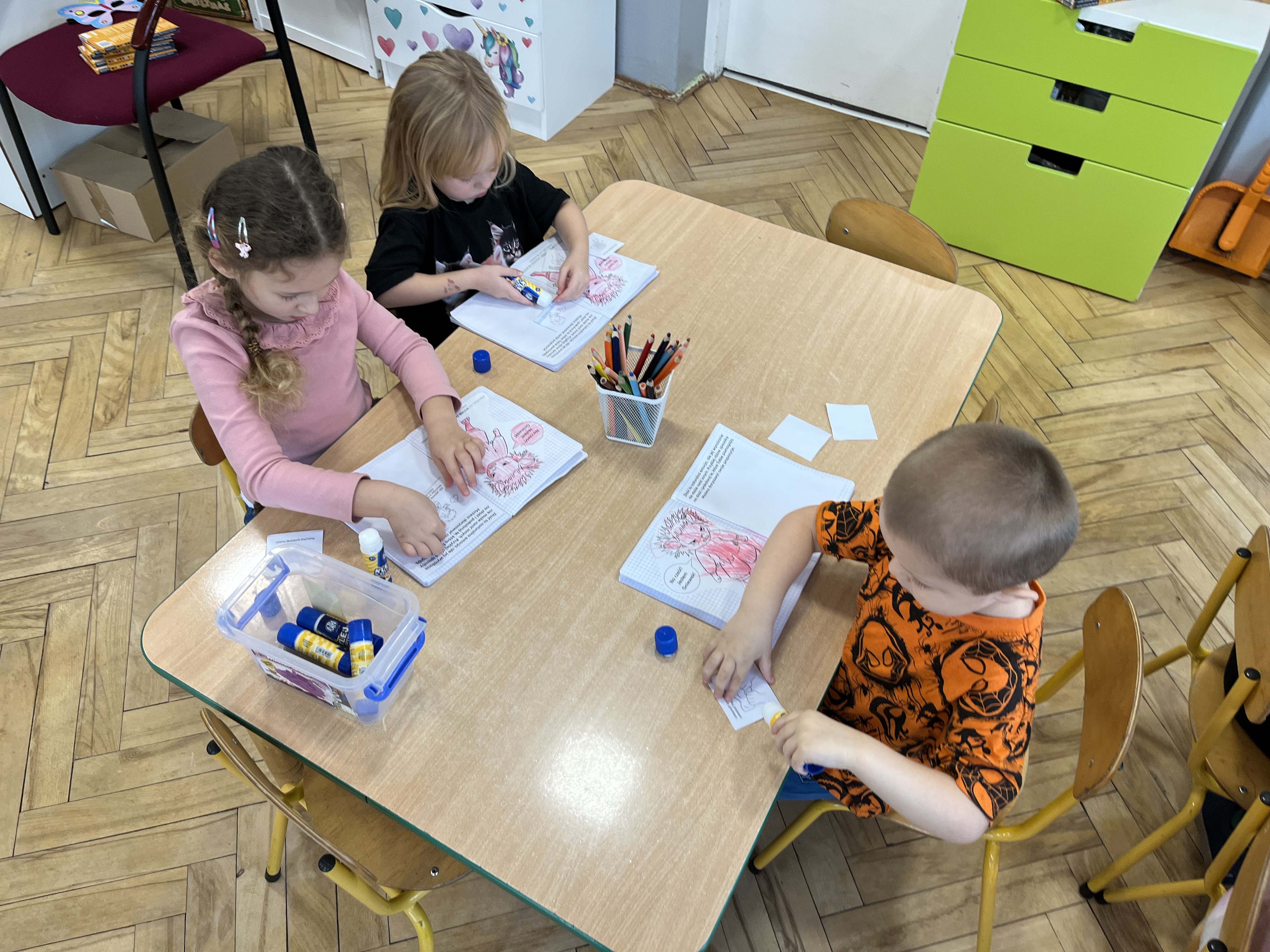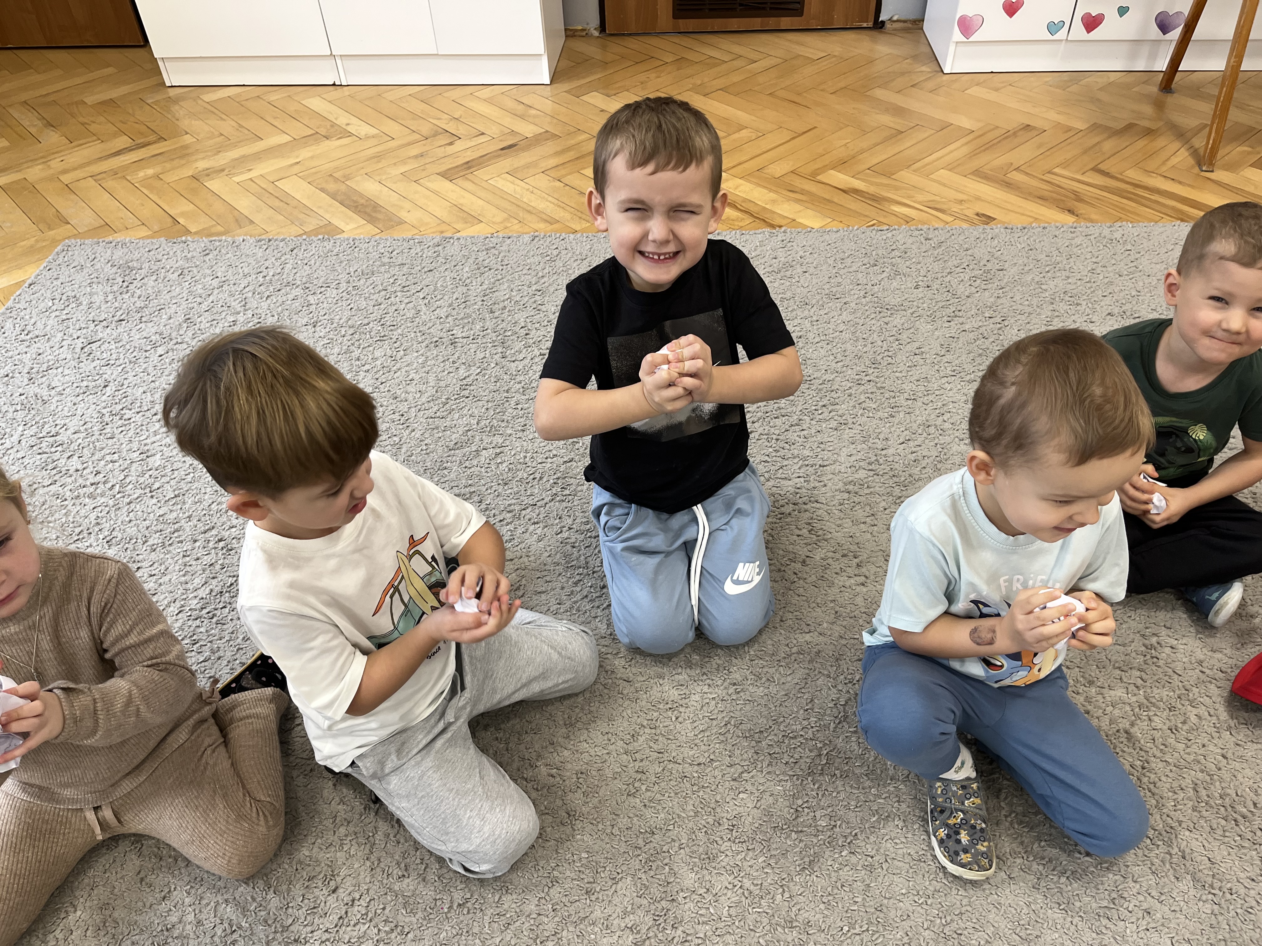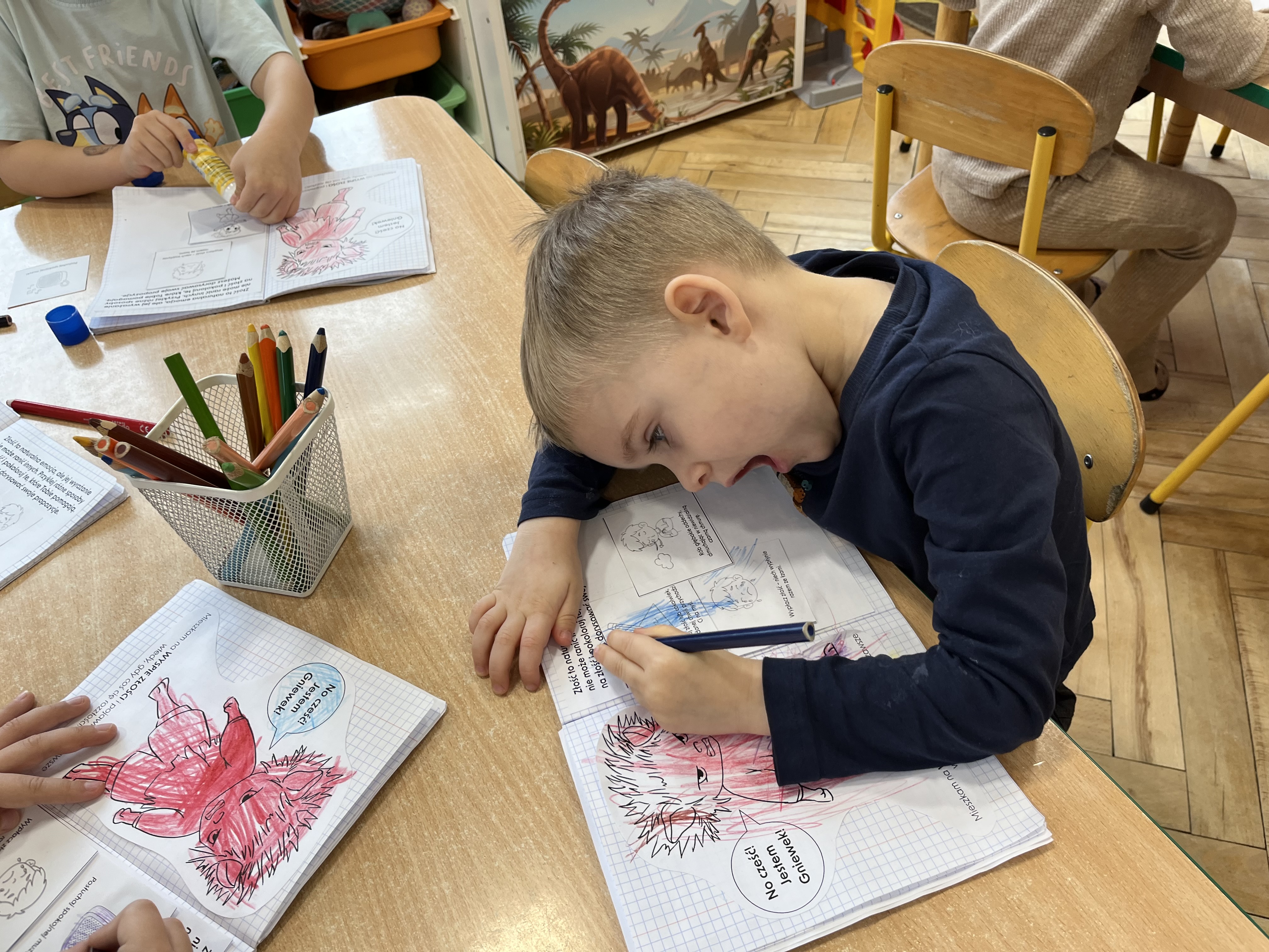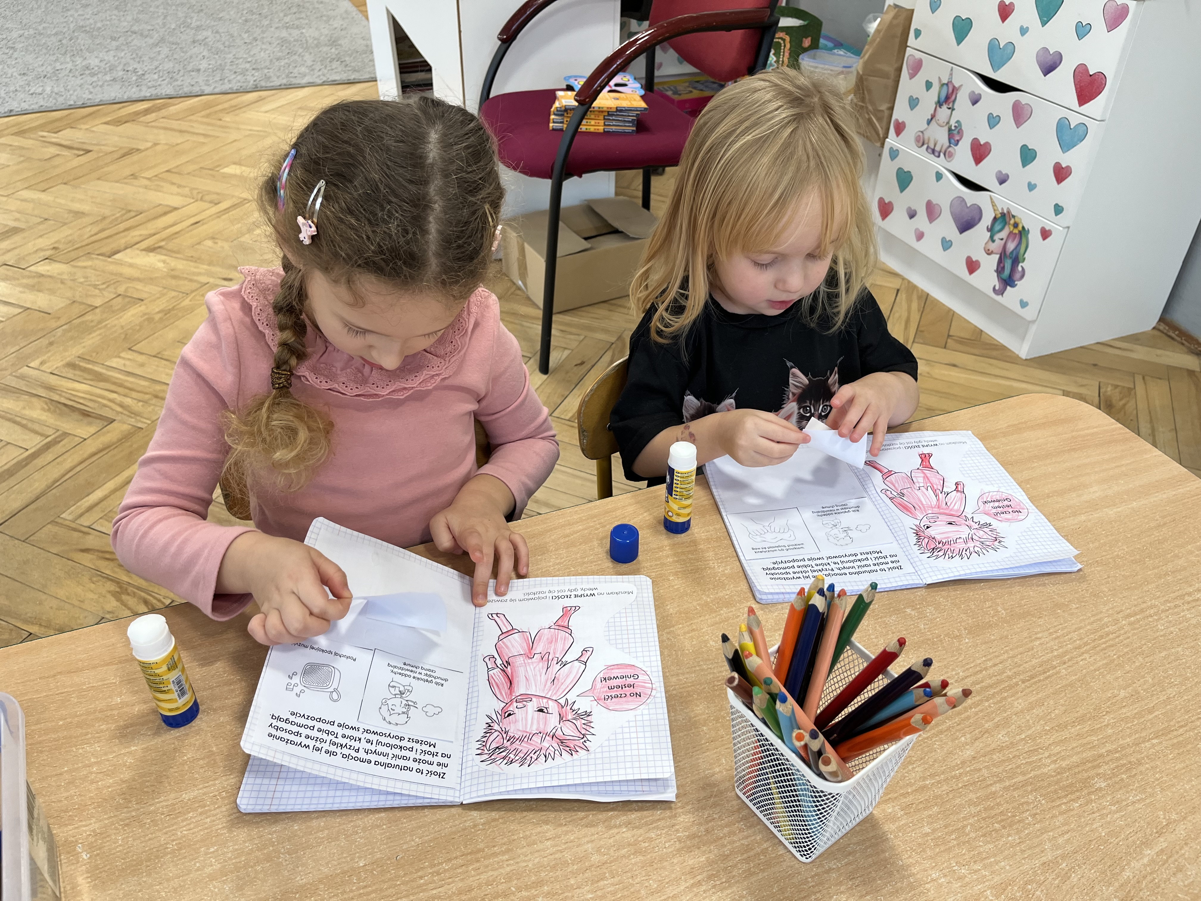 W trakcie zajęć dzieci uczestniczyły w prostym doświadczeniu z balonem, które obrazowało narastanie napięcia emocjonalnego. Przedszkolaki zauważyły, że tłumienie złości może prowadzić do „wybuchu”, natomiast mówienie o uczuciach i stosowanie odpowiednich sposobów pomaga to napięcie zmniejszyć. Wspólnie stworzyliśmy „bank pomysłów na złość”, w którym znalazły się m.in. głębokie oddechy, ruch, rysowanie, przytulanie, rozmowa o emocjach czy chwila wyciszenia. Dzieci pracowały również z emocjonalną książeczką – wklejały sylwetę Gniewka, kolorowały go oraz zaznaczały własne sposoby radzenia sobie ze złością. Zwracaliśmy uwagę, że na nasze emocje wpływa także zmęczenie czy głód, co było widoczne w historii Martynki.