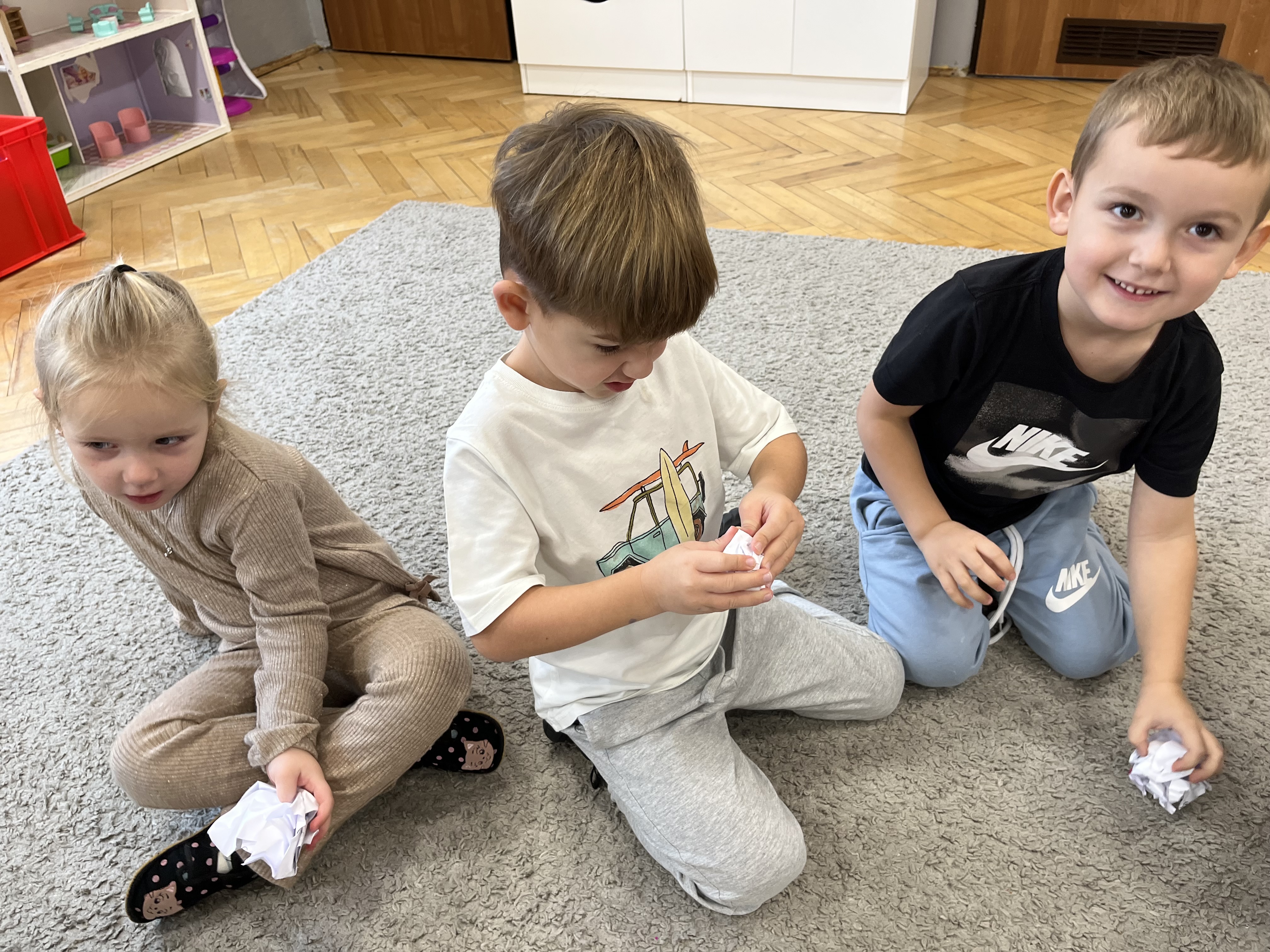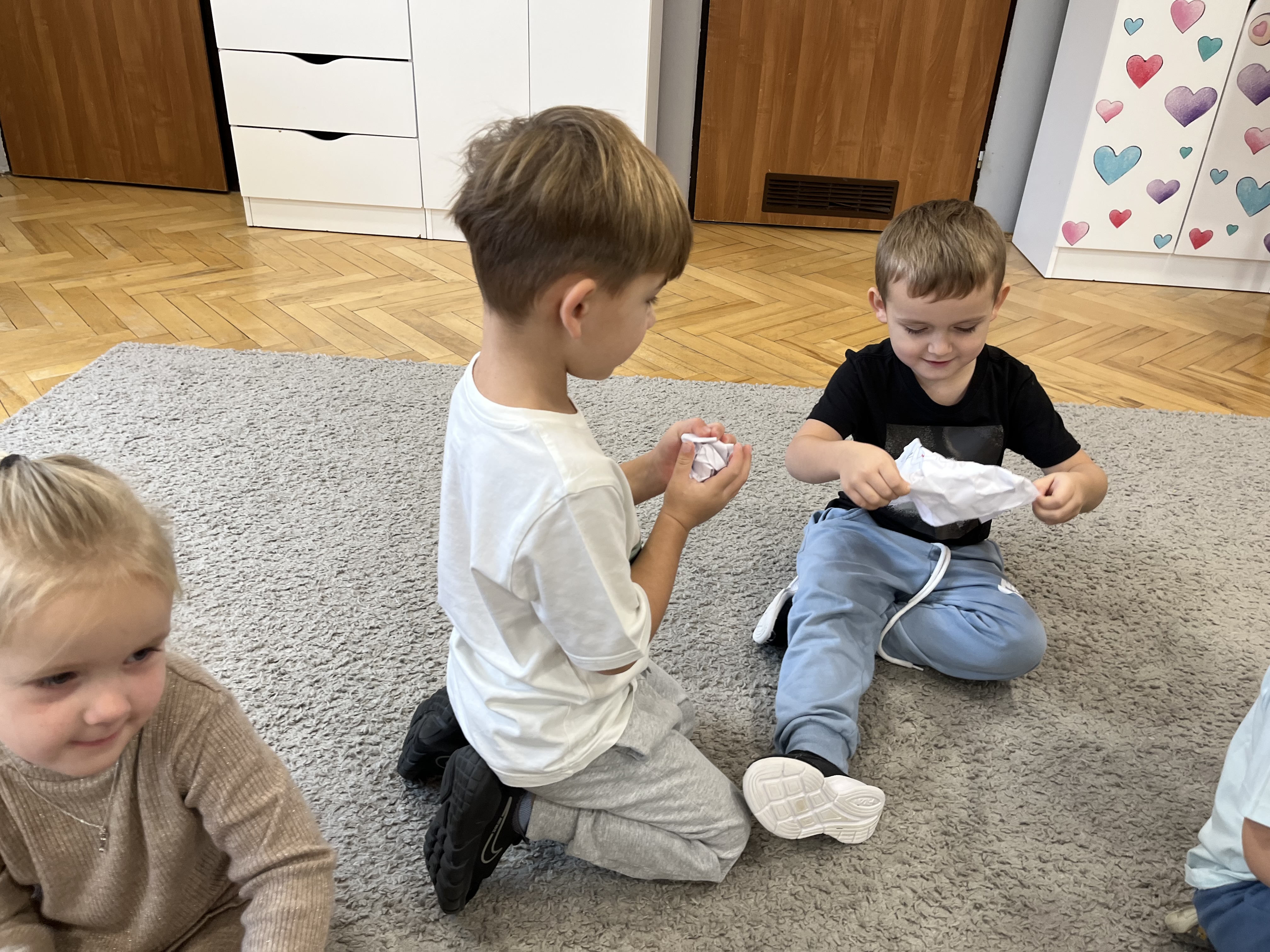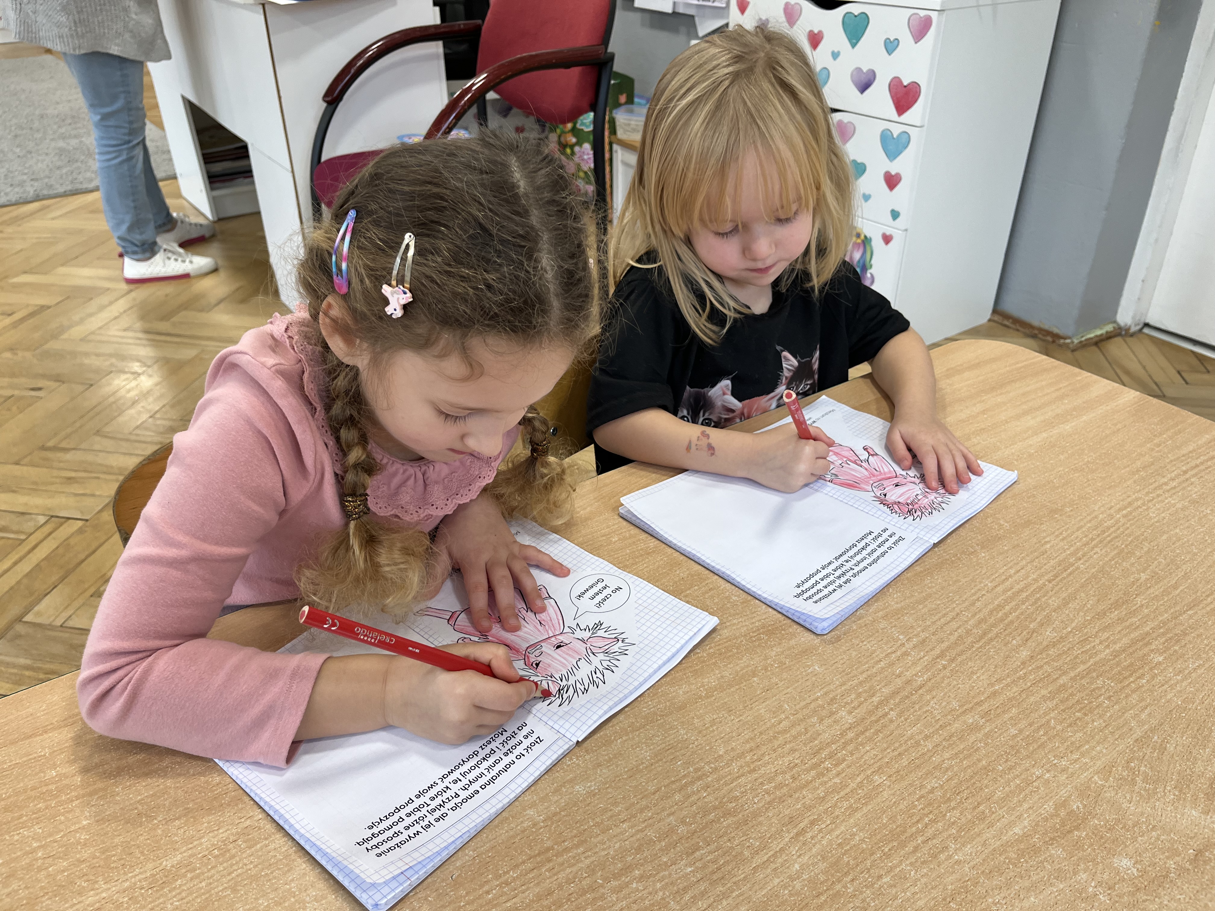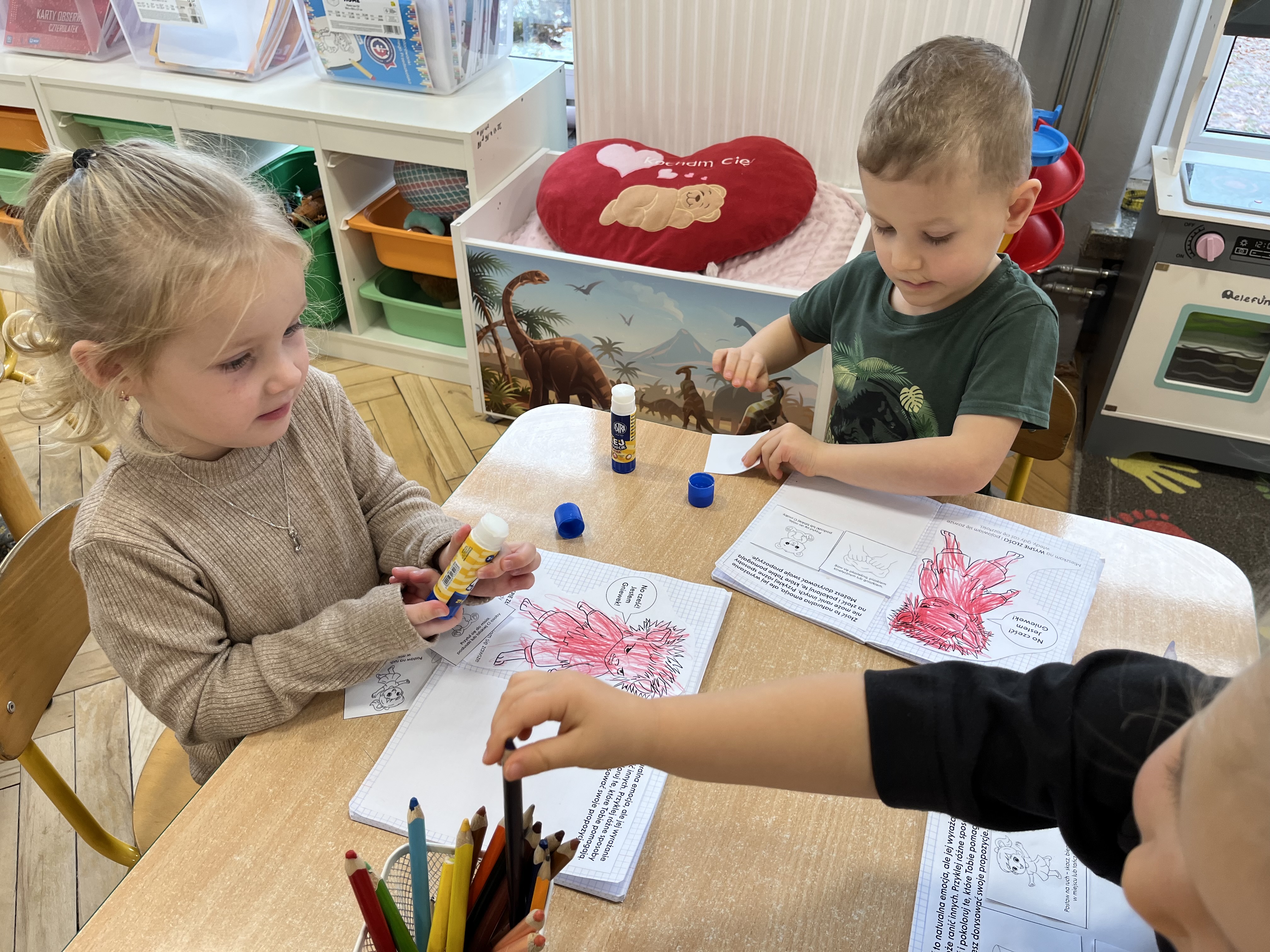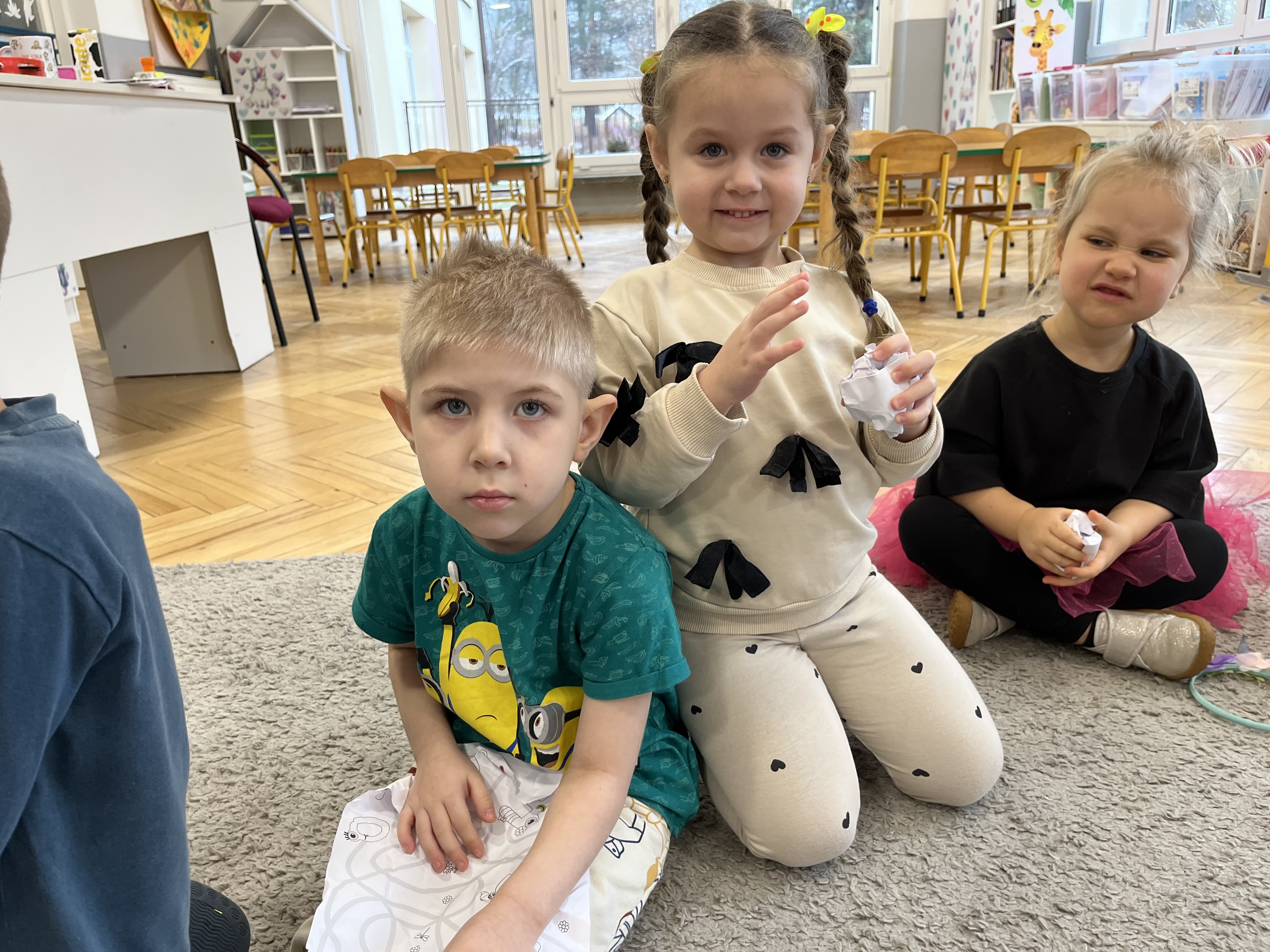 W trakcie zajęć dzieci uczestniczyły w prostym doświadczeniu z balonem, które obrazowało narastanie napięcia emocjonalnego. Przedszkolaki zauważyły, że tłumienie złości może prowadzić do „wybuchu”, natomiast mówienie o uczuciach i stosowanie odpowiednich sposobów pomaga to napięcie zmniejszyć. Wspólnie stworzyliśmy „bank pomysłów na złość”, w którym znalazły się m.in. głębokie oddechy, ruch, rysowanie, przytulanie, rozmowa o emocjach czy chwila wyciszenia. Dzieci pracowały również z emocjonalną książeczką – wklejały sylwetę Gniewka, kolorowały go oraz zaznaczały własne sposoby radzenia sobie ze złością. Zwracaliśmy uwagę, że na nasze emocje wpływa także zmęczenie czy głód, co było widoczne w historii Martynki.
