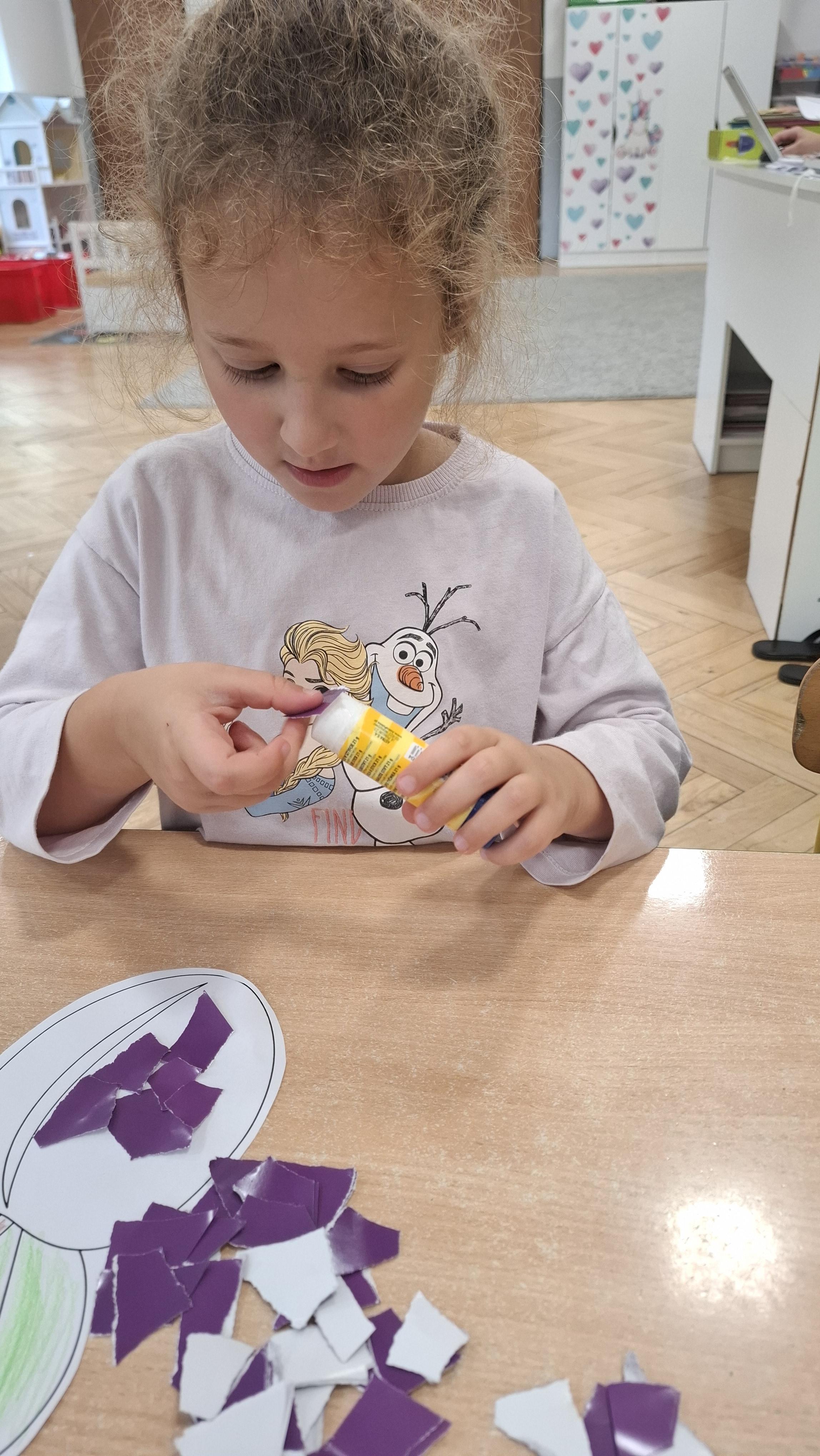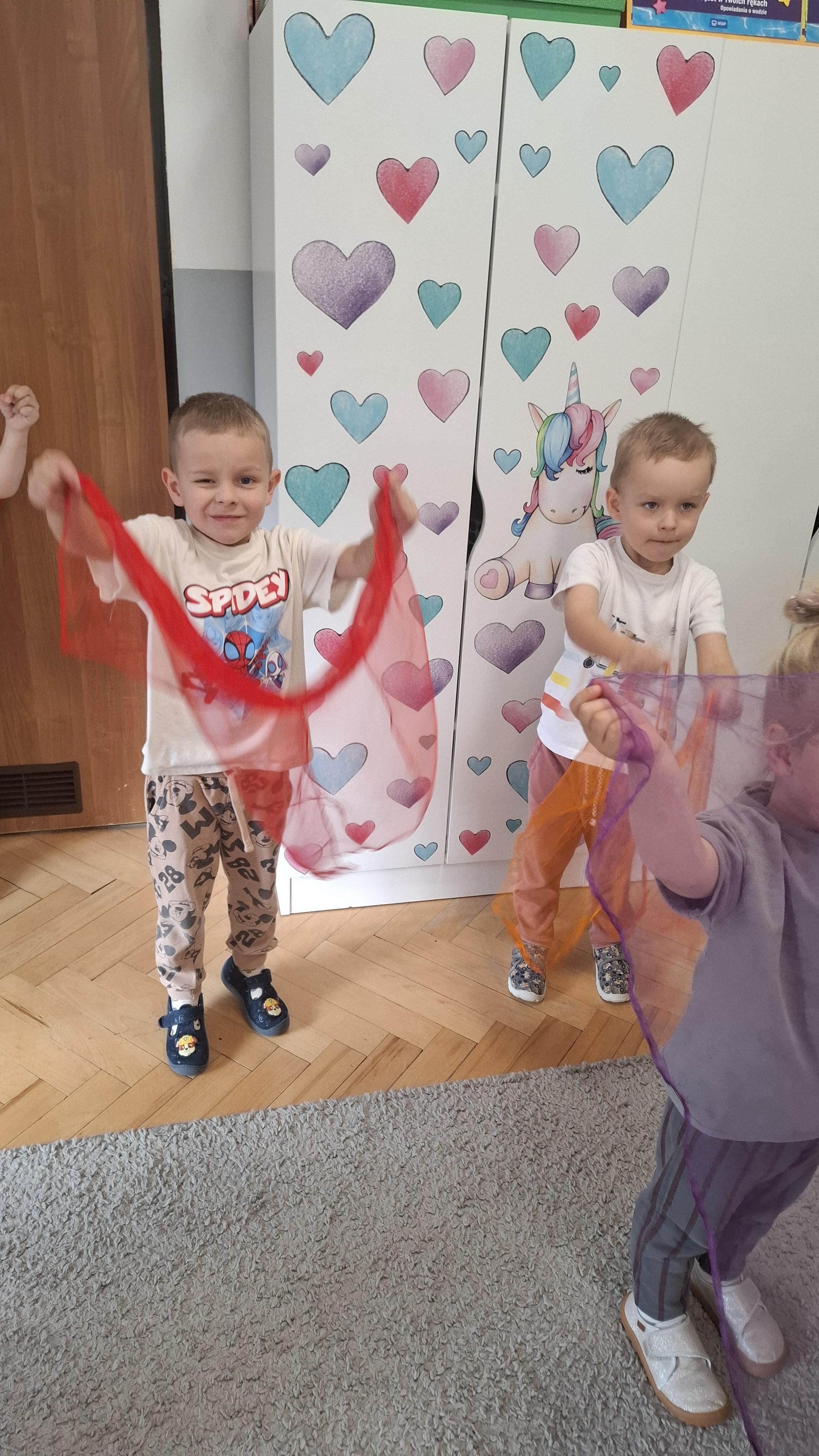 Nie zabrakło także ważnych rozmów o bezpieczeństwie. Przedszkolaki wysłuchały wiersza D. Gellnerowej „Światła sygnalizatora”, dzięki któremu dowiedziały się, co oznaczają kolory świateł na drodze. W trakcie zabaw matematycznych ćwiczyły również rozróżnianie prawej i lewej strony oraz poznawały znaczenie wybranych znaków drogowych.