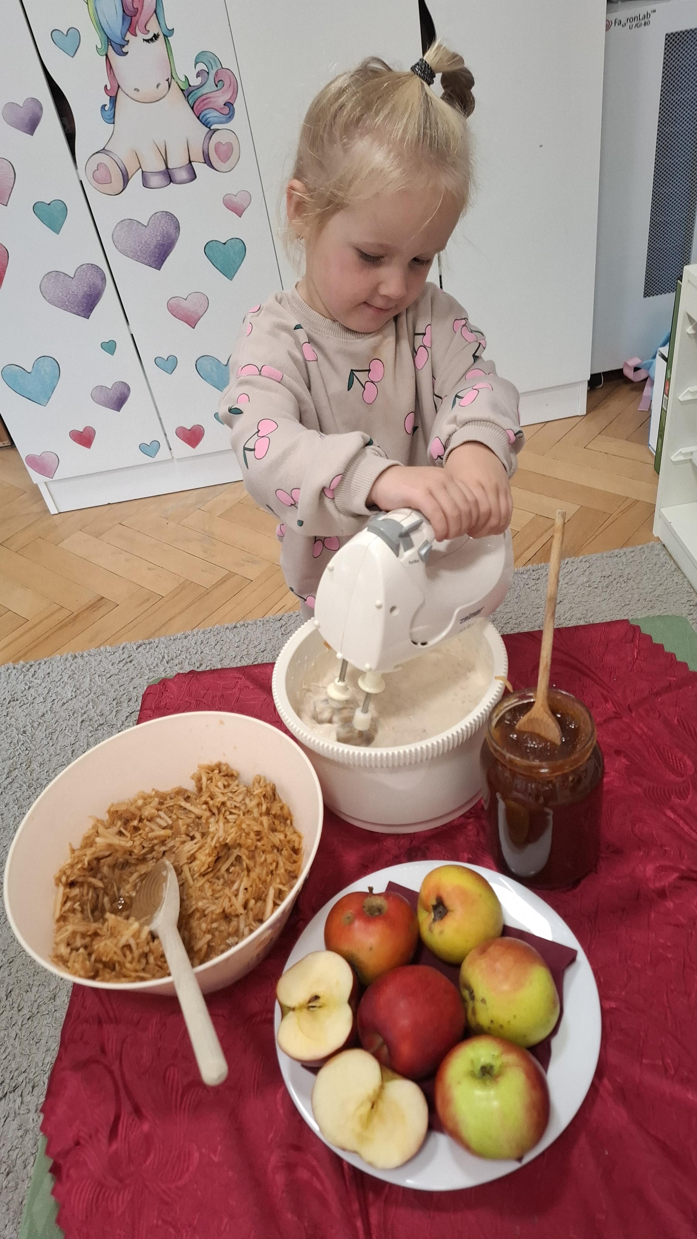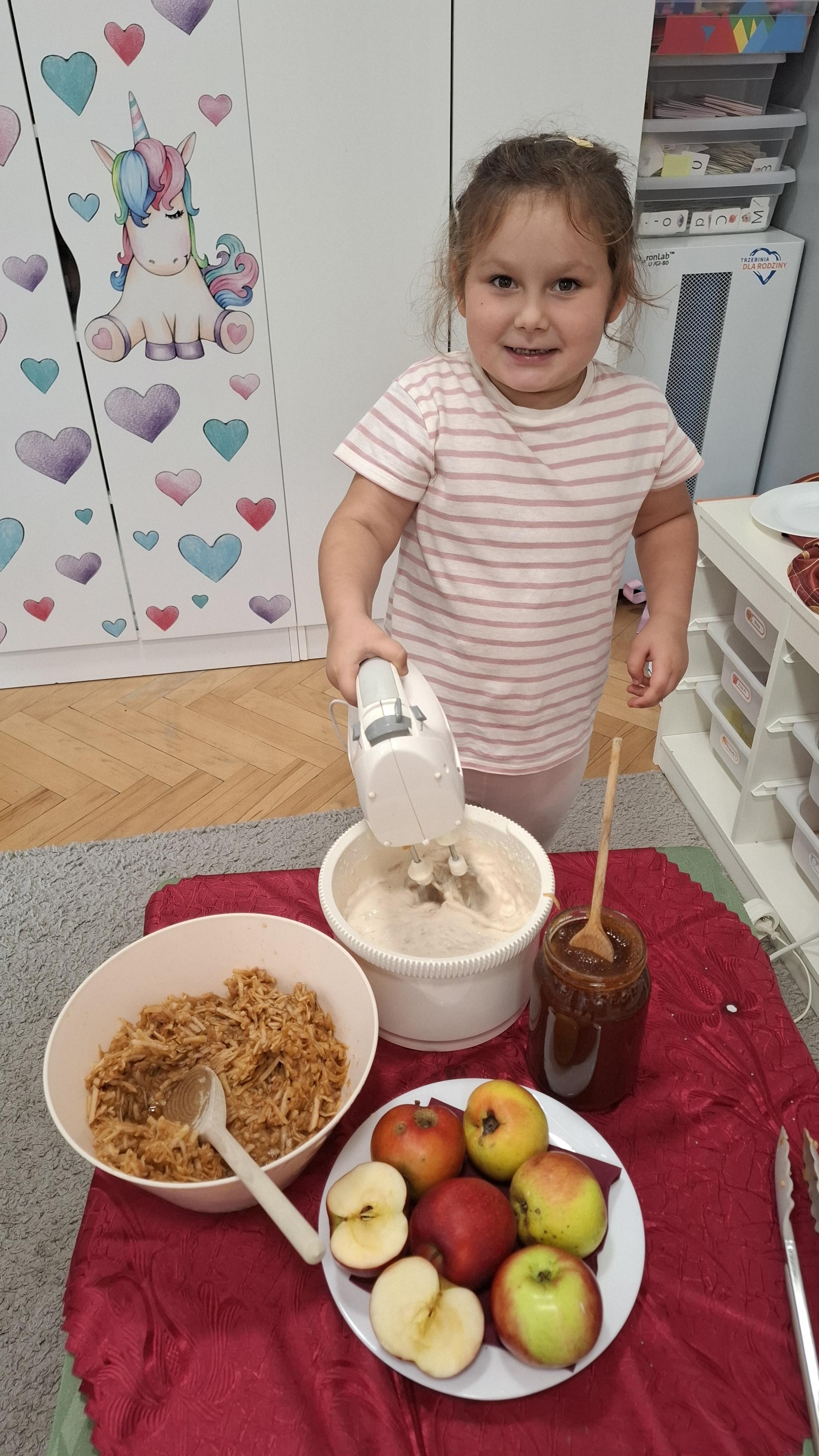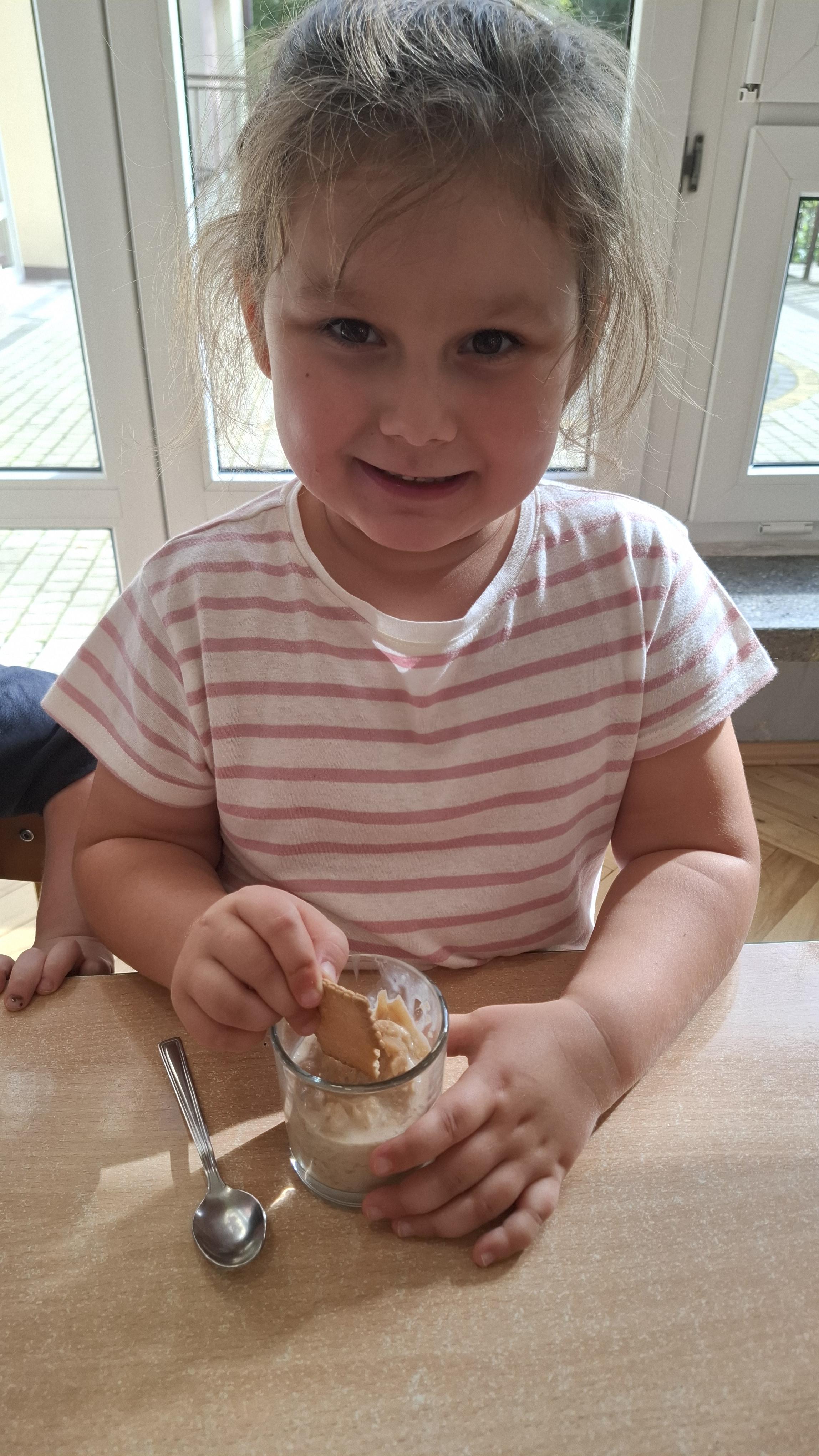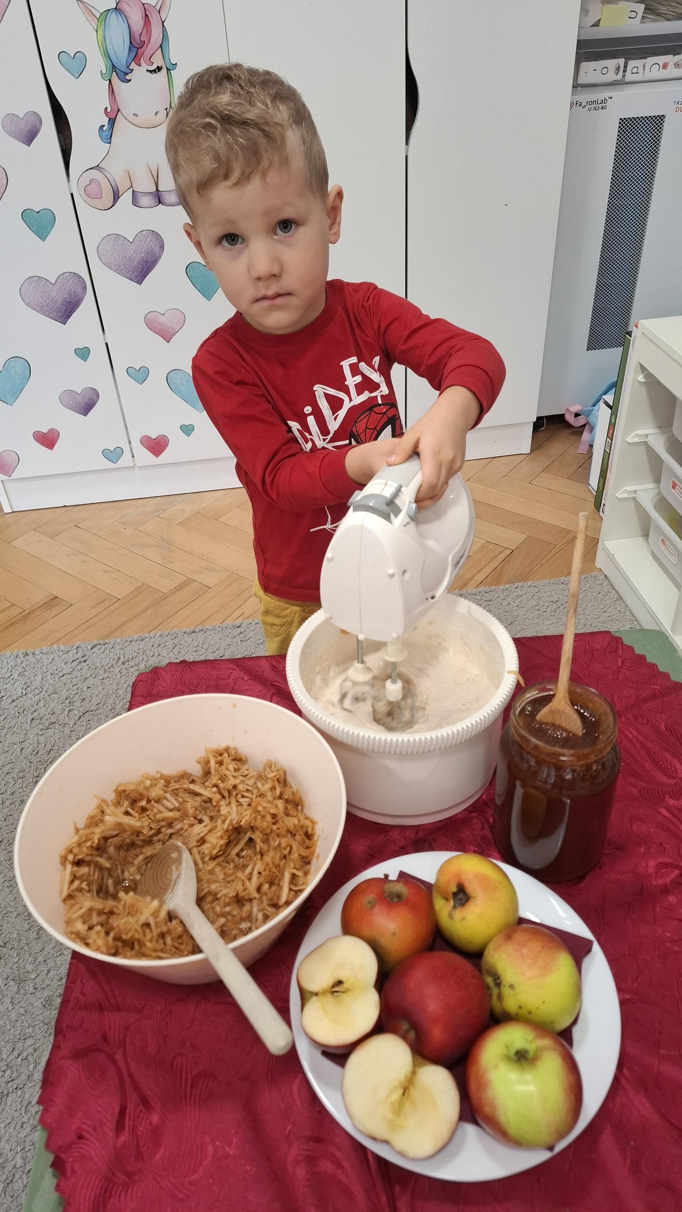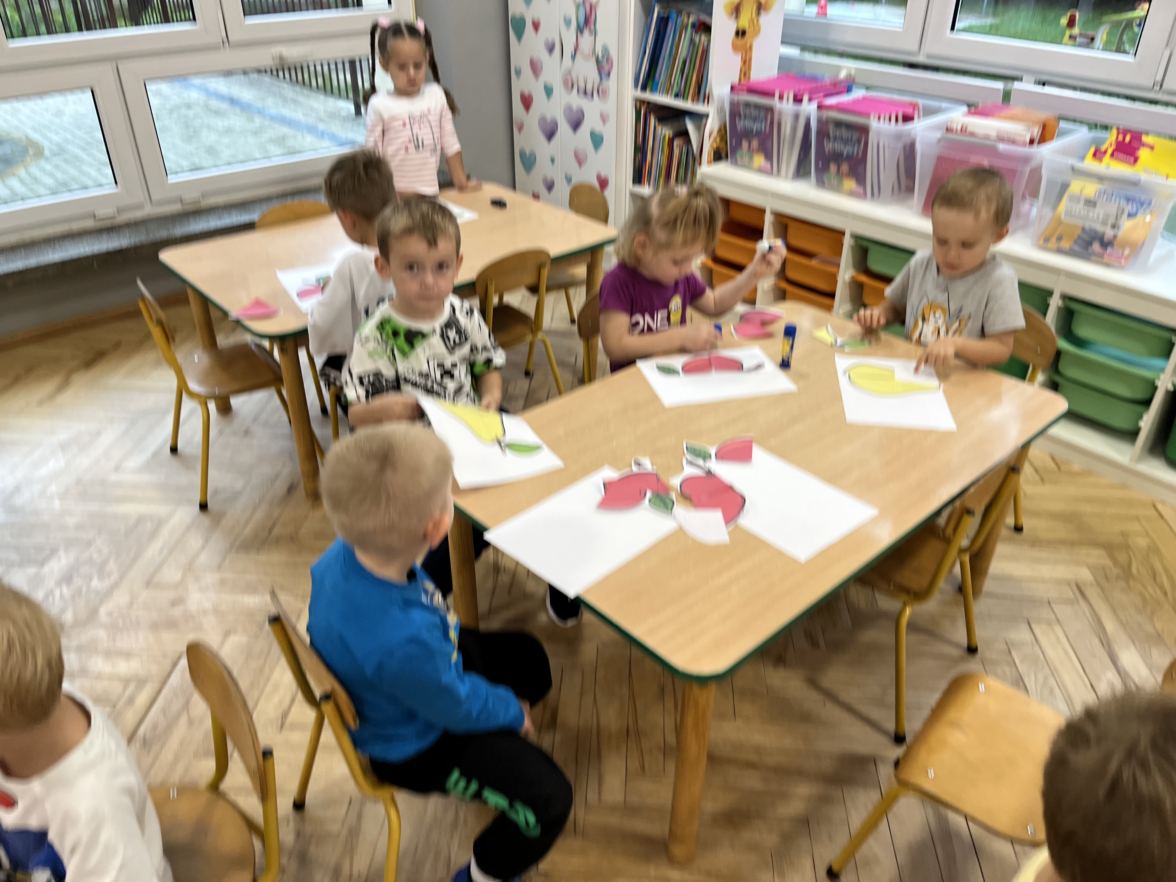 Miniony tydzień był pełen owocowych tematów – dzieci utrwalały nazwy owoców oraz uczyły się dzielić słowa na sylaby. Podczas zabaw „Co rośnie w sadzie i co z tego będzie?” oraz „Owoce i dżem” dowiedziały się, jakie smakołyki i produkty można przygotować z owoców. Poznały również piramidę i talerz żywieniowy, wskazując, gdzie znajdują się owoce i dlaczego są one tak ważne dla zdrowia. Co więcej, dzieci same przygotowały pyszny i zdrowy deser z jogurtu naturalnego, jabłka i miodu – smakował wyśmienicie i dał im wiele radości!