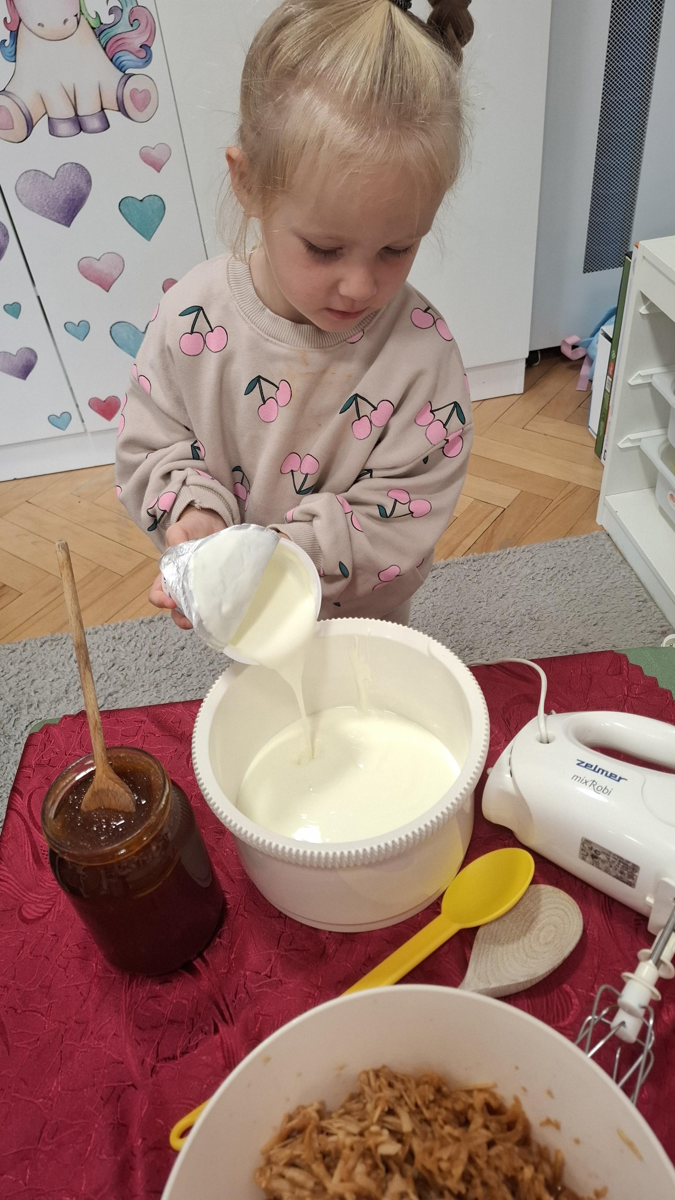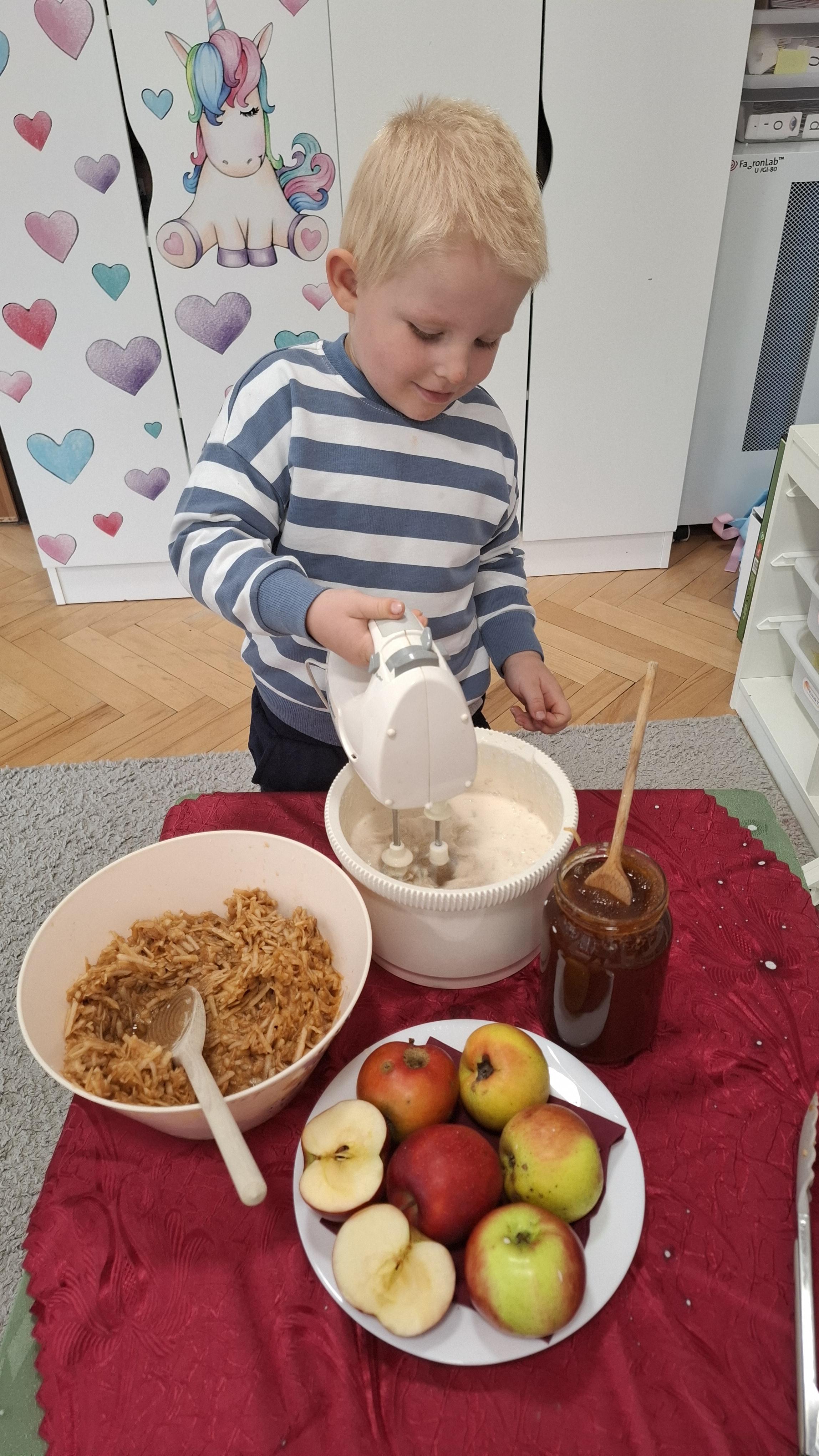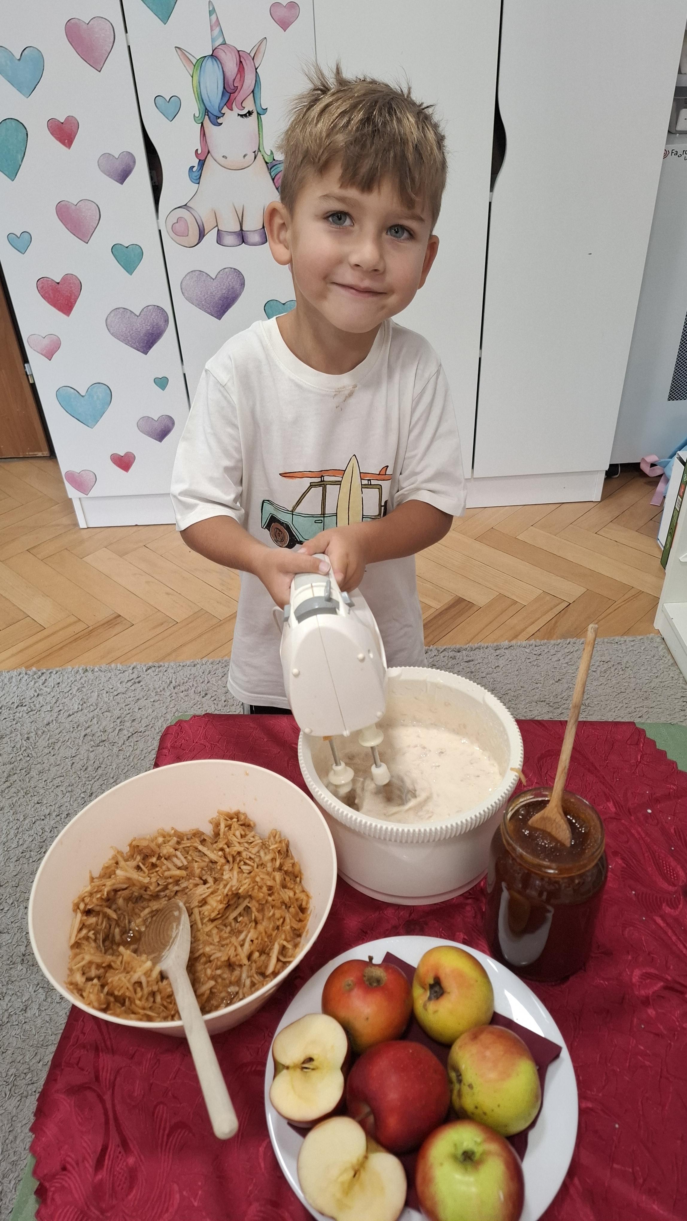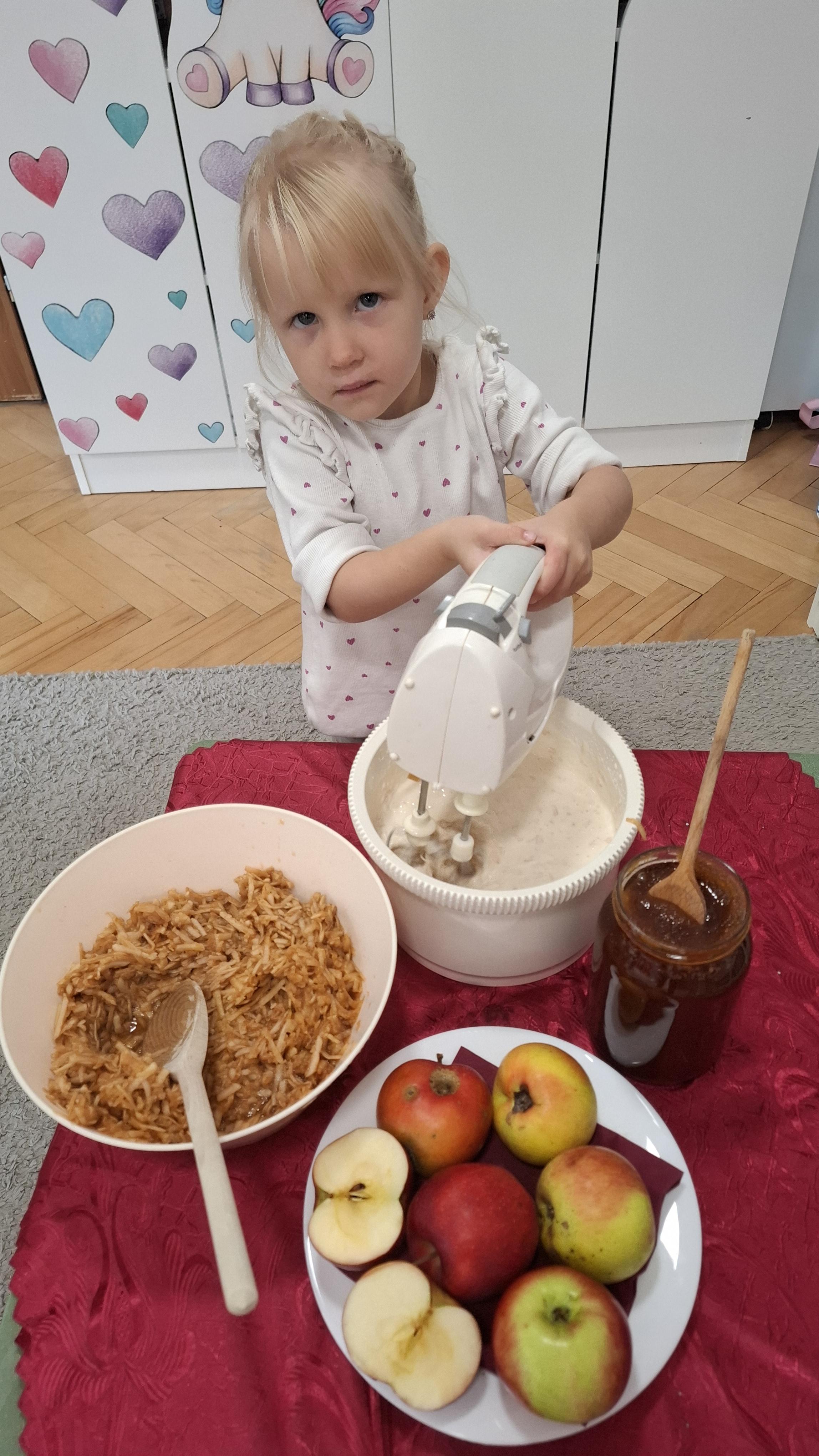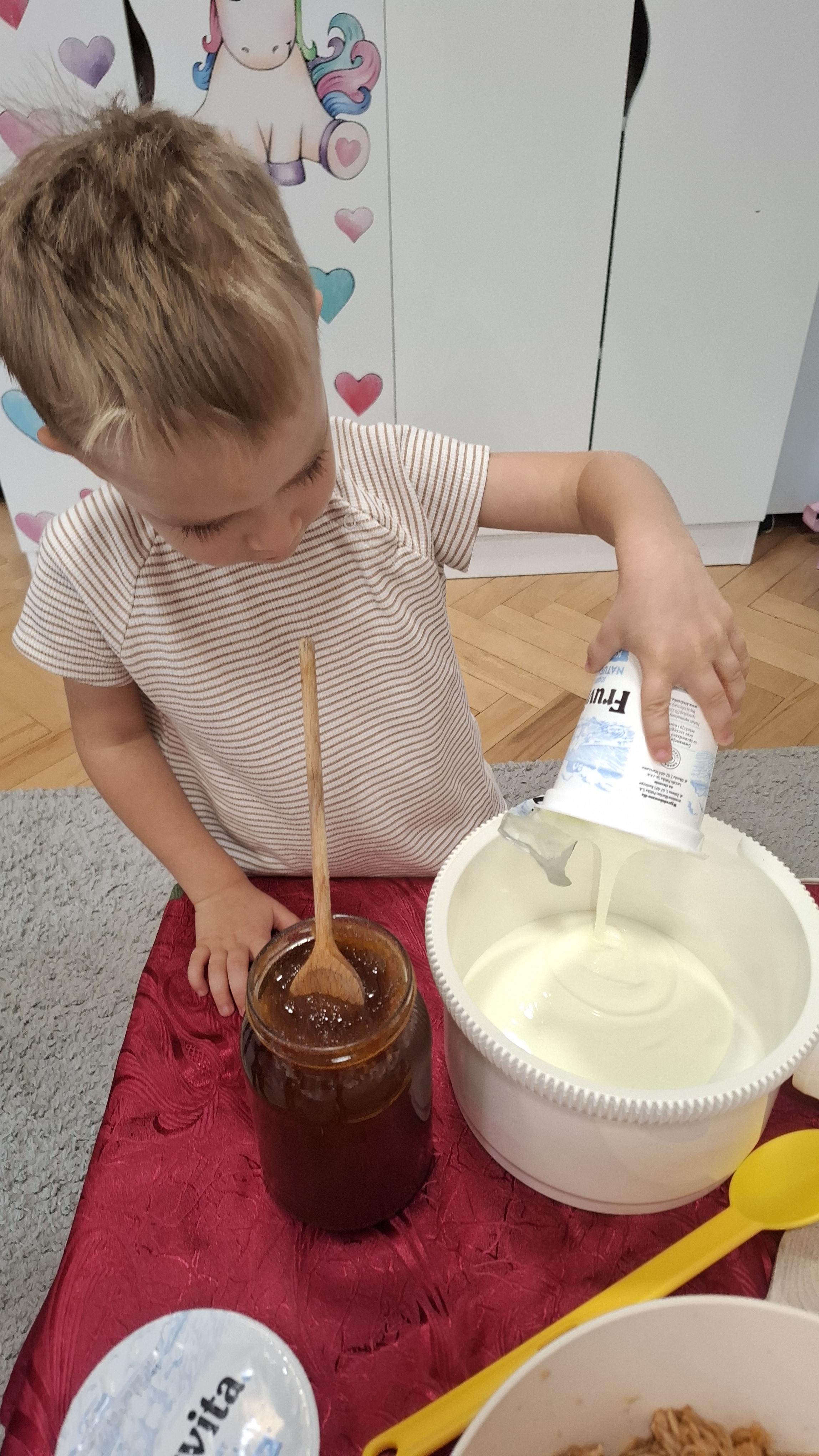Miniony tydzień był pełen owocowych tematów – dzieci utrwalały nazwy owoców oraz uczyły się dzielić słowa na sylaby. Podczas zabaw „Co rośnie w sadzie i co z tego będzie?” oraz „Owoce i dżem” dowiedziały się, jakie smakołyki i produkty można przygotować z owoców. Poznały również piramidę i talerz żywieniowy, wskazując, gdzie znajdują się owoce i dlaczego są one tak ważne dla zdrowia. Co więcej, dzieci same przygotowały pyszny i zdrowy deser z jogurtu naturalnego, jabłka i miodu – smakował wyśmienicie i dał im wiele radości!