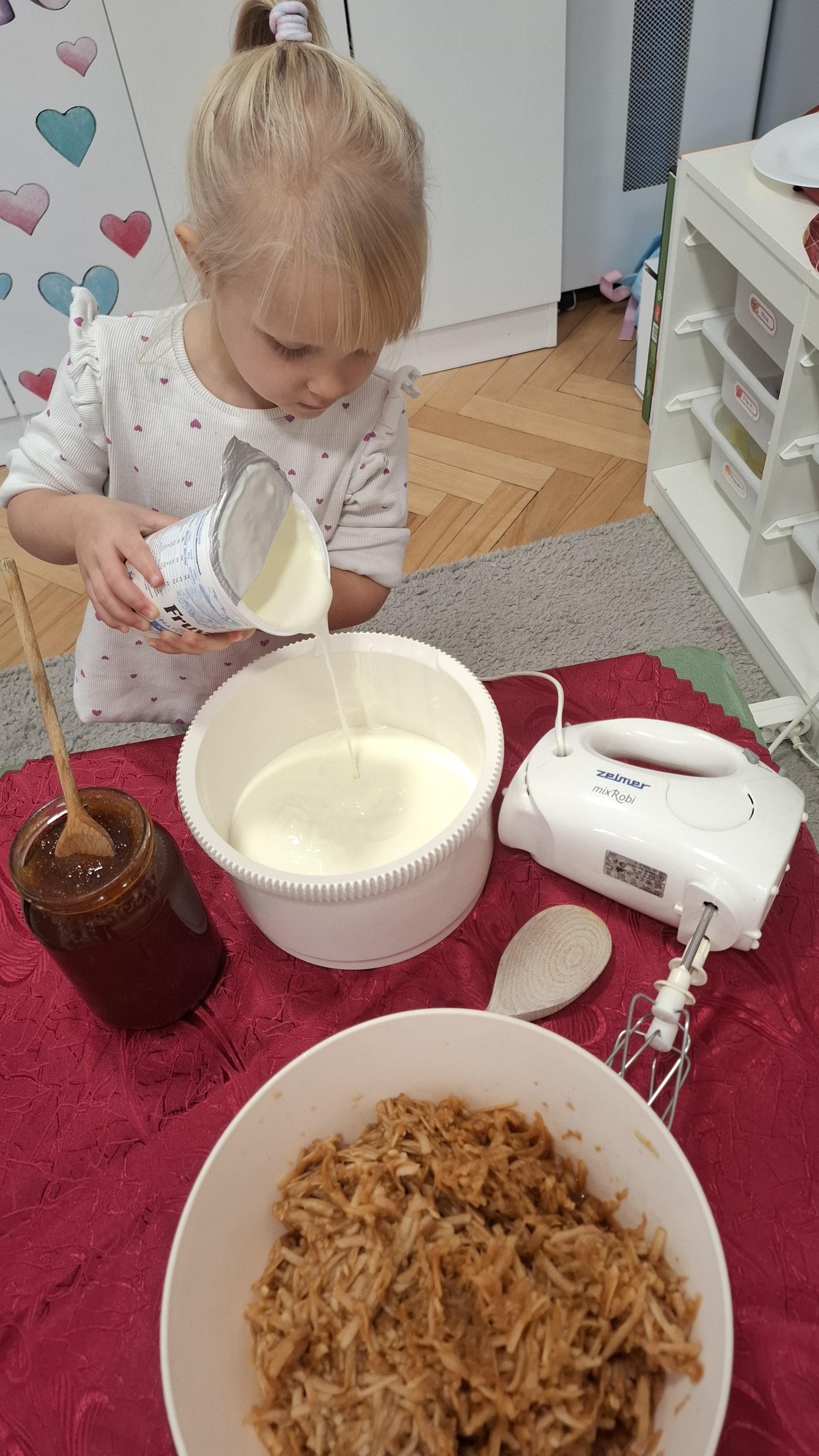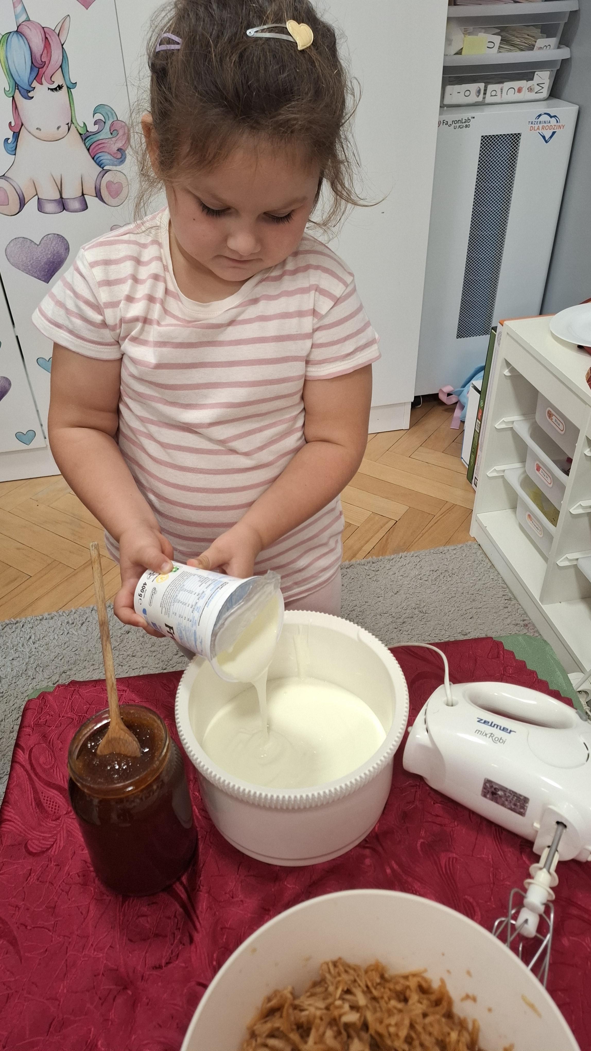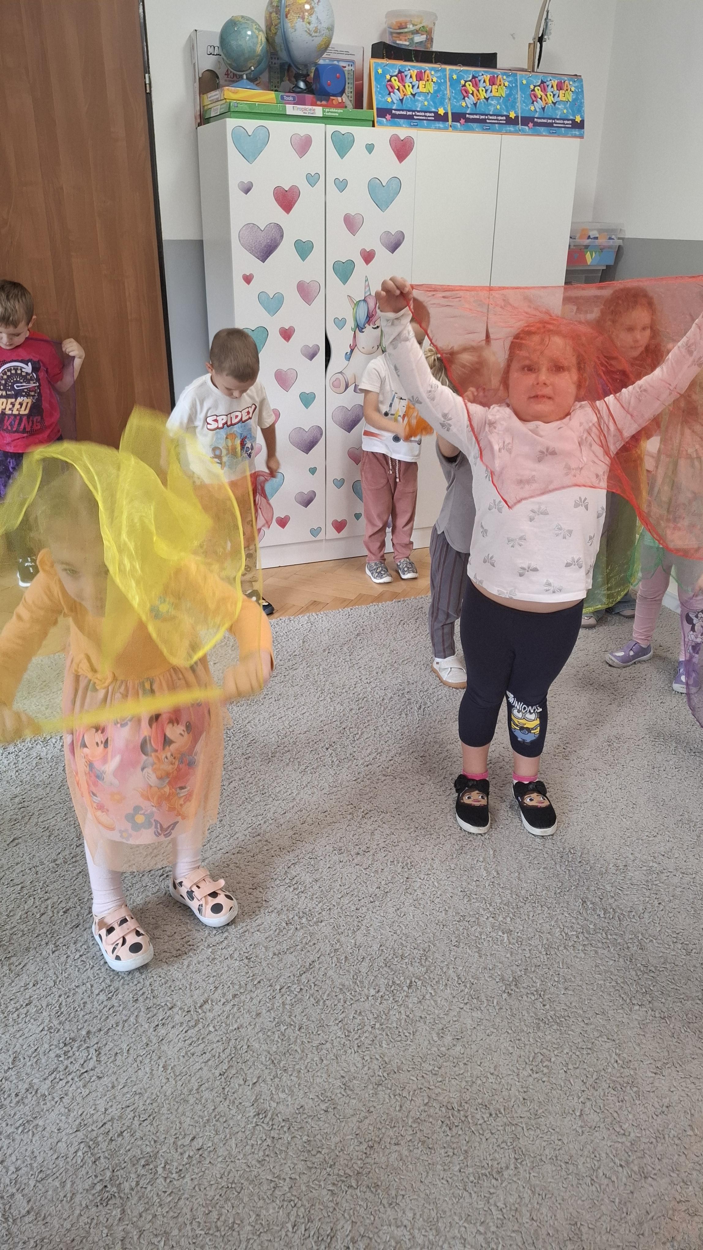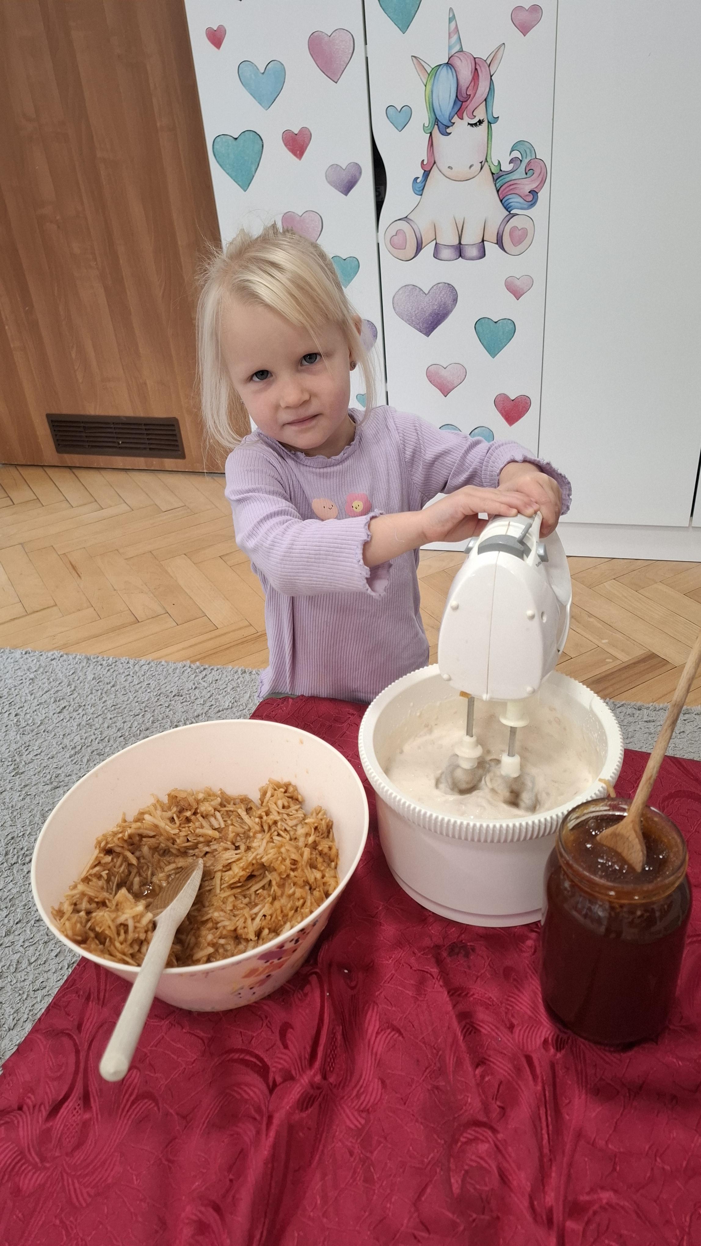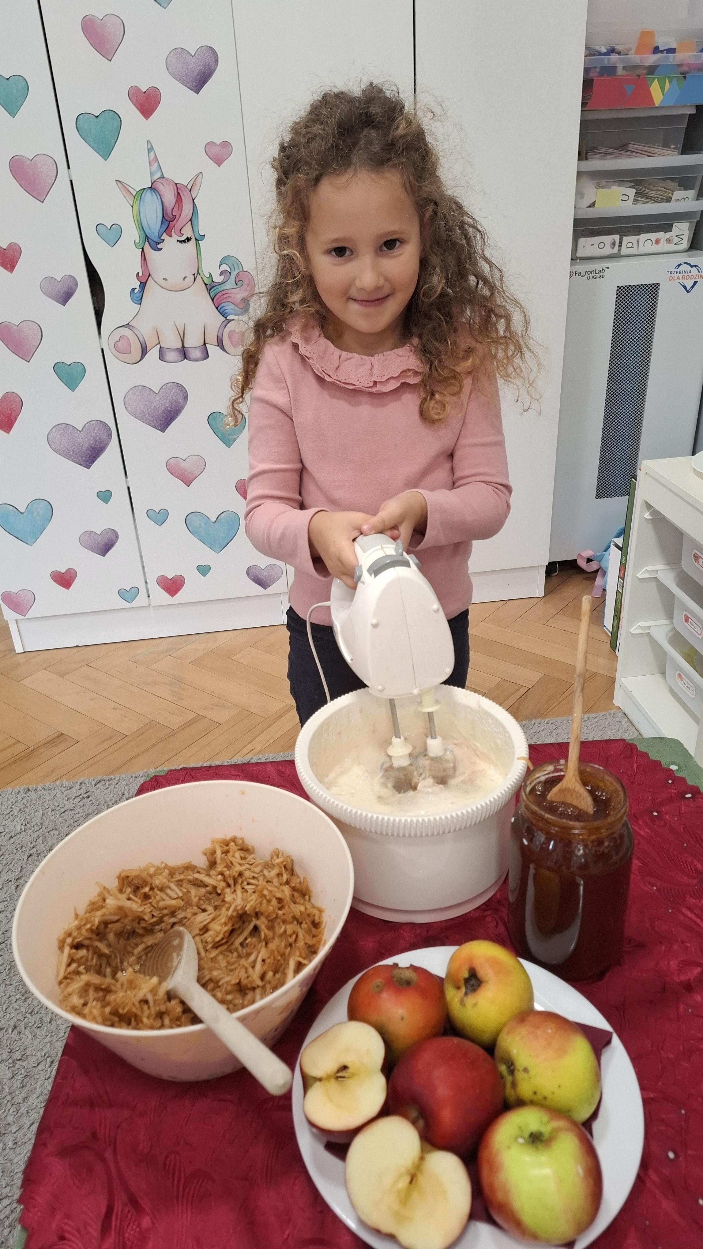 Miniony tydzień był pełen owocowych tematów – dzieci utrwalały nazwy owoców oraz uczyły się dzielić słowa na sylaby. Podczas zabaw „Co rośnie w sadzie i co z tego będzie?” oraz „Owoce i dżem” dowiedziały się, jakie smakołyki i produkty można przygotować z owoców. Poznały również piramidę i talerz żywieniowy, wskazując, gdzie znajdują się owoce i dlaczego są one tak ważne dla zdrowia. Co więcej, dzieci same przygotowały pyszny i zdrowy deser z jogurtu naturalnego, jabłka i miodu – smakował wyśmienicie i dał im wiele radości!