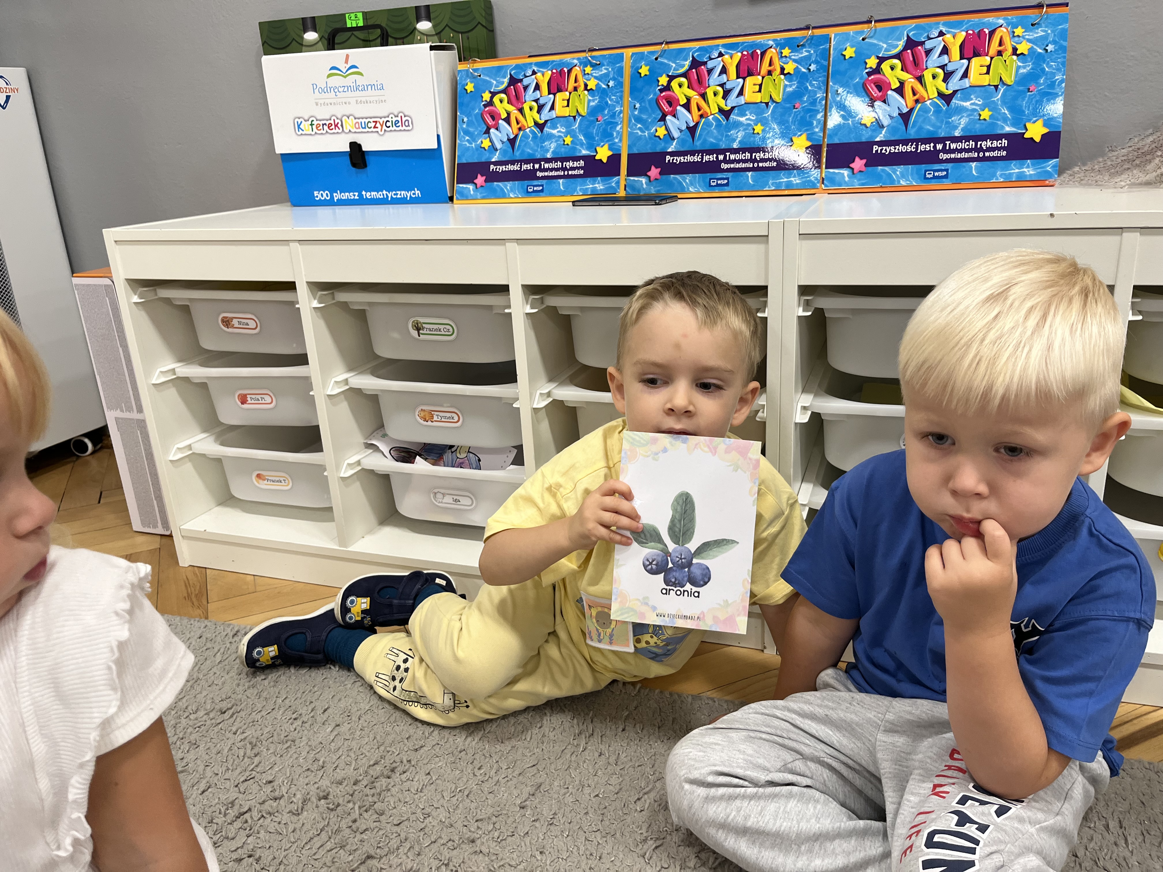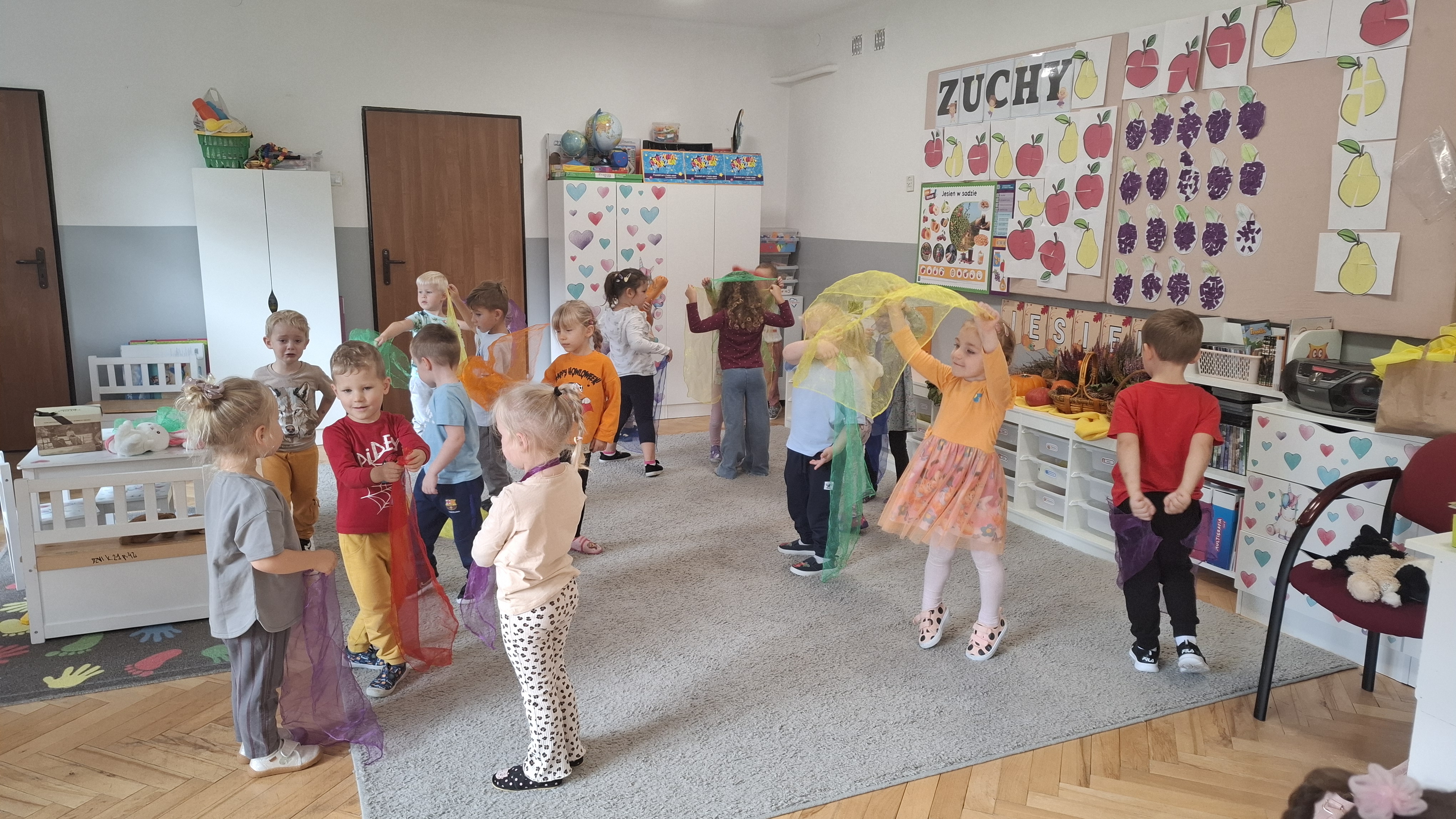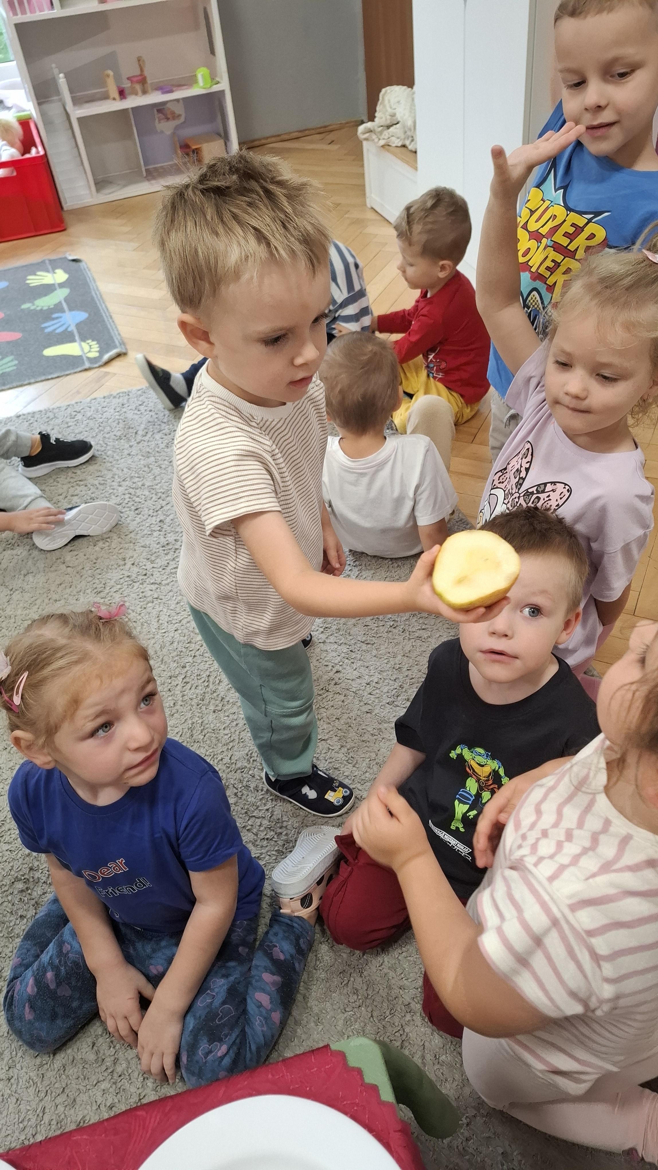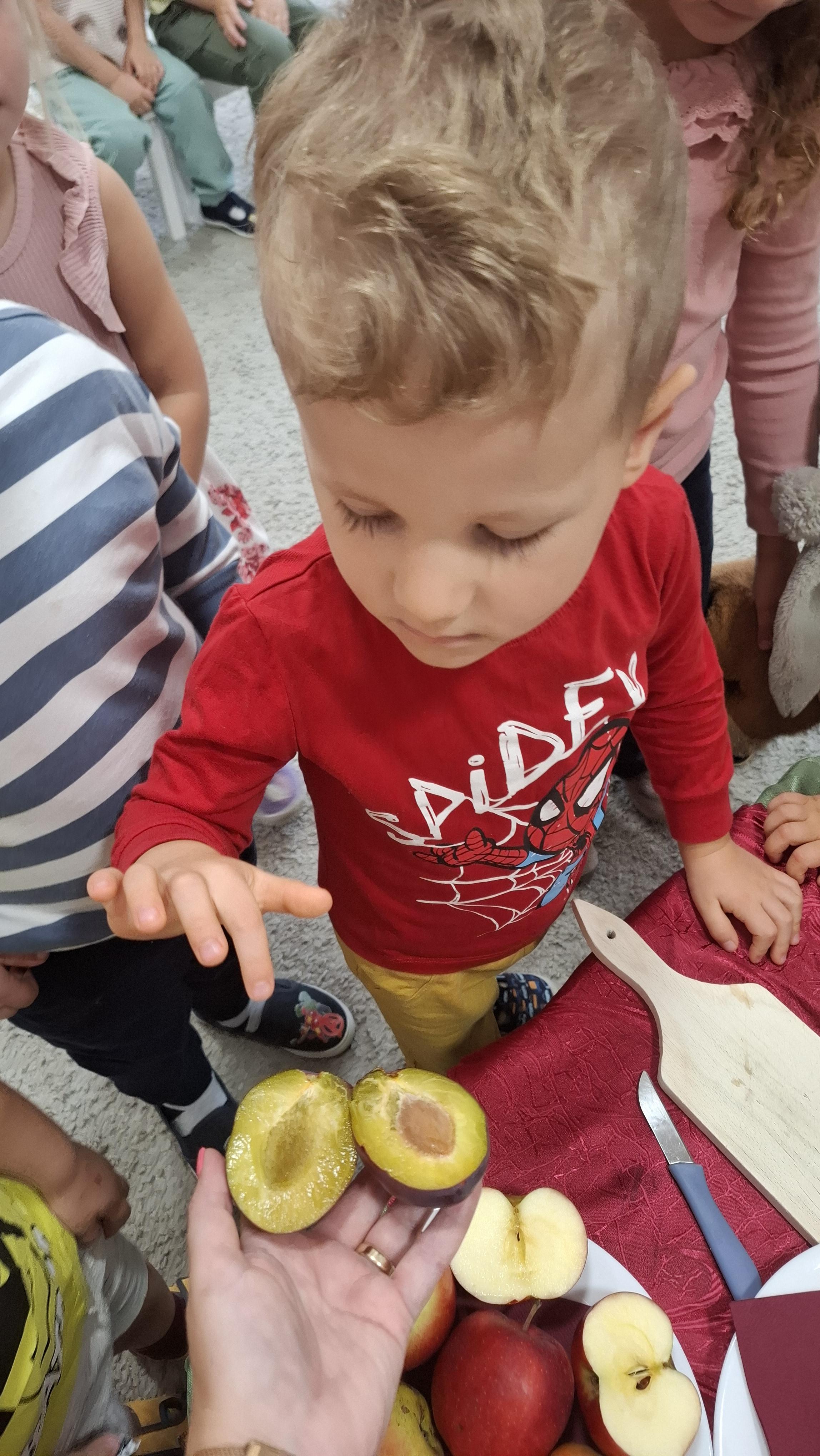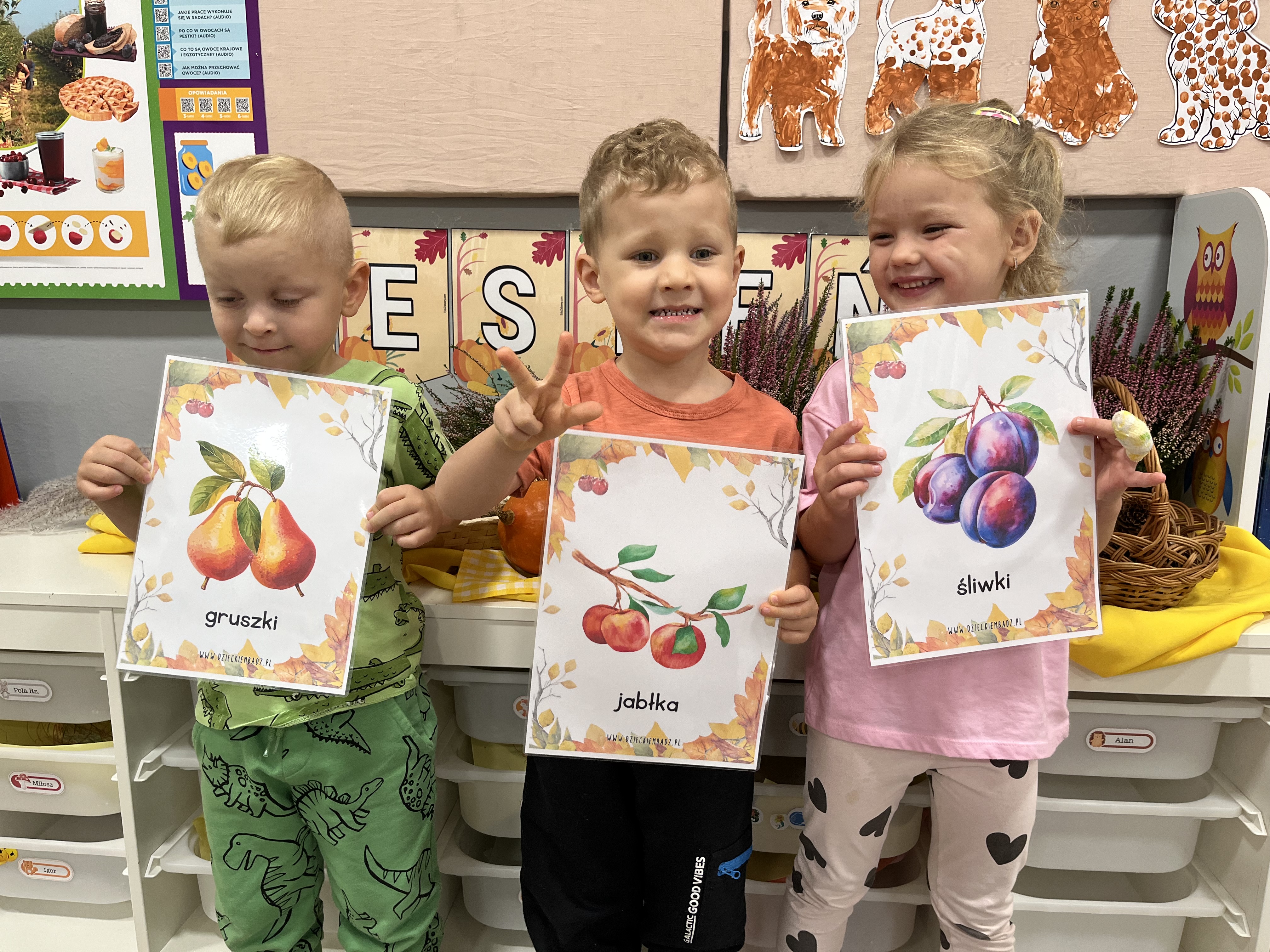 Na zakończenie chcemy serdecznie podziękować wszystkim Rodzicom za przyniesienie darów jesieni do naszego kącika przyrody – dzięki Wam stał się on piękny, kolorowy i inspirujący dla dzieci. Szczególne podziękowania kierujemy do mamy Miłoszka za podarowanie owoców na zajęcia, które sprawiły dzieciom wiele radości i pozwoliły jeszcze lepiej odkrywać smaki jesieni.