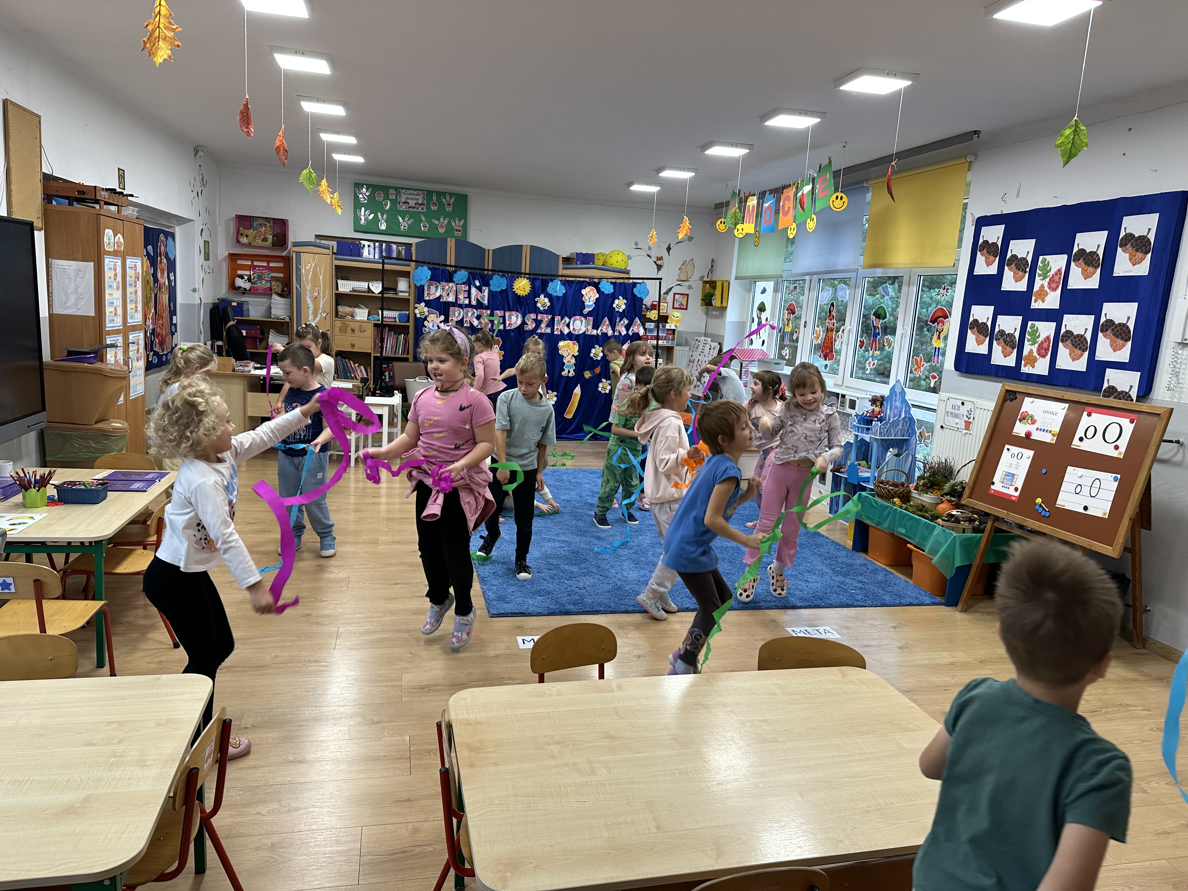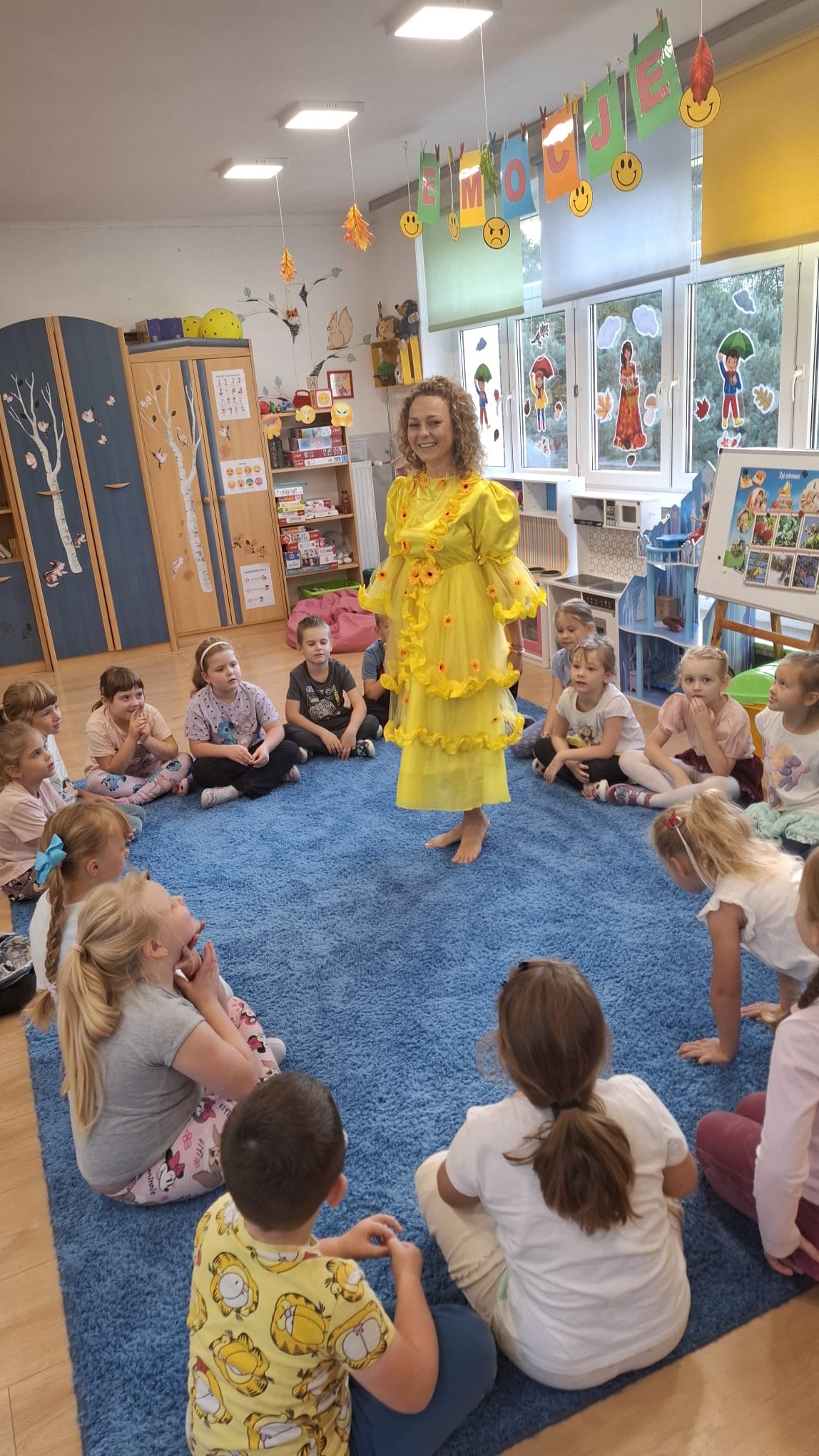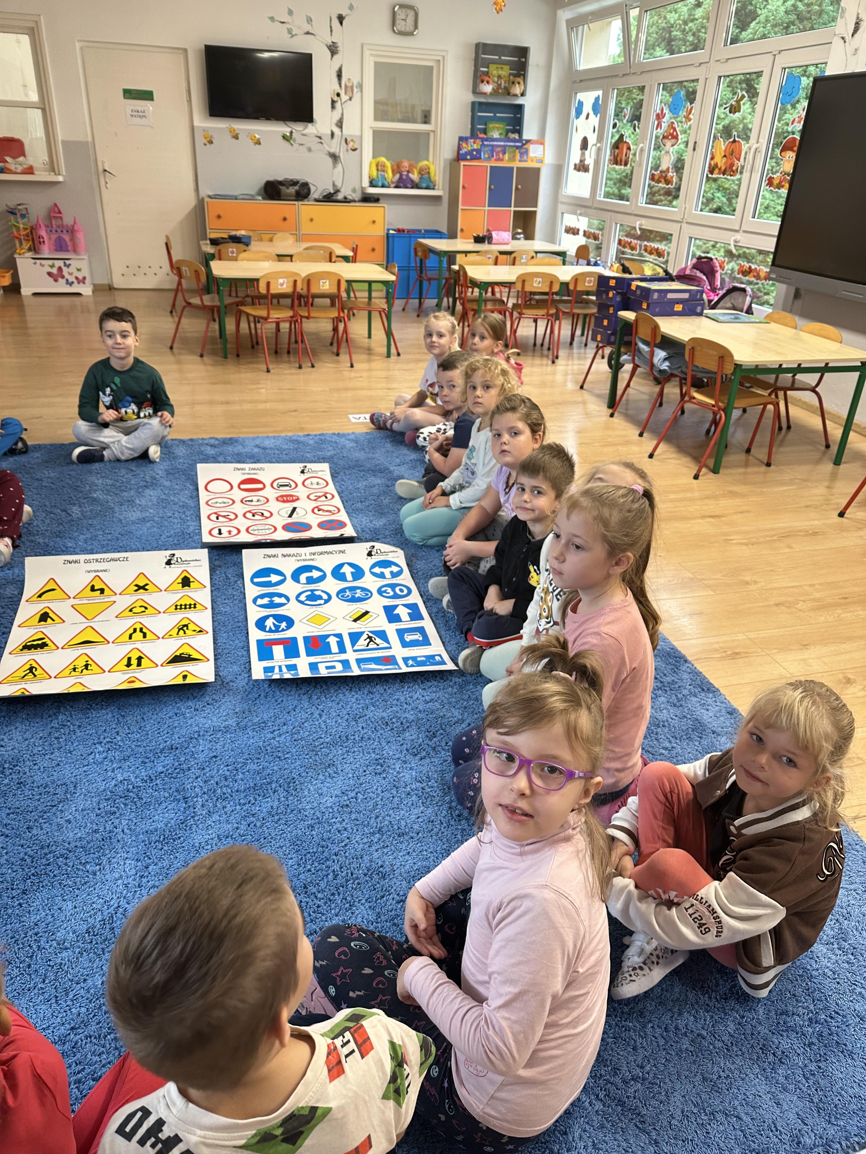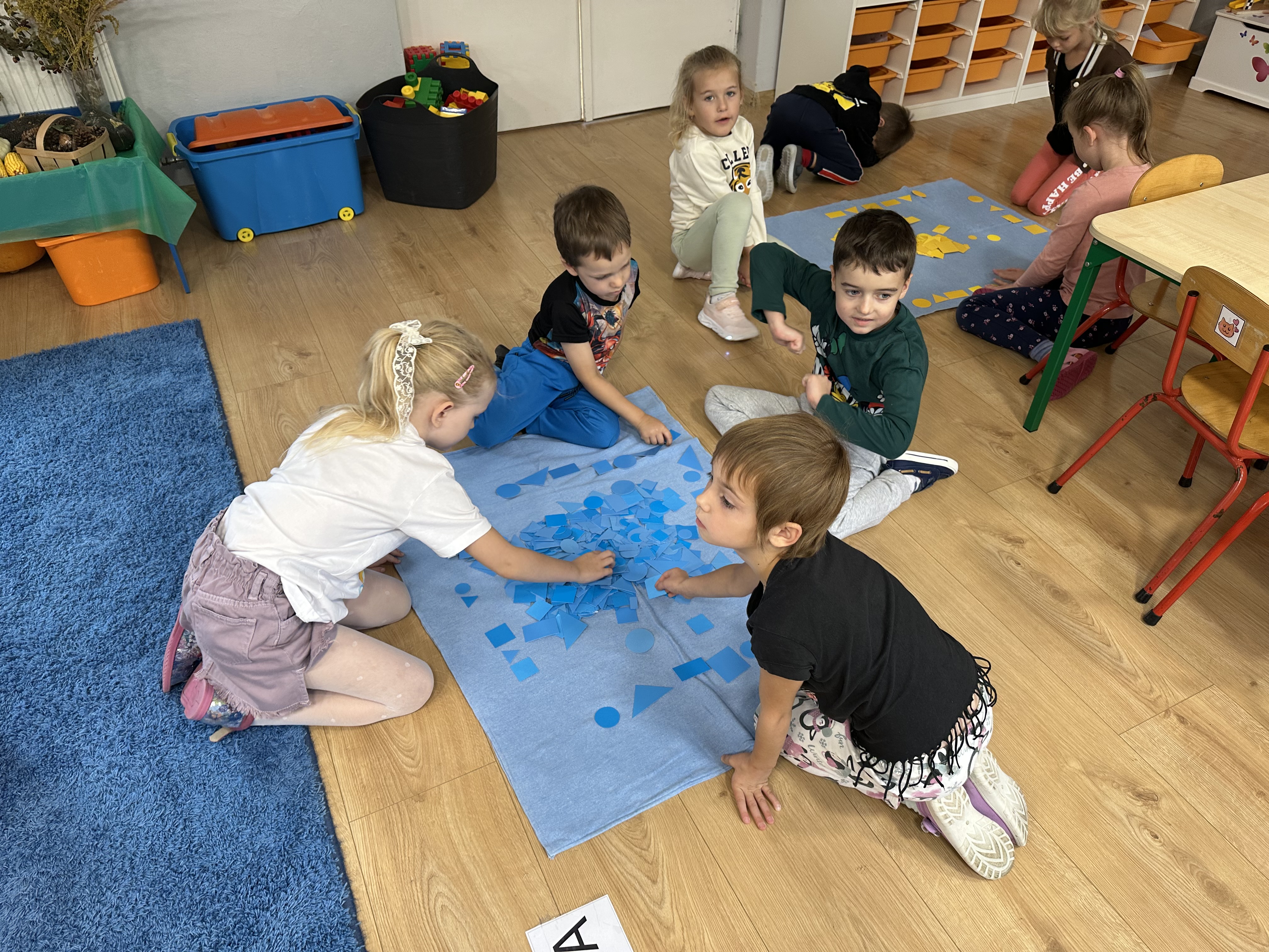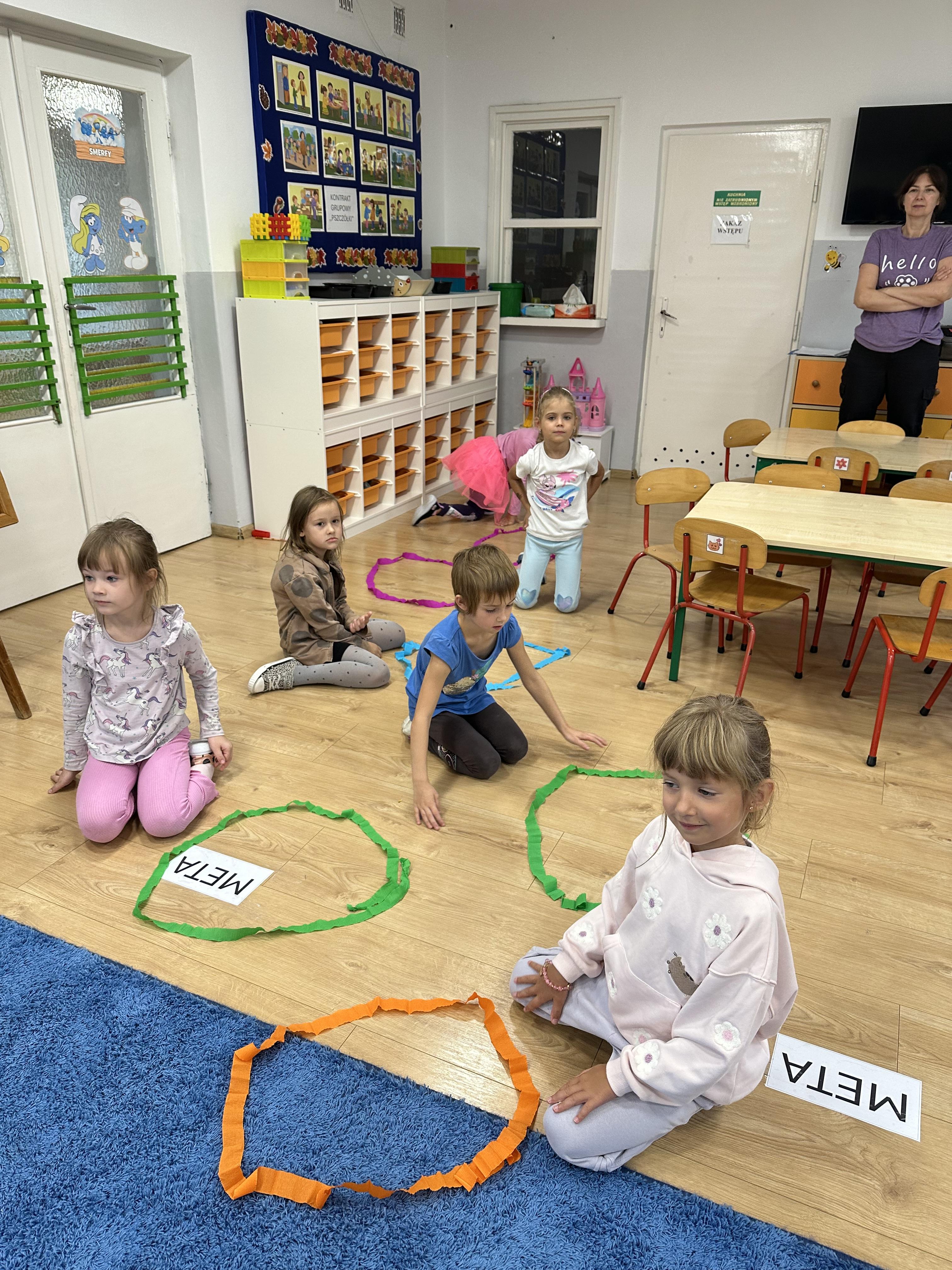 Za nami już czwarty tydzień w przedszkolu. W tym czasie dzieci zwracały szczególną uwagę na zmianę pory roku w złotą jesień, zapoznały się ze znakami drogowymi i ich kształtami oraz poznały nowe słówka w języku angielskim. Codziennie rano przedszkolaki śpiewały piosenkę ,,Jesień w naszej okolicy” i ilustrowały ją ruchem.