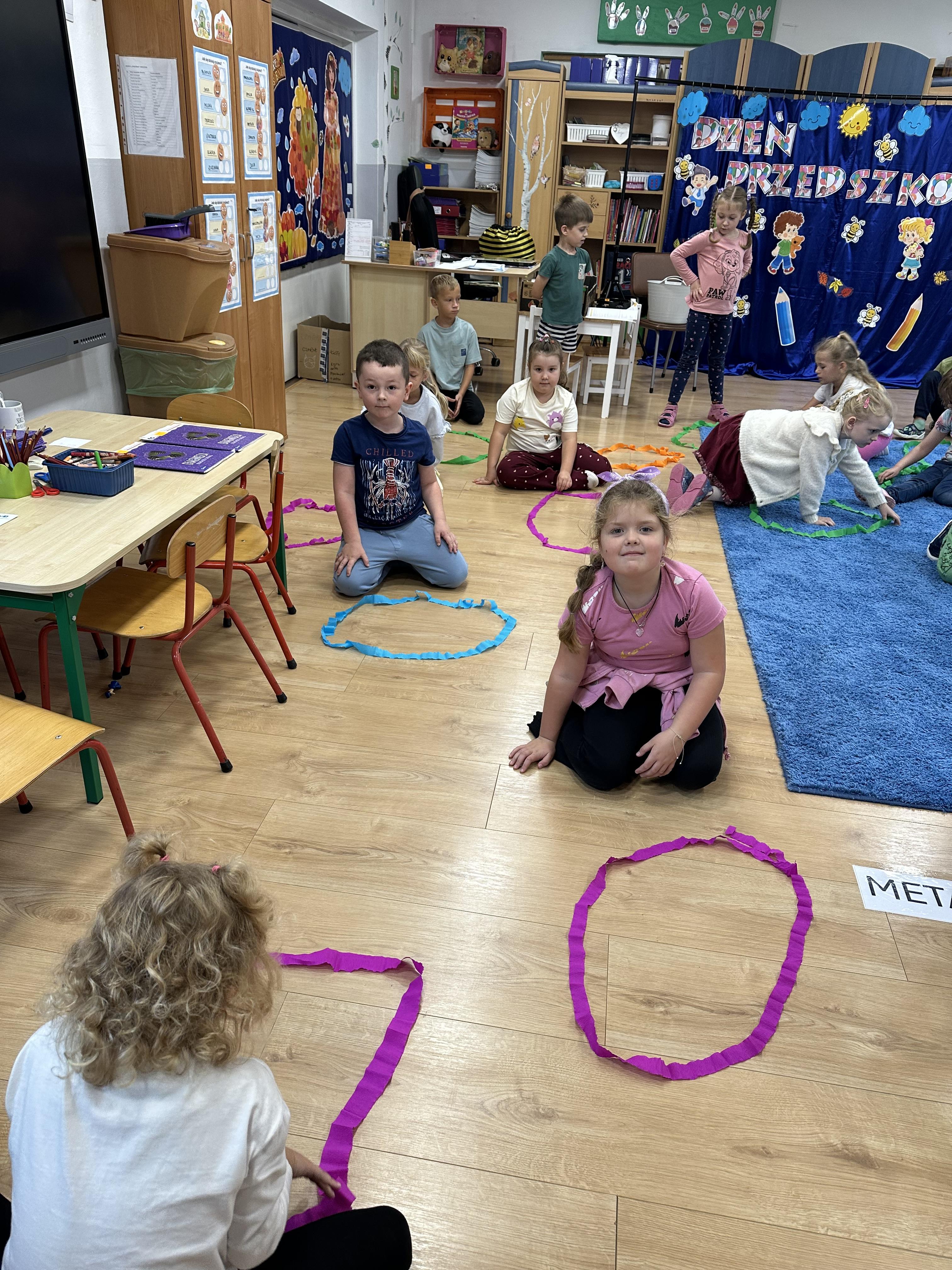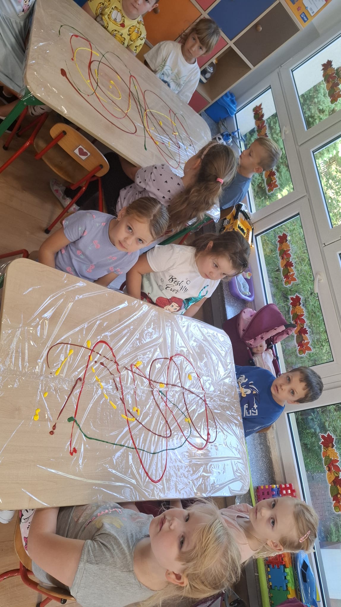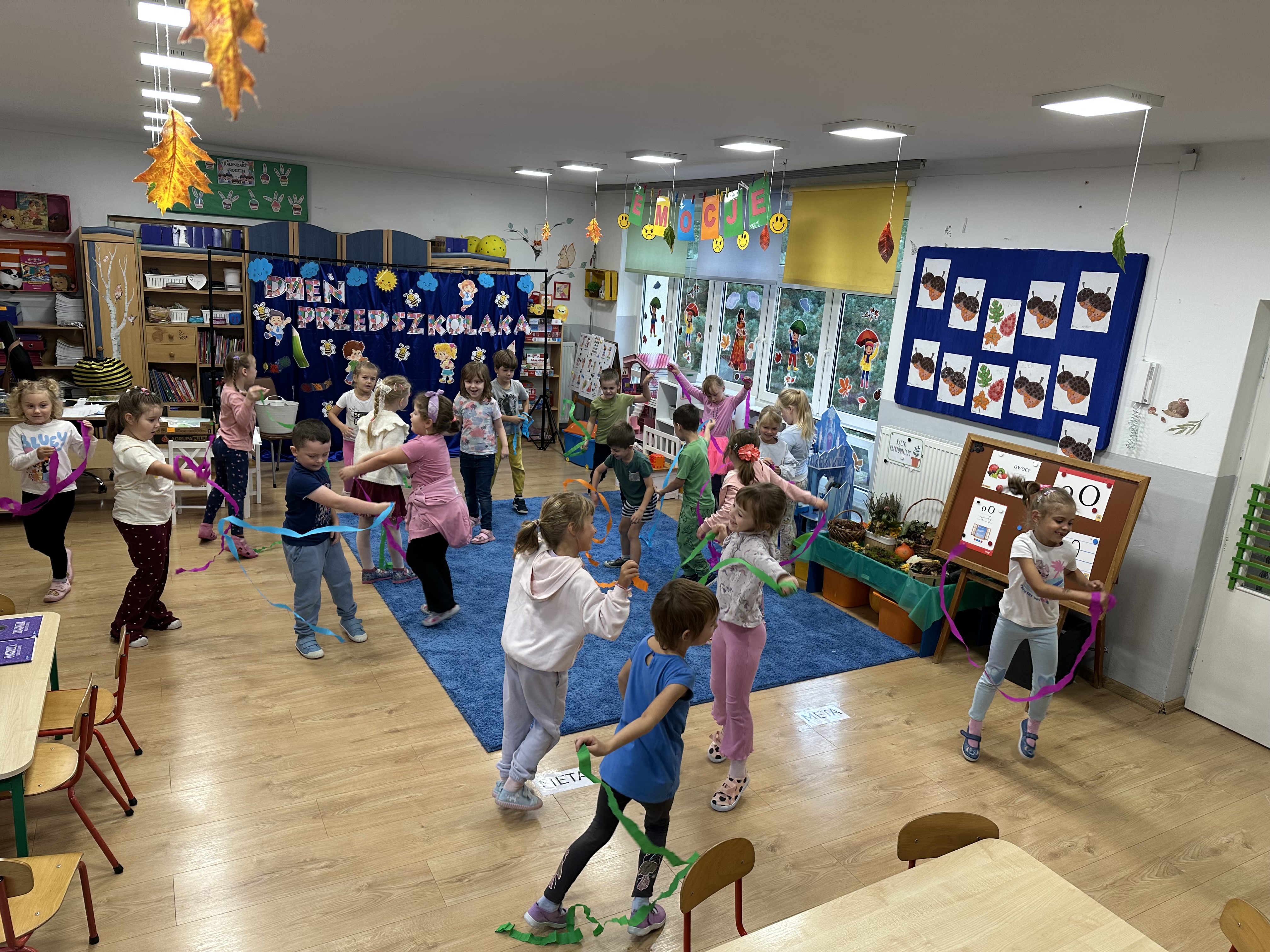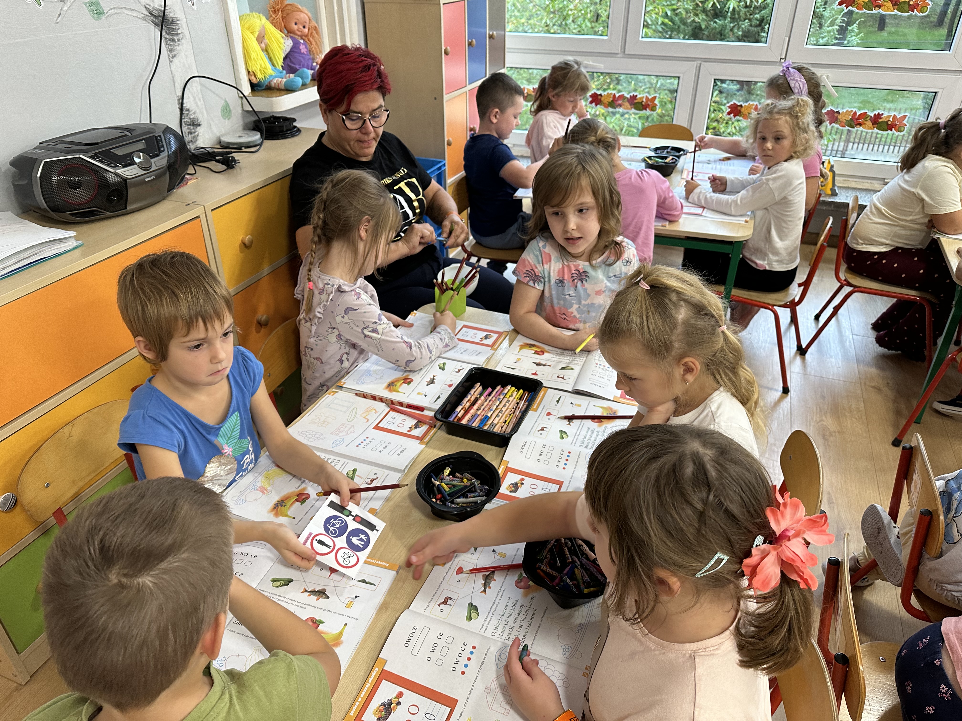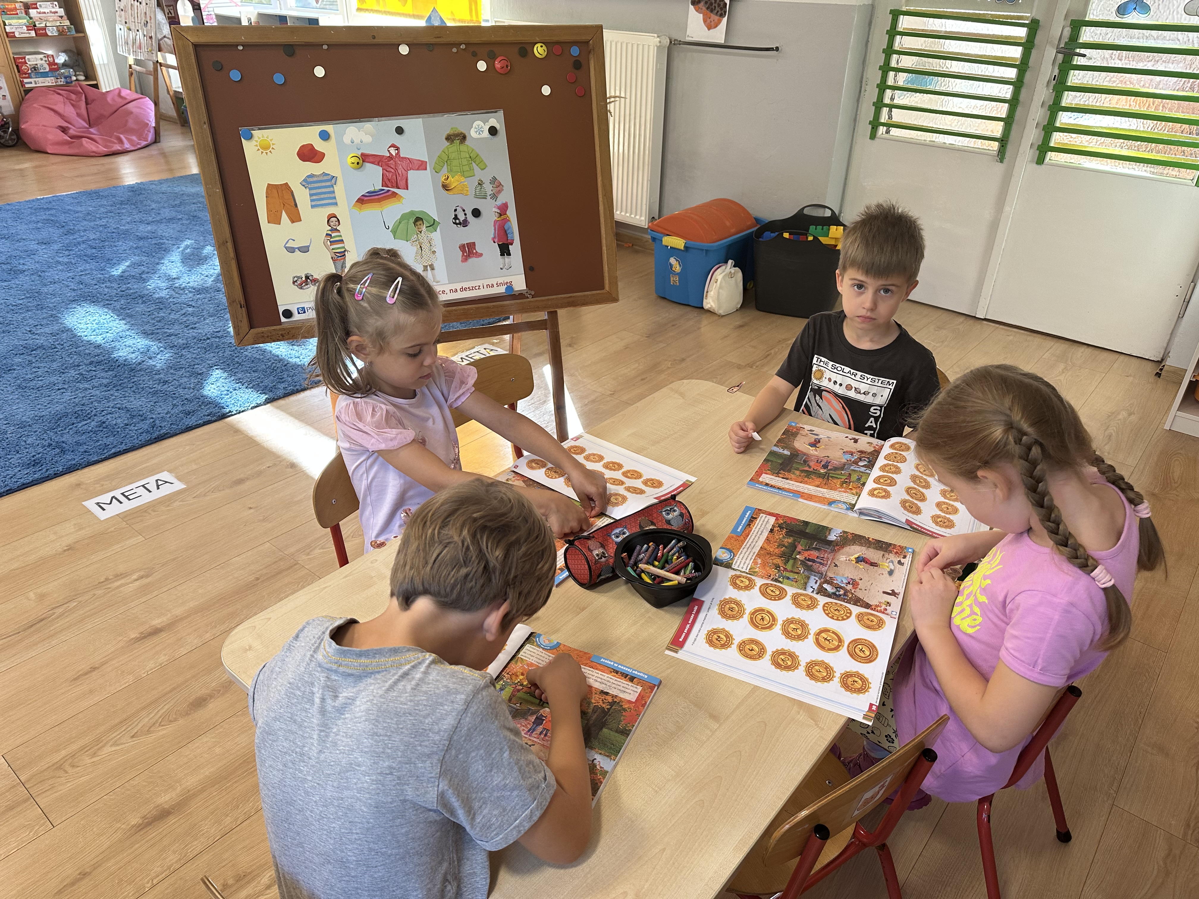 Za nami już czwarty tydzień w przedszkolu. W tym czasie dzieci zwracały szczególną uwagę na zmianę pory roku w złotą jesień, zapoznały się ze znakami drogowymi i ich kształtami oraz poznały nowe słówka w języku angielskim. Codziennie rano przedszkolaki śpiewały piosenkę ,,Jesień w naszej okolicy” i ilustrowały ją ruchem.