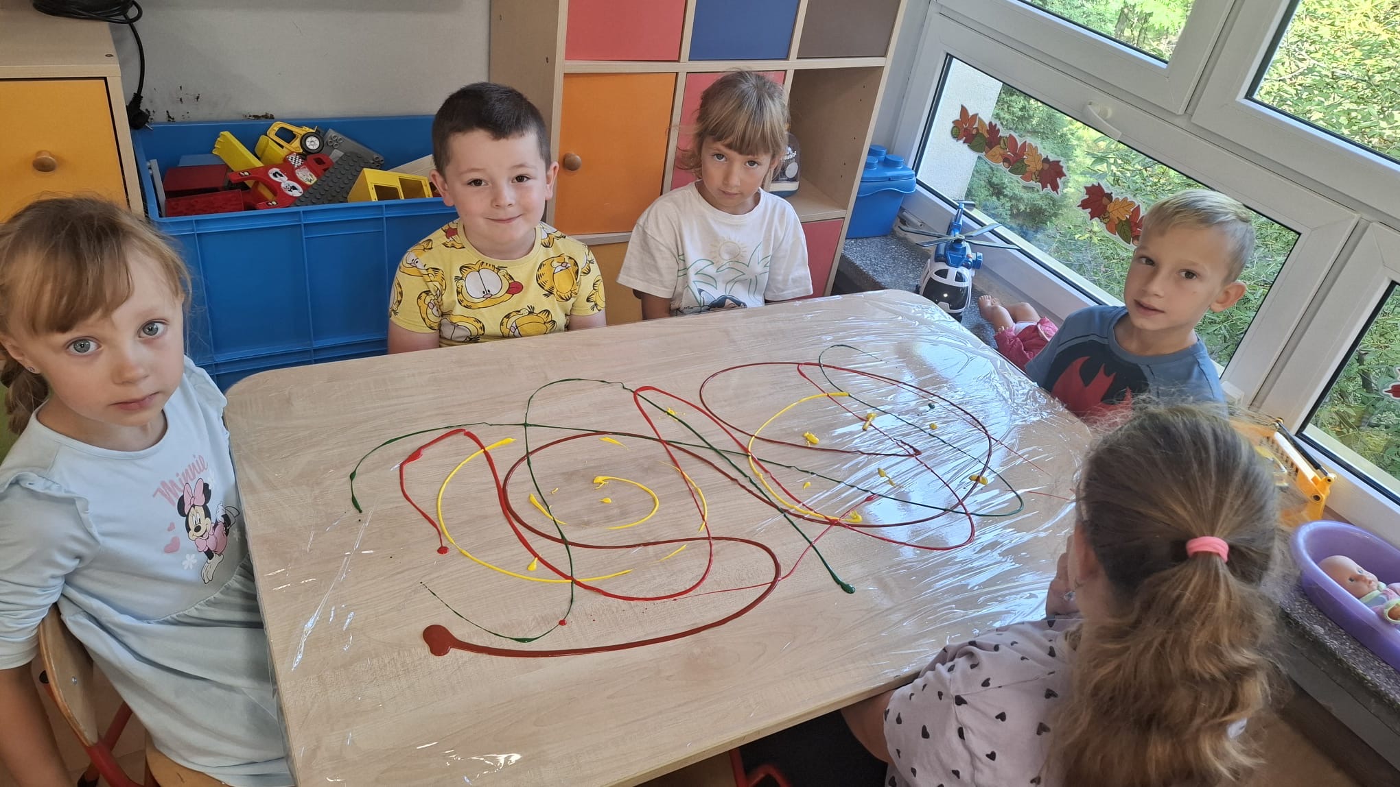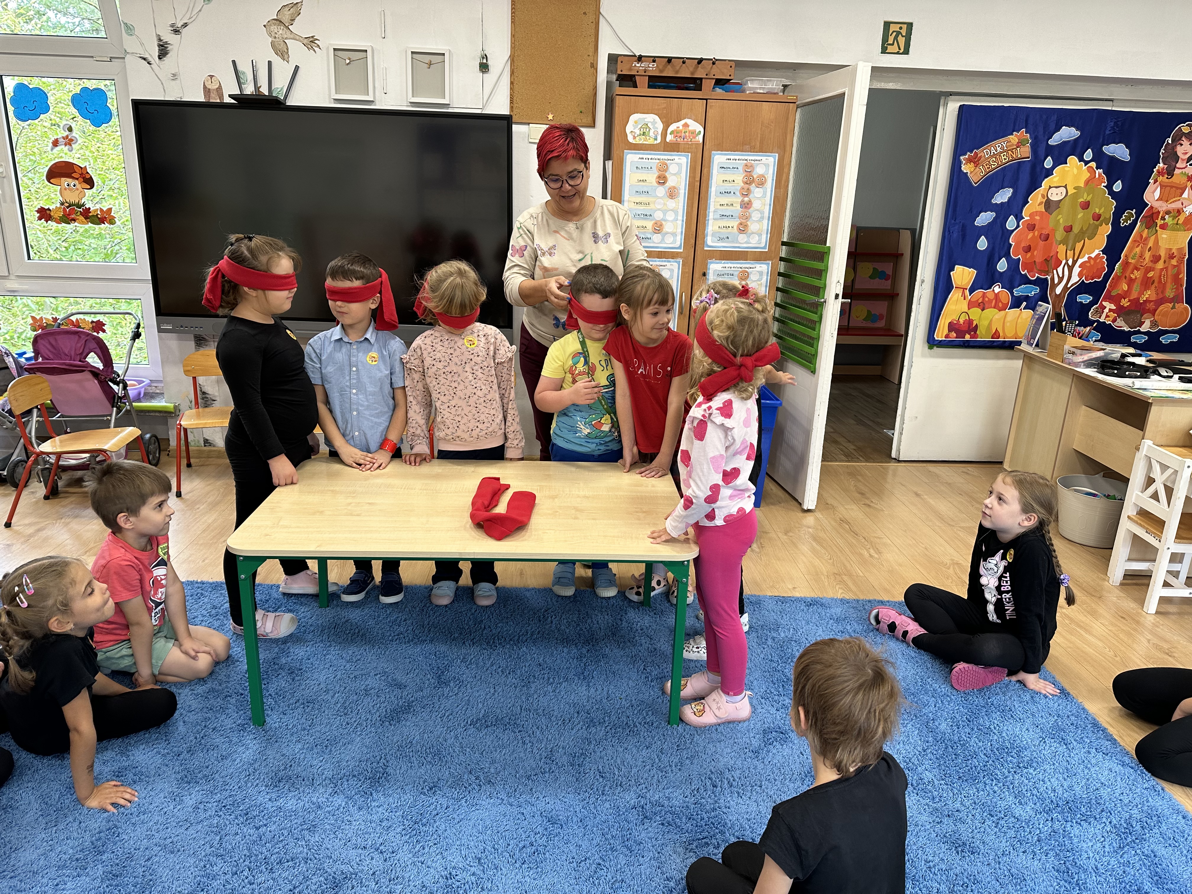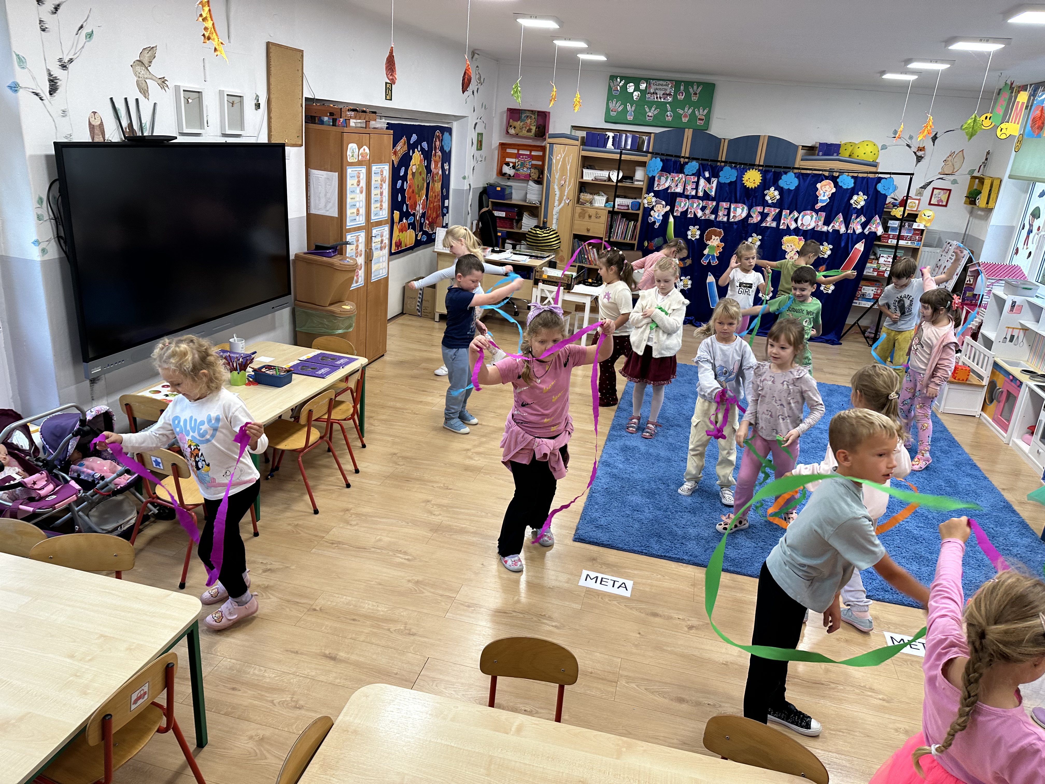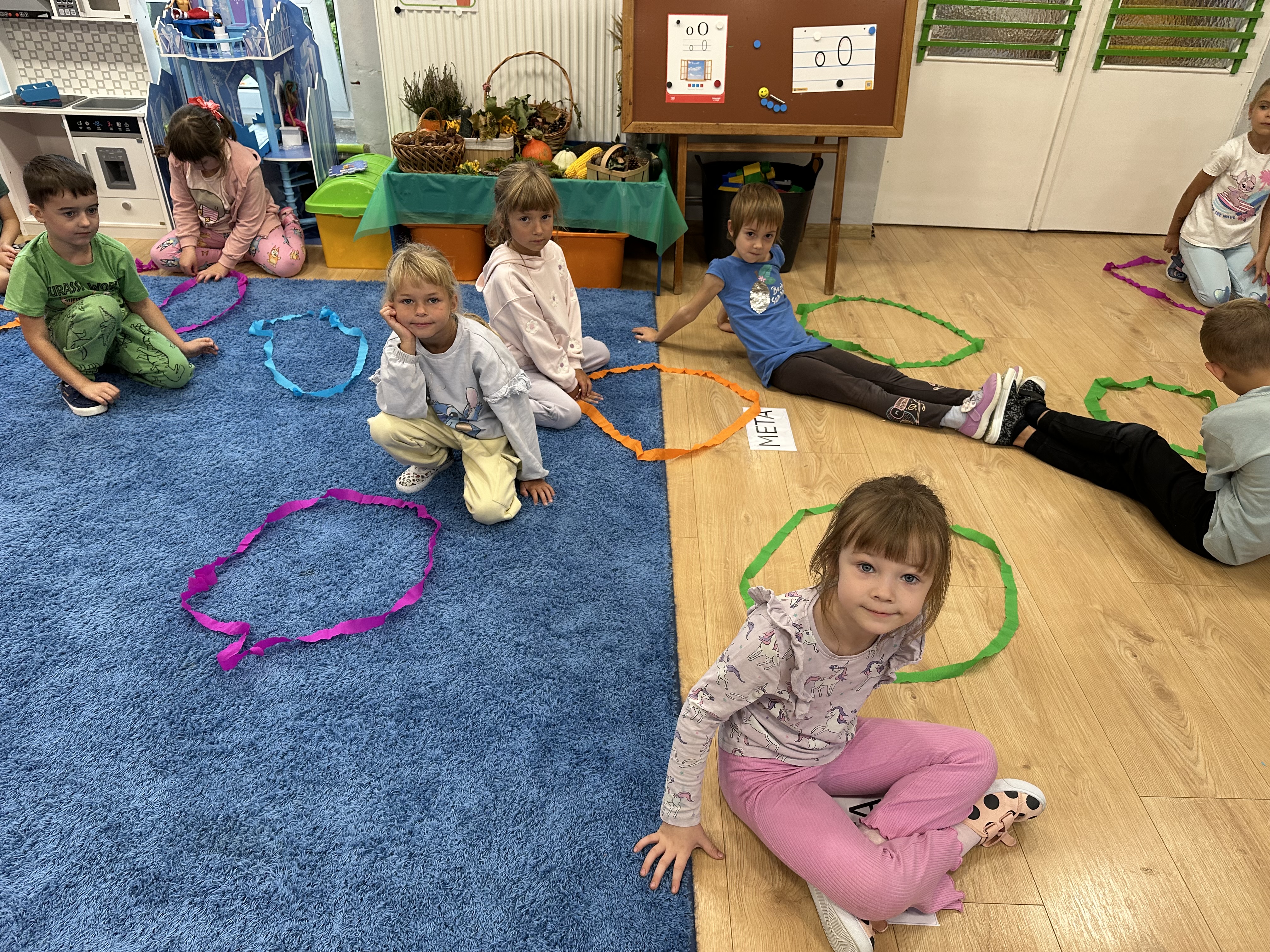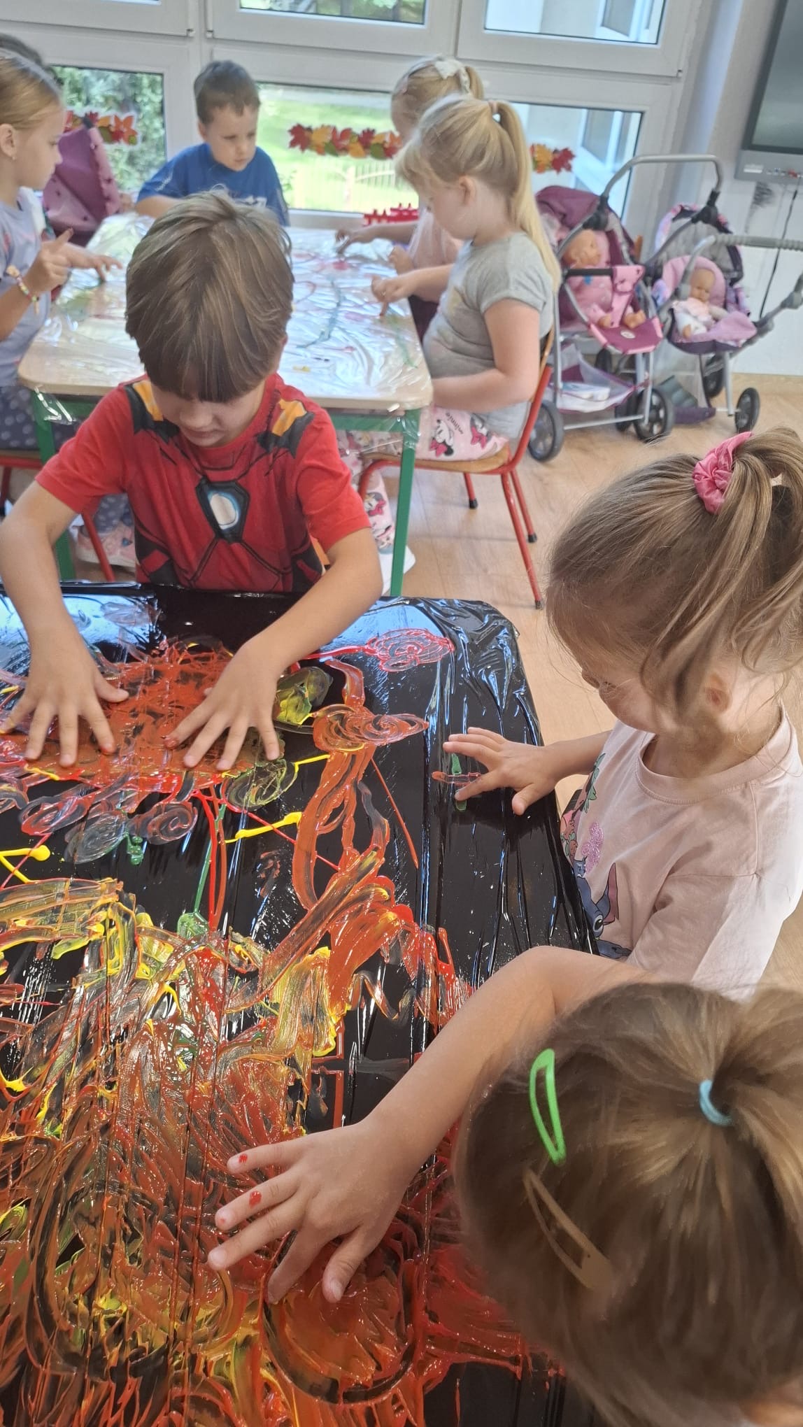 Za nami już czwarty tydzień w przedszkolu. W tym czasie dzieci zwracały szczególną uwagę na zmianę pory roku w złotą jesień, zapoznały się ze znakami drogowymi i ich kształtami oraz poznały nowe słówka w języku angielskim. Codziennie rano przedszkolaki śpiewały piosenkę ,,Jesień w naszej okolicy” i ilustrowały ją ruchem.