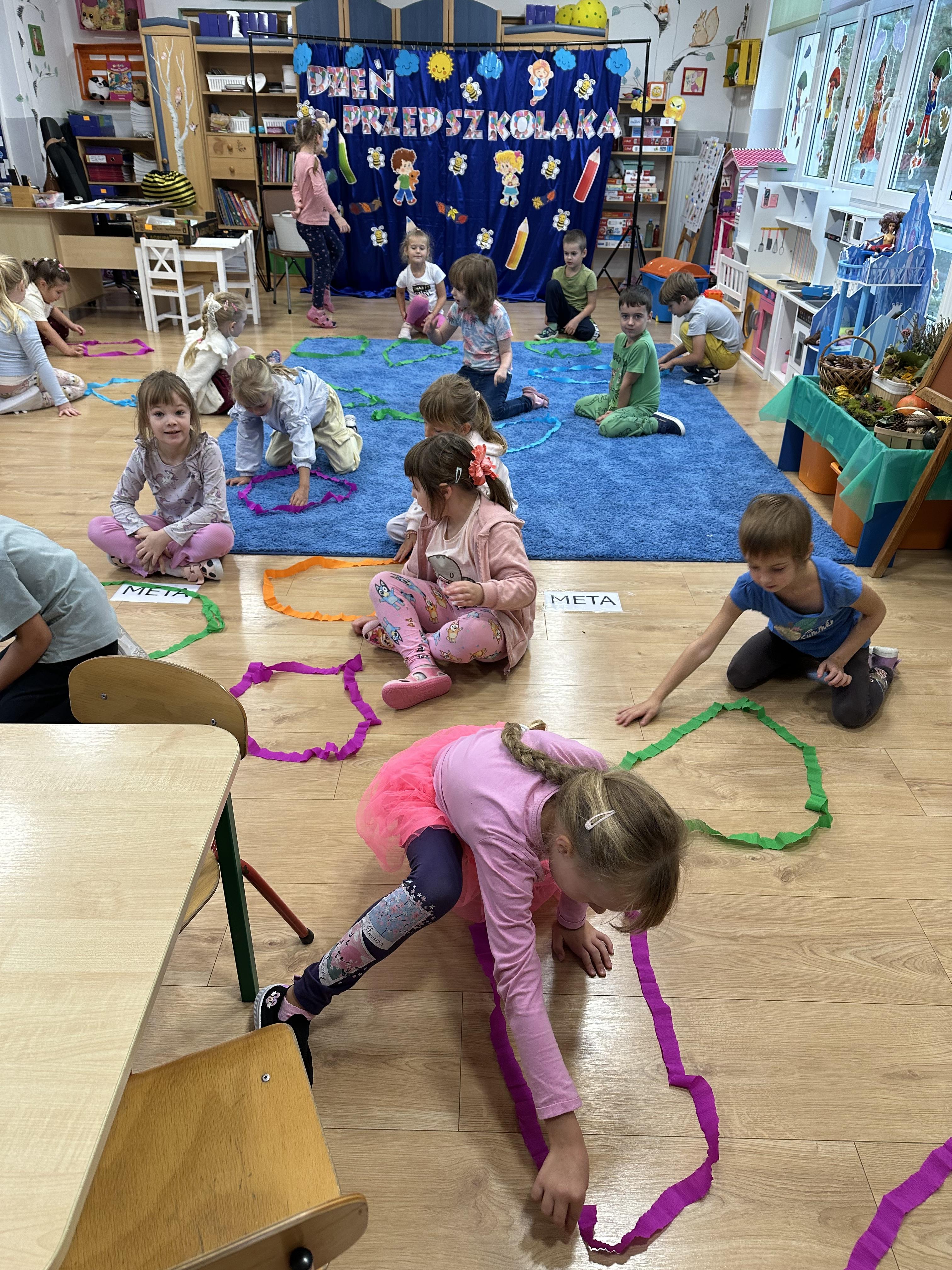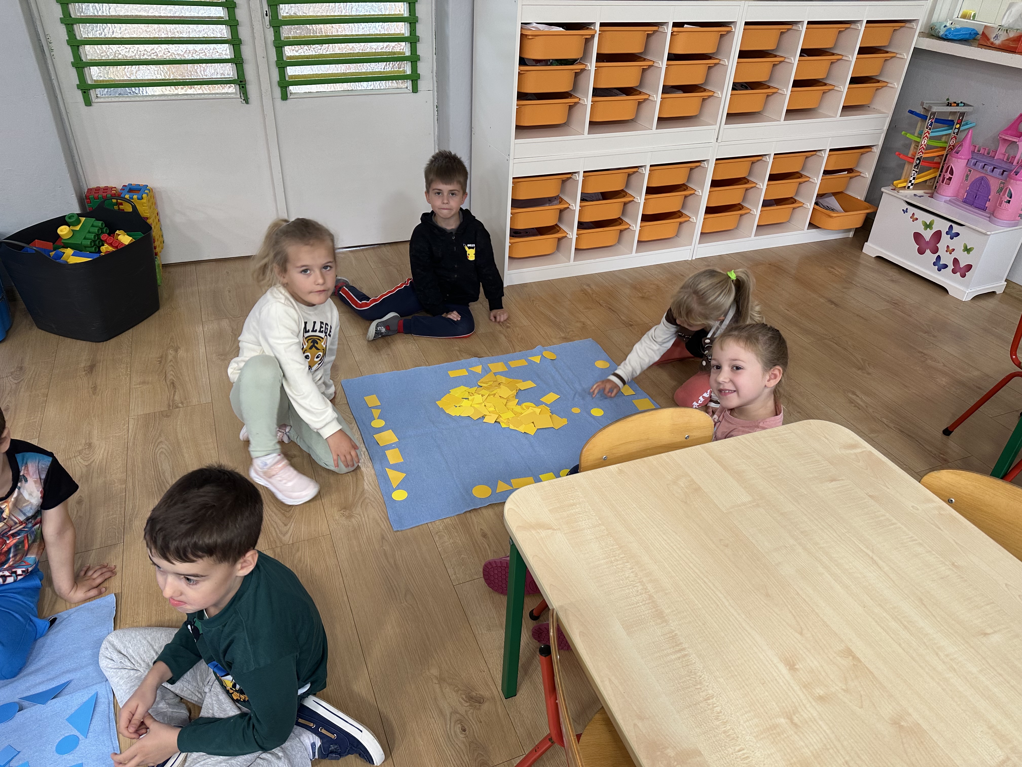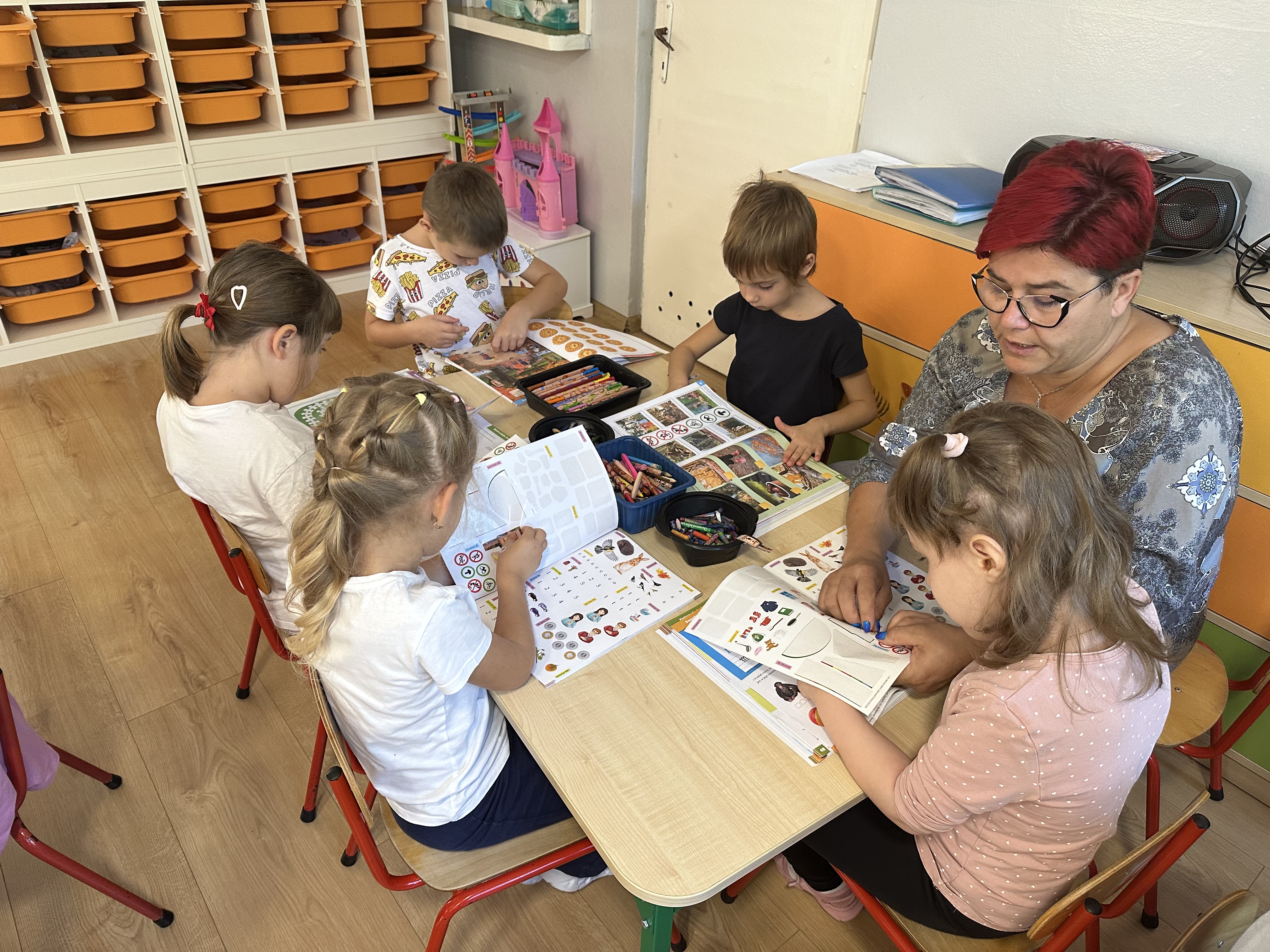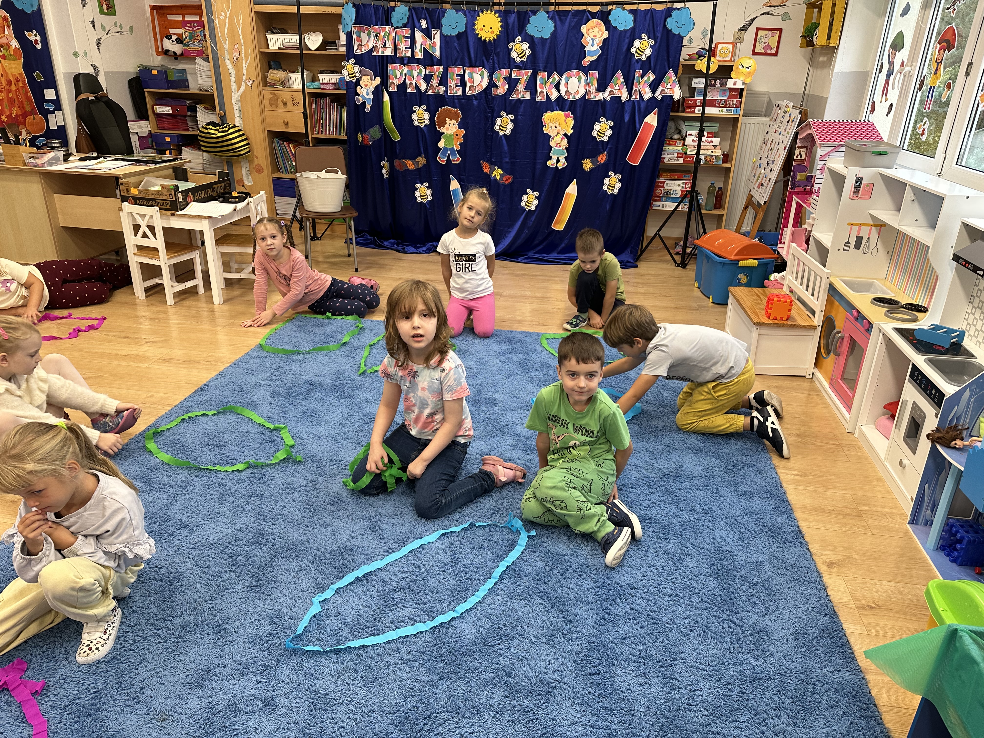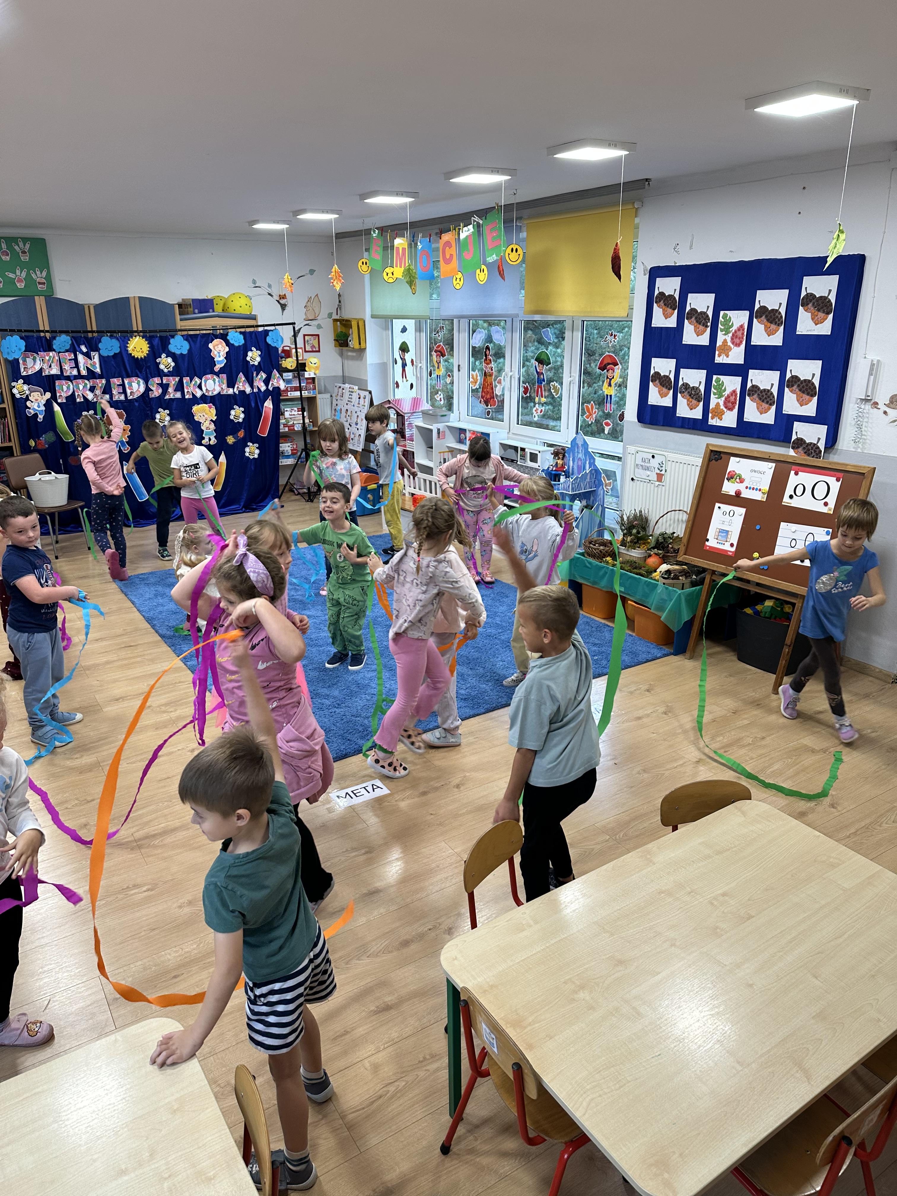 Za nami już czwarty tydzień w przedszkolu. W tym czasie dzieci zwracały szczególną uwagę na zmianę pory roku w złotą jesień, zapoznały się ze znakami drogowymi i ich kształtami oraz poznały nowe słówka w języku angielskim. Codziennie rano przedszkolaki śpiewały piosenkę ,,Jesień w naszej okolicy” i ilustrowały ją ruchem.