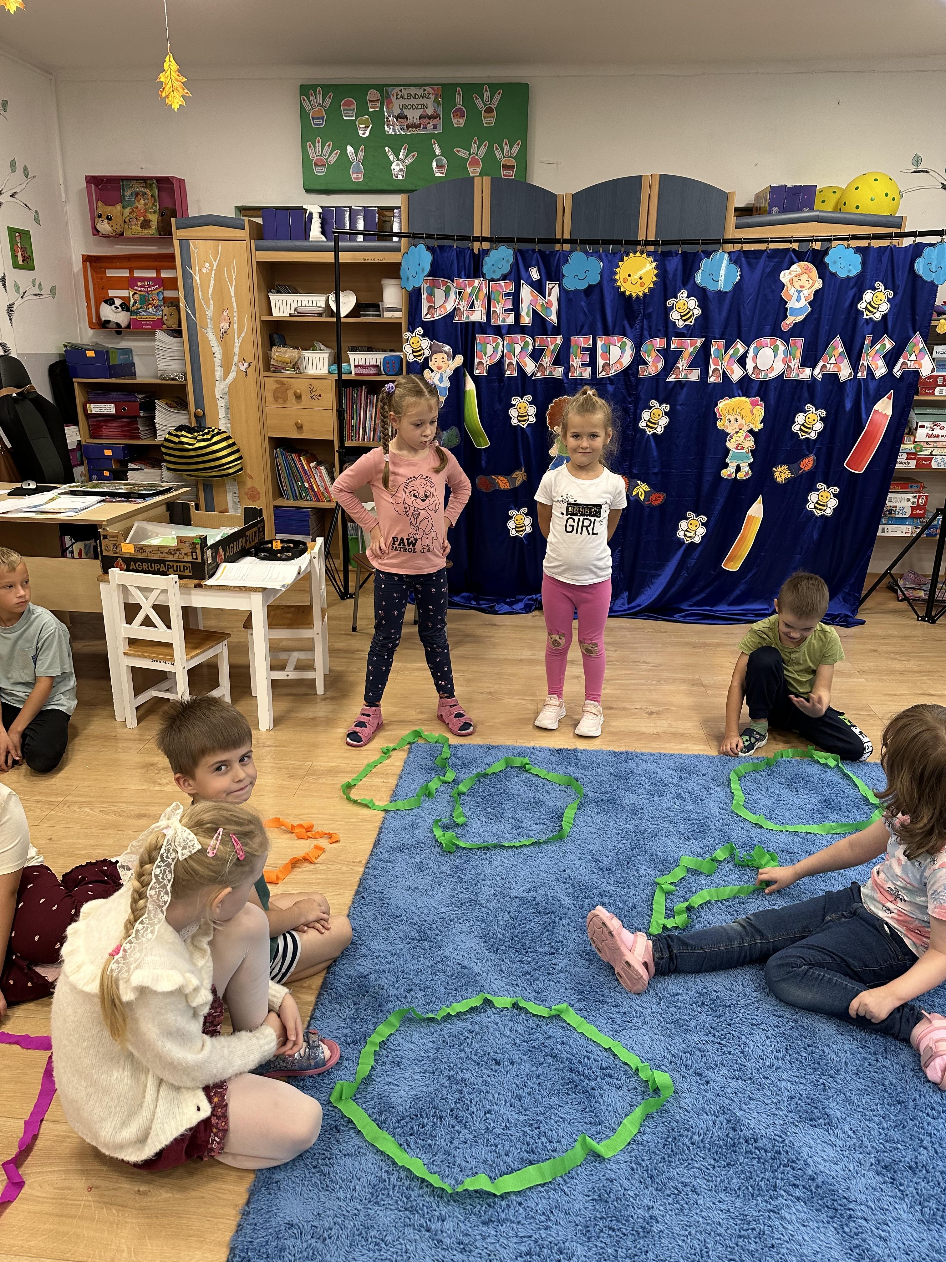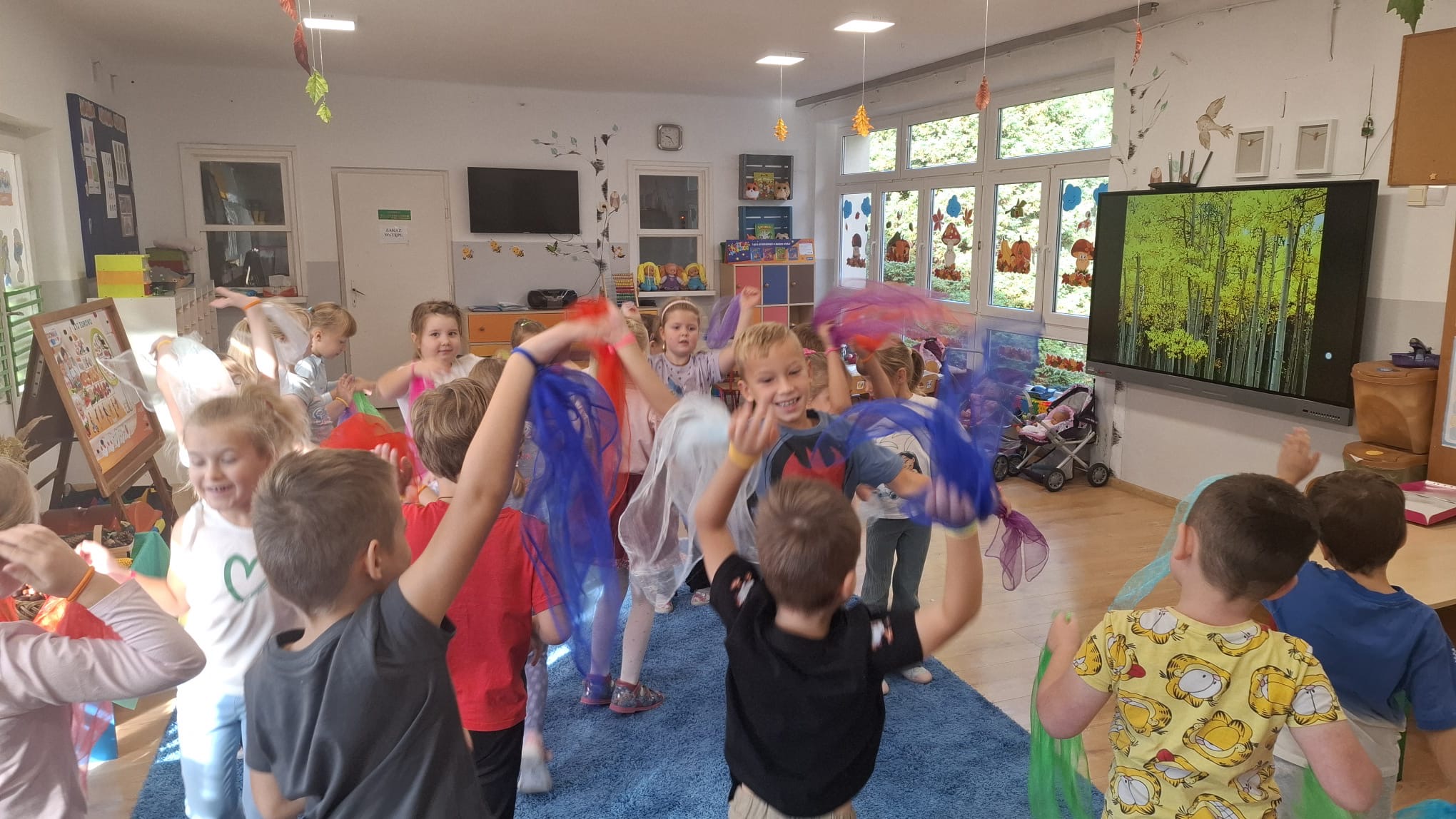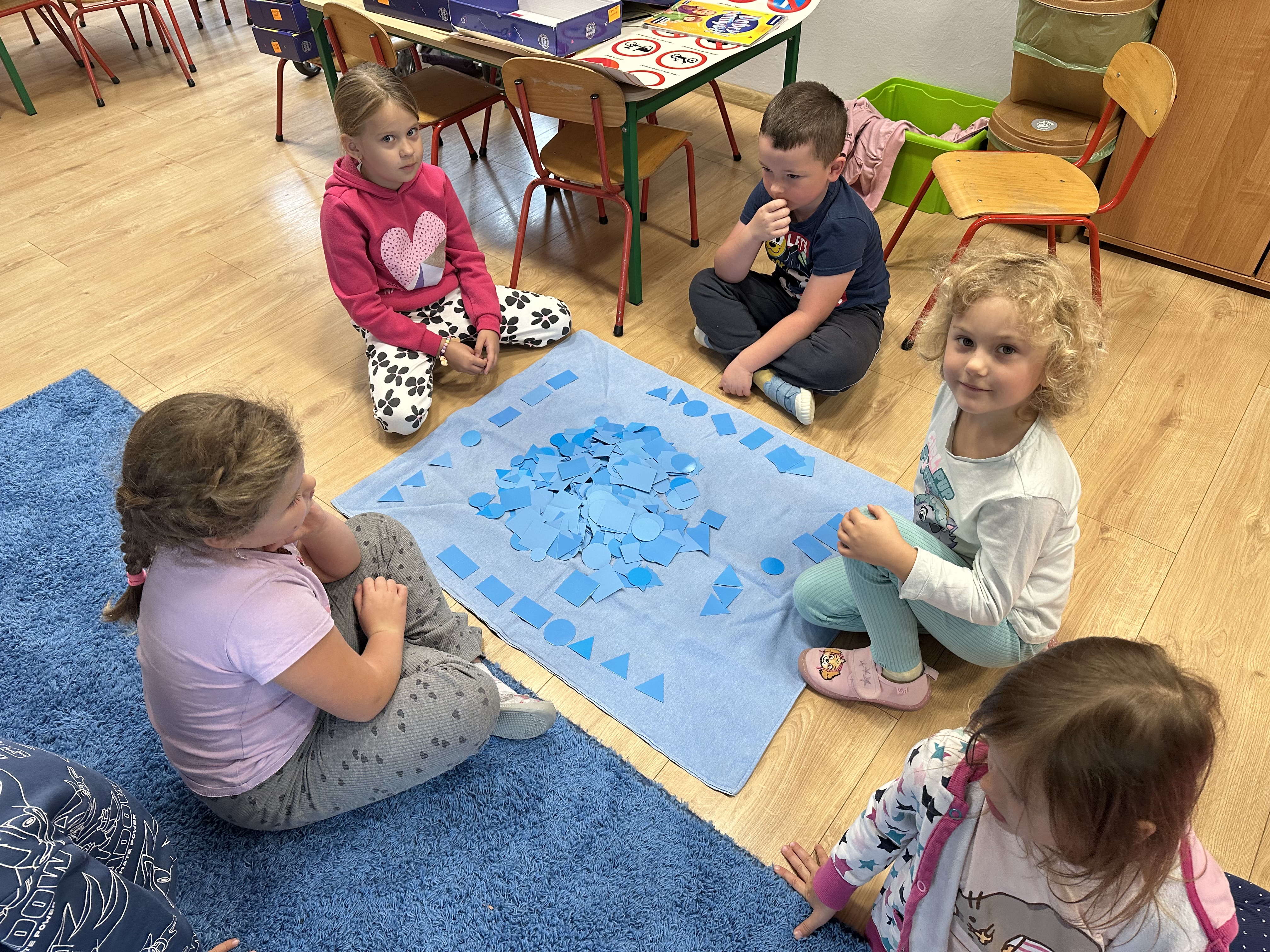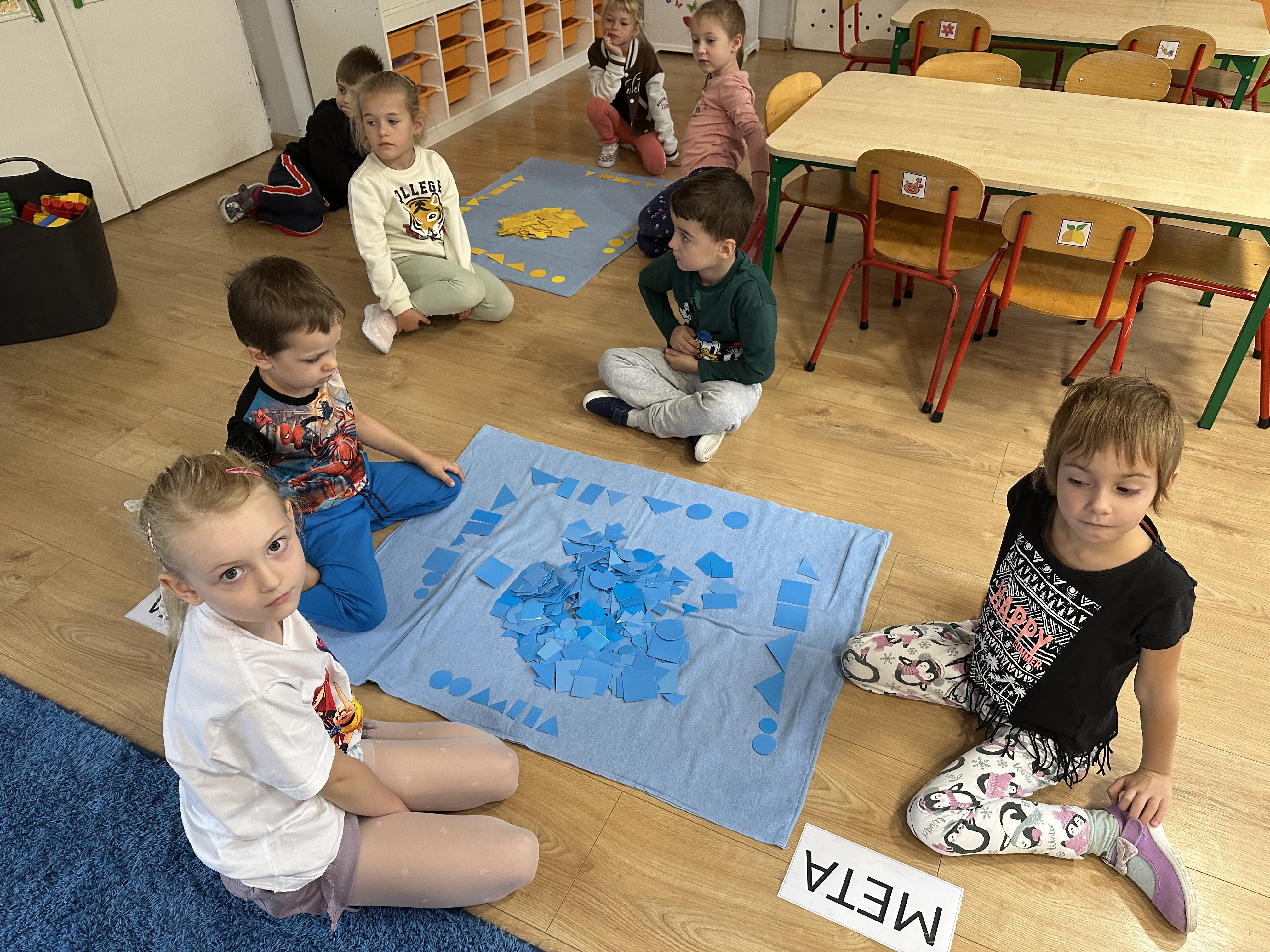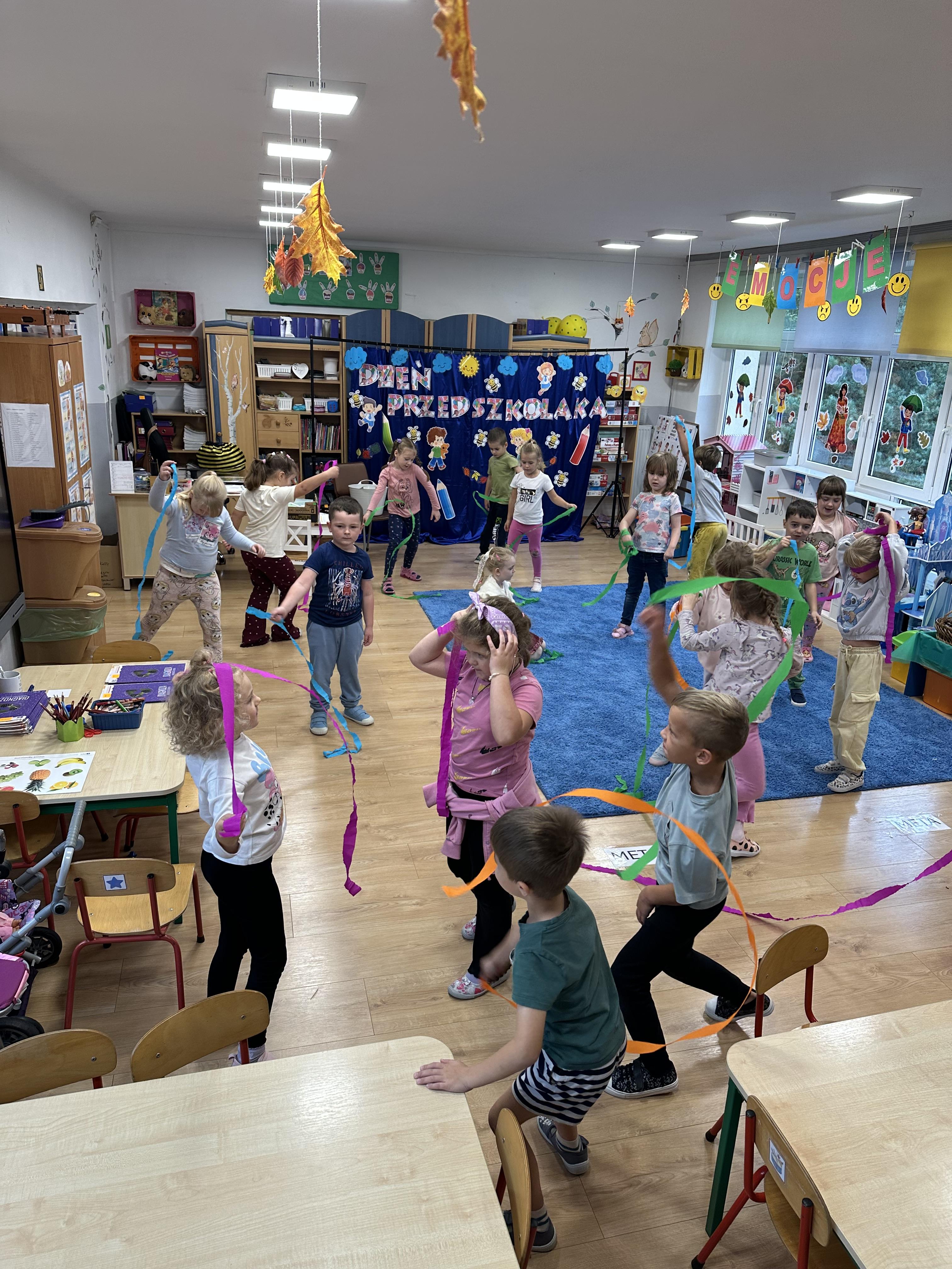 Za nami już czwarty tydzień w przedszkolu. W tym czasie dzieci zwracały szczególną uwagę na zmianę pory roku w złotą jesień, zapoznały się ze znakami drogowymi i ich kształtami oraz poznały nowe słówka w języku angielskim. Codziennie rano przedszkolaki śpiewały piosenkę ,,Jesień w naszej okolicy” i ilustrowały ją ruchem.