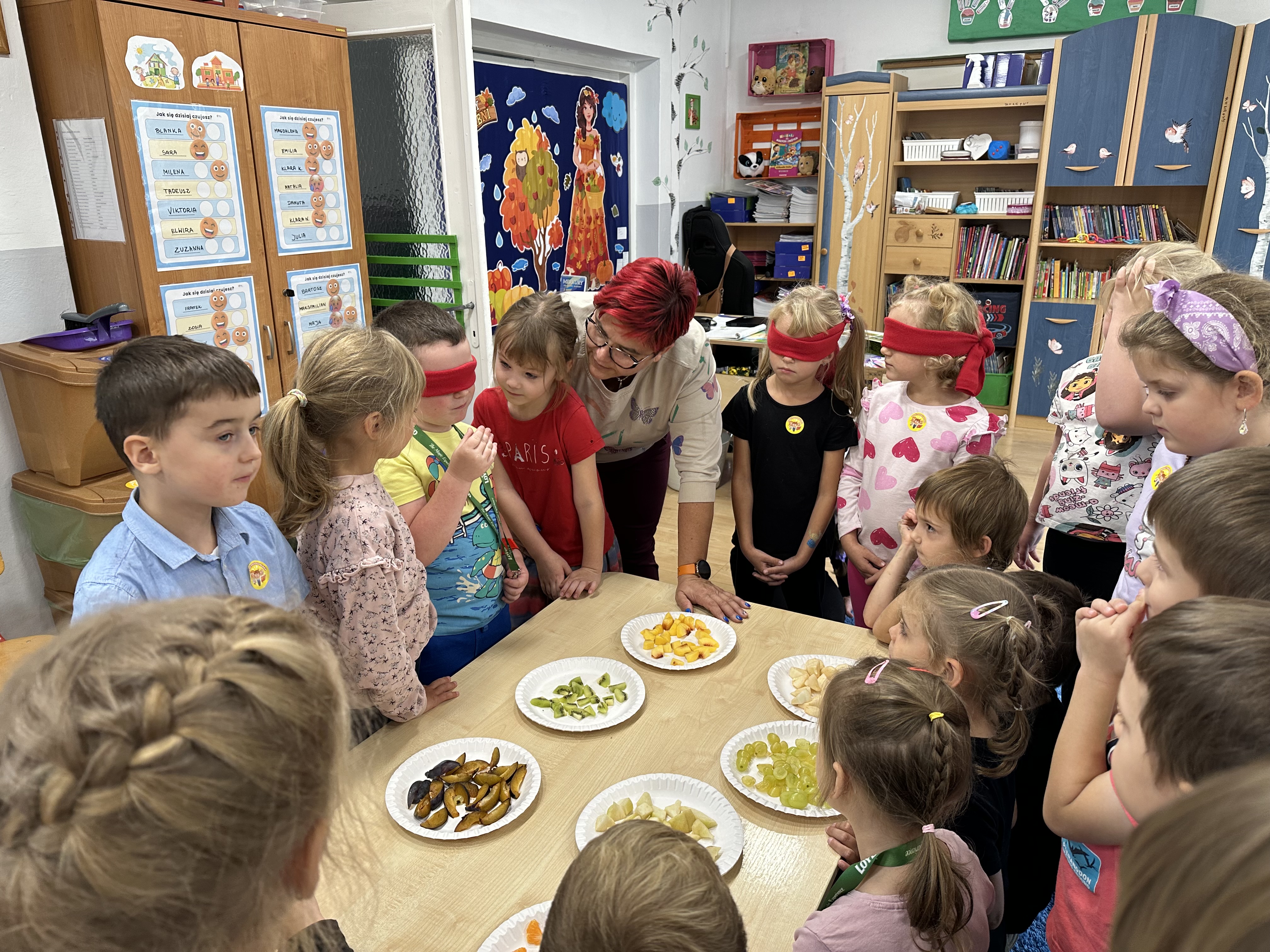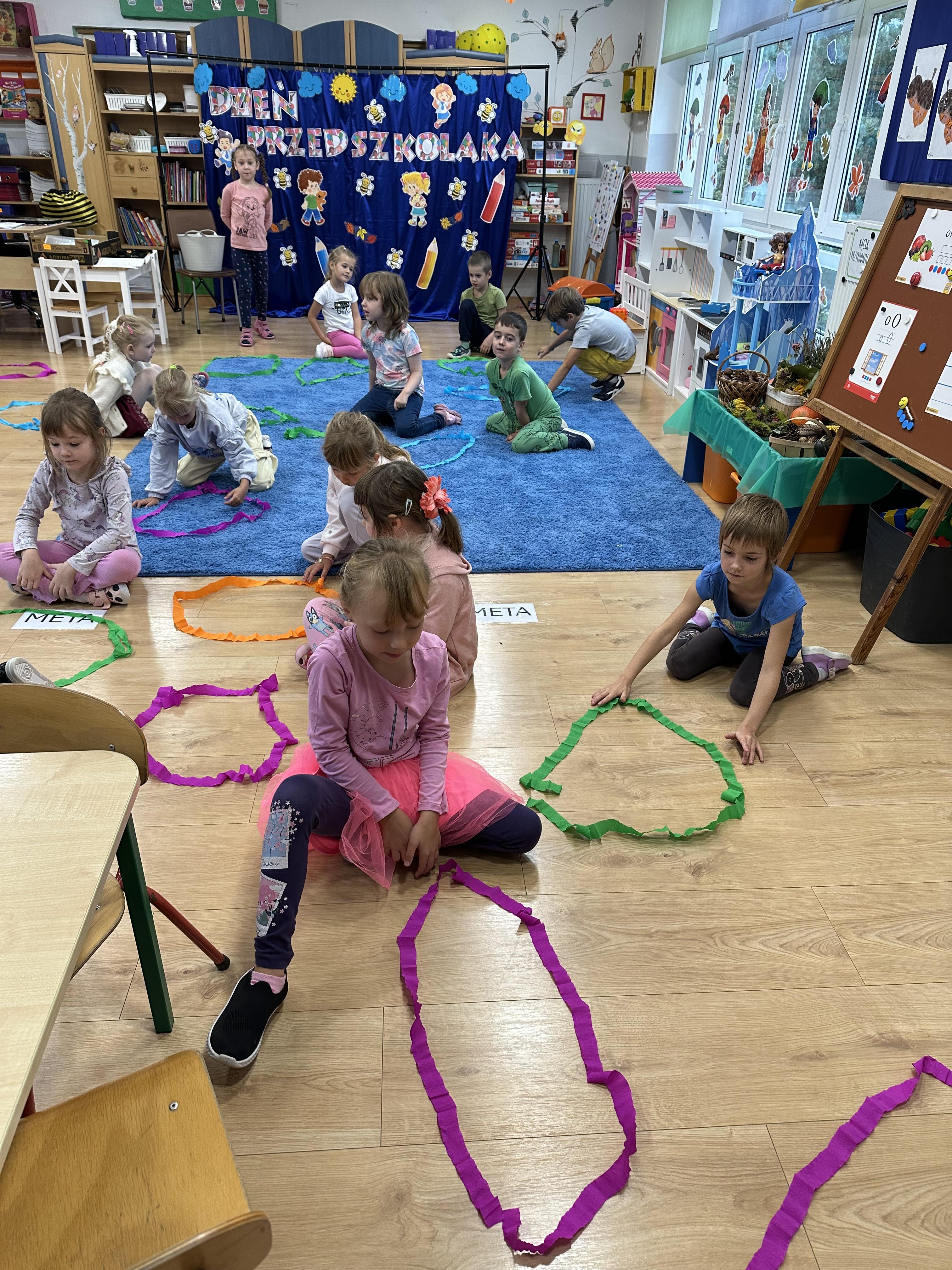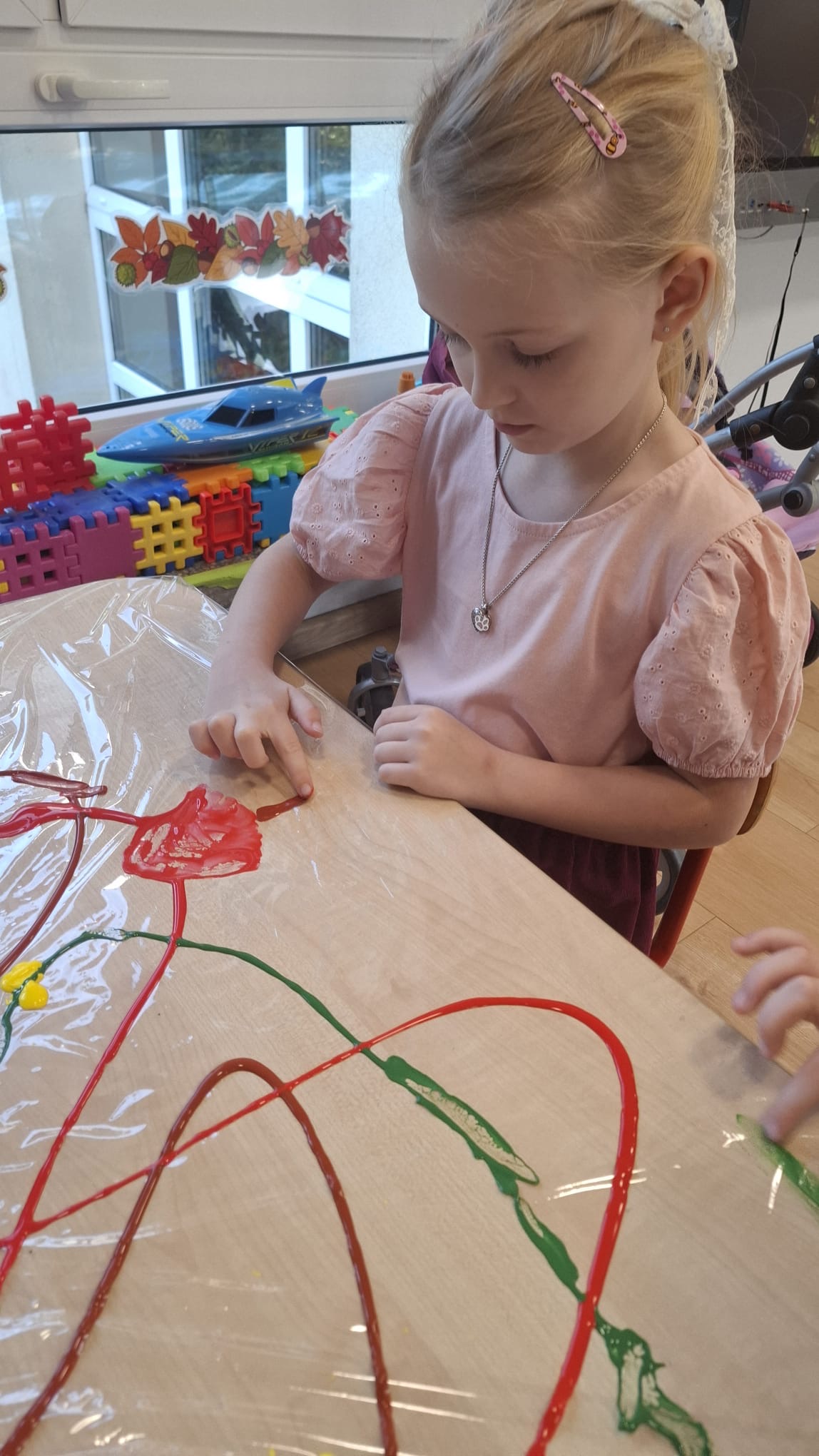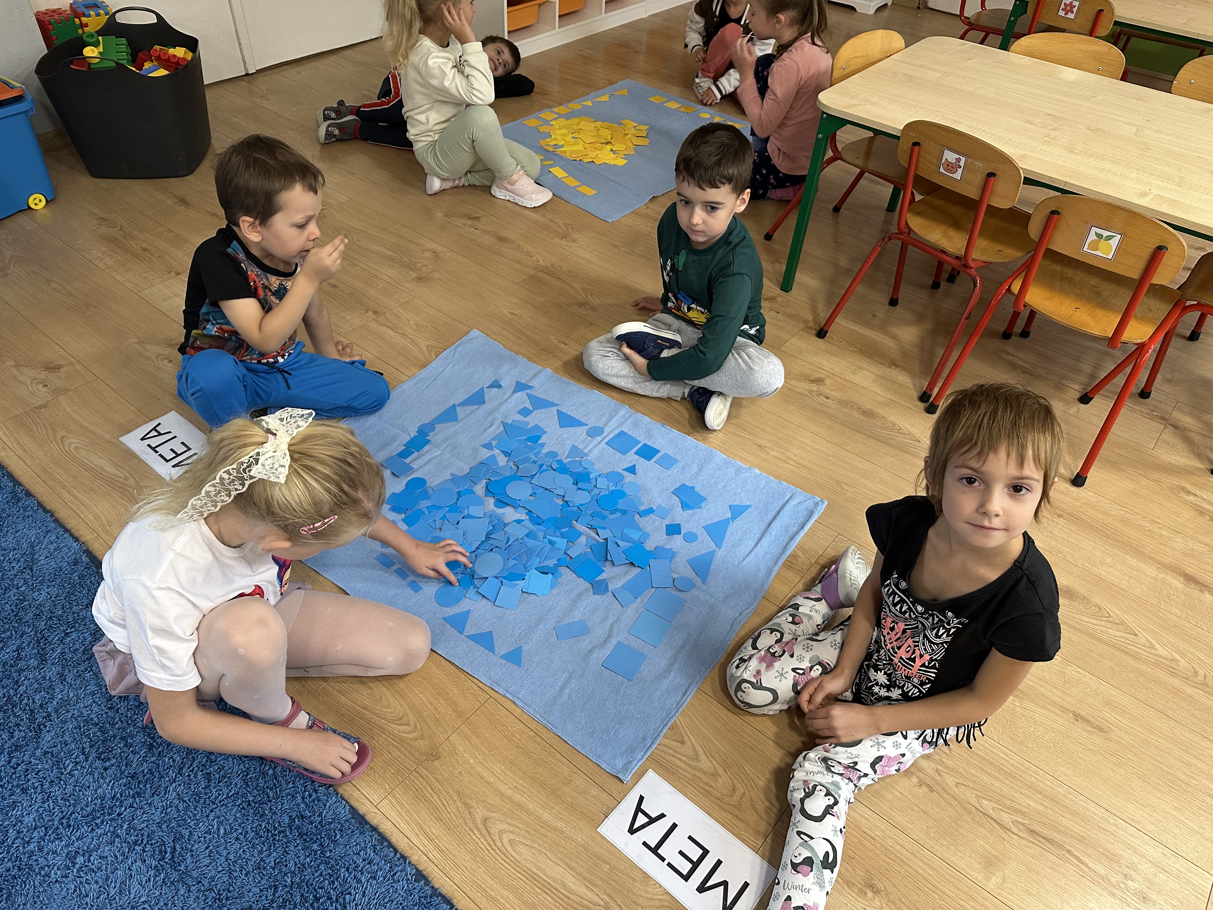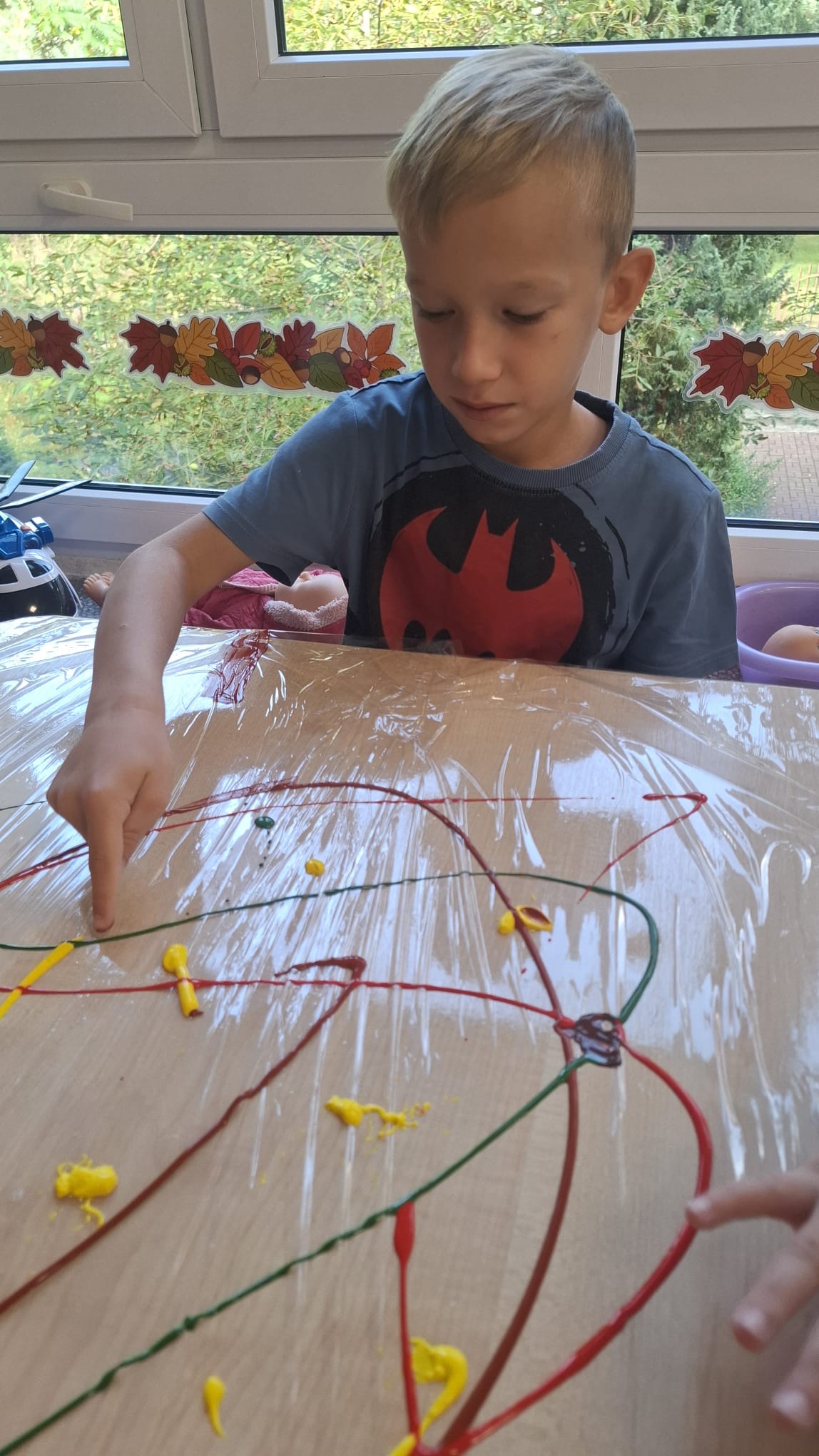 Za nami już czwarty tydzień w przedszkolu. W tym czasie dzieci zwracały szczególną uwagę na zmianę pory roku w złotą jesień, zapoznały się ze znakami drogowymi i ich kształtami oraz poznały nowe słówka w języku angielskim. Codziennie rano przedszkolaki śpiewały piosenkę ,,Jesień w naszej okolicy” i ilustrowały ją ruchem.