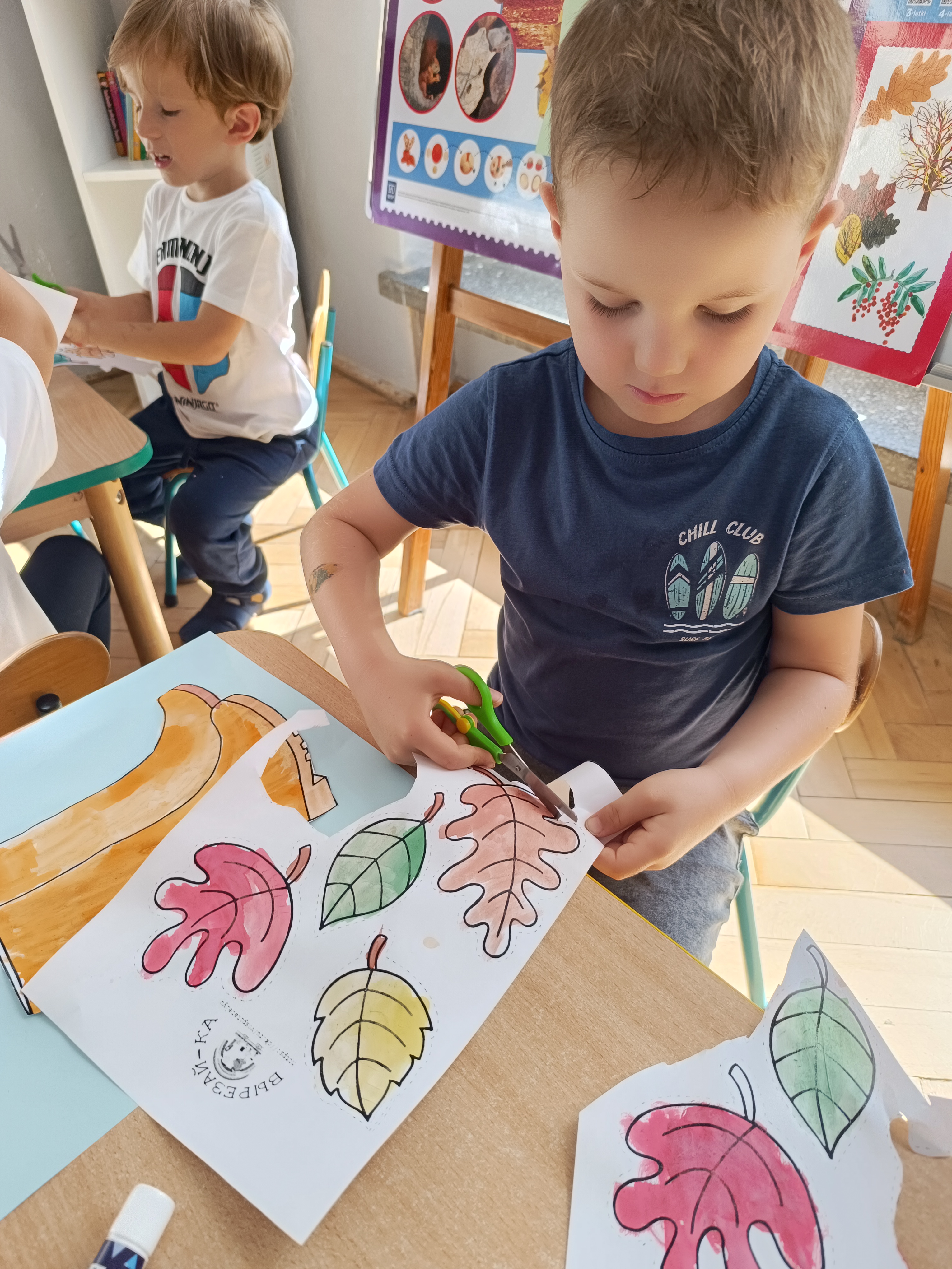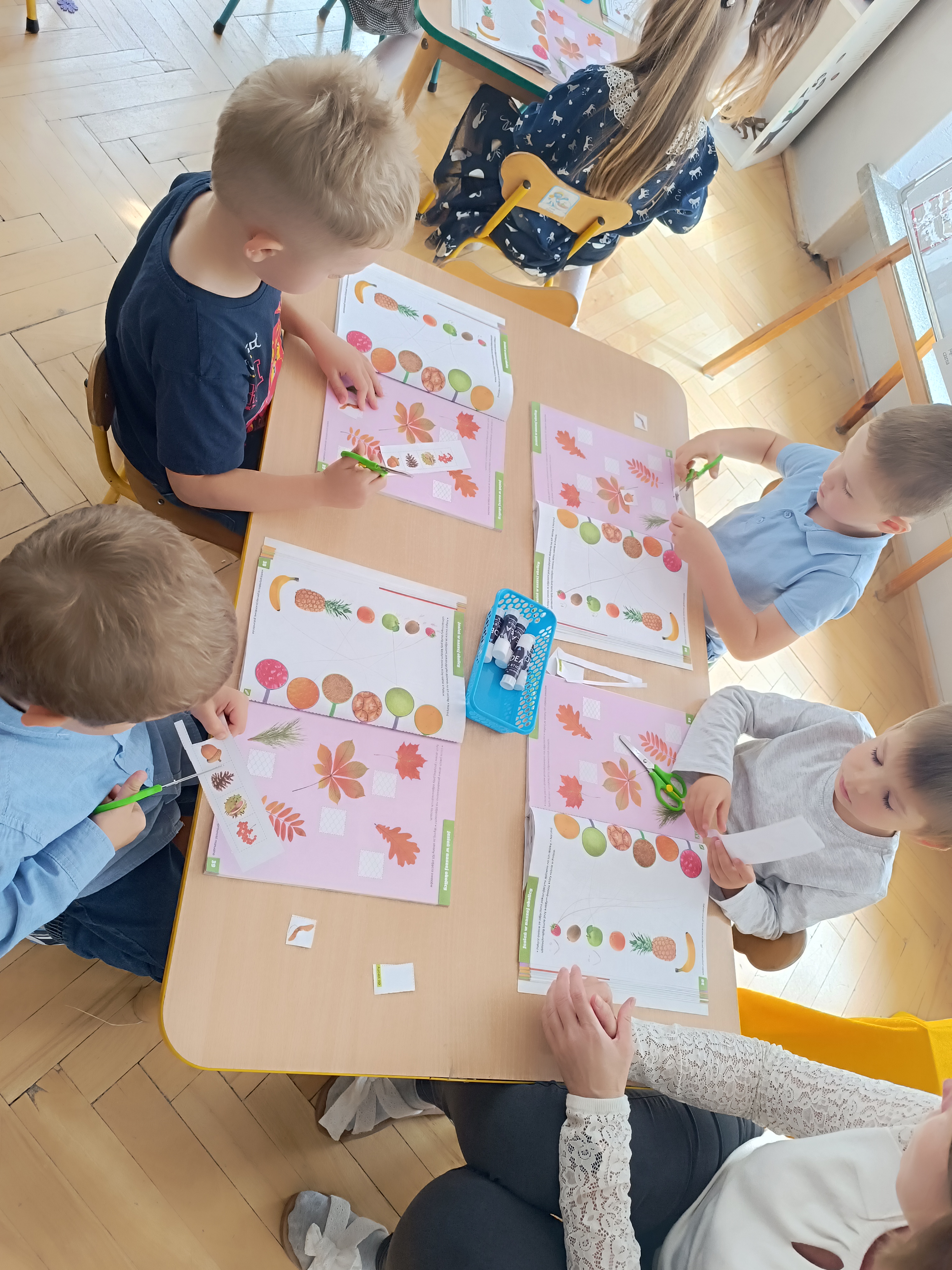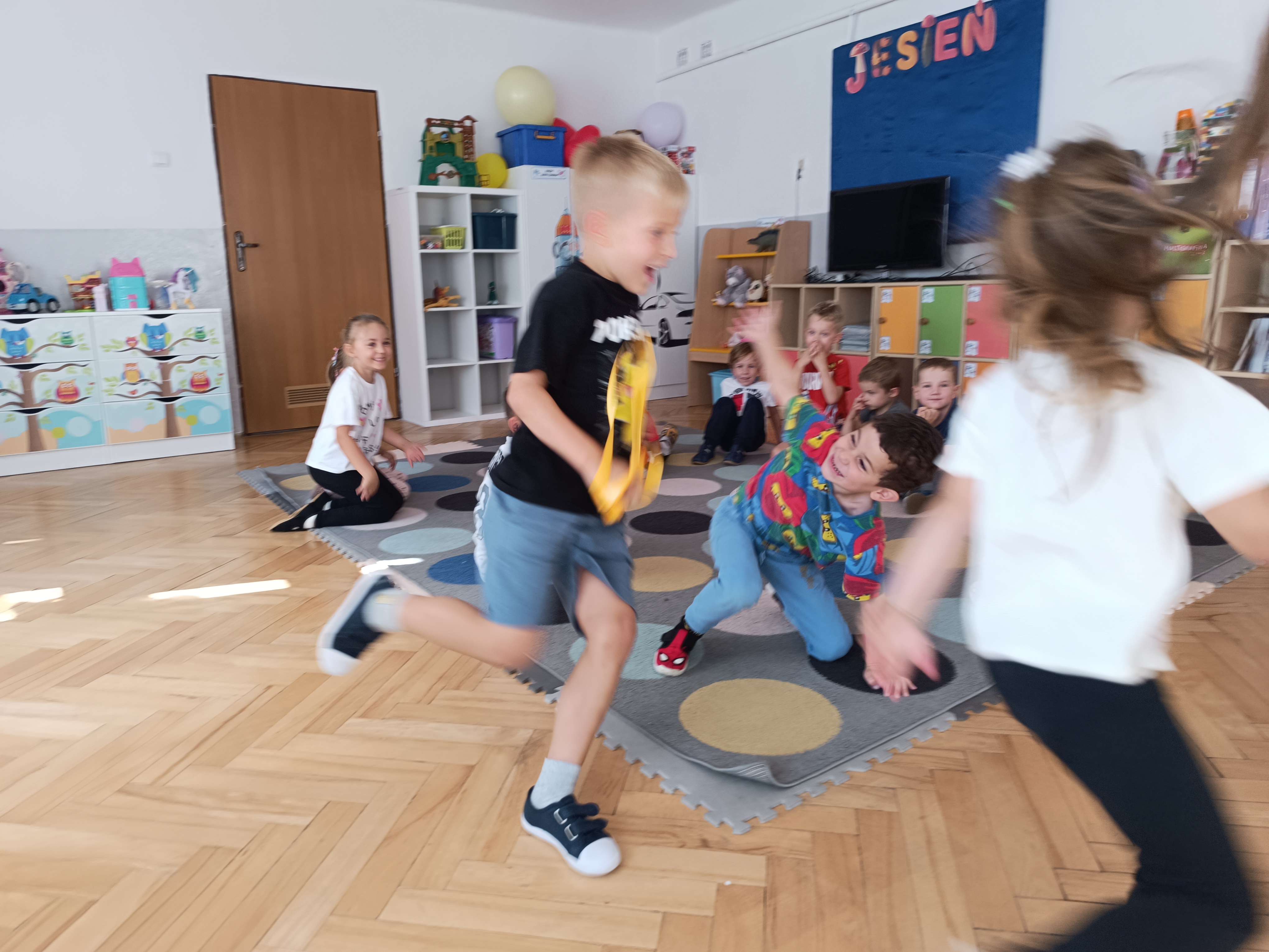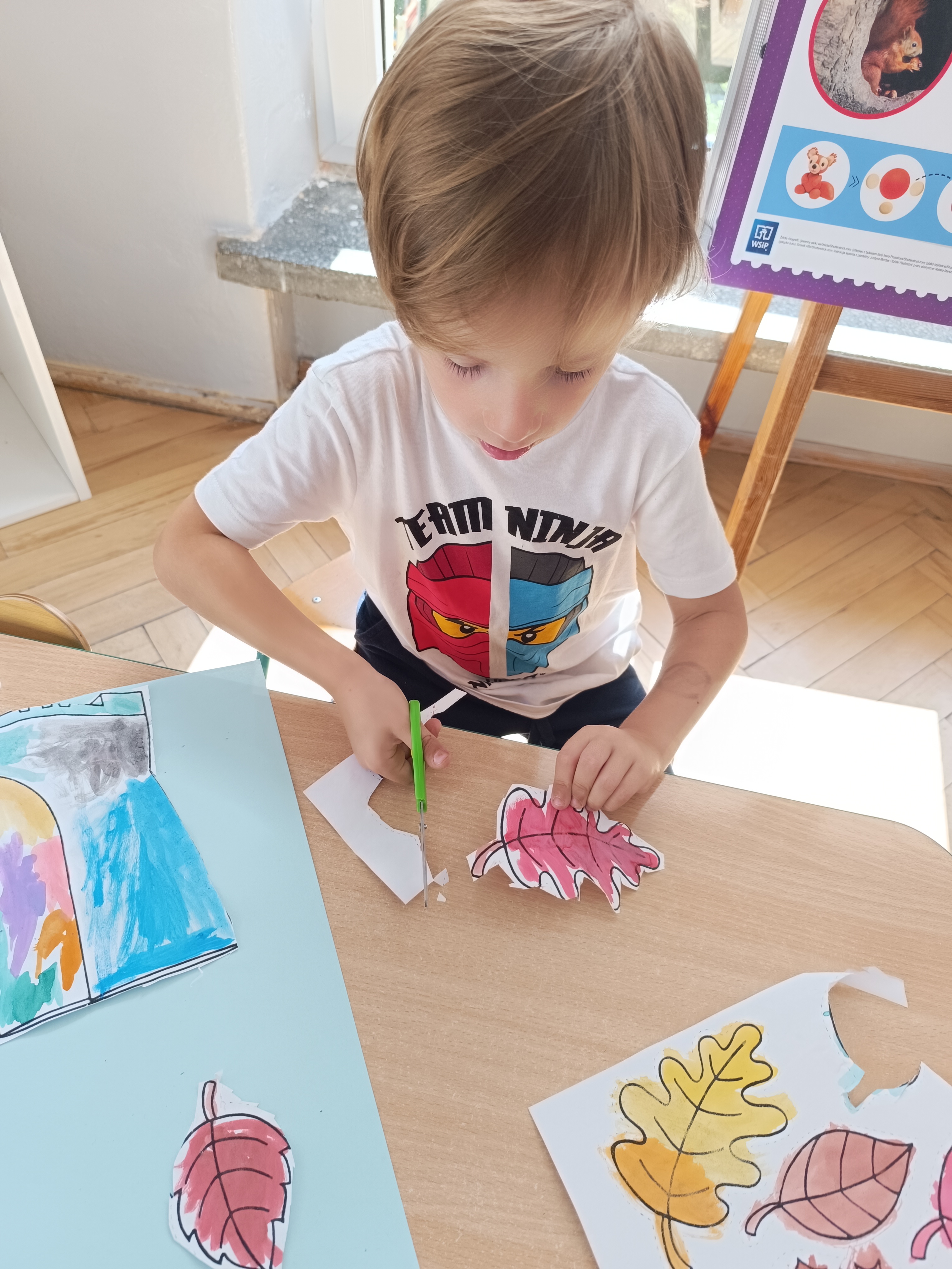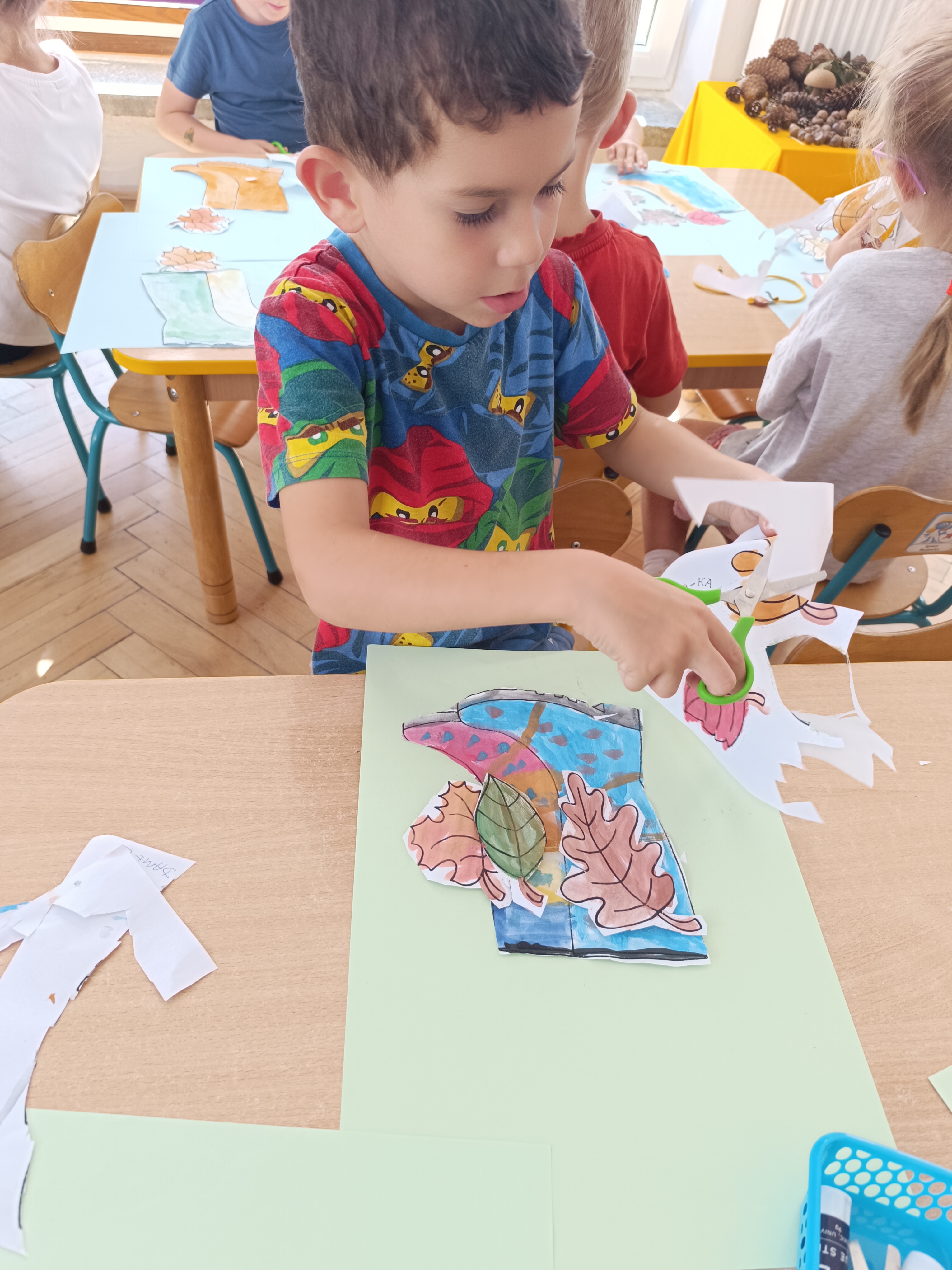 W tym tygodniu pracowaliśmy w naszych kartach pracy, uczestniczyliśmy w przeróżnych zabawach ruchowych, ruchowo muzycznych, zabawach na dywanie " Chodzi lisek" ; " Stary niedźwiedź" ; " Wiewiórki do dziupli hop" , uczyliśmy się piosenki " Kolorowe listki" naśladując ruchy naszej Pani.