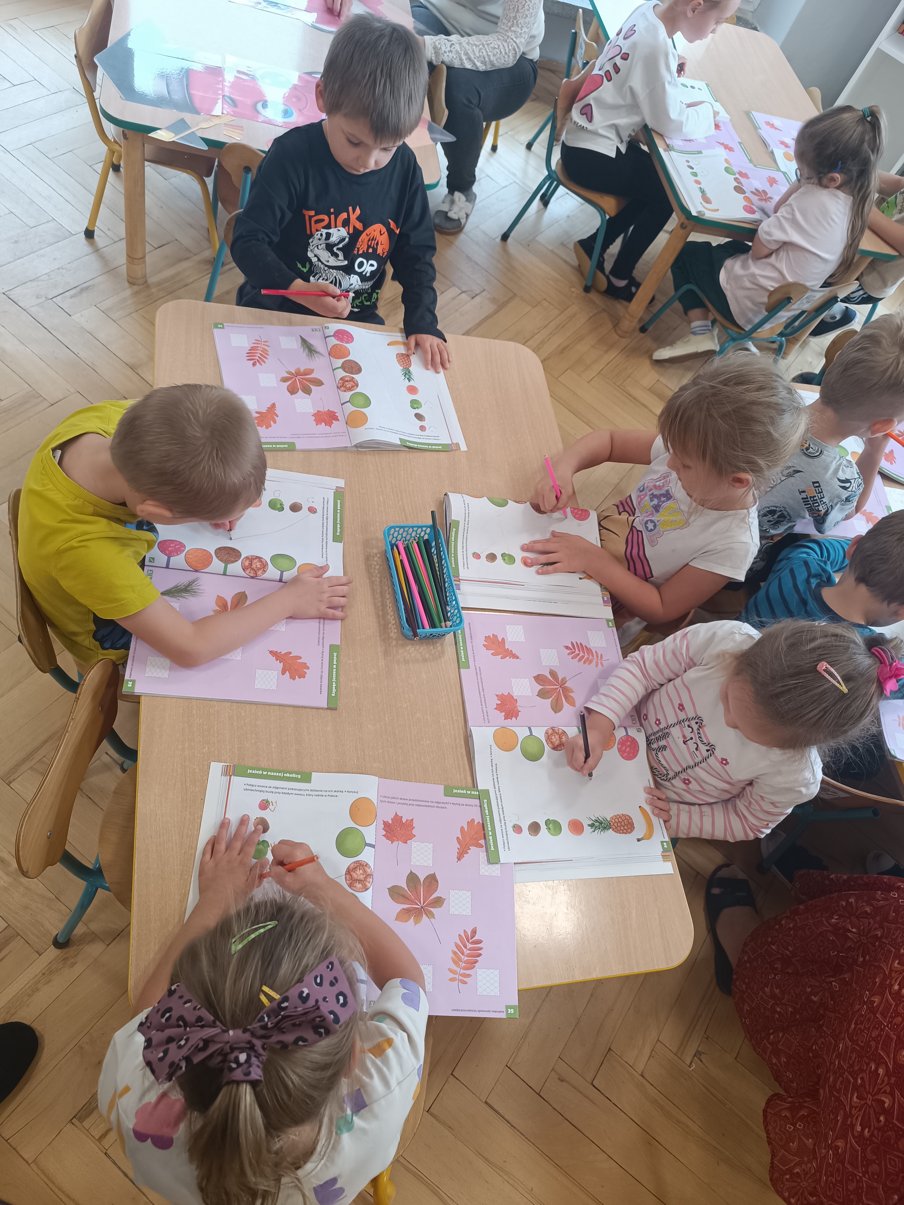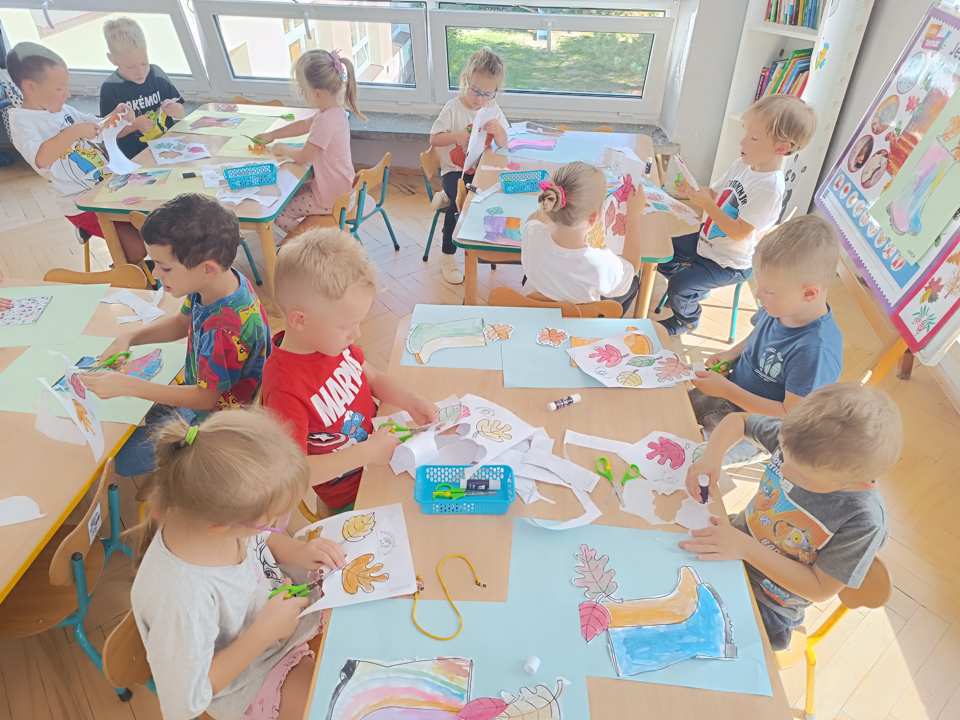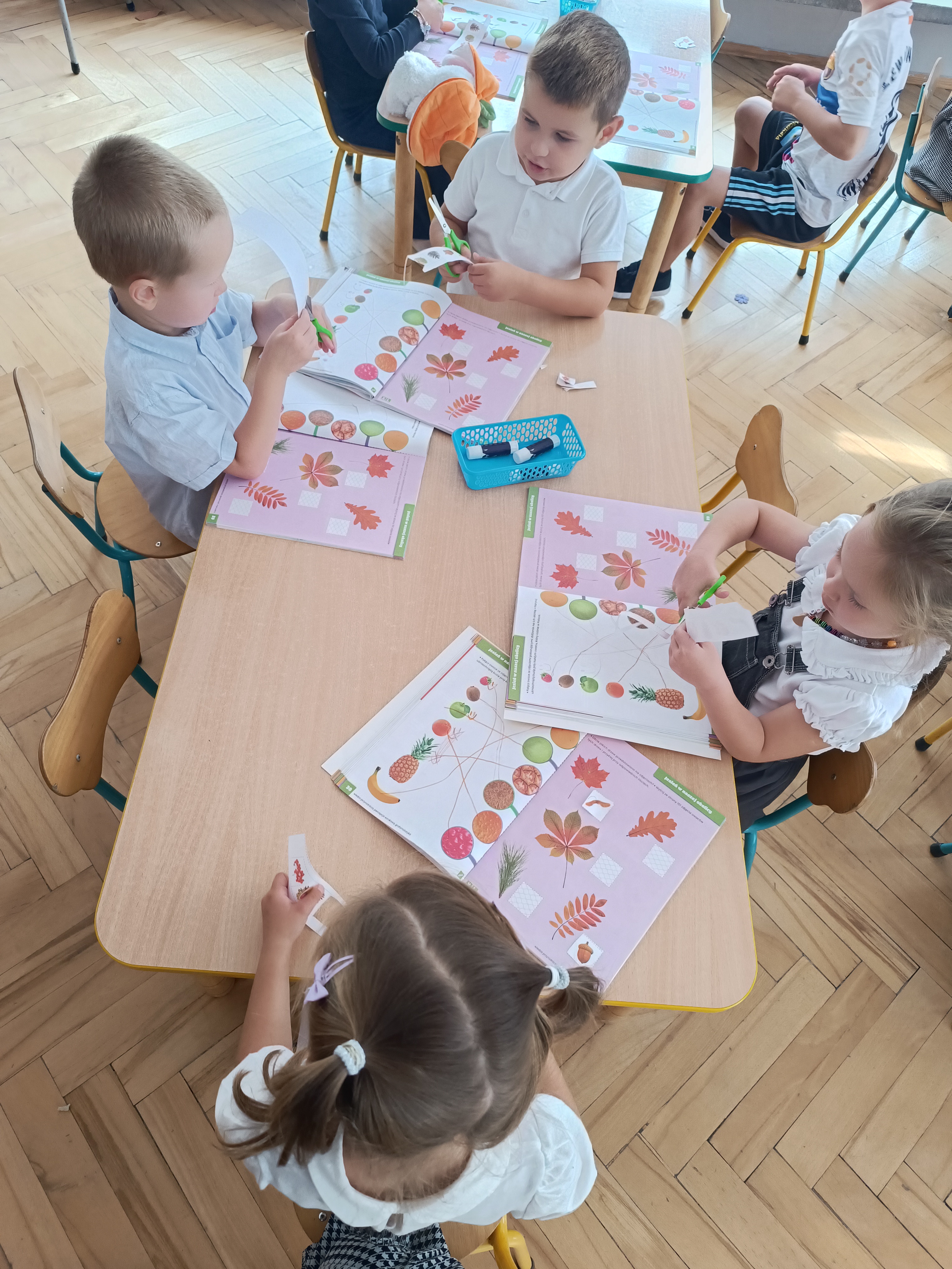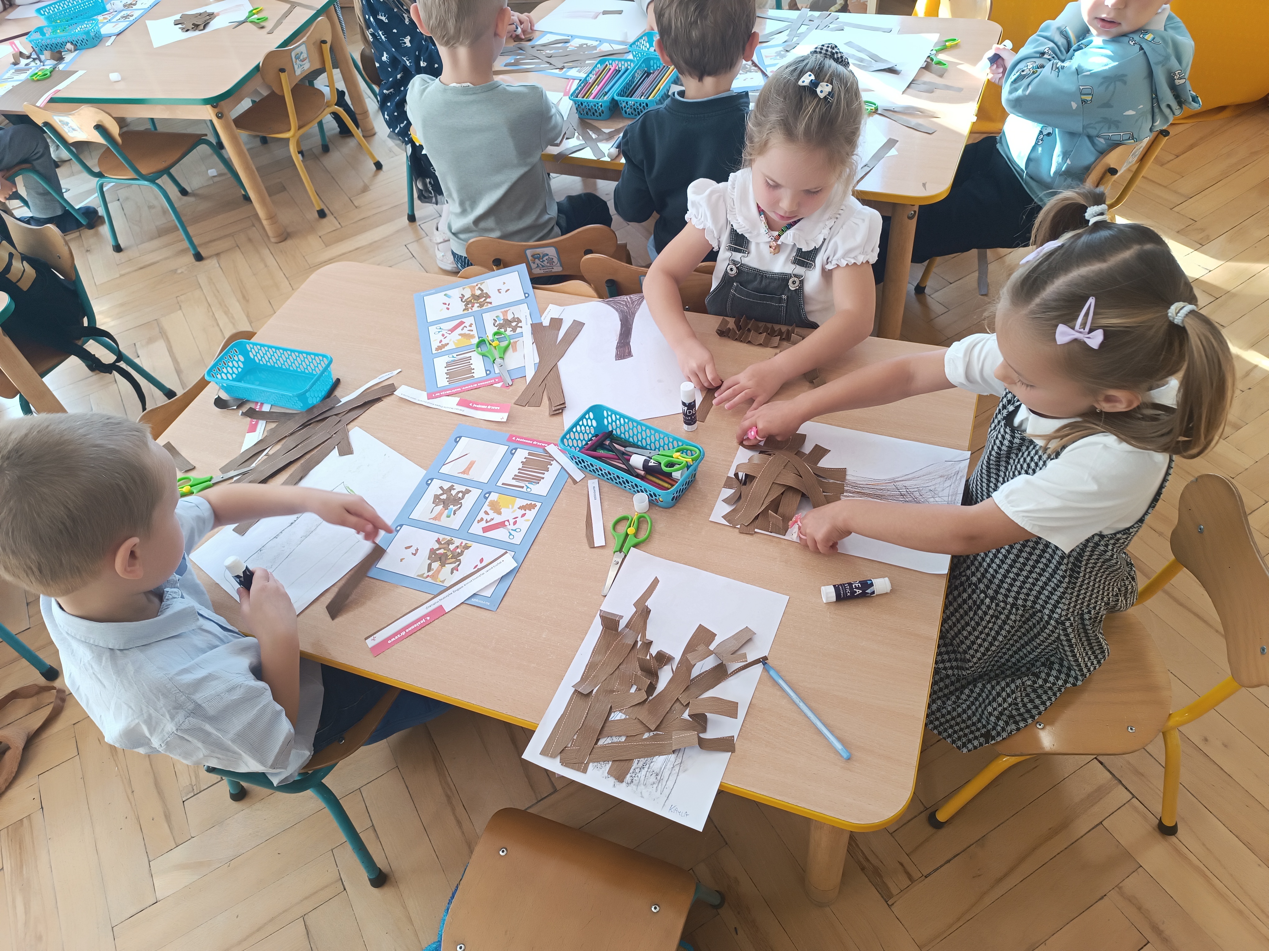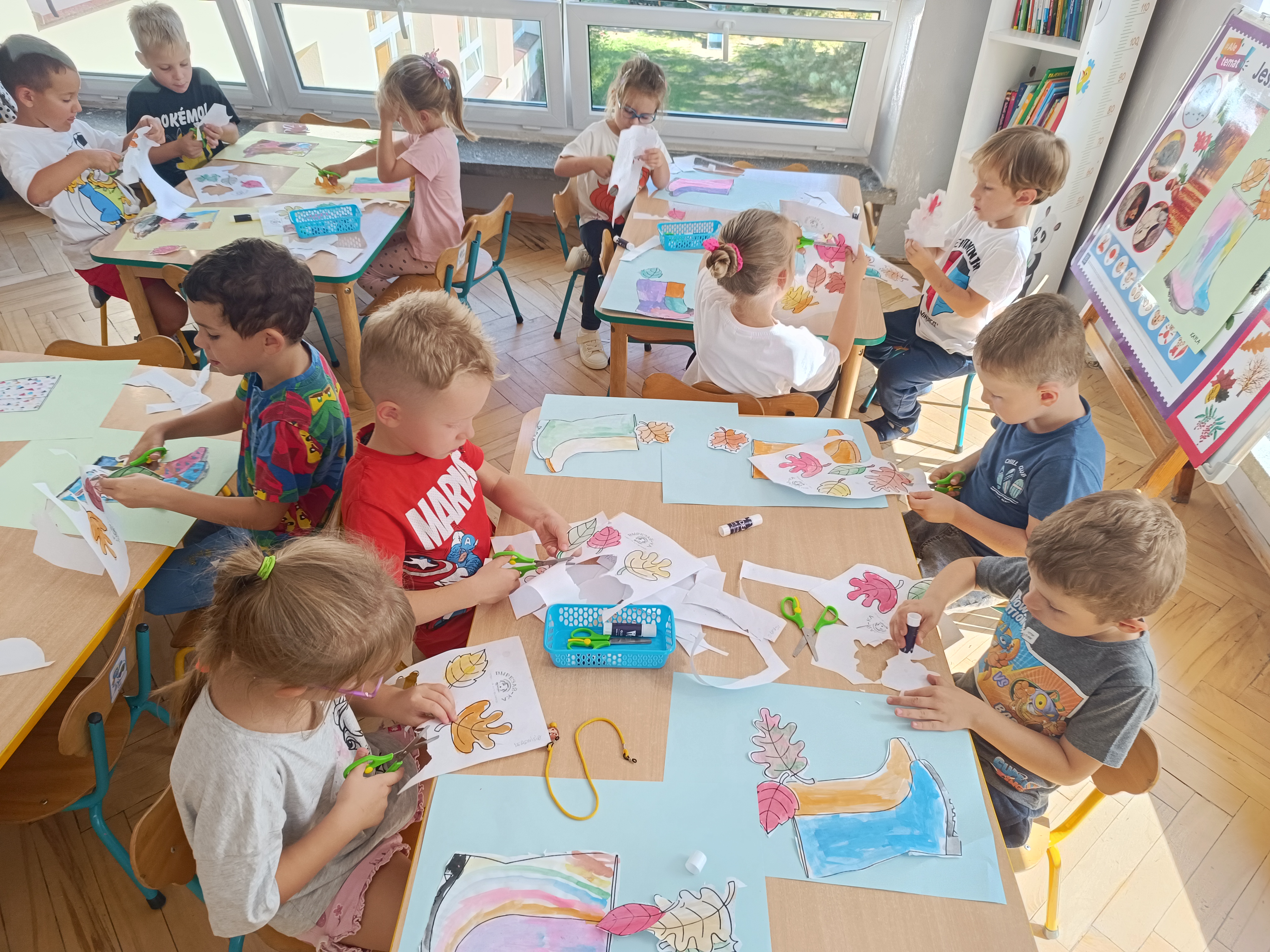 W tym tygodniu pracowaliśmy w naszych kartach pracy, uczestniczyliśmy w przeróżnych zabawach ruchowych, ruchowo muzycznych, zabawach na dywanie " Chodzi lisek" ; " Stary niedźwiedź" ; " Wiewiórki do dziupli hop" , uczyliśmy się piosenki " Kolorowe listki" naśladując ruchy naszej Pani.