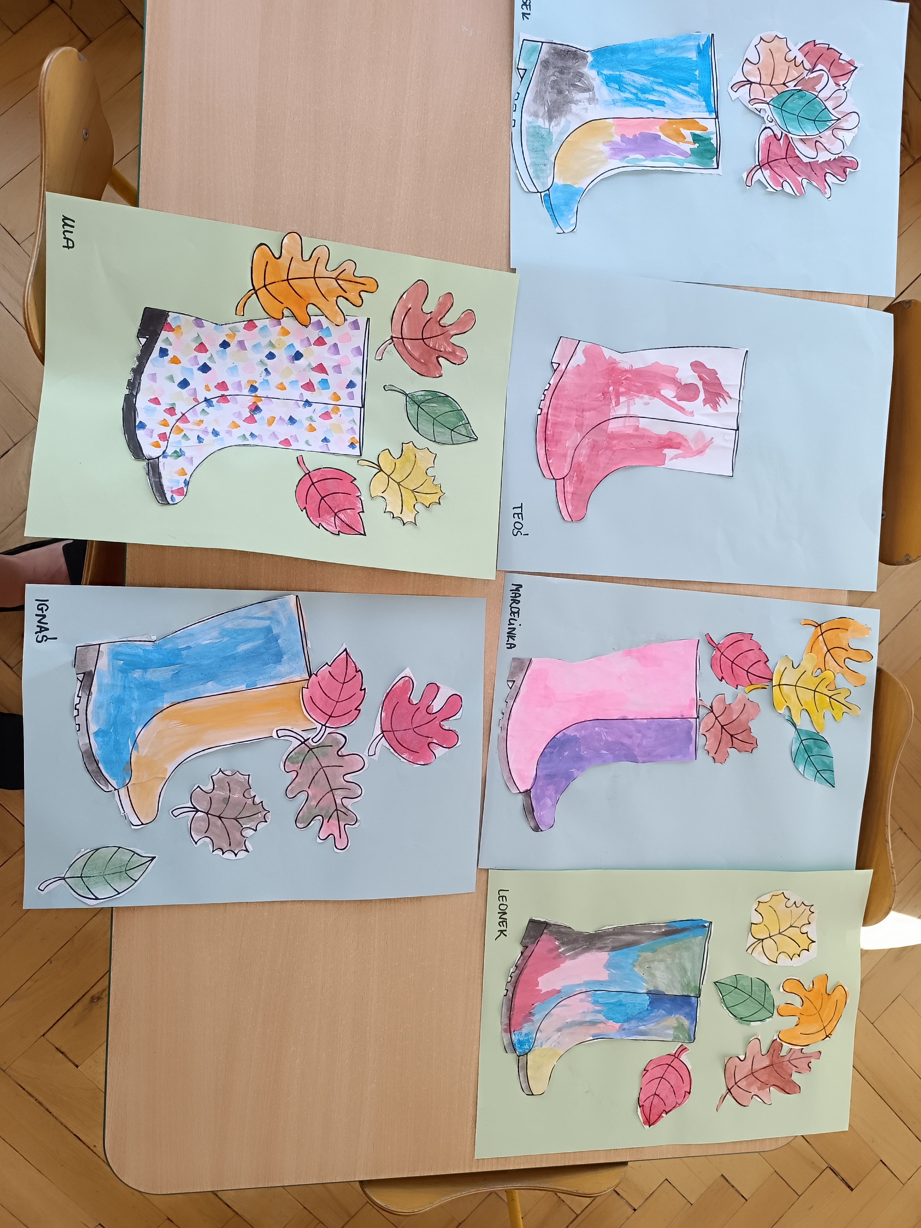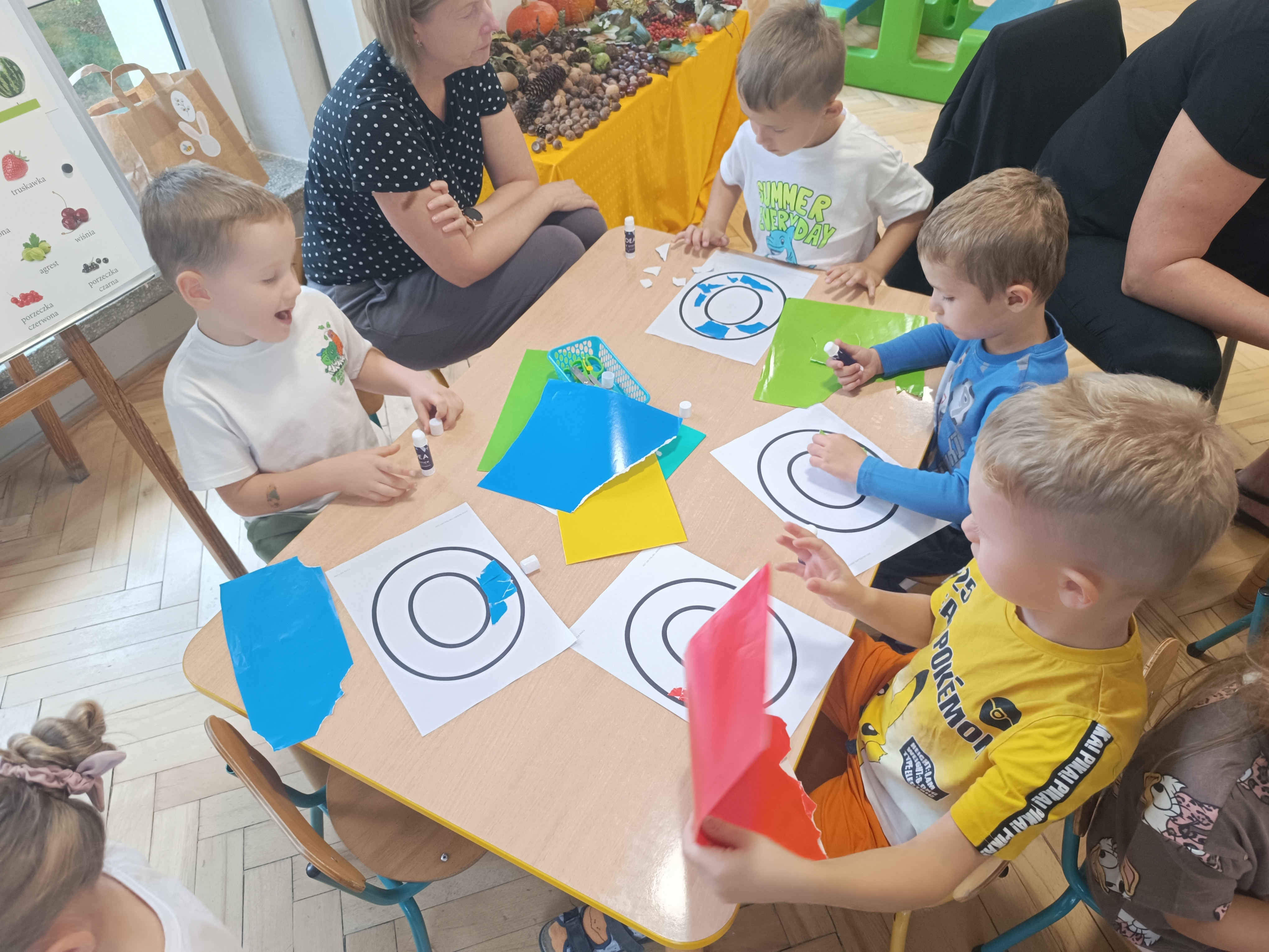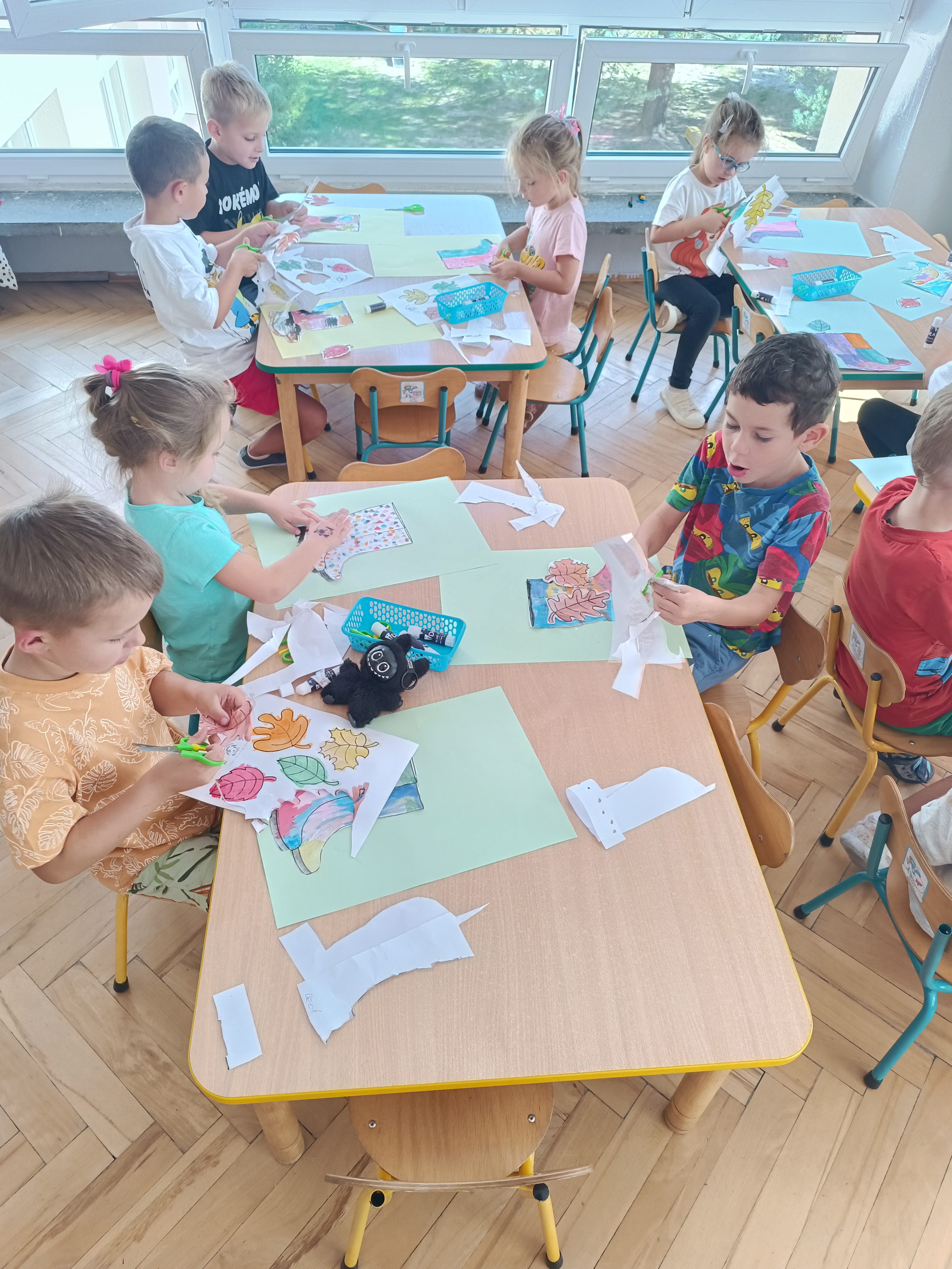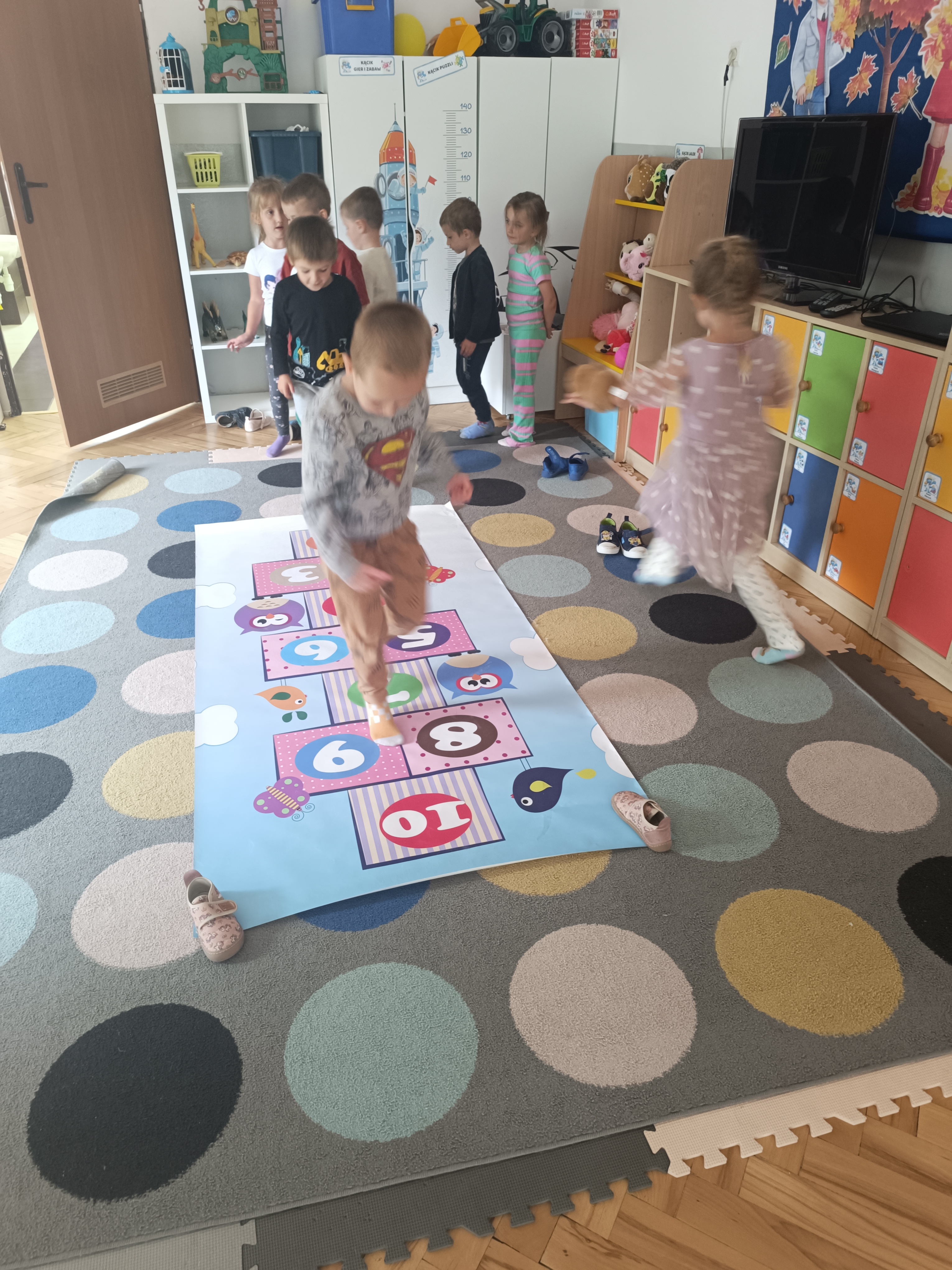 W tym tygodniu pracowaliśmy w naszych kartach pracy, uczestniczyliśmy w przeróżnych zabawach ruchowych, ruchowo muzycznych, zabawach na dywanie " Chodzi lisek" ; " Stary niedźwiedź" ; " Wiewiórki do dziupli hop" , uczyliśmy się piosenki " Kolorowe listki" naśladując ruchy naszej Pani.