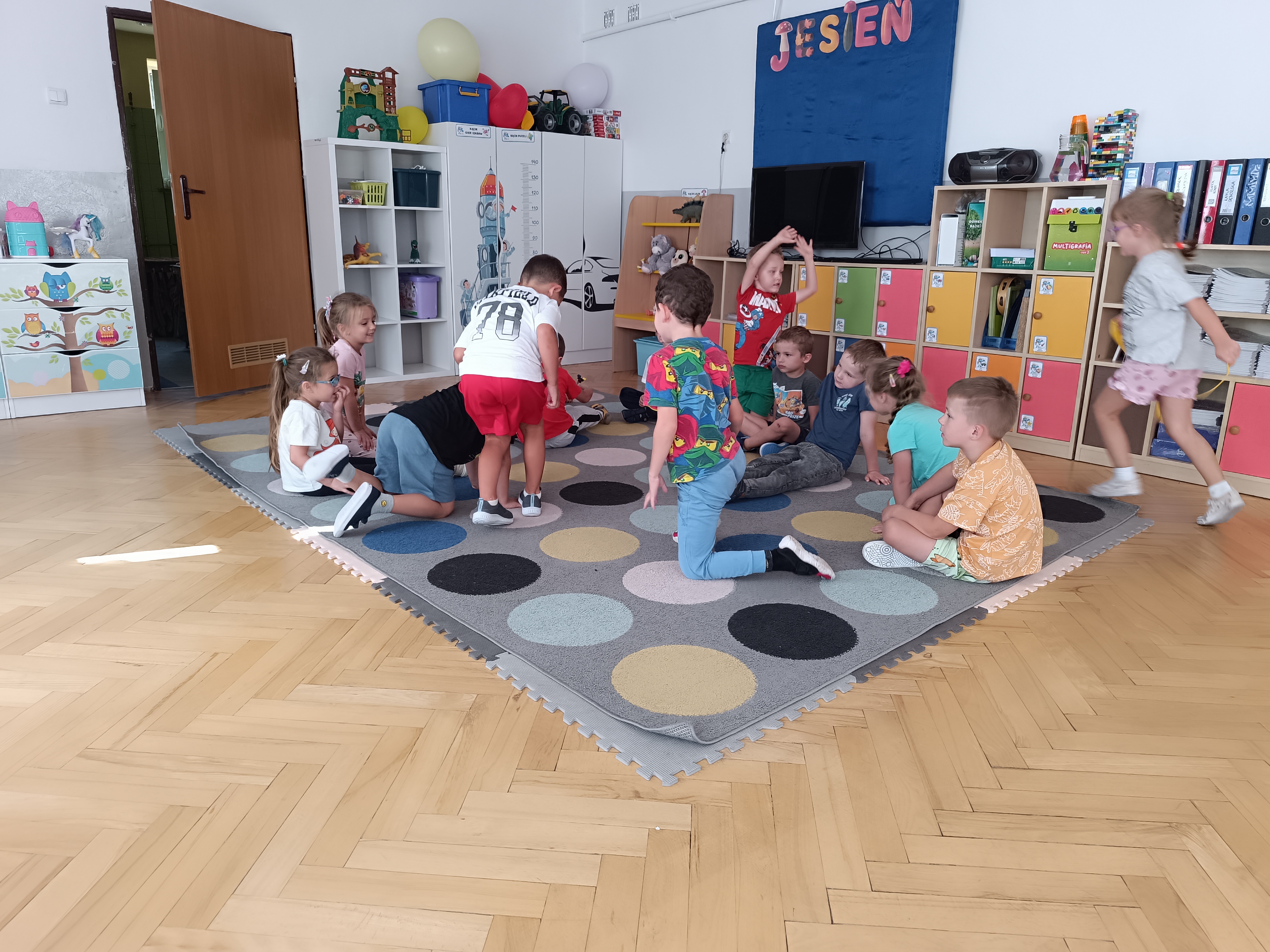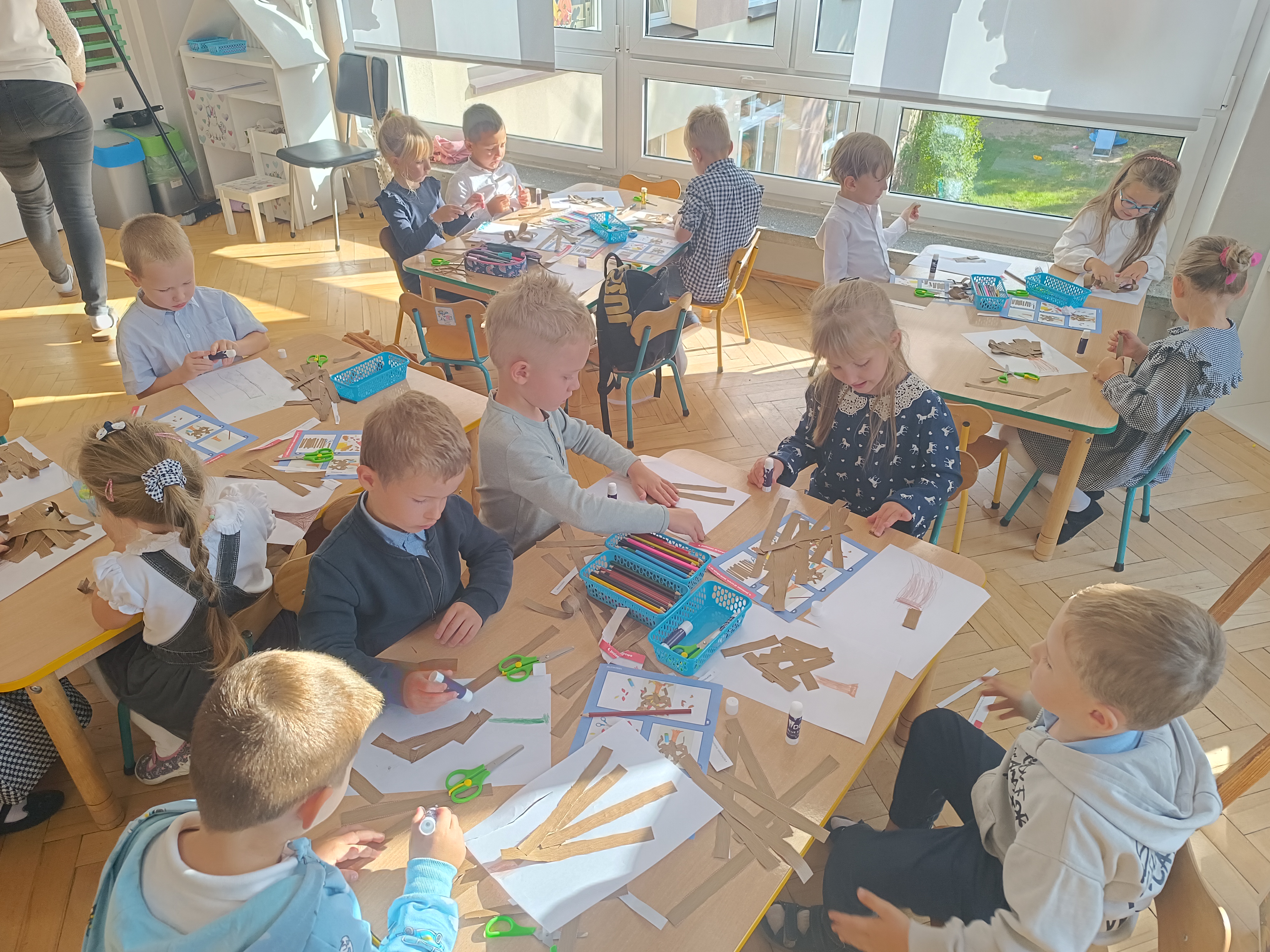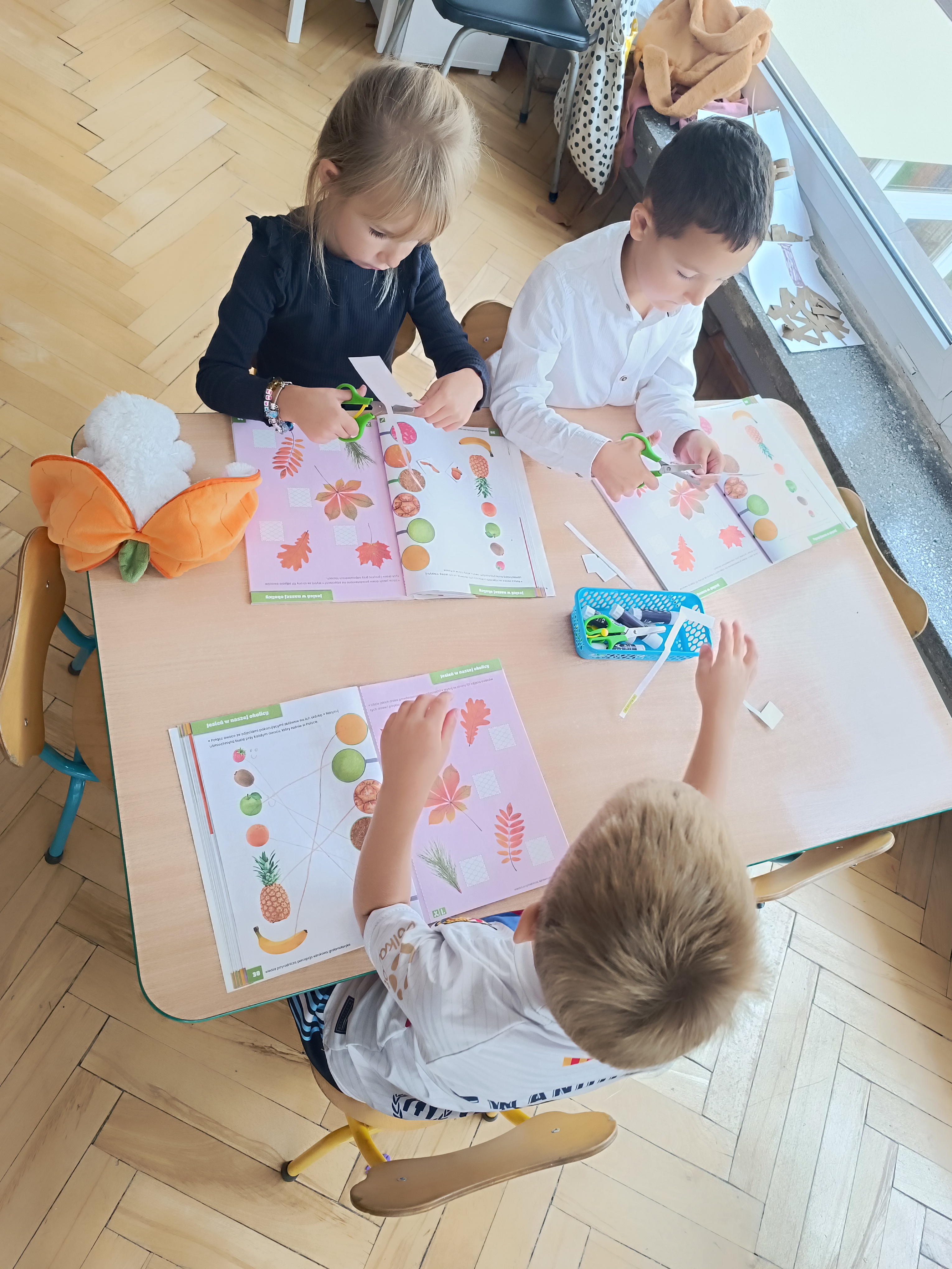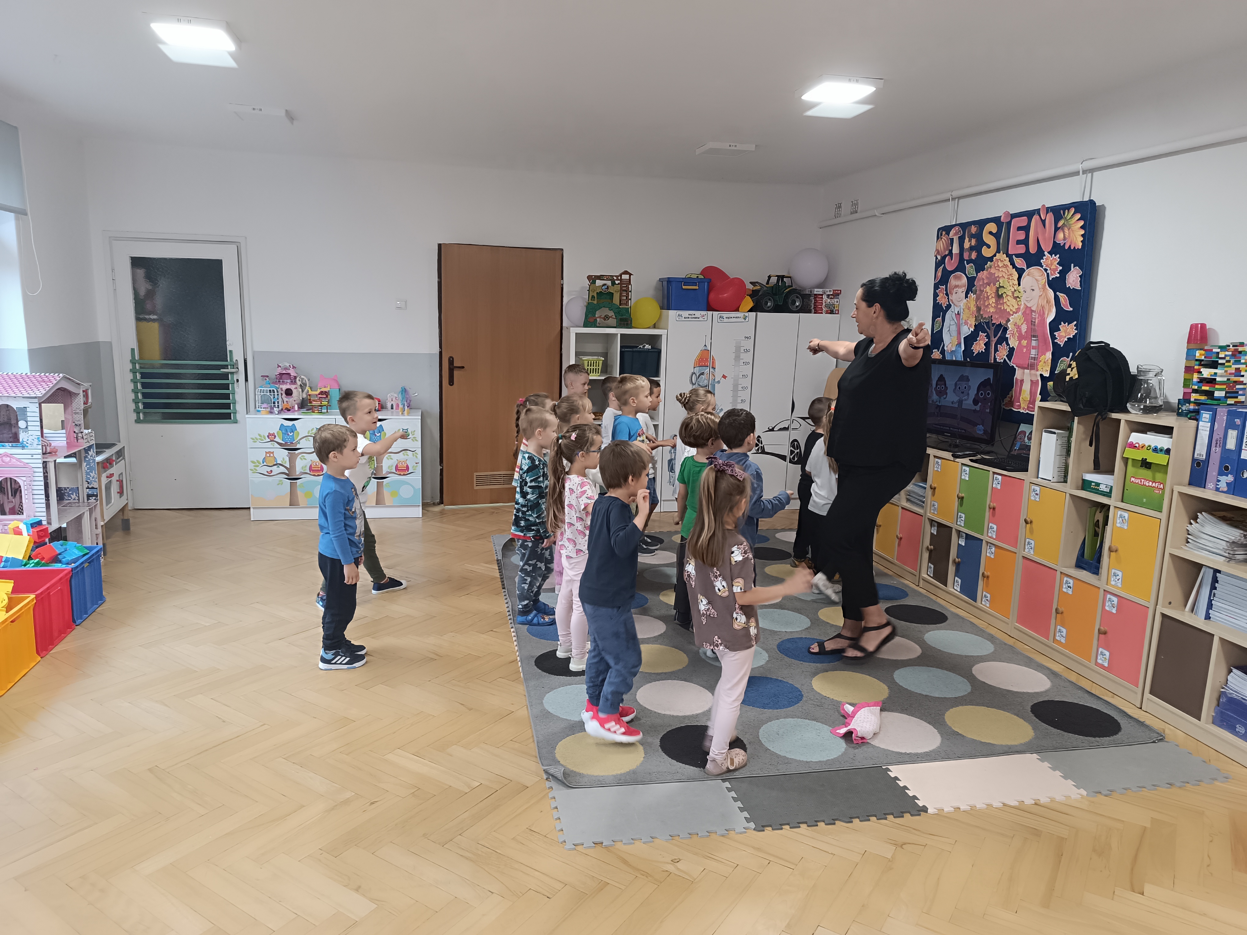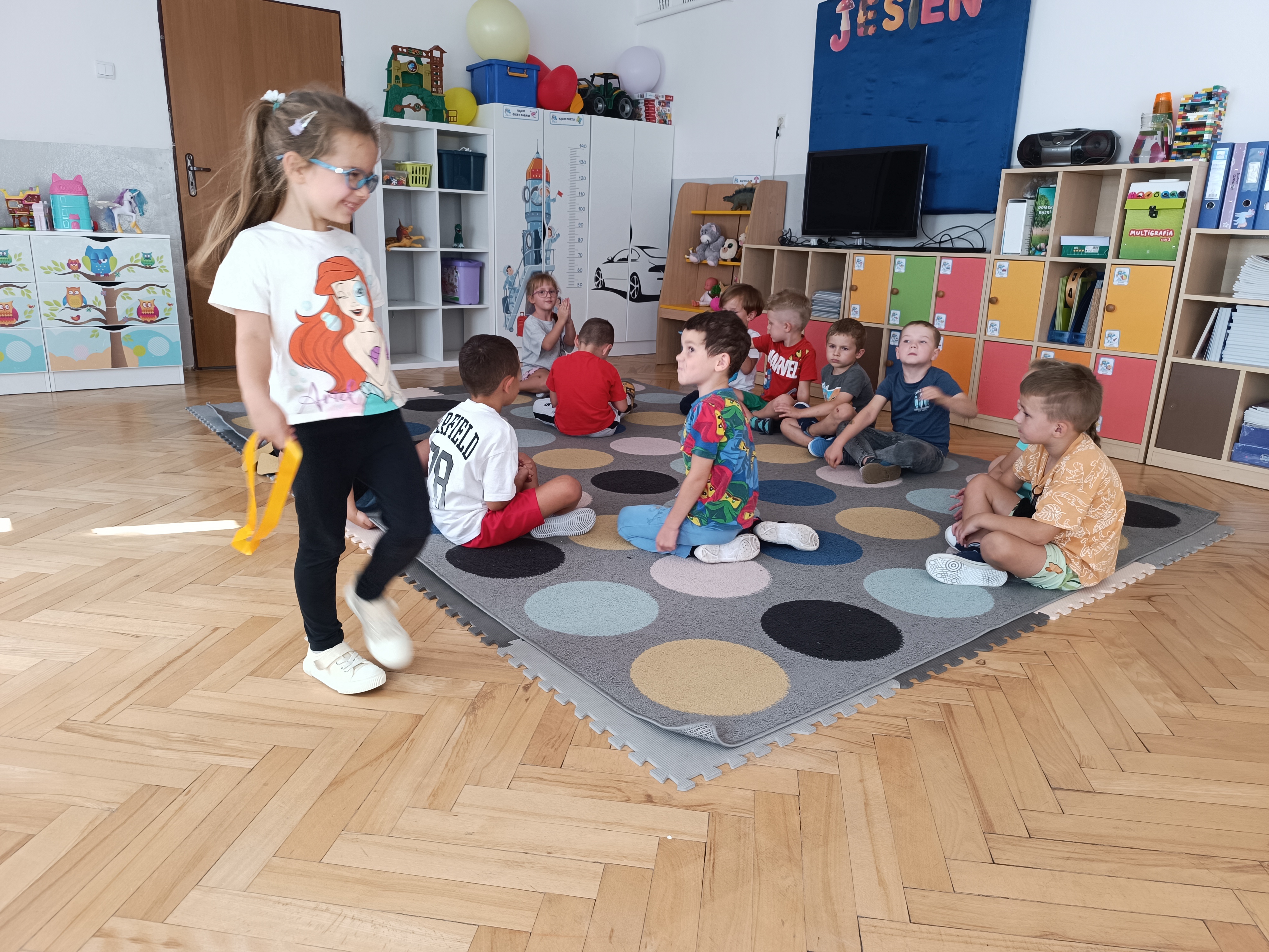W tym tygodniu pracowaliśmy w naszych kartach pracy, uczestniczyliśmy w przeróżnych zabawach ruchowych, ruchowo muzycznych, zabawach na dywanie " Chodzi lisek" ; " Stary niedźwiedź" ; " Wiewiórki do dziupli hop" , uczyliśmy się piosenki " Kolorowe listki" naśladując ruchy naszej Pani.