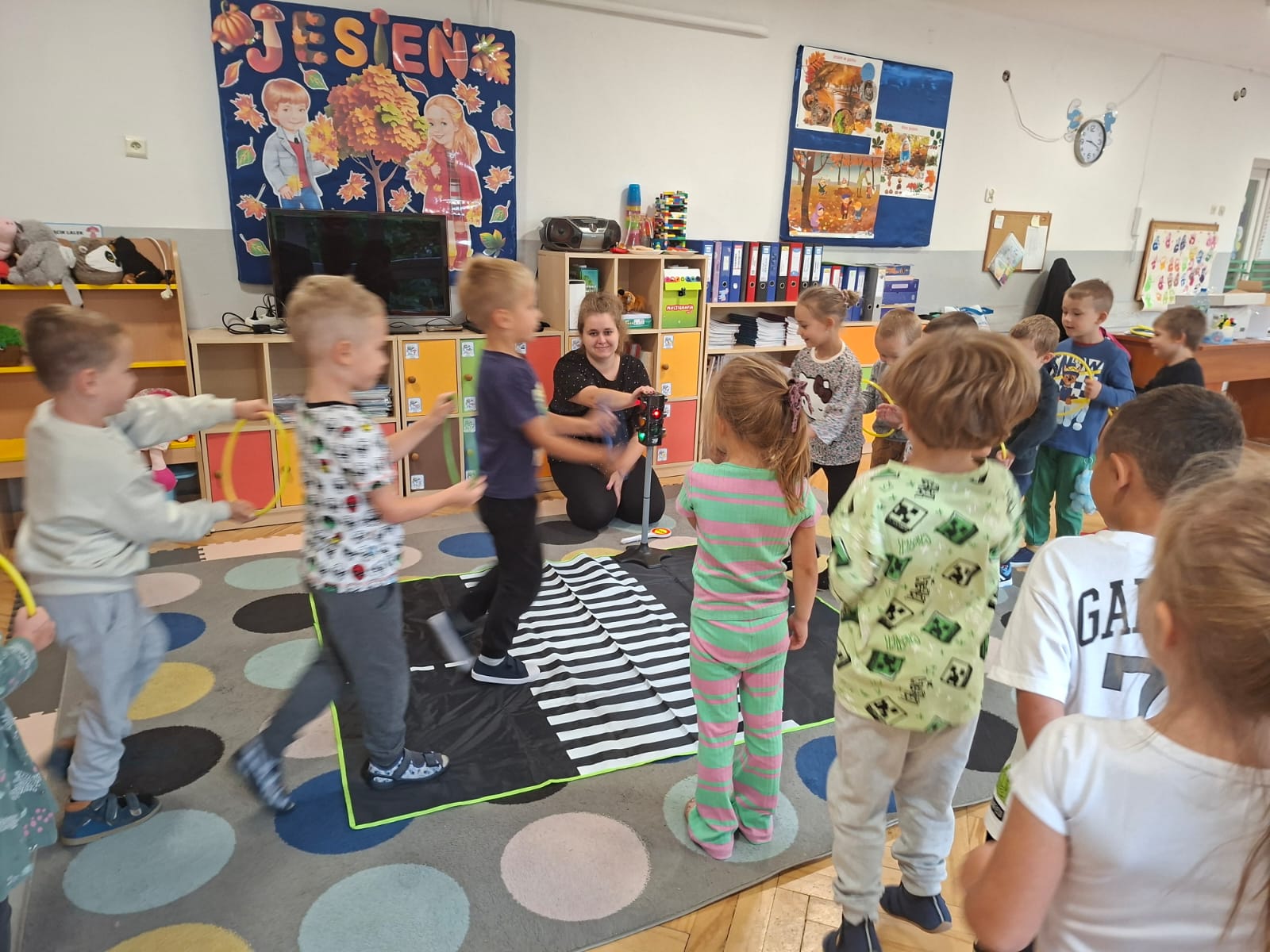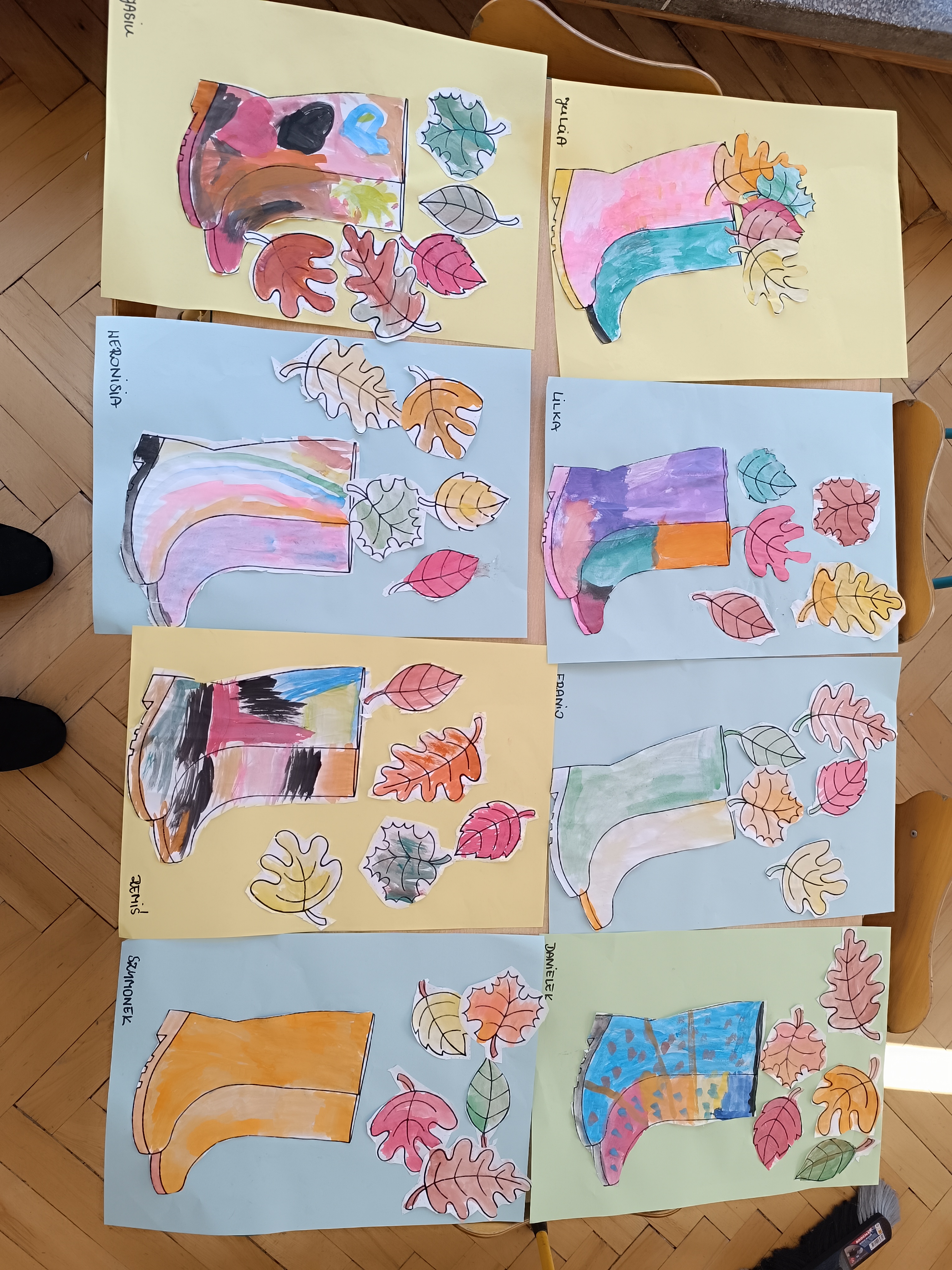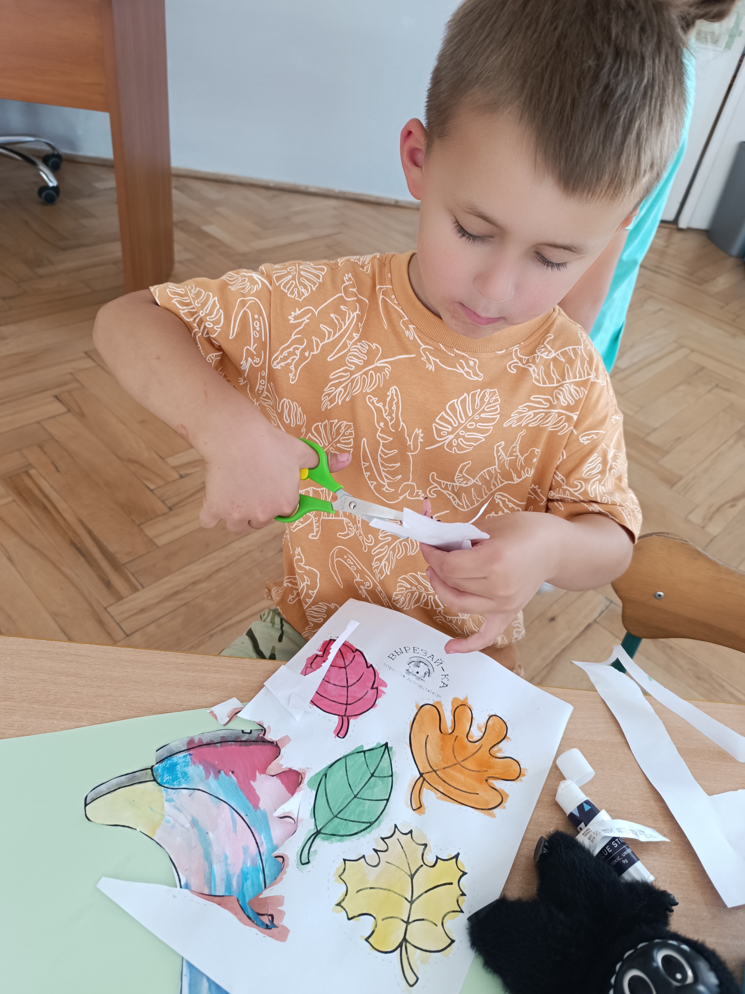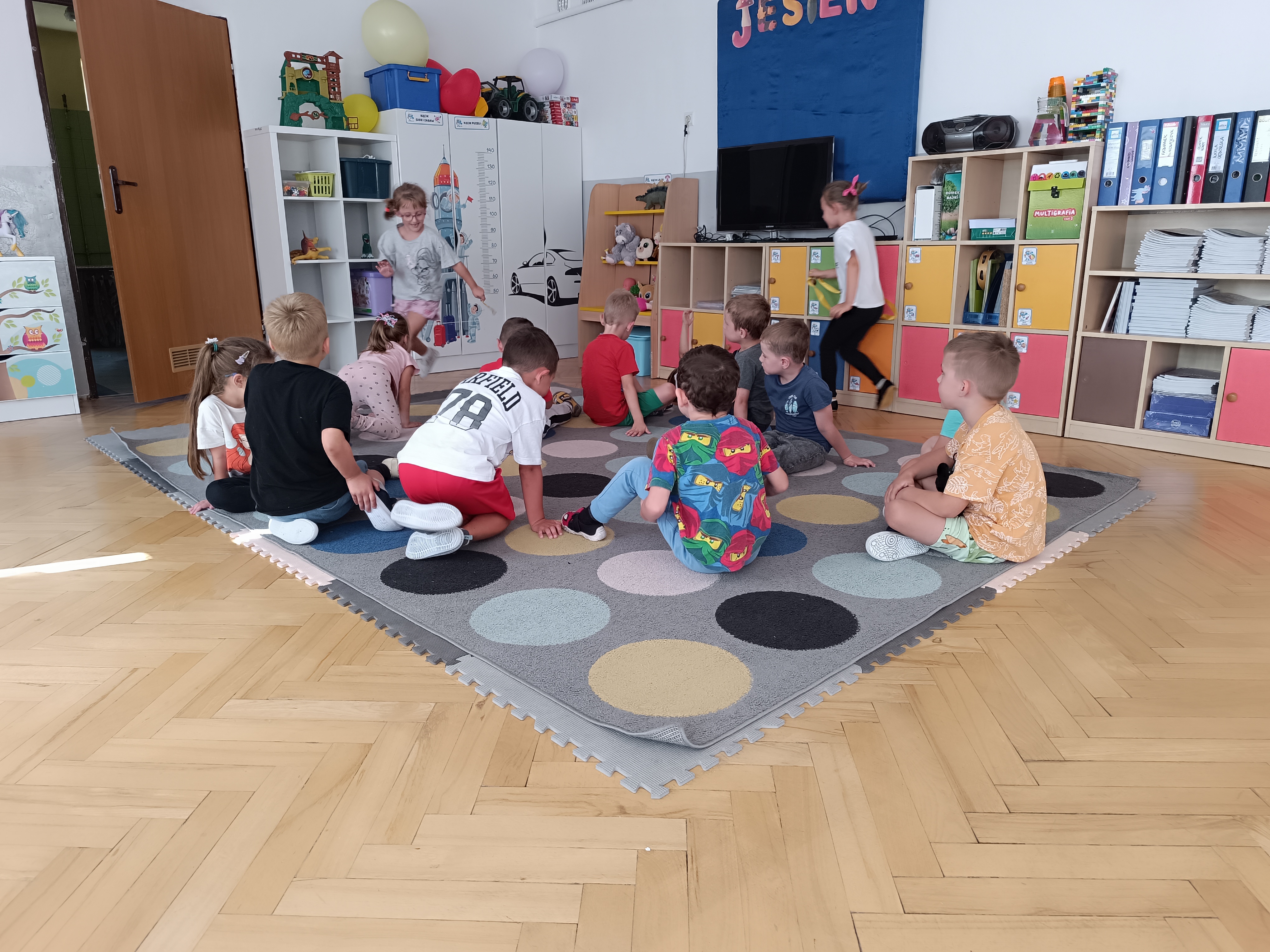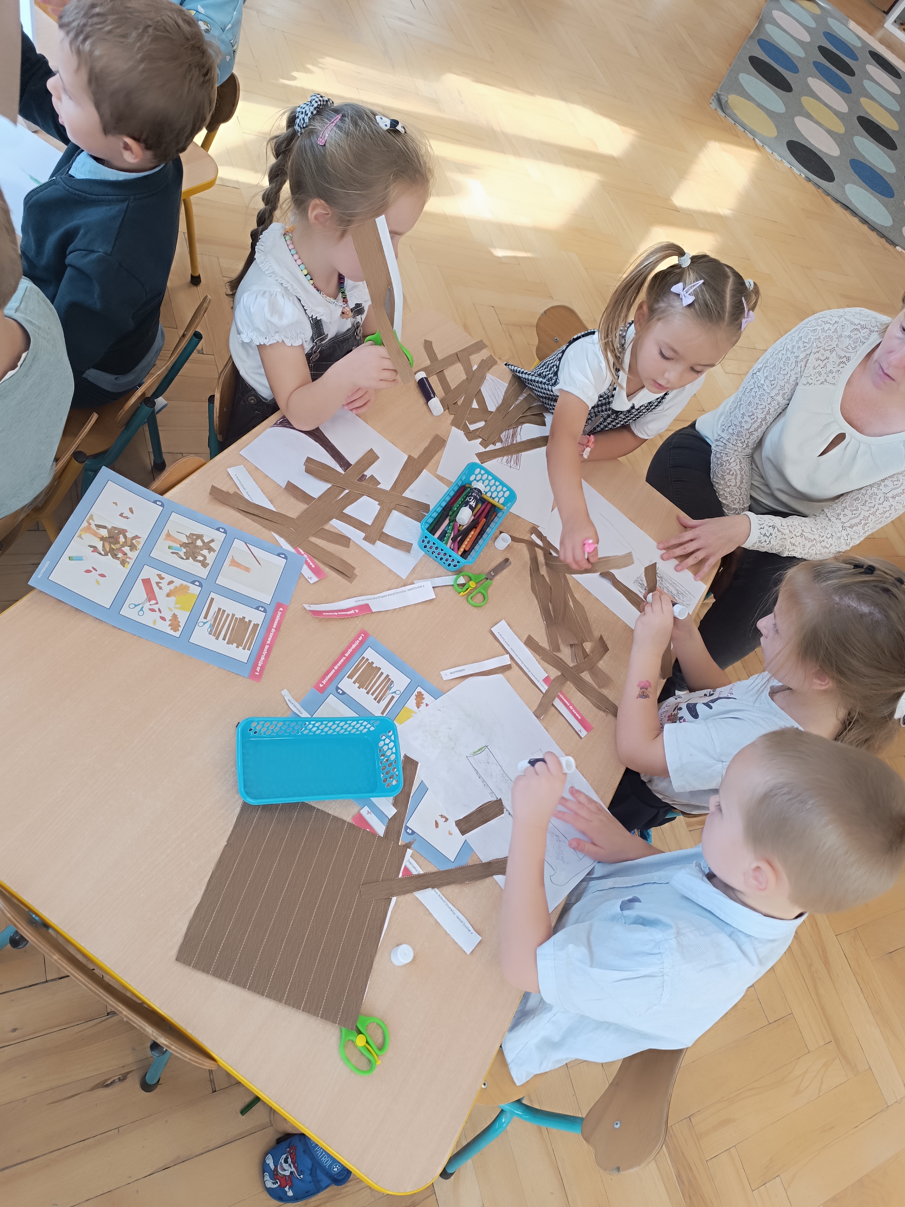 W tym tygodniu pracowaliśmy w naszych kartach pracy, uczestniczyliśmy w przeróżnych zabawach ruchowych, ruchowo muzycznych, zabawach na dywanie " Chodzi lisek" ; " Stary niedźwiedź" ; " Wiewiórki do dziupli hop" , uczyliśmy się piosenki " Kolorowe listki" naśladując ruchy naszej Pani.