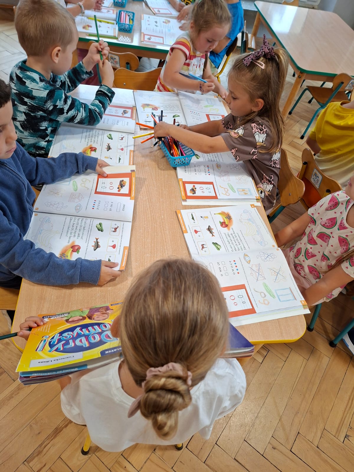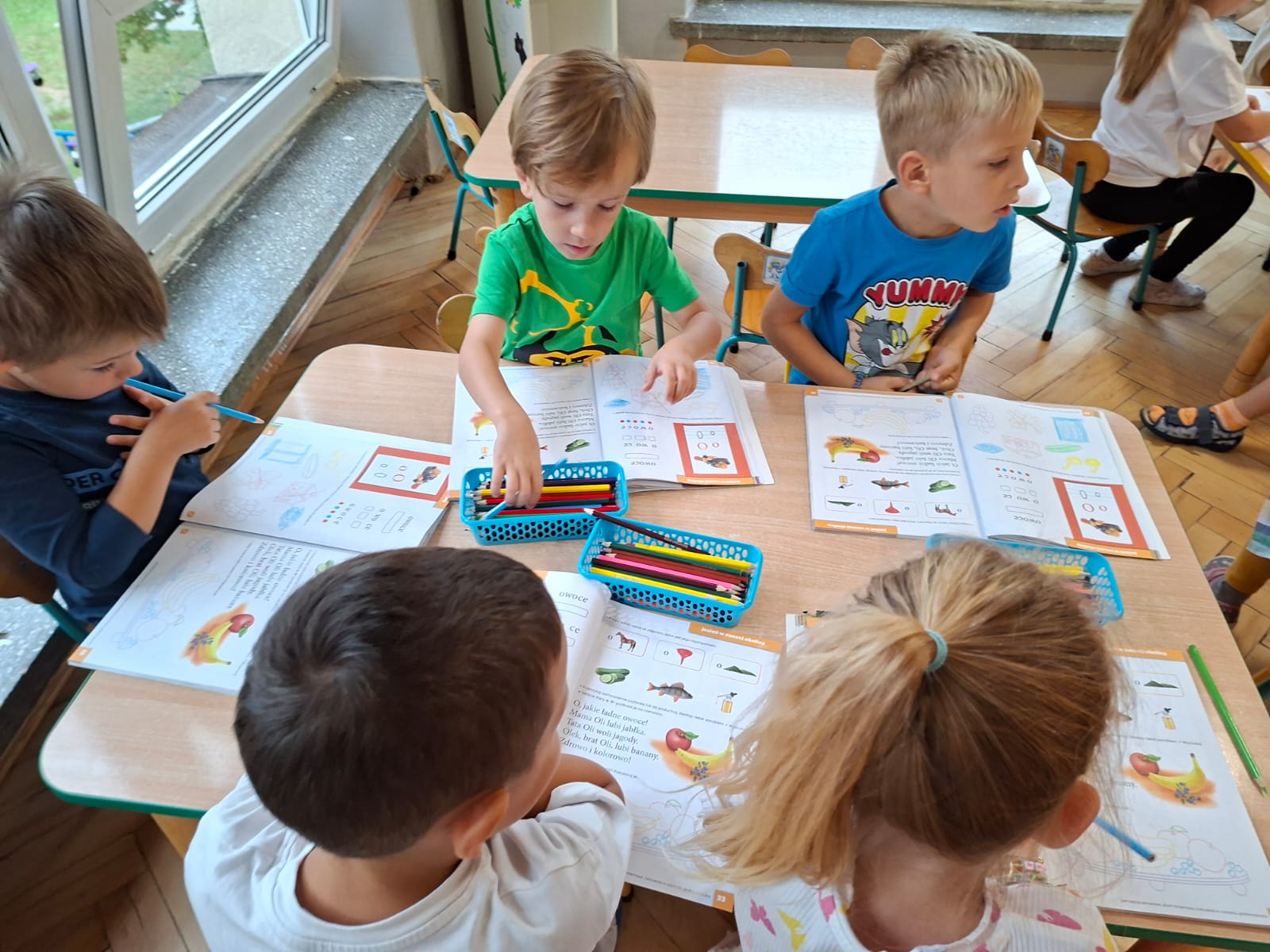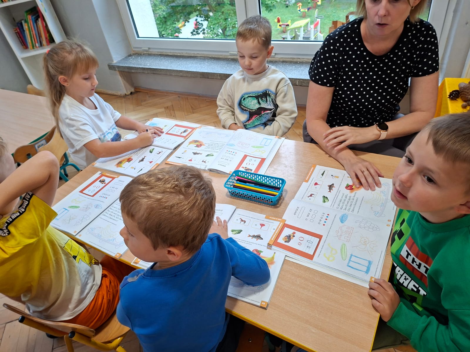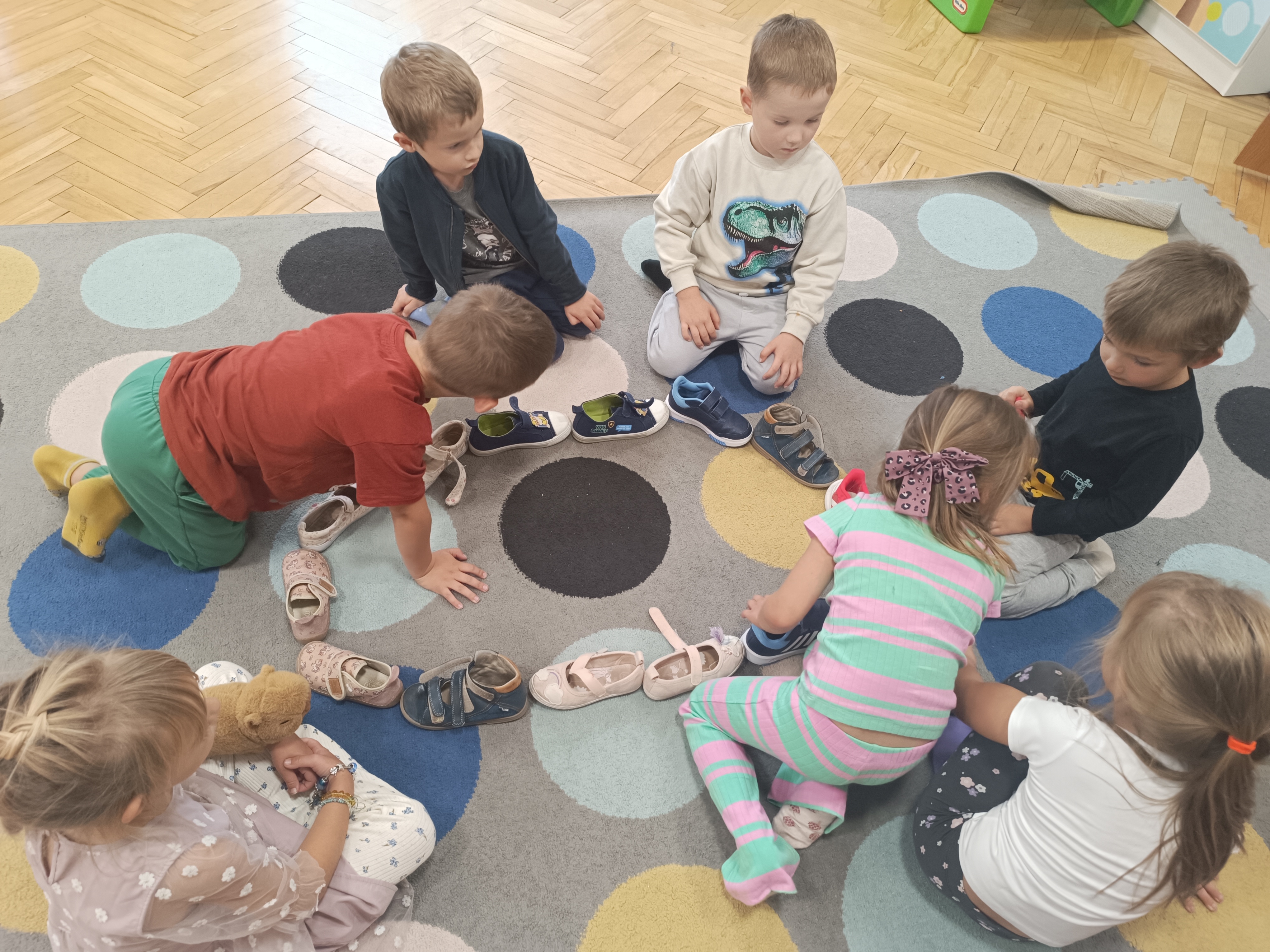 W tym tygodniu poznaliśmy również literkę O,o. Rozmawialiśmy o wyrazach na literkę "O" , dzieliliśmy wyrazy na sylaby. Kreśliliśmy literkę w powietrzu, pisaliśmy na dywanie , układaliśmy ją z klocków, układaliśmy z naszych bucików oraz próbowaliśmy ją zrobić z naszych ciał układając się na dywanie , zaznaczyliśmy ją szukając w wyrazach, robiliśmy ćwiczenia grafomotoryczne, a także wyklejaliśmy literkę wydzieranką z papieru kolorowego.