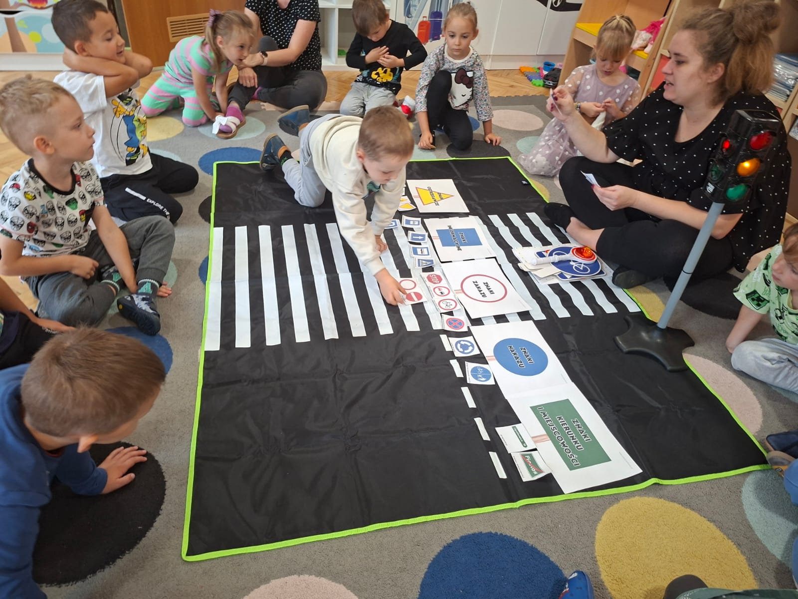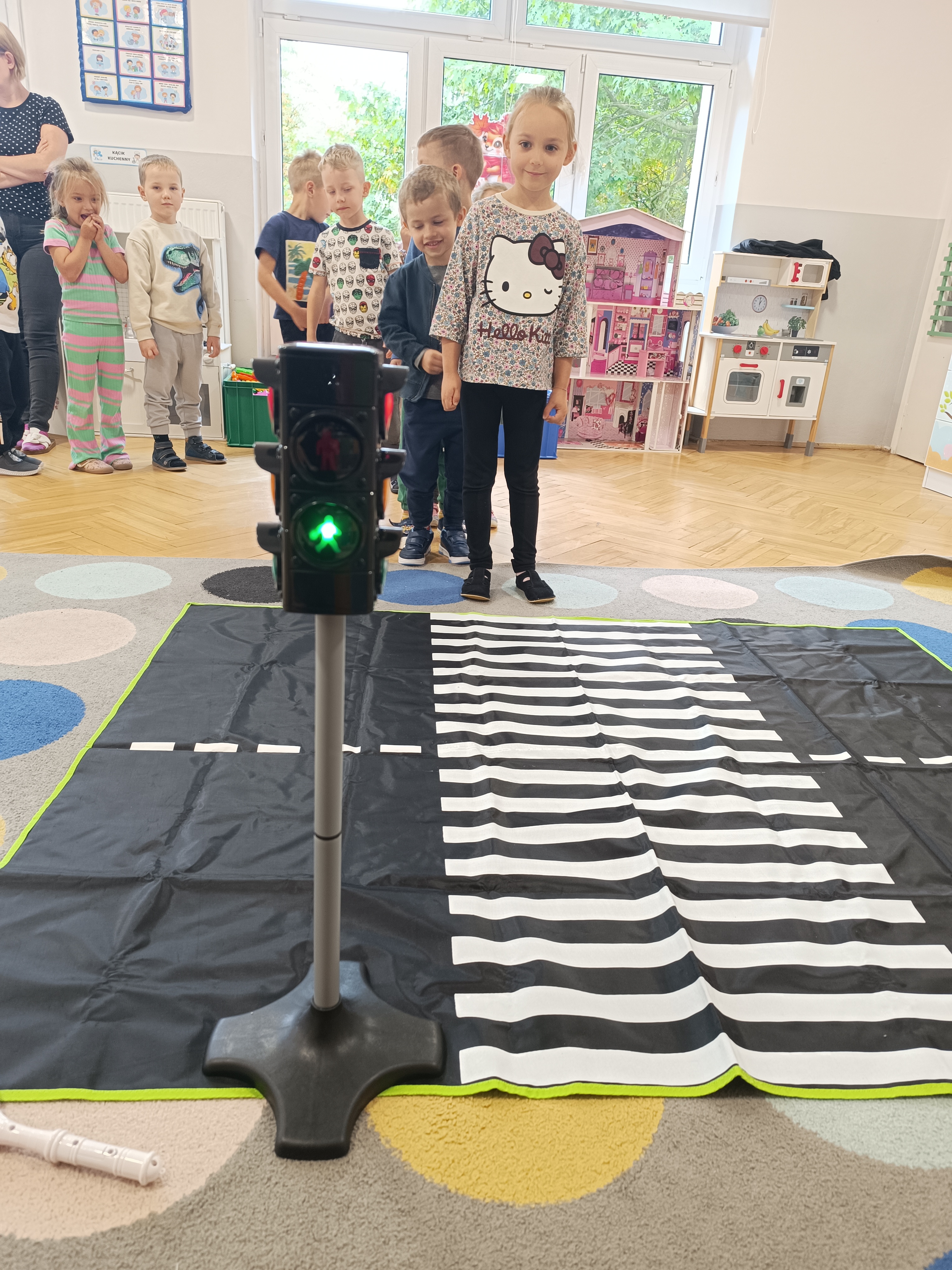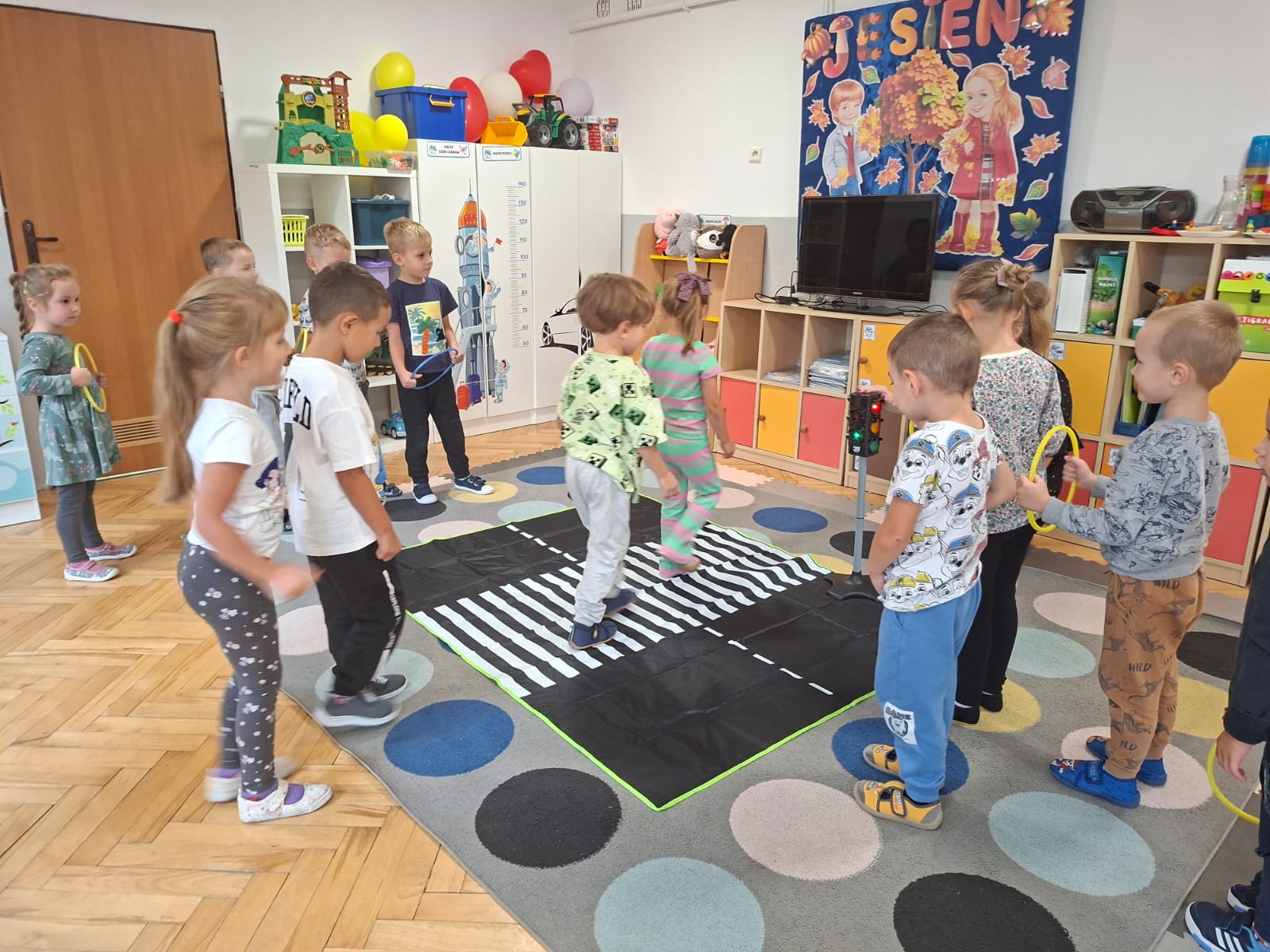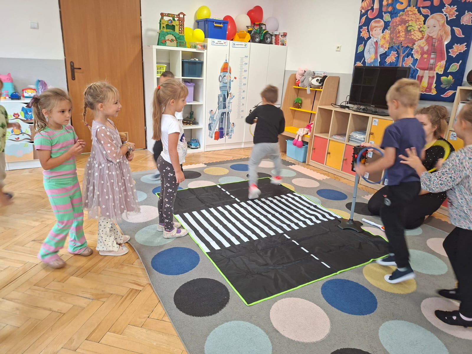 W minionym tygodniu rozmawialiśmy również o Bezpiecznym spacerze, przygotowując dzieci do bezpiecznego i samodzielnego poruszania się po drodze, jak trzeba się zachować przy przejściu dla pieszych, omawialiśmy światła , rozmawialiśmy na temat podstawowych znaków drogowych, odczytywaliśmy je wspólnie. Dopasowywaliśmy odpowiednie znaki do obrazków. Nie zabrakło przy tym zabaw ruchowych z użyciem sygnalizatora i maty drogi z przejściem dla pieszych.