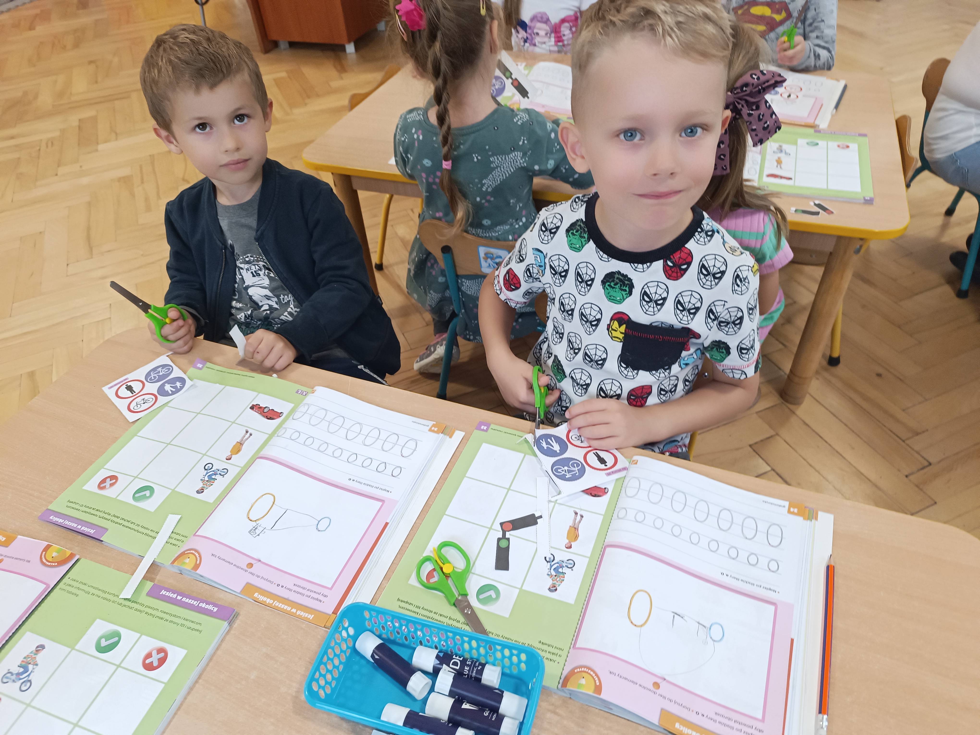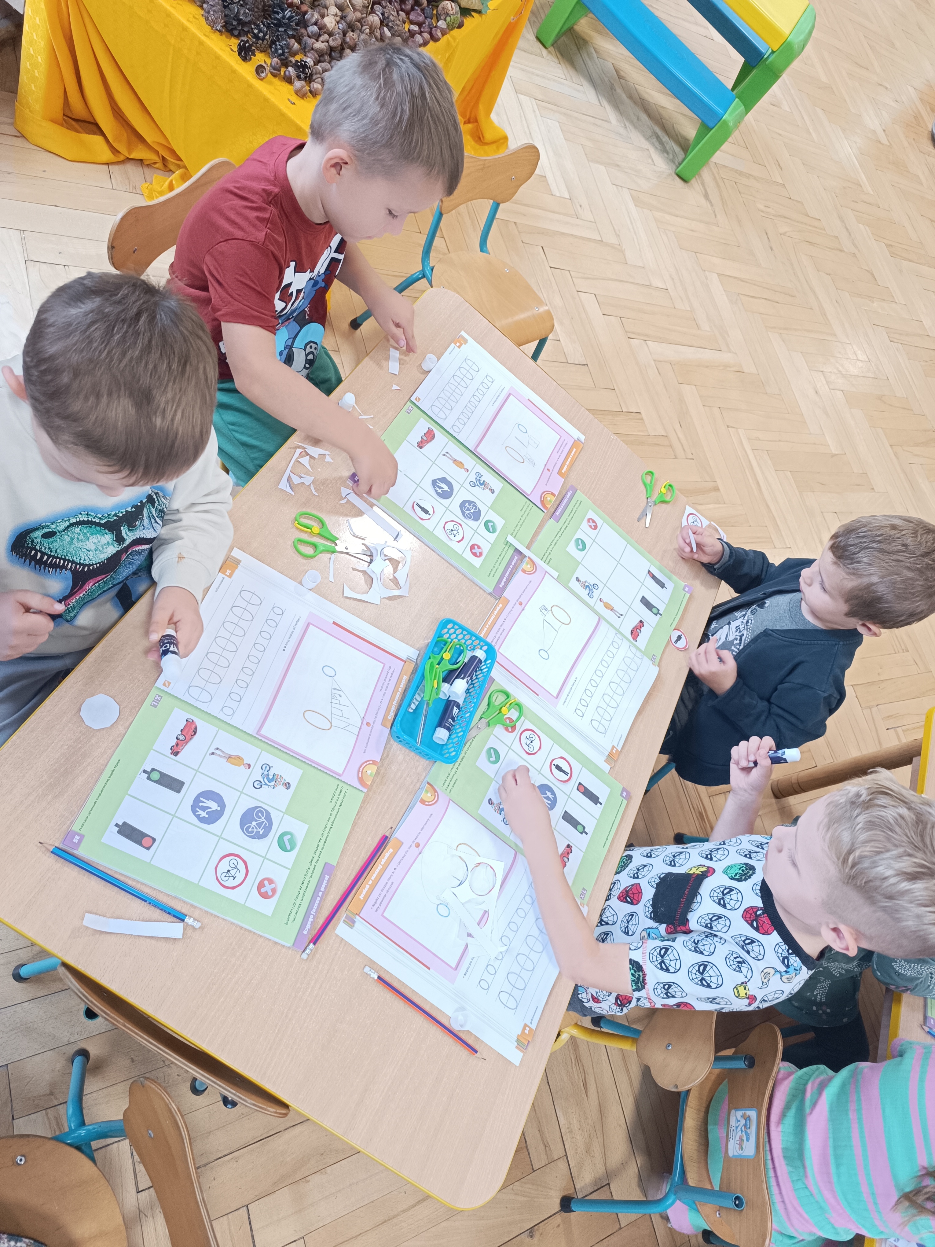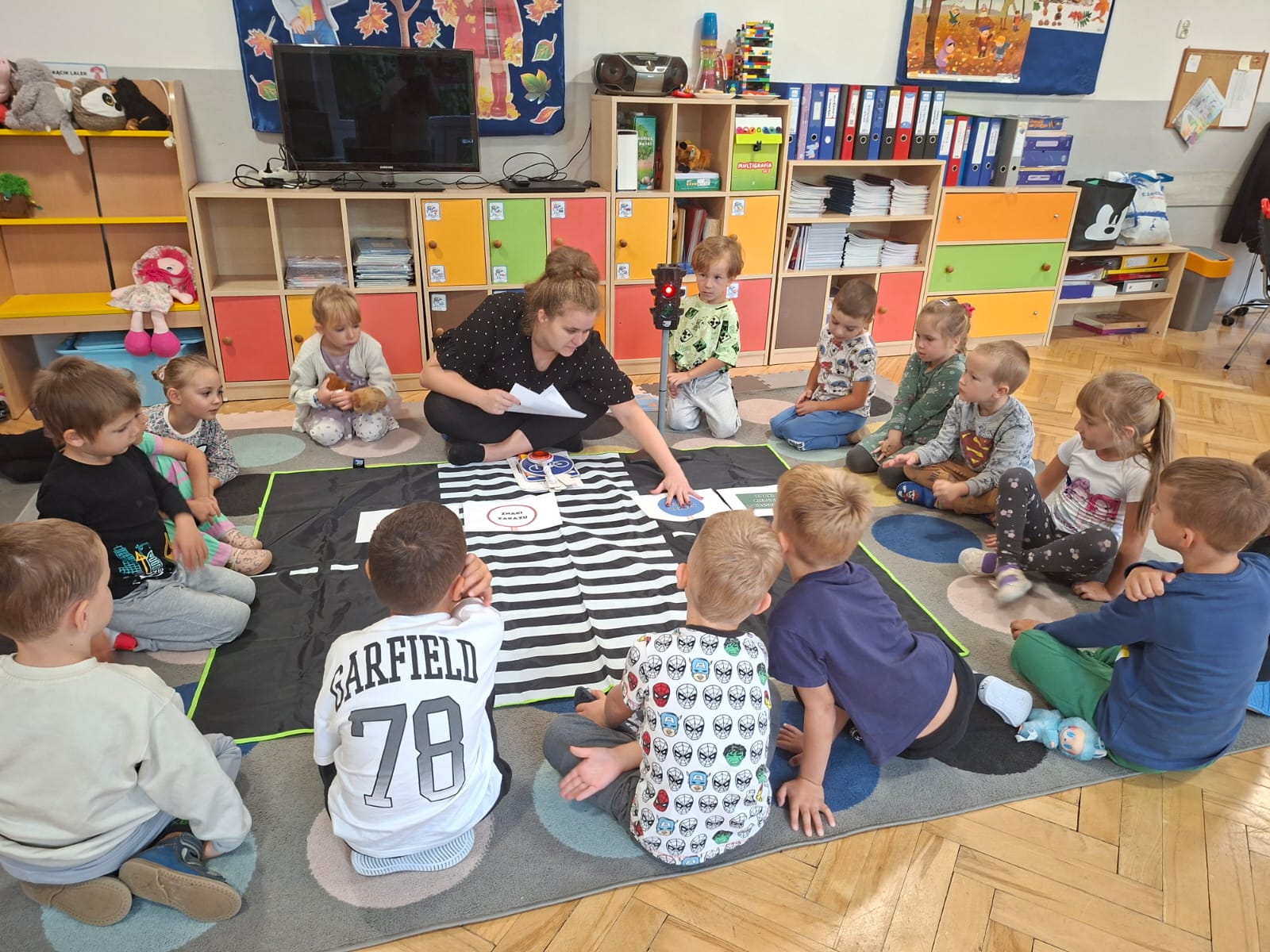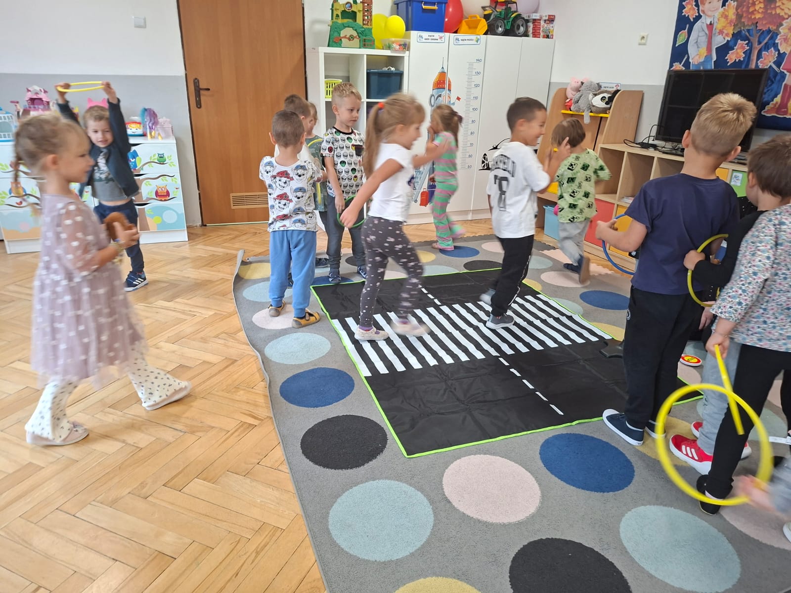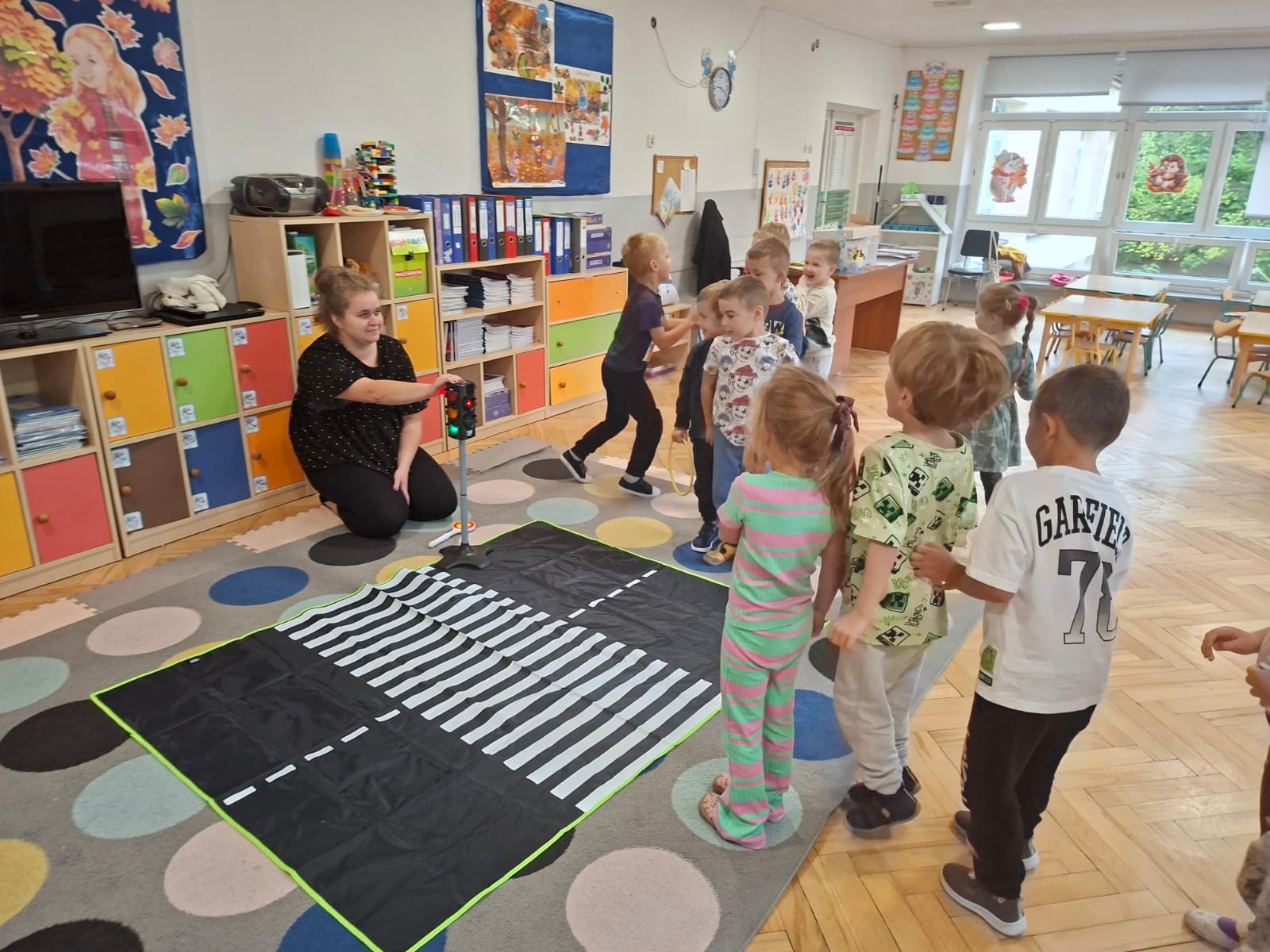 W minionym tygodniu rozmawialiśmy również o Bezpiecznym spacerze, przygotowując dzieci do bezpiecznego i samodzielnego poruszania się po drodze, jak trzeba się zachować przy przejściu dla pieszych, omawialiśmy światła , rozmawialiśmy na temat podstawowych znaków drogowych, odczytywaliśmy je wspólnie. Dopasowywaliśmy odpowiednie znaki do obrazków. Nie zabrakło przy tym zabaw ruchowych z użyciem sygnalizatora i maty drogi z przejściem dla pieszych.
