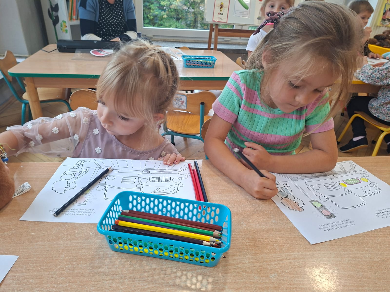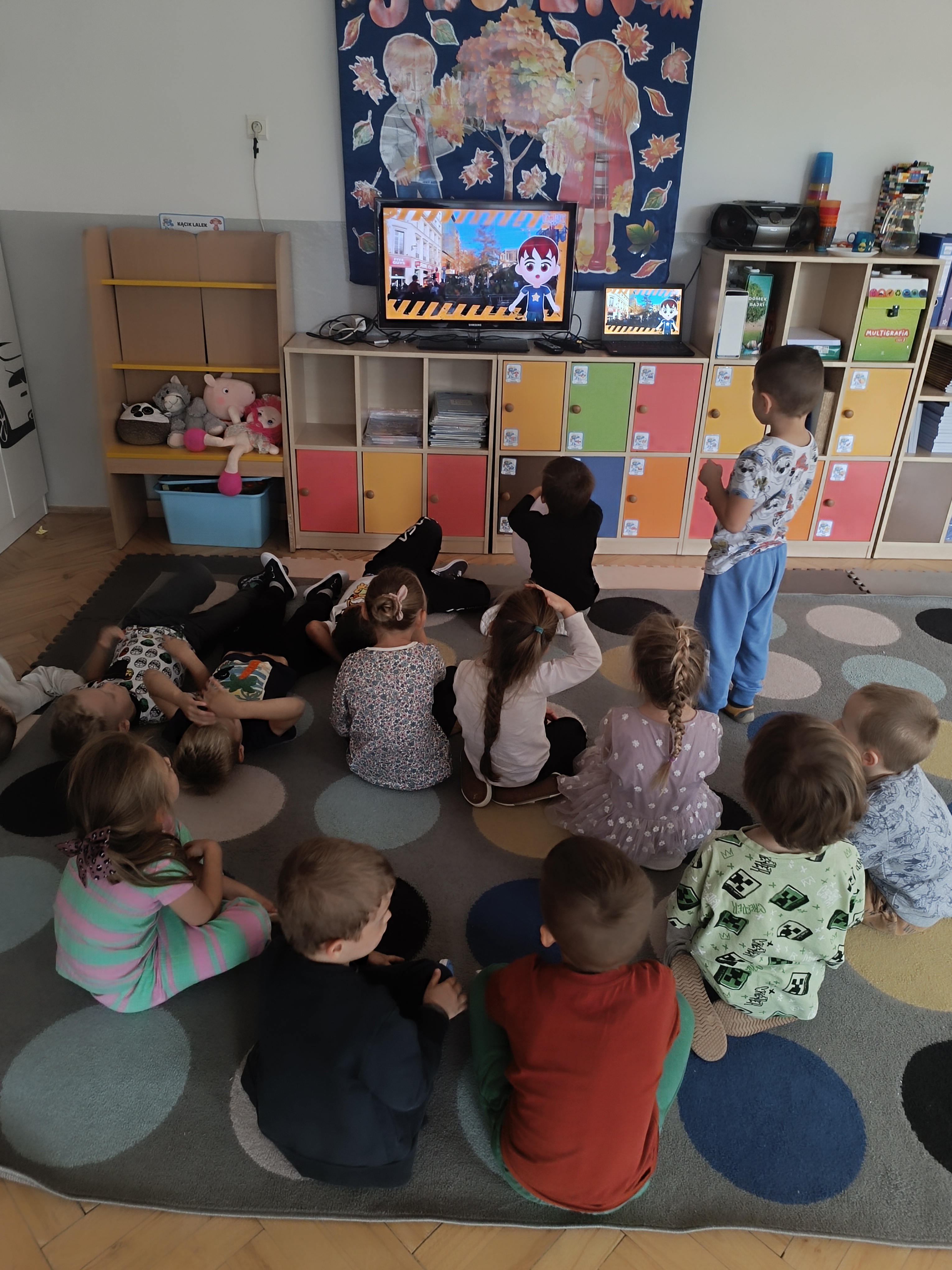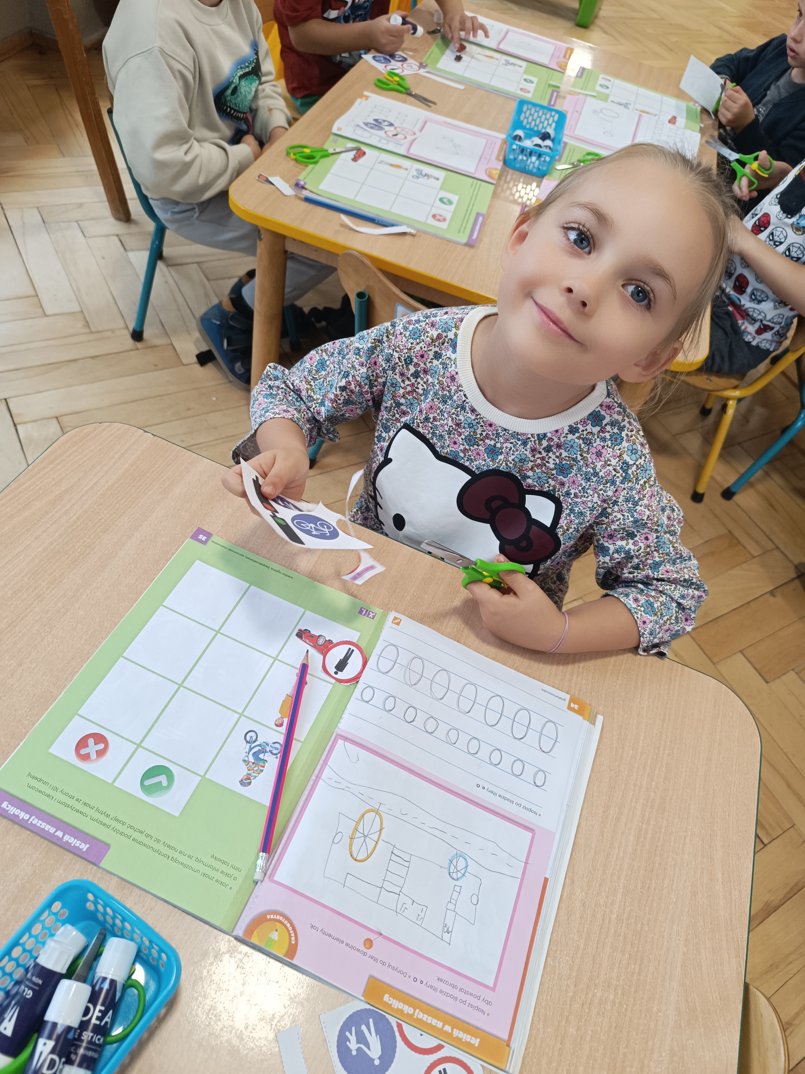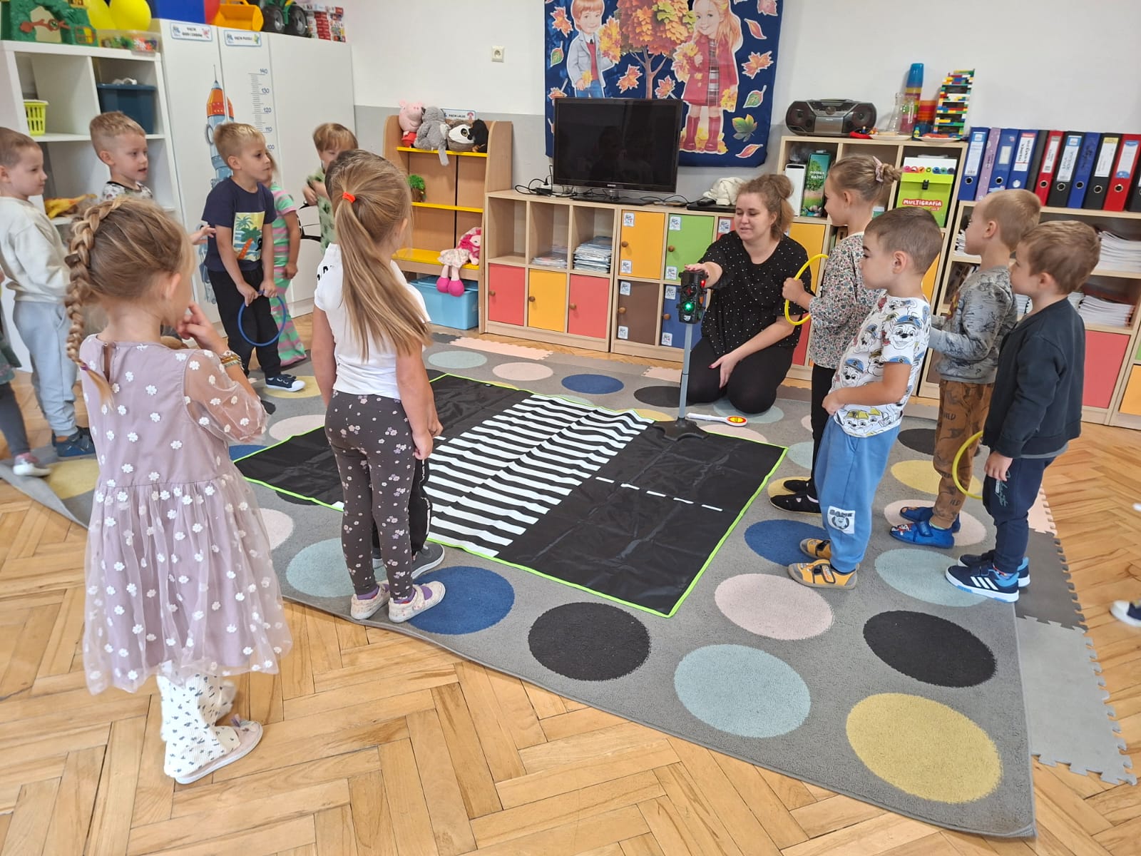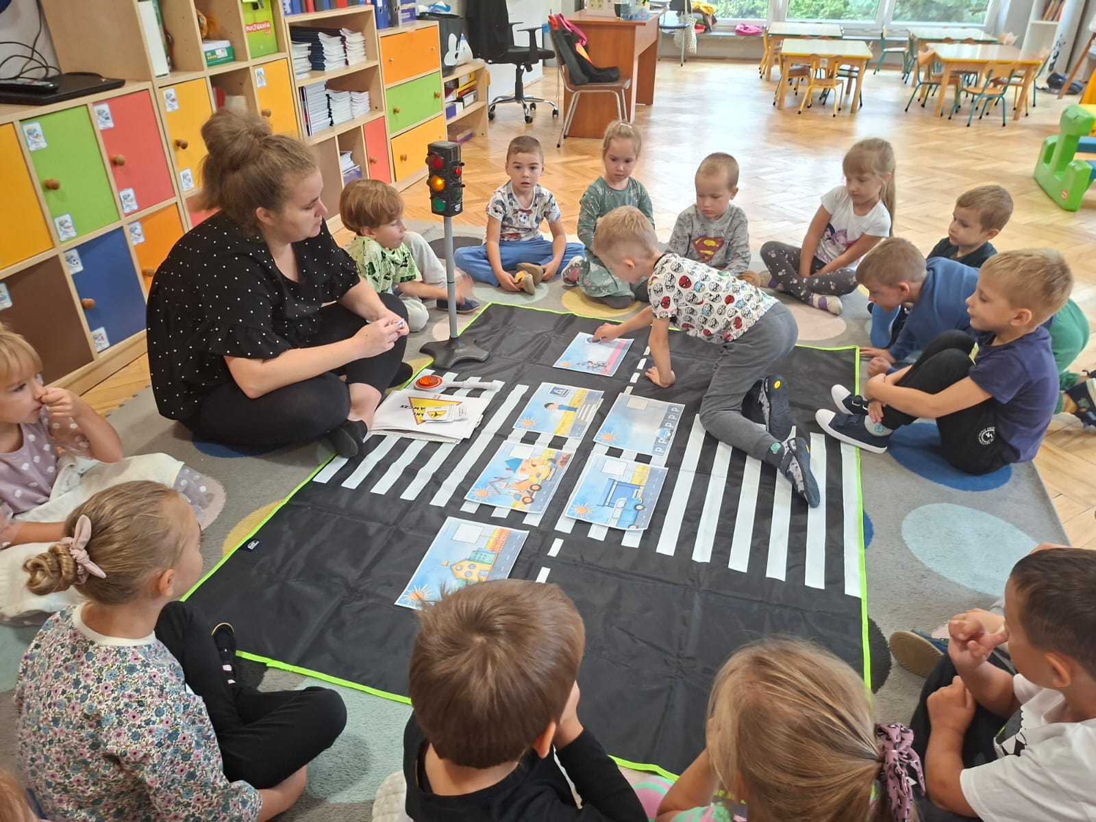 W minionym tygodniu rozmawialiśmy również o Bezpiecznym spacerze, przygotowując dzieci do bezpiecznego i samodzielnego poruszania się po drodze, jak trzeba się zachować przy przejściu dla pieszych, omawialiśmy światła , rozmawialiśmy na temat podstawowych znaków drogowych, odczytywaliśmy je wspólnie. Dopasowywaliśmy odpowiednie znaki do obrazków. Nie zabrakło przy tym zabaw ruchowych z użyciem sygnalizatora i maty drogi z przejściem dla pieszych.