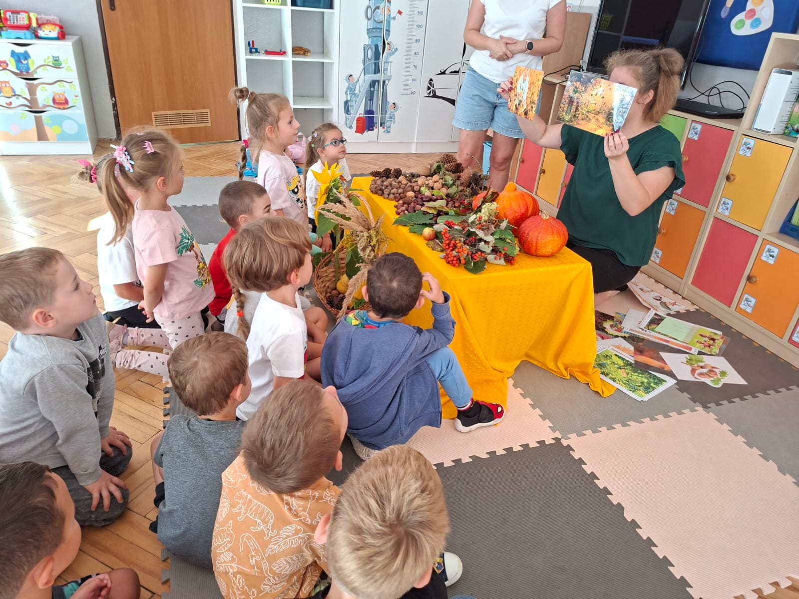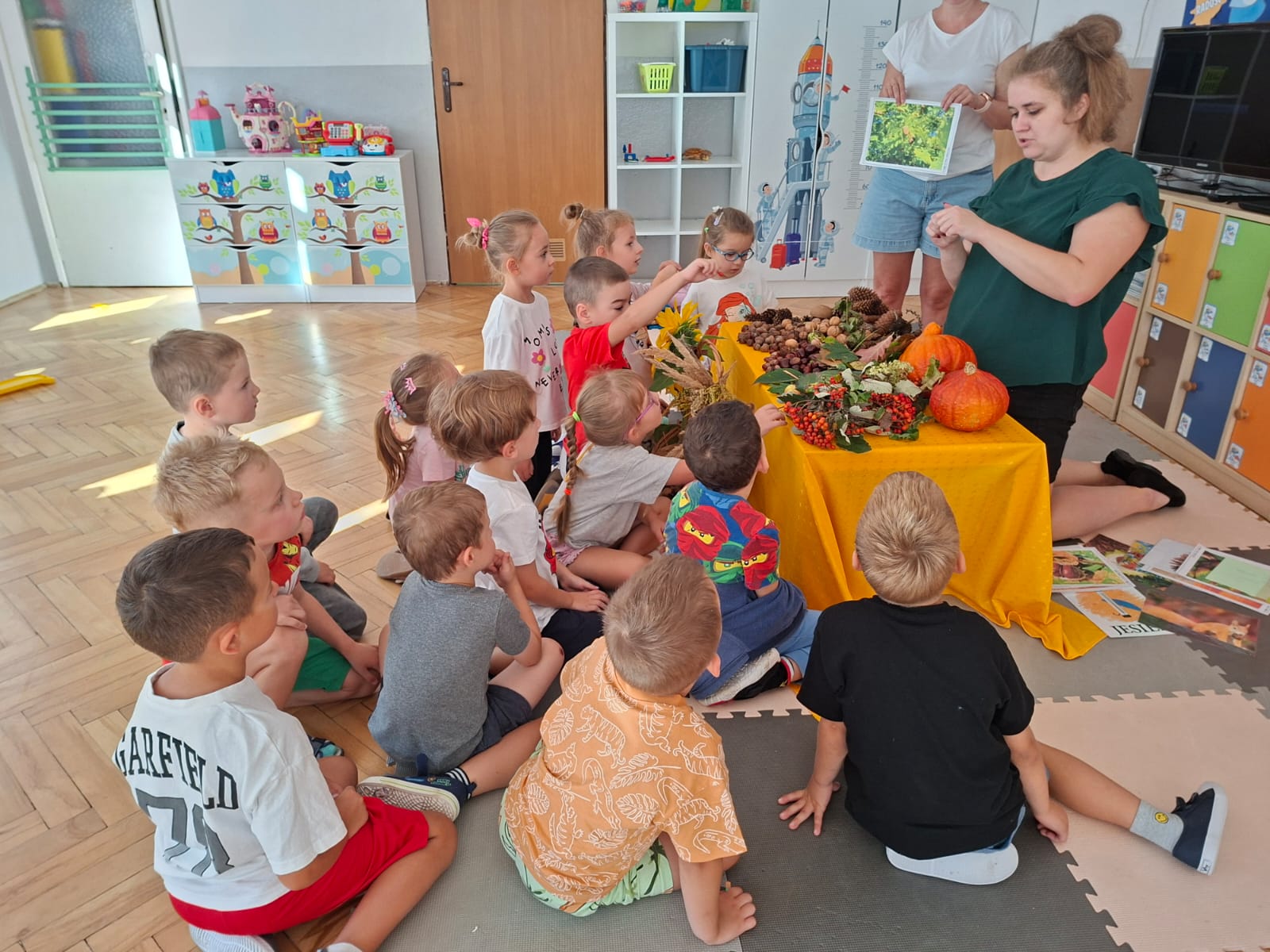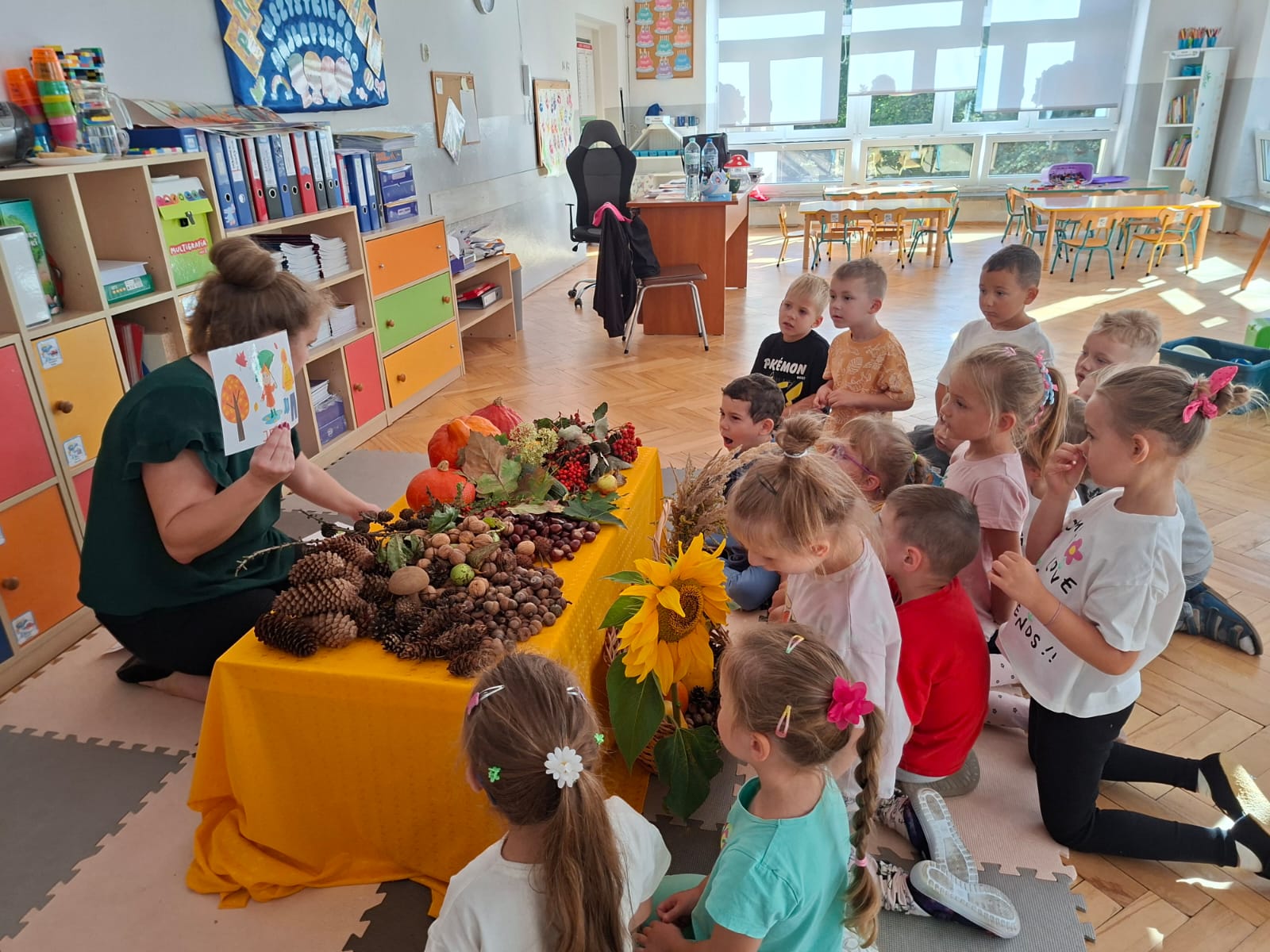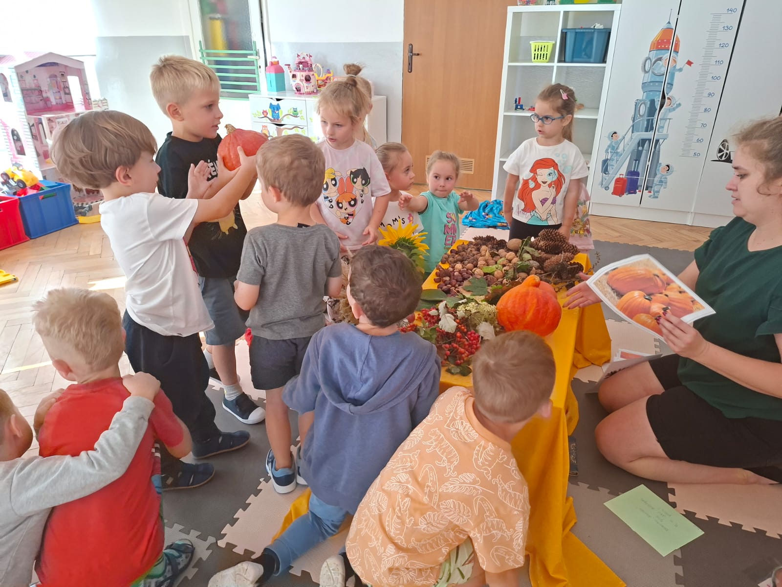 W minionym tygodniu rozmawialiśmy o jesieni w naszej okolicy, o zmianach przyrody, poznawaliśmy dary jesieni, zrobiliśmy kącik jesienny.