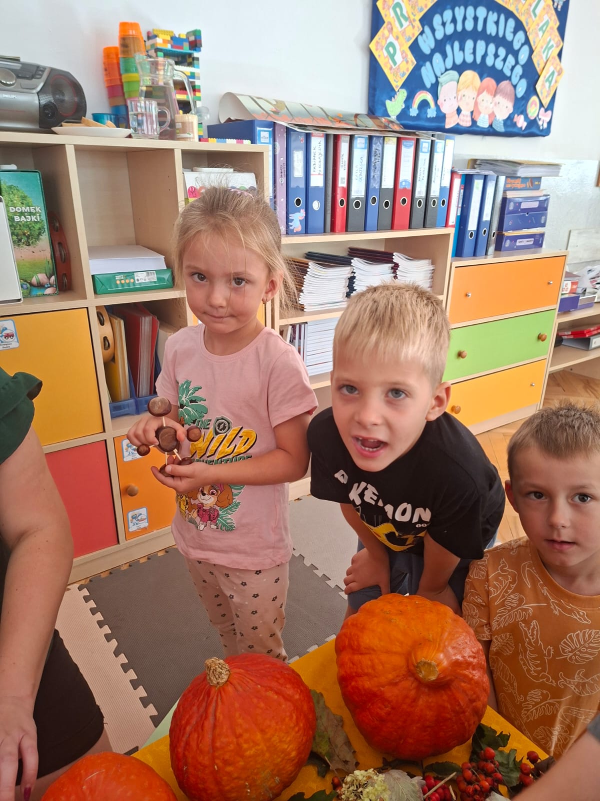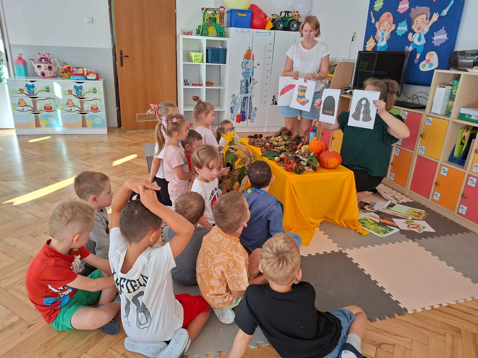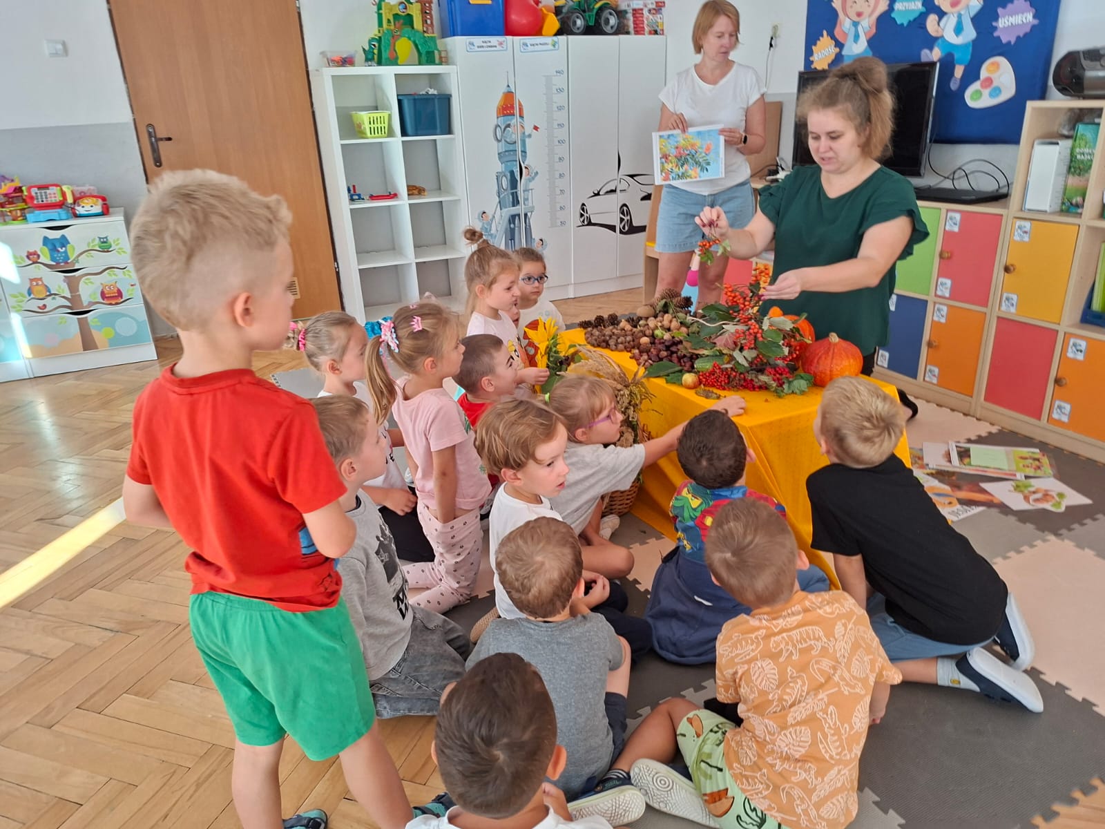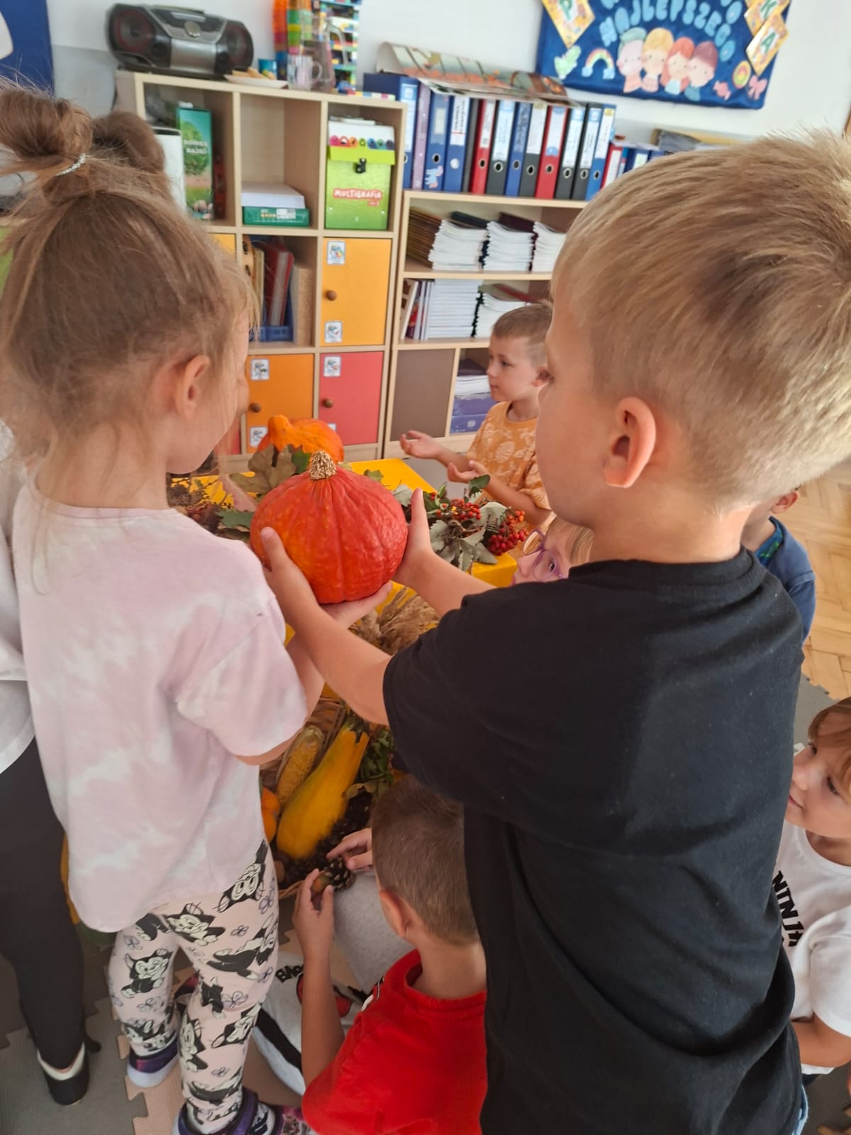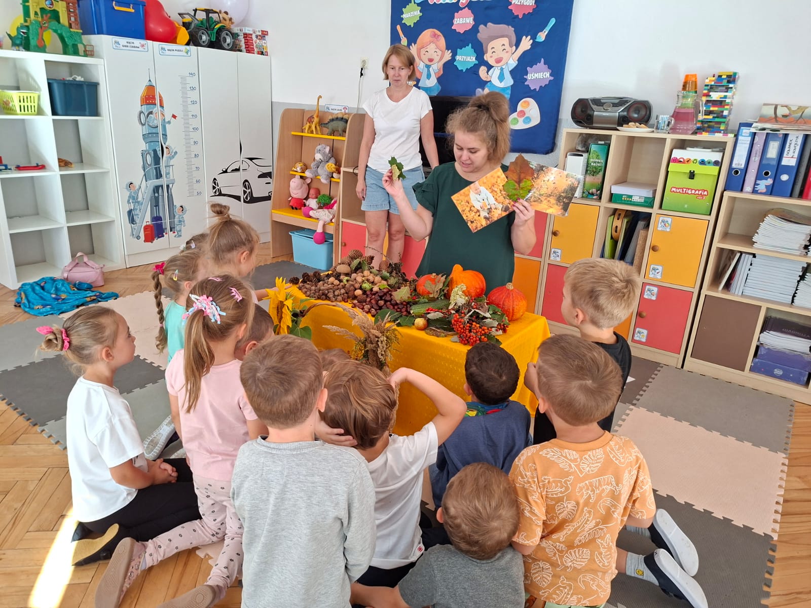 W minionym tygodniu rozmawialiśmy o jesieni w naszej okolicy, o zmianach przyrody, poznawaliśmy dary jesieni, zrobiliśmy kącik jesienny.