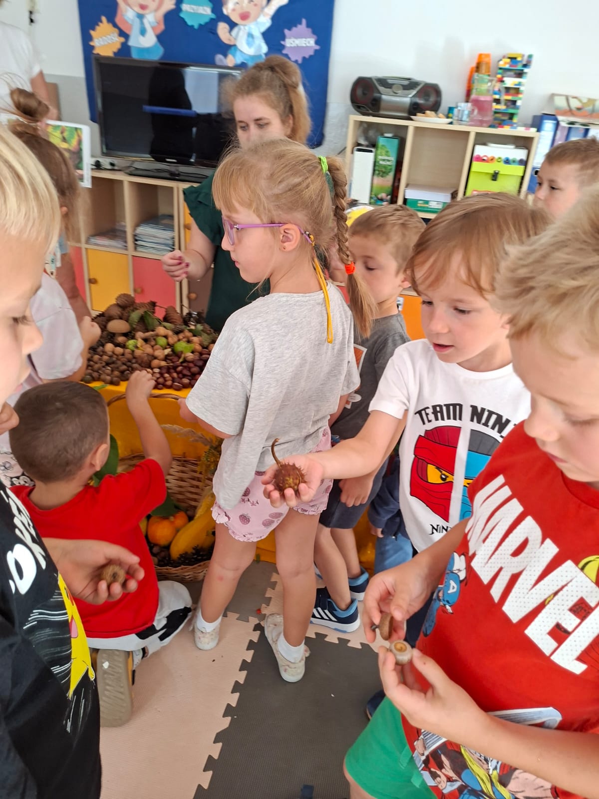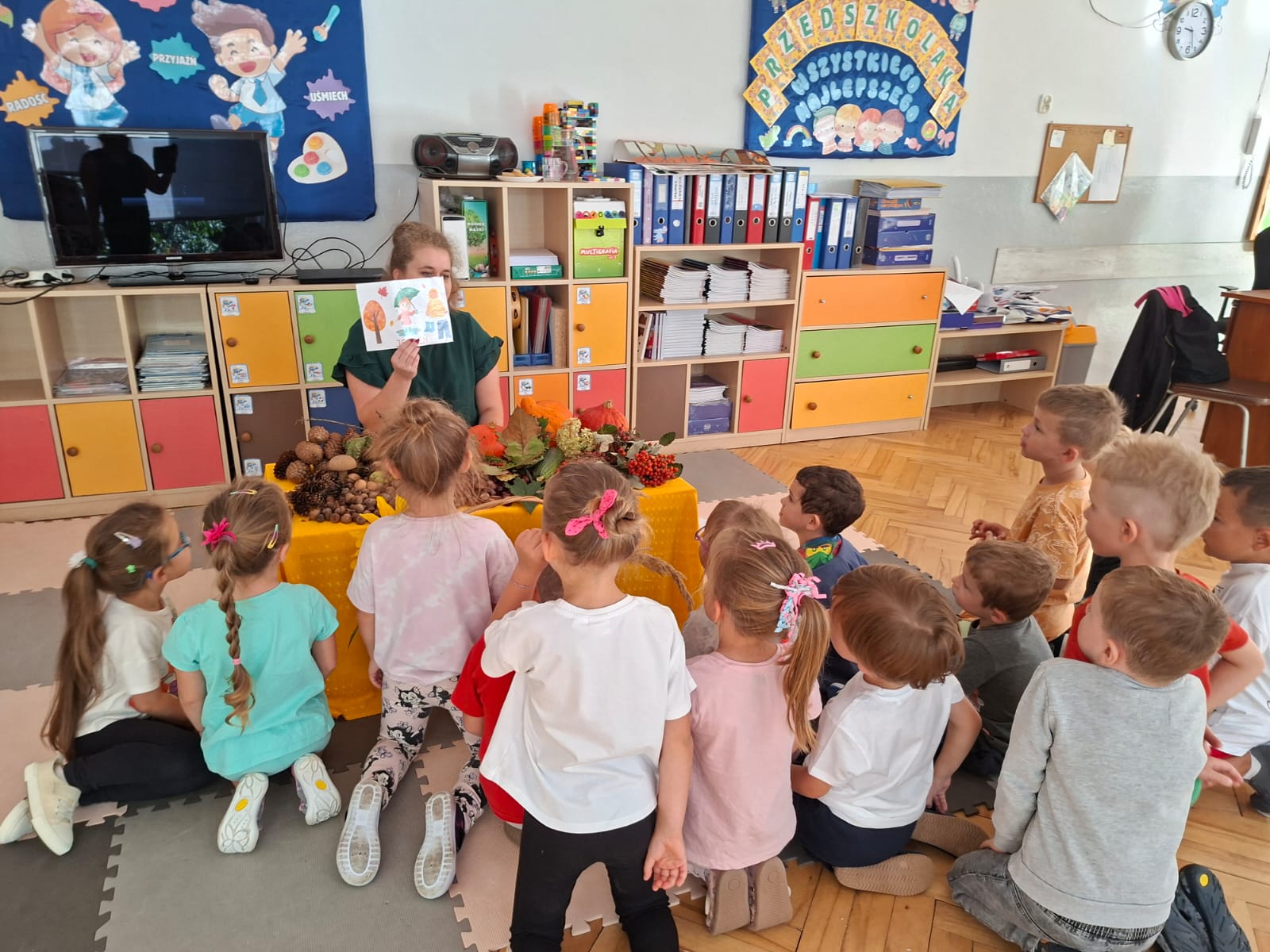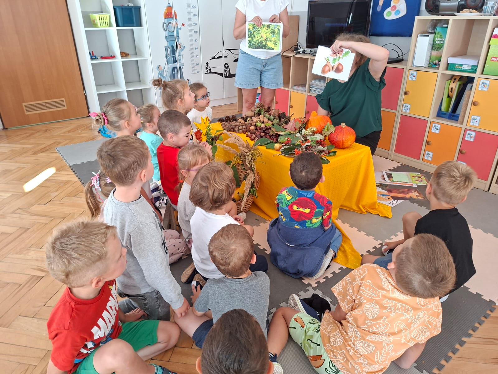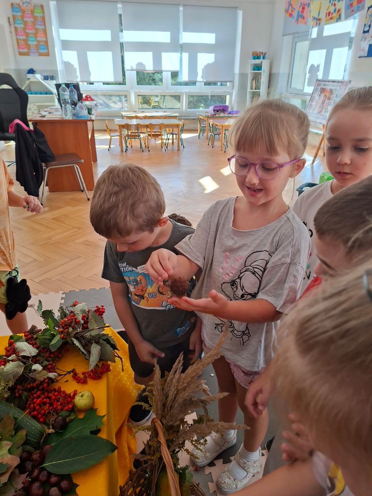 W minionym tygodniu rozmawialiśmy o jesieni w naszej okolicy, o zmianach przyrody, poznawaliśmy dary jesieni, zrobiliśmy kącik jesienny.