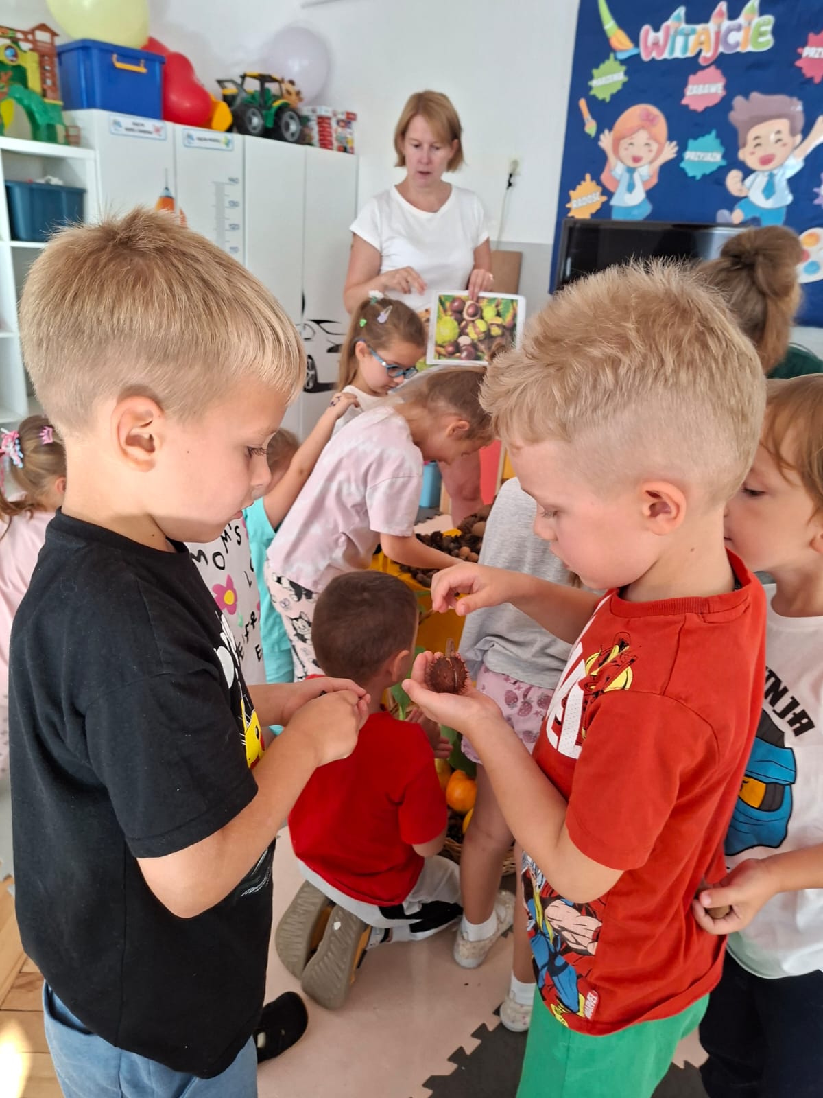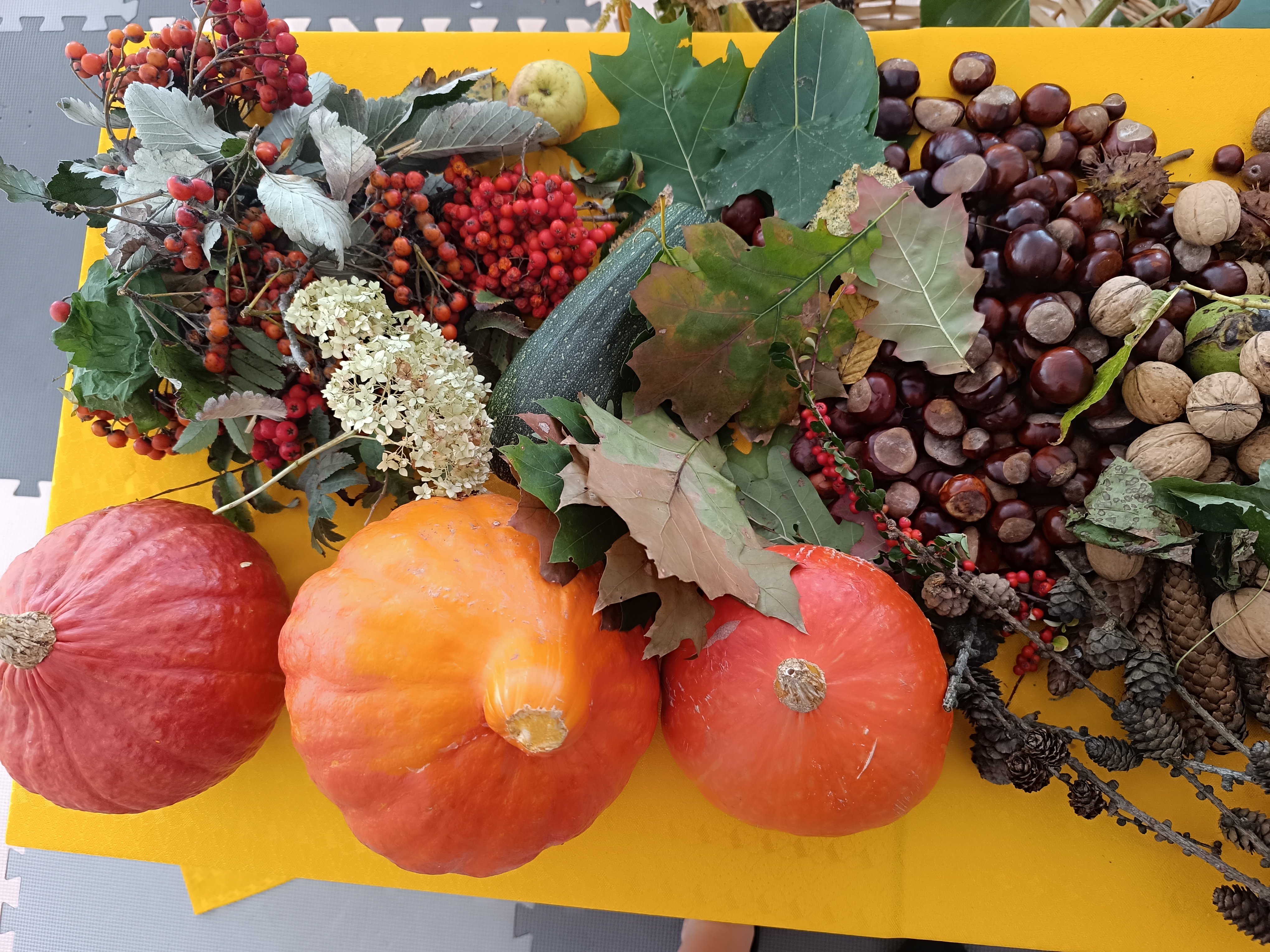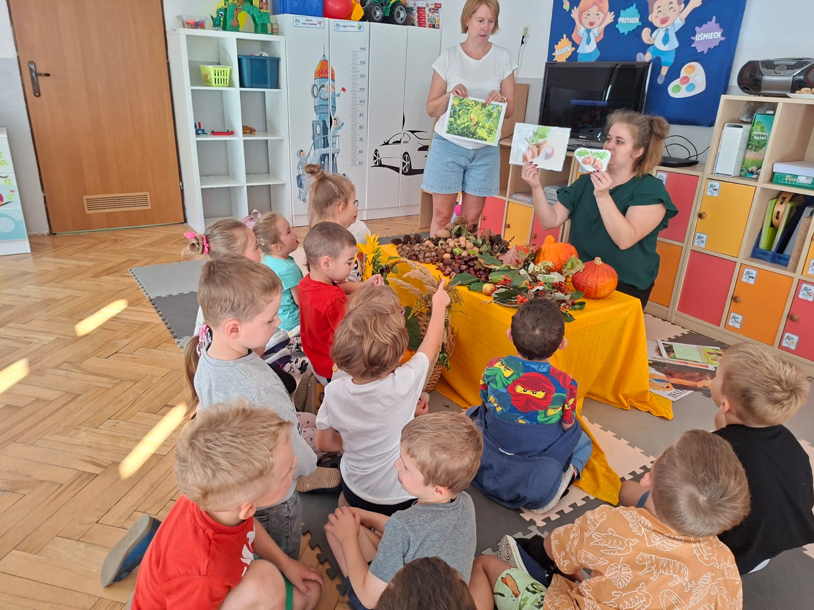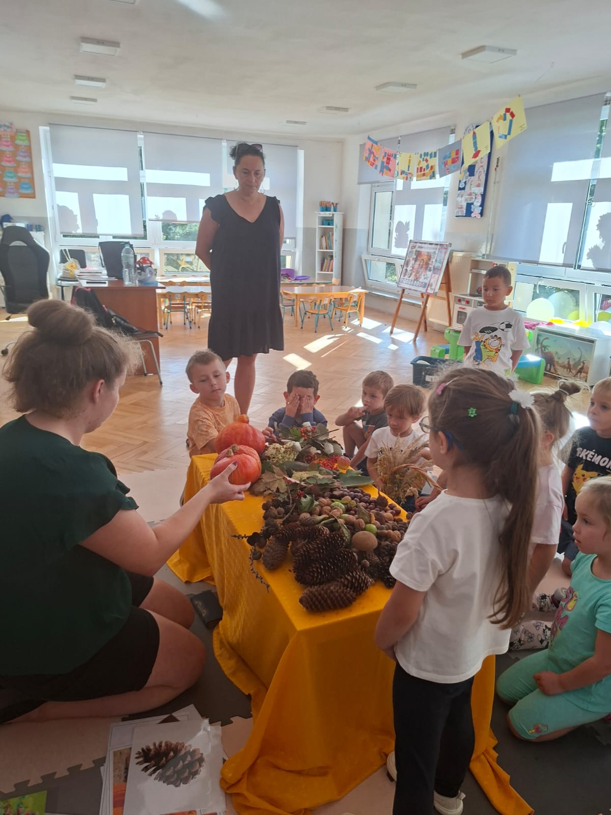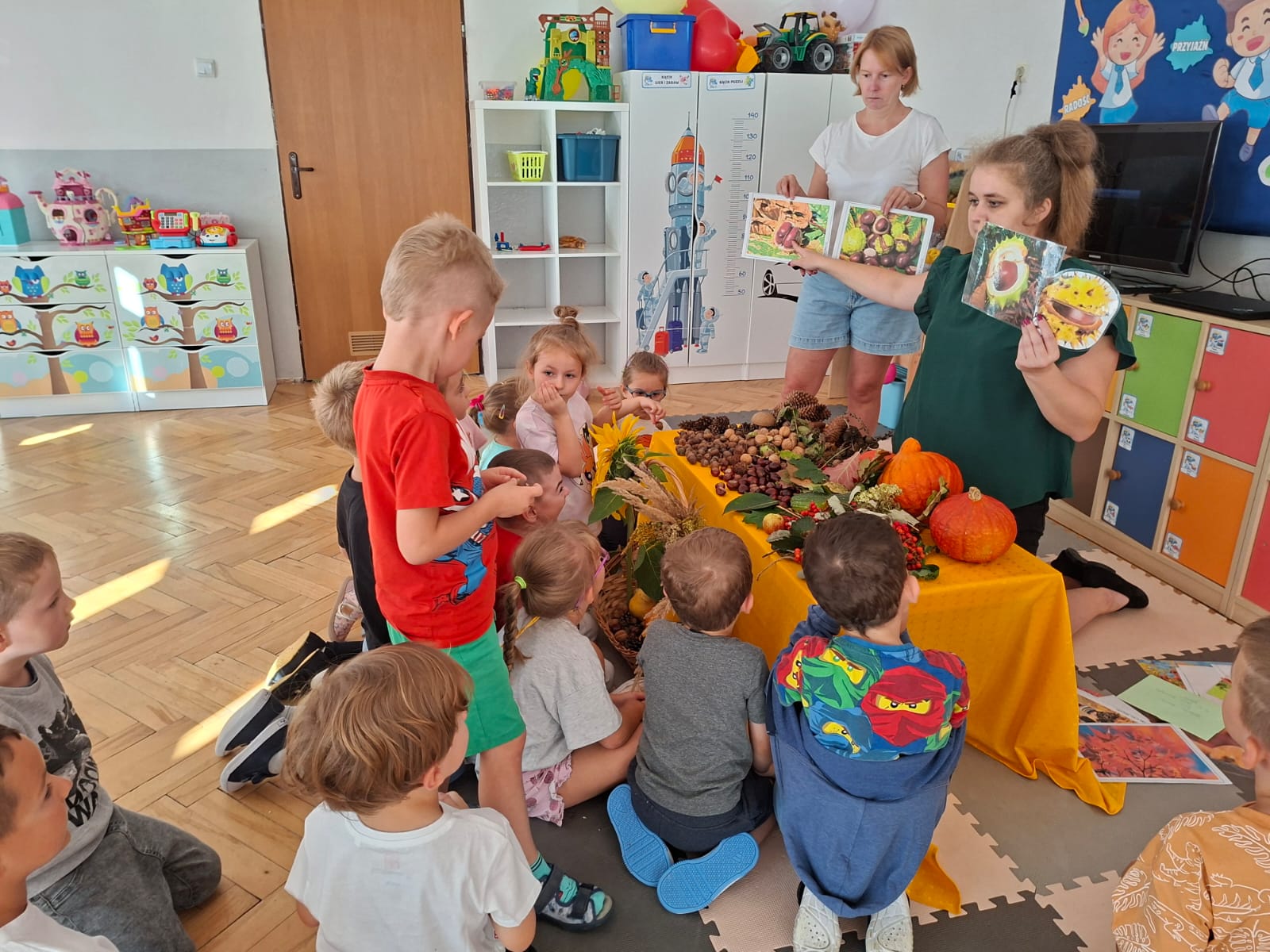 W minionym tygodniu rozmawialiśmy o jesieni w naszej okolicy, o zmianach przyrody, poznawaliśmy dary jesieni, zrobiliśmy kącik jesienny.
