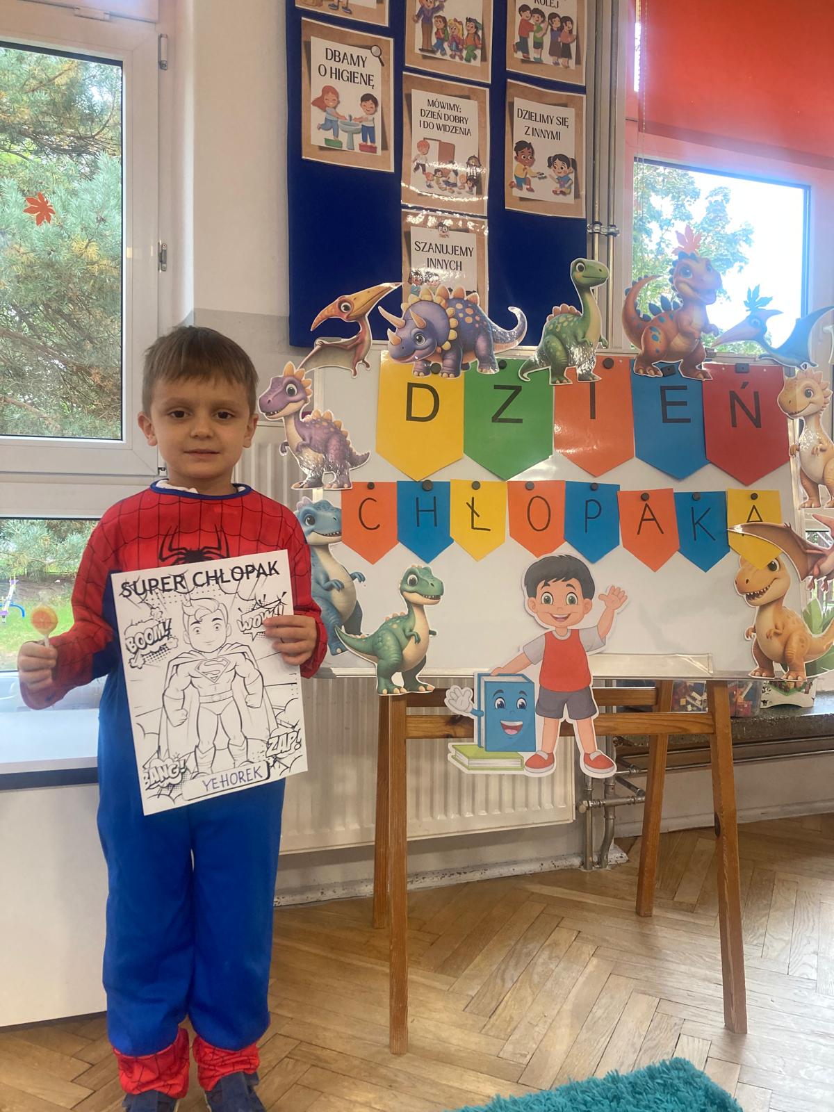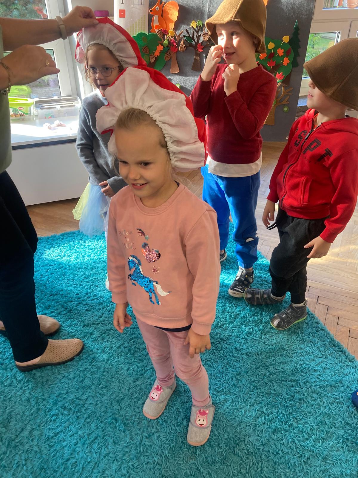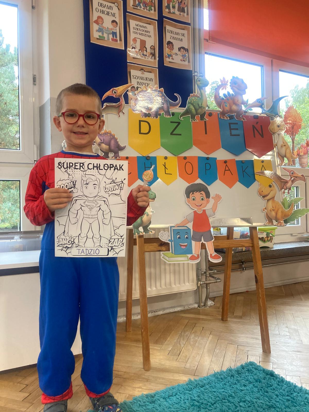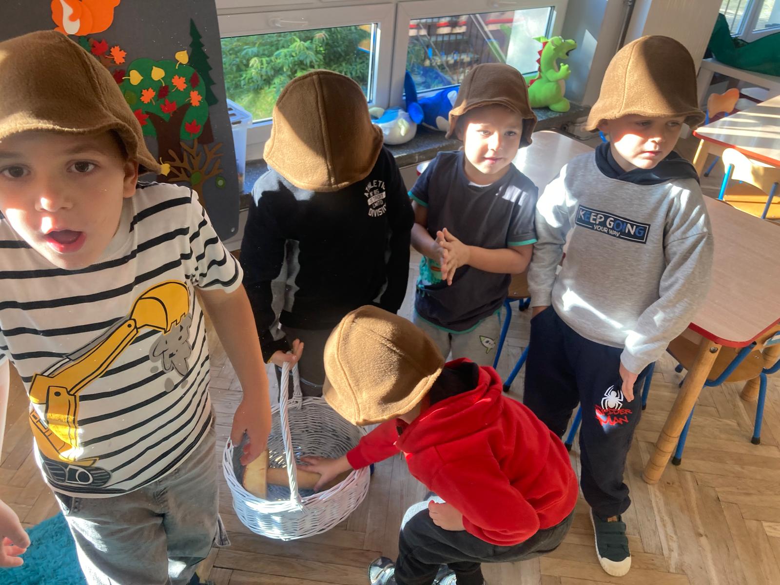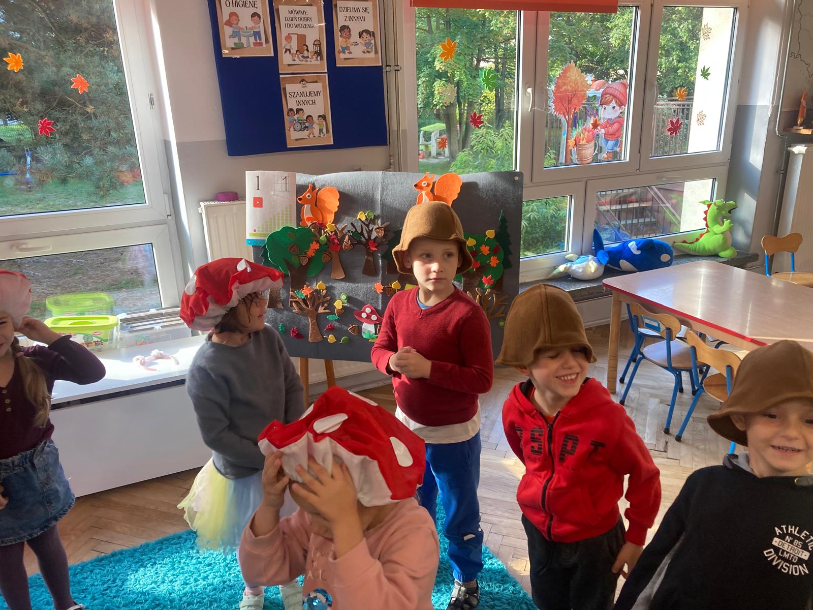 Jakie zwierzęta żyją w naszych lasach,czym żywi się jeż,czy wiwiórka robi zapasy na zimę?Na te i wiele innych pytań szukaliśmy odpowiedzi podczas zorganizowanych sytuacji edukacyjnych.Pomocą były filmy edukacyjne o jeżu,wiewiórce i lisku.Bawiliśmy się w zabawy ruchowe i spiewaliśmy piosenki o zwierzakach."Na leśnej" polanie romawialiśmy o grzybach jadalnych i trujacych,szukaliśmy kropek dla muchomorach i tańczyliśmy przy piosence pt:"Wesołe grzybki".Na zajeciach plastycznych malowaliśmy kolce jeża i tworzyliśmy przestrzenną pracę pt."Las".Przeliczaliśmy zwierzęta ,poznaliśmy cyfrę 1 w aspekcie kardynalnym i porządkowym.W tym tygodniu przypadł również Dzień Chłopaka -chłopcy w tym dniu opowiadali o swoich marzeniach i pokonywali tory przeszkód.Było wesoło:) Obdarowani lizaczkami od dziewczynek wykonali sobie pamiątkowe zdjęcie w wybranym stroju Supermana lub Spidermena