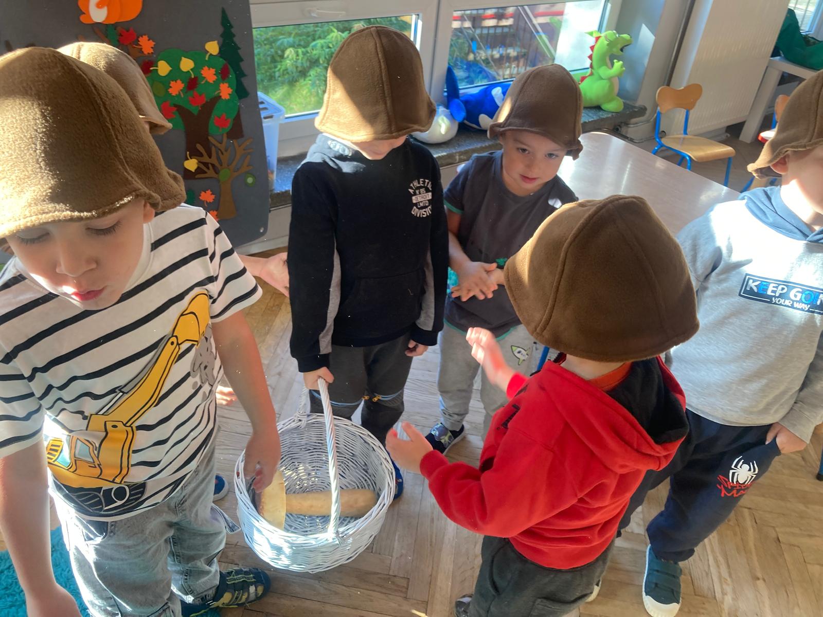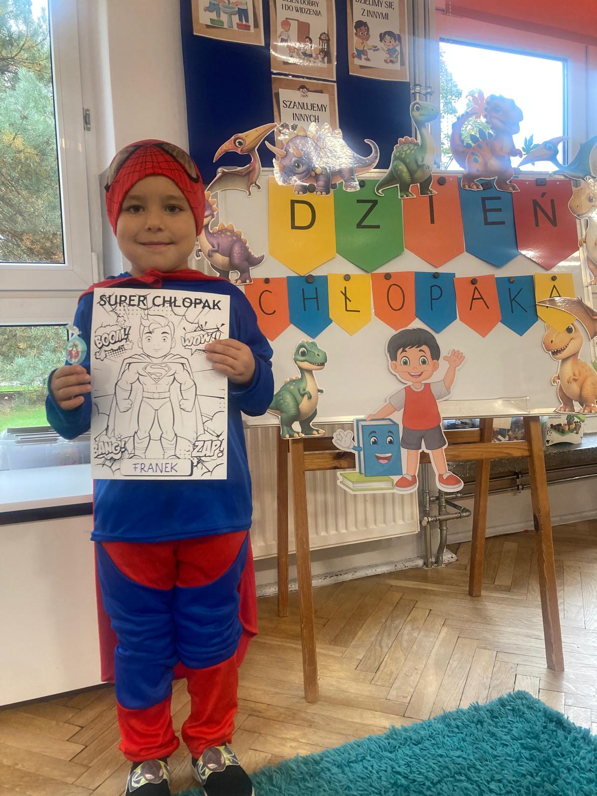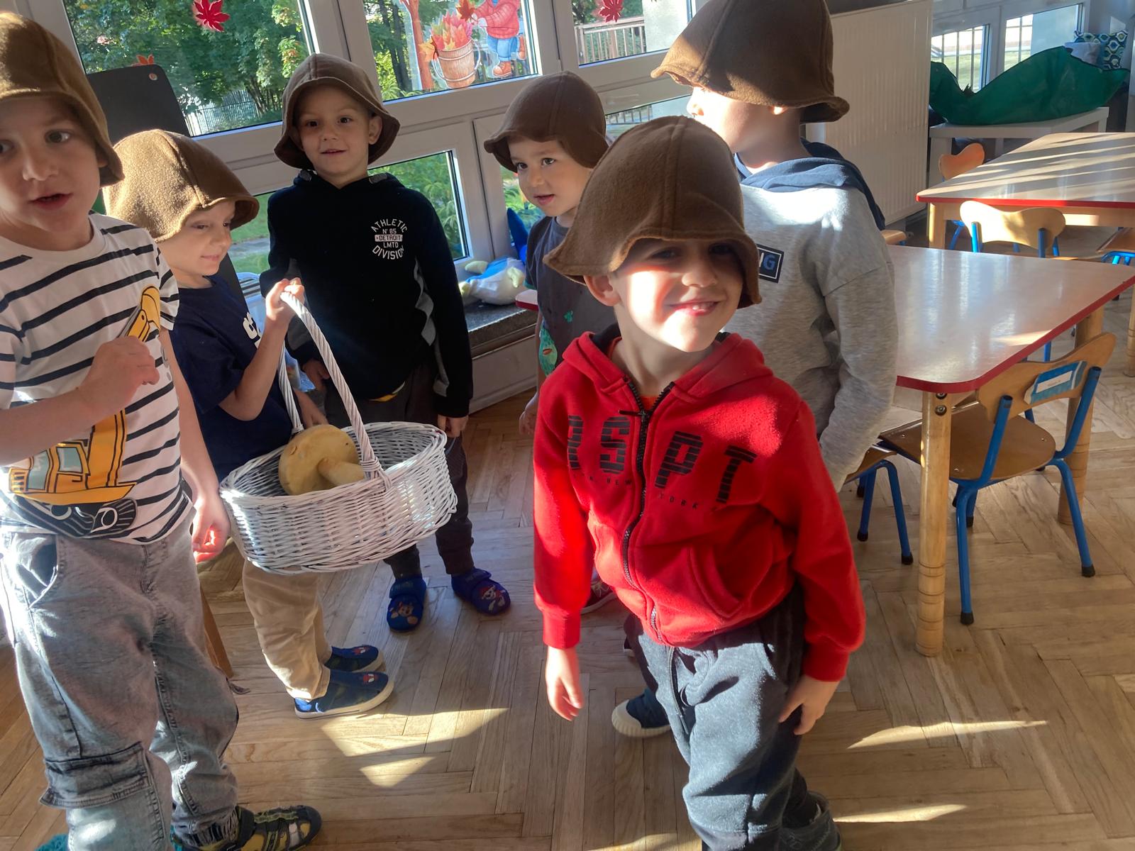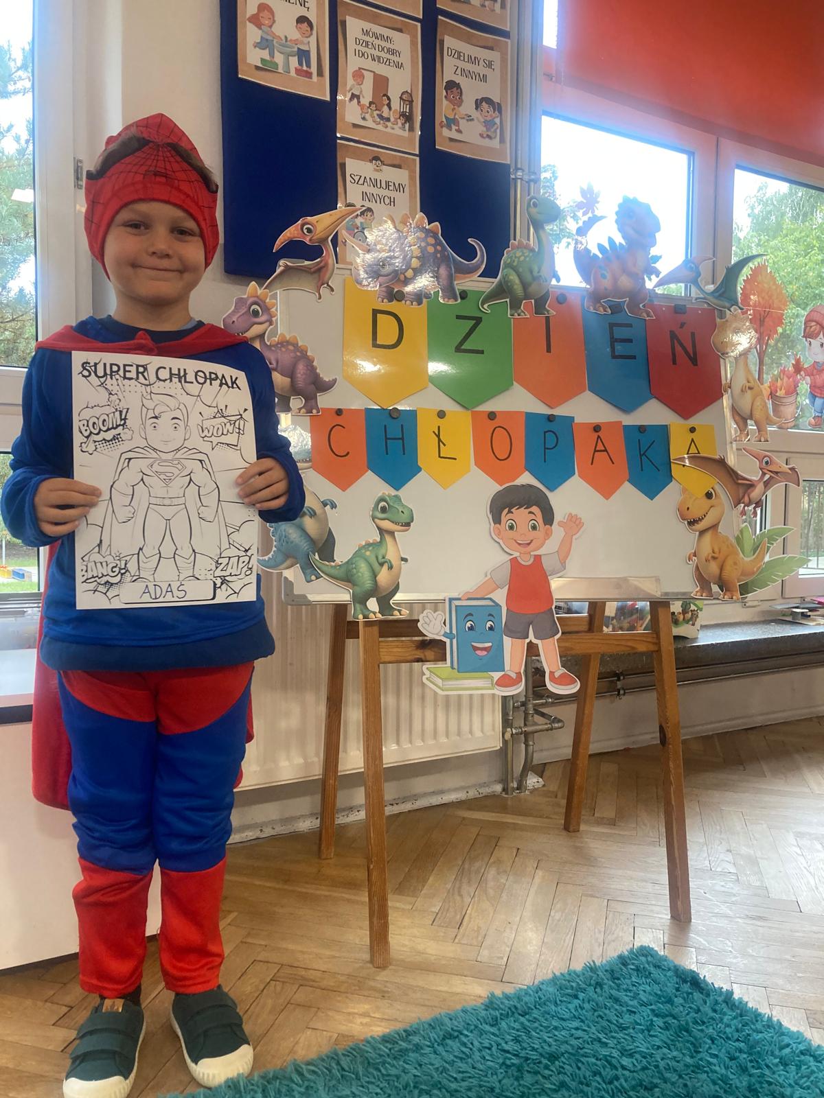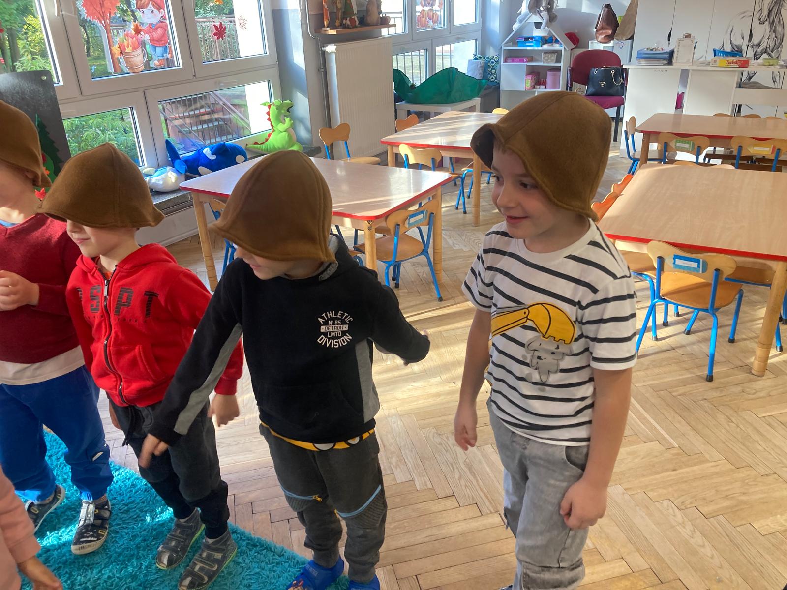 Jakie zwierzęta żyją w naszych lasach,czym żywi się jeż,czy wiwiórka robi zapasy na zimę?Na te i wiele innych pytań szukaliśmy odpowiedzi podczas zorganizowanych sytuacji edukacyjnych.Pomocą były filmy edukacyjne o jeżu,wiewiórce i lisku.Bawiliśmy się w zabawy ruchowe i spiewaliśmy piosenki o zwierzakach."Na leśnej" polanie romawialiśmy o grzybach jadalnych i trujacych,szukaliśmy kropek dla muchomorach i tańczyliśmy przy piosence pt:"Wesołe grzybki".Na zajeciach plastycznych malowaliśmy kolce jeża i tworzyliśmy przestrzenną pracę pt."Las".Przeliczaliśmy zwierzęta ,poznaliśmy cyfrę 1 w aspekcie kardynalnym i porządkowym.W tym tygodniu przypadł również Dzień Chłopaka -chłopcy w tym dniu opowiadali o swoich marzeniach i pokonywali tory przeszkód.Było wesoło:) Obdarowani lizaczkami od dziewczynek wykonali sobie pamiątkowe zdjęcie w wybranym stroju Supermana lub Spidermena