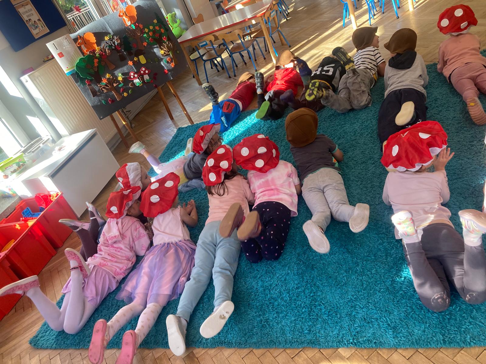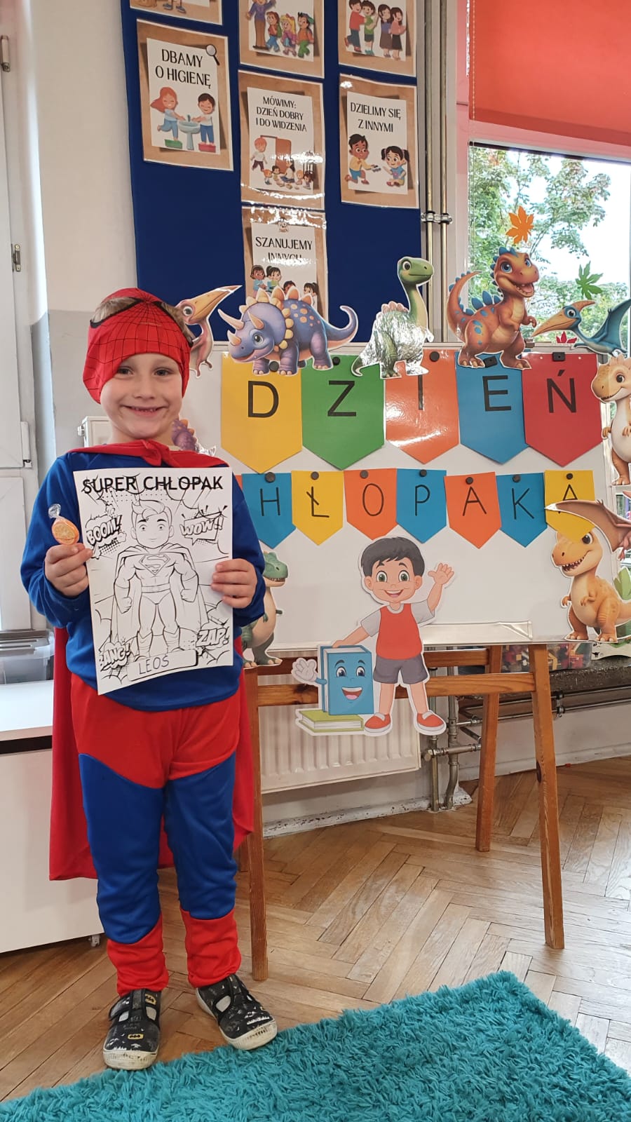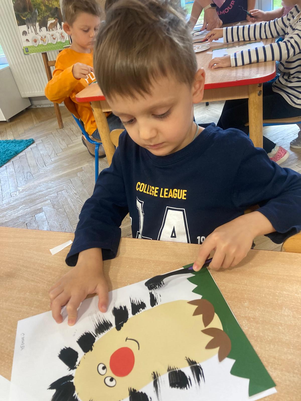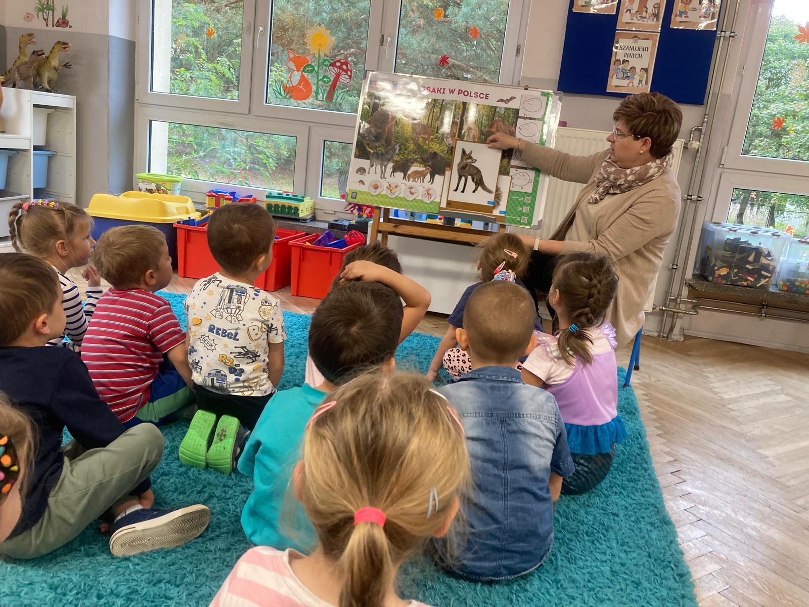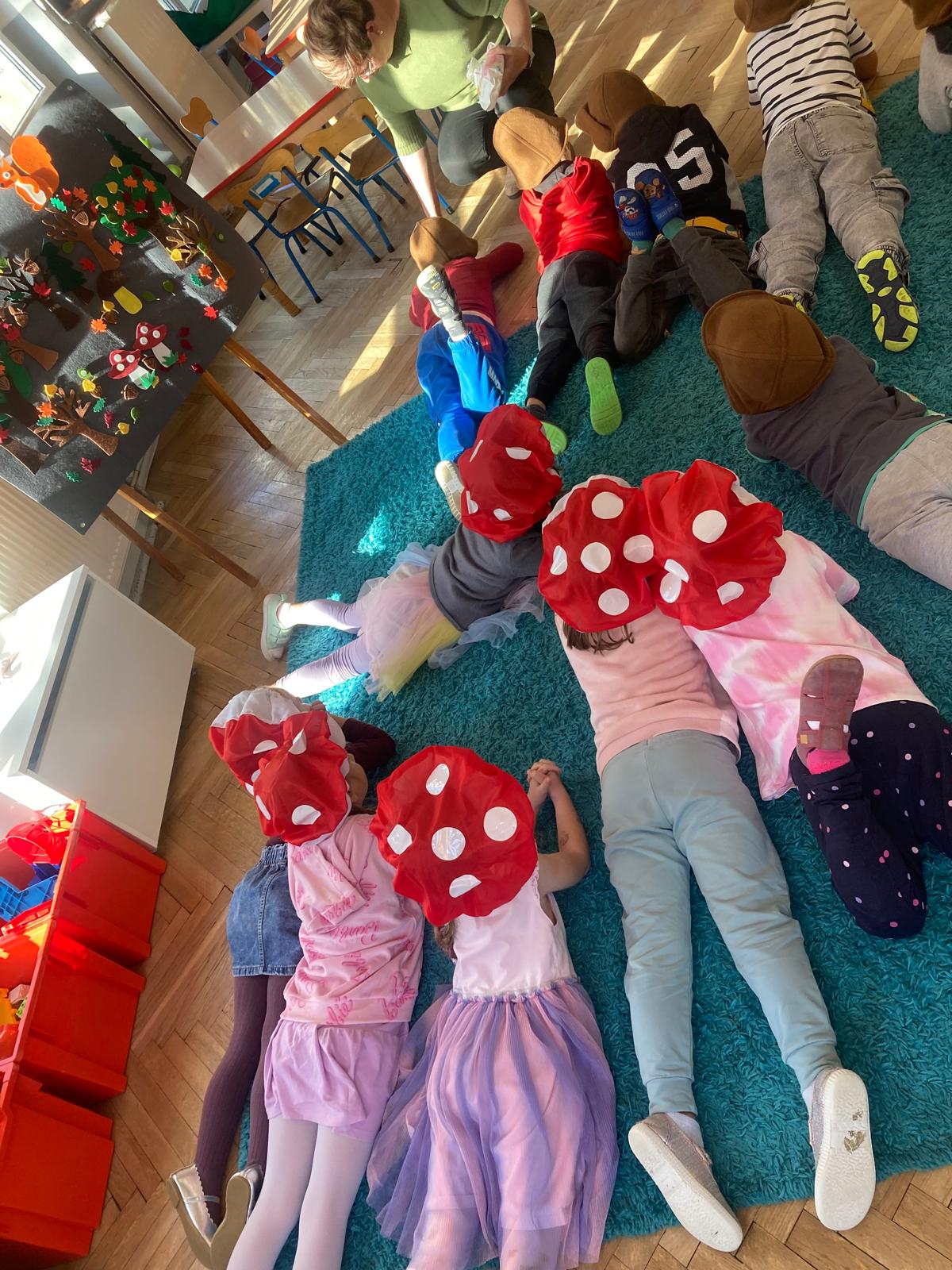 Jakie zwierzęta żyją w naszych lasach,czym żywi się jeż,czy wiwiórka robi zapasy na zimę?Na te i wiele innych pytań szukaliśmy odpowiedzi podczas zorganizowanych sytuacji edukacyjnych.Pomocą były filmy edukacyjne o jeżu,wiewiórce i lisku.Bawiliśmy się w zabawy ruchowe i spiewaliśmy piosenki o zwierzakach."Na leśnej" polanie romawialiśmy o grzybach jadalnych i trujacych,szukaliśmy kropek dla muchomorach i tańczyliśmy przy piosence pt:"Wesołe grzybki".Na zajeciach plastycznych malowaliśmy kolce jeża i tworzyliśmy przestrzenną pracę pt."Las".Przeliczaliśmy zwierzęta ,poznaliśmy cyfrę 1 w aspekcie kardynalnym i porządkowym.W tym tygodniu przypadł również Dzień Chłopaka -chłopcy w tym dniu opowiadali o swoich marzeniach i pokonywali tory przeszkód.Było wesoło:) Obdarowani lizaczkami od dziewczynek wykonali sobie pamiątkowe zdjęcie w wybranym stroju Supermana lub Spidermena