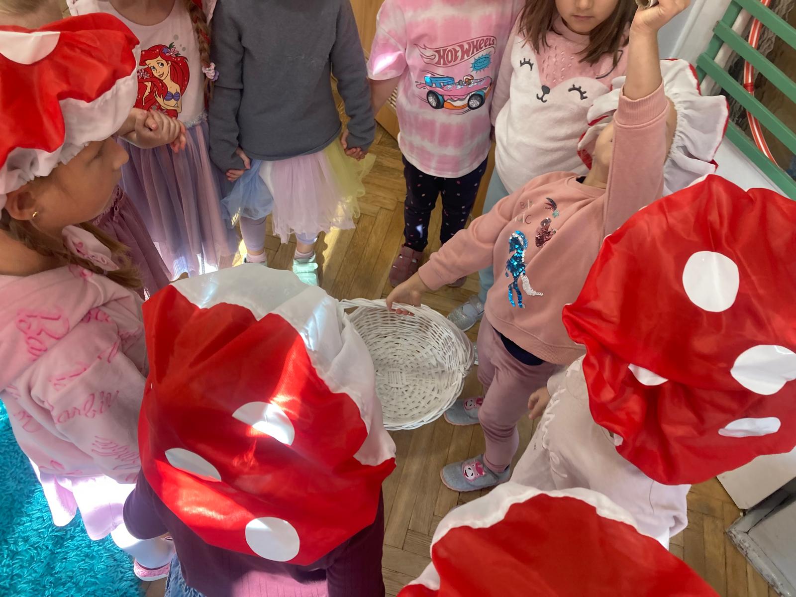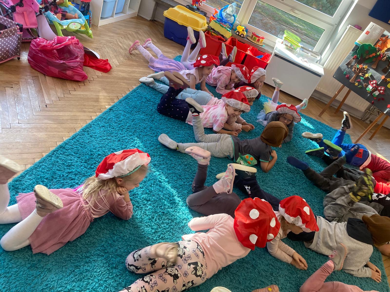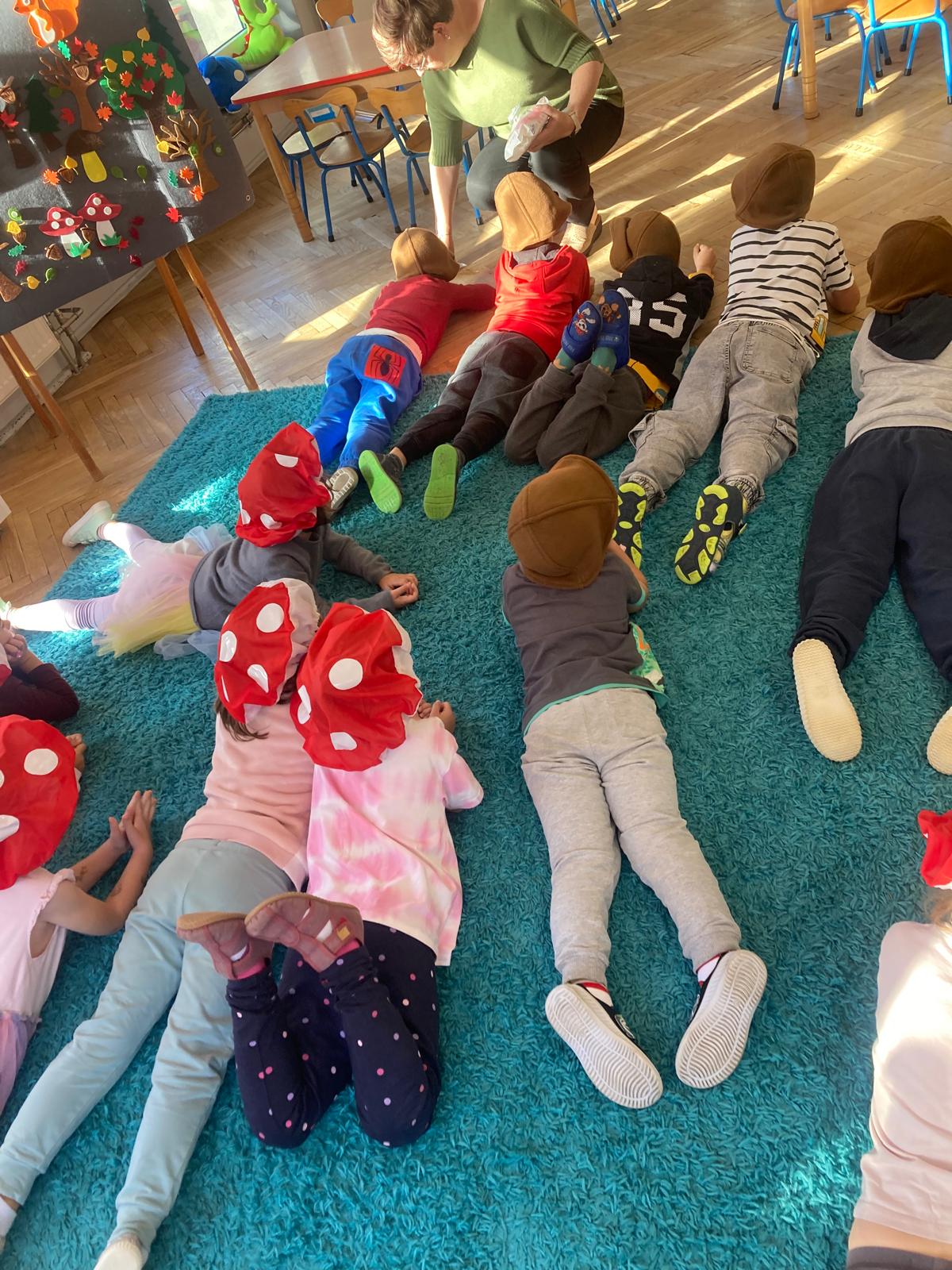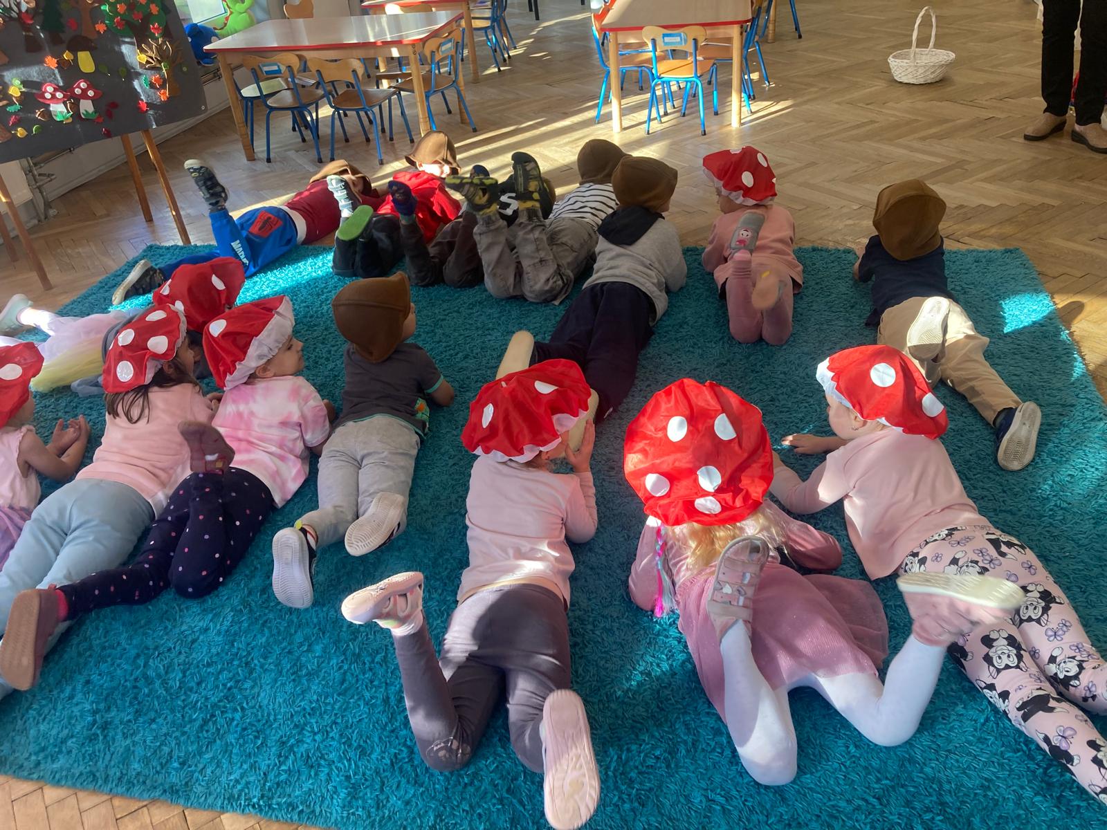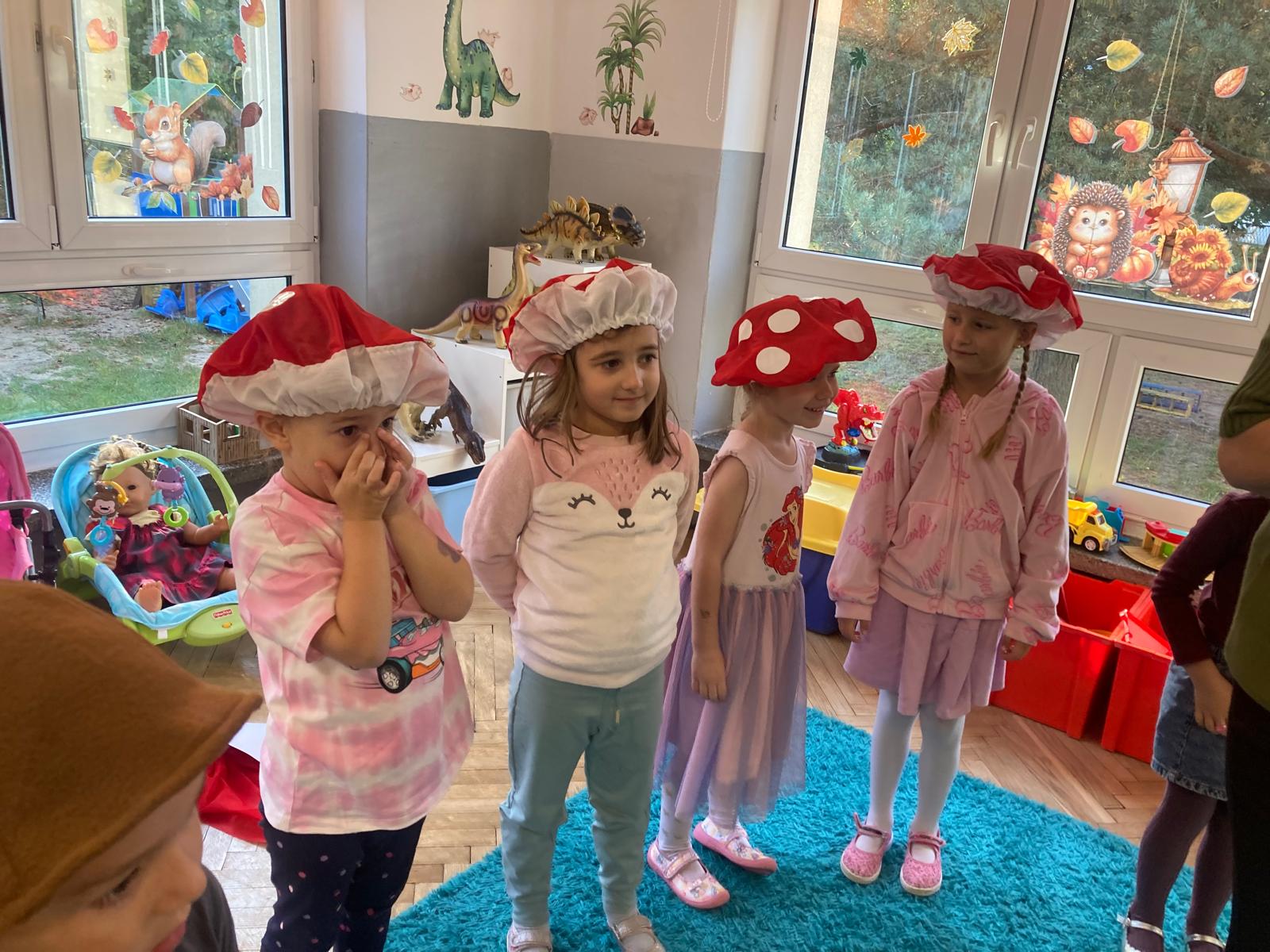 Jakie zwierzęta żyją w naszych lasach,czym żywi się jeż,czy wiwiórka robi zapasy na zimę?Na te i wiele innych pytań szukaliśmy odpowiedzi podczas zorganizowanych sytuacji edukacyjnych.Pomocą były filmy edukacyjne o jeżu,wiewiórce i lisku.Bawiliśmy się w zabawy ruchowe i spiewaliśmy piosenki o zwierzakach."Na leśnej" polanie romawialiśmy o grzybach jadalnych i trujacych,szukaliśmy kropek dla muchomorach i tańczyliśmy przy piosence pt:"Wesołe grzybki".Na zajeciach plastycznych malowaliśmy kolce jeża i tworzyliśmy przestrzenną pracę pt."Las".Przeliczaliśmy zwierzęta ,poznaliśmy cyfrę 1 w aspekcie kardynalnym i porządkowym.W tym tygodniu przypadł również Dzień Chłopaka -chłopcy w tym dniu opowiadali o swoich marzeniach i pokonywali tory przeszkód.Było wesoło:) Obdarowani lizaczkami od dziewczynek wykonali sobie pamiątkowe zdjęcie w wybranym stroju Supermana lub Spidermena