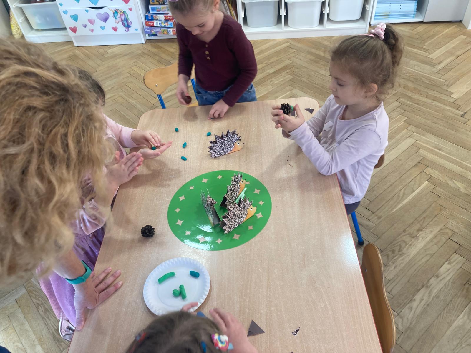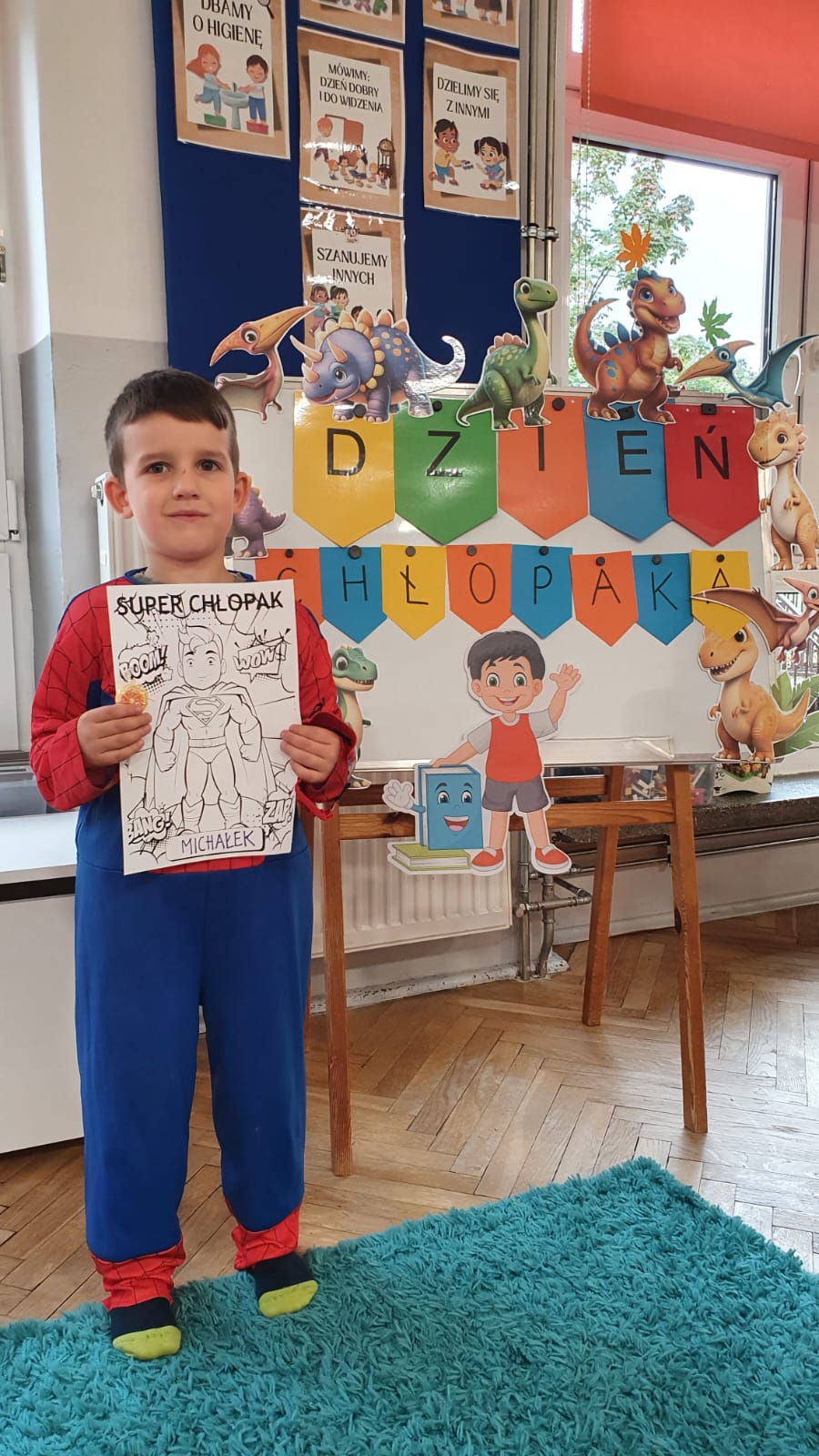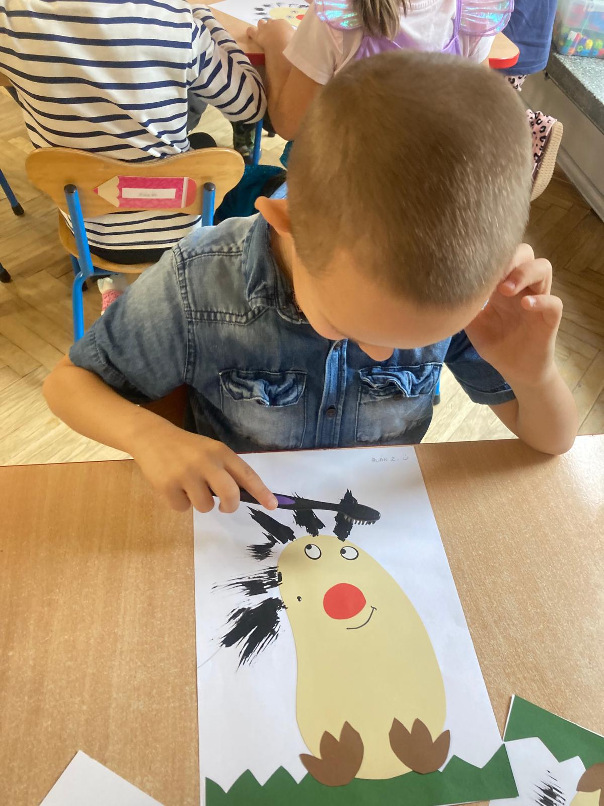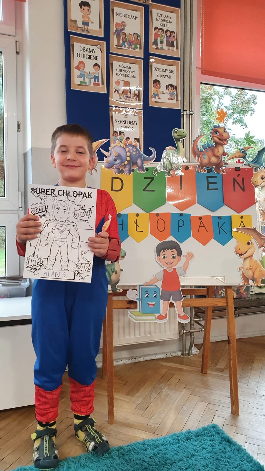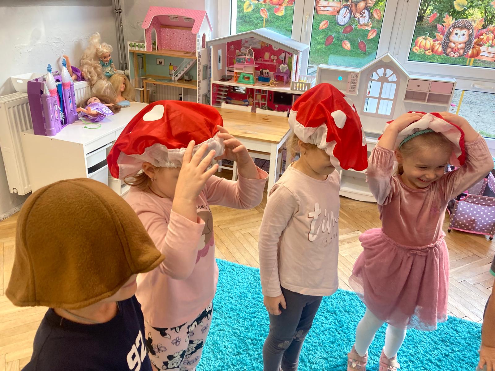Jakie zwierzęta żyją w naszych lasach,czym żywi się jeż,czy wiwiórka robi zapasy na zimę?Na te i wiele innych pytań szukaliśmy odpowiedzi podczas zorganizowanych sytuacji edukacyjnych.Pomocą były filmy edukacyjne o jeżu,wiewiórce i lisku.Bawiliśmy się w zabawy ruchowe i spiewaliśmy piosenki o zwierzakach."Na leśnej" polanie romawialiśmy o grzybach jadalnych i trujacych,szukaliśmy kropek dla muchomorach i tańczyliśmy przy piosence pt:"Wesołe grzybki".Na zajeciach plastycznych malowaliśmy kolce jeża i tworzyliśmy przestrzenną pracę pt."Las".Przeliczaliśmy zwierzęta ,poznaliśmy cyfrę 1 w aspekcie kardynalnym i porządkowym.W tym tygodniu przypadł również Dzień Chłopaka -chłopcy w tym dniu opowiadali o swoich marzeniach i pokonywali tory przeszkód.Było wesoło:) Obdarowani lizaczkami od dziewczynek wykonali sobie pamiątkowe zdjęcie w wybranym stroju Supermana lub Spidermena