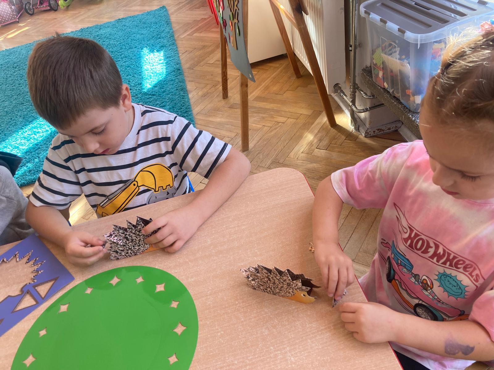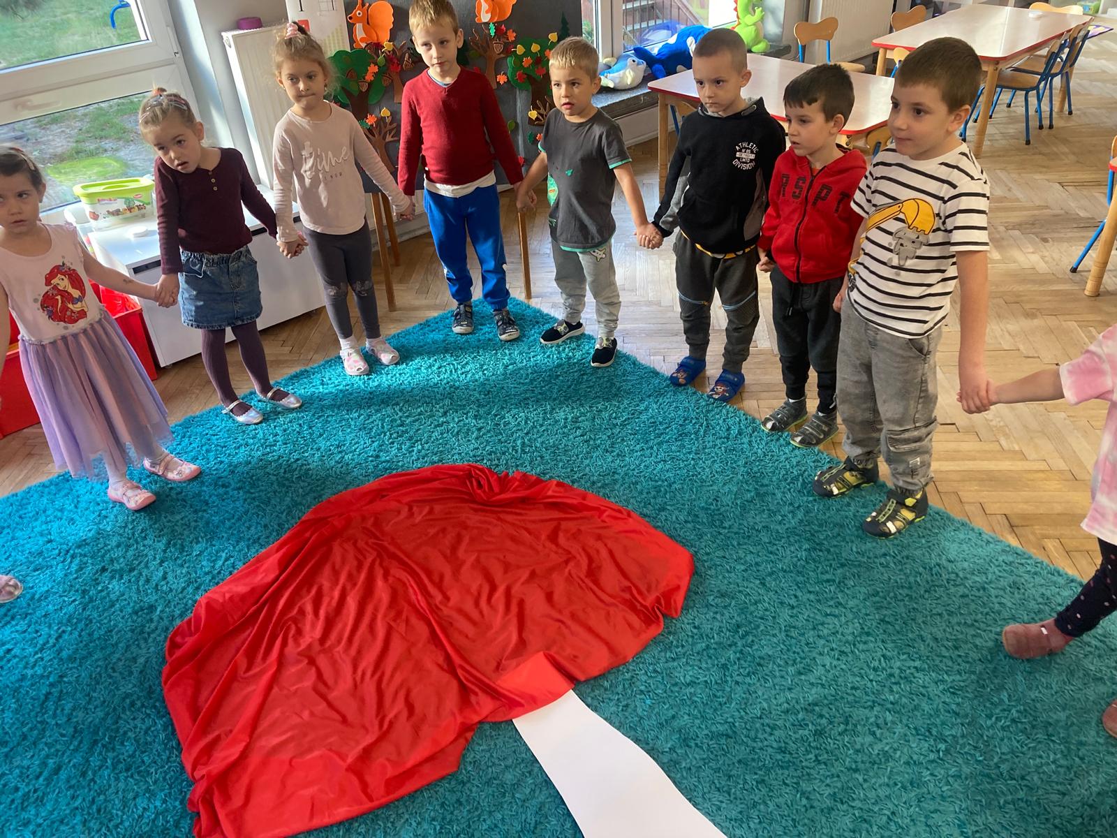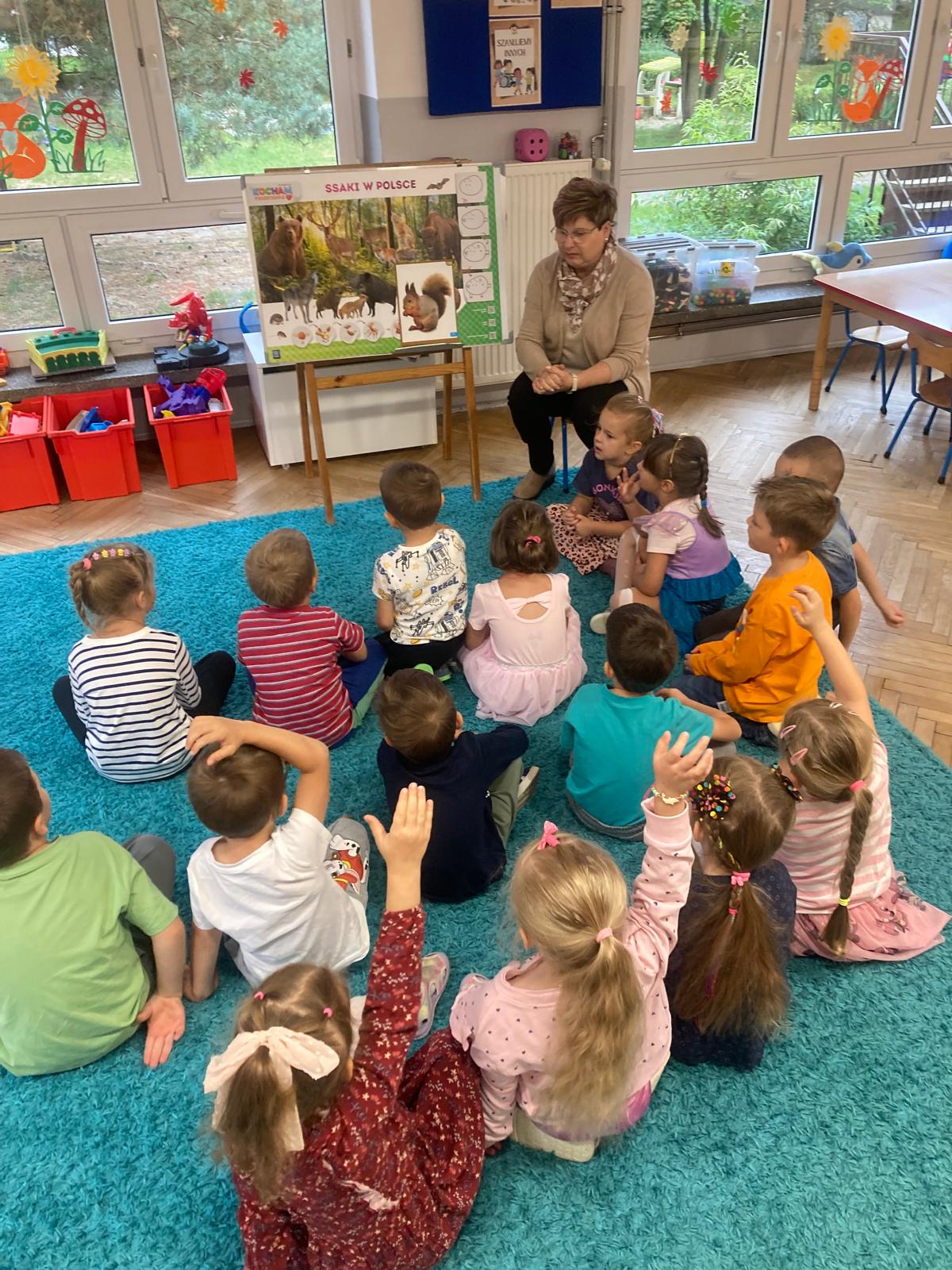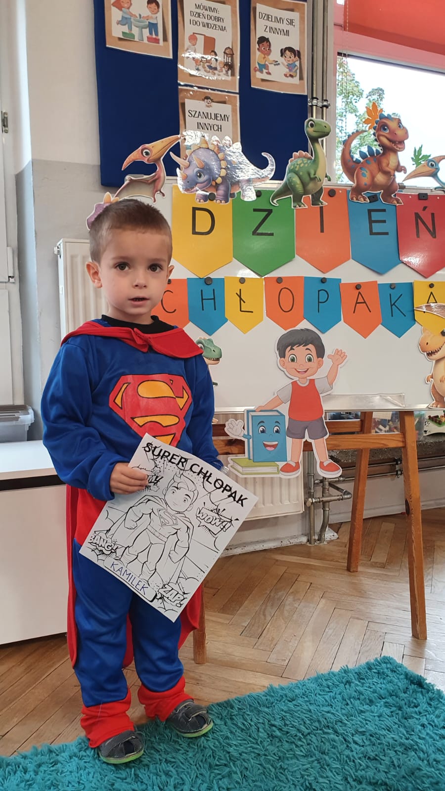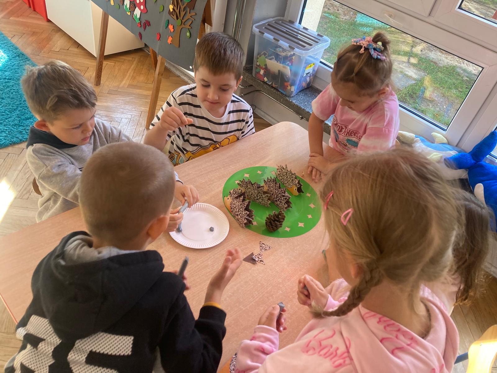 Jakie zwierzęta żyją w naszych lasach,czym żywi się jeż,czy wiwiórka robi zapasy na zimę?Na te i wiele innych pytań szukaliśmy odpowiedzi podczas zorganizowanych sytuacji edukacyjnych.Pomocą były filmy edukacyjne o jeżu,wiewiórce i lisku.Bawiliśmy się w zabawy ruchowe i spiewaliśmy piosenki o zwierzakach."Na leśnej" polanie romawialiśmy o grzybach jadalnych i trujacych,szukaliśmy kropek dla muchomorach i tańczyliśmy przy piosence pt:"Wesołe grzybki".Na zajeciach plastycznych malowaliśmy kolce jeża i tworzyliśmy przestrzenną pracę pt."Las".Przeliczaliśmy zwierzęta ,poznaliśmy cyfrę 1 w aspekcie kardynalnym i porządkowym.W tym tygodniu przypadł również Dzień Chłopaka -chłopcy w tym dniu opowiadali o swoich marzeniach i pokonywali tory przeszkód.Było wesoło:) Obdarowani lizaczkami od dziewczynek wykonali sobie pamiątkowe zdjęcie w wybranym stroju Supermana lub Spidermena