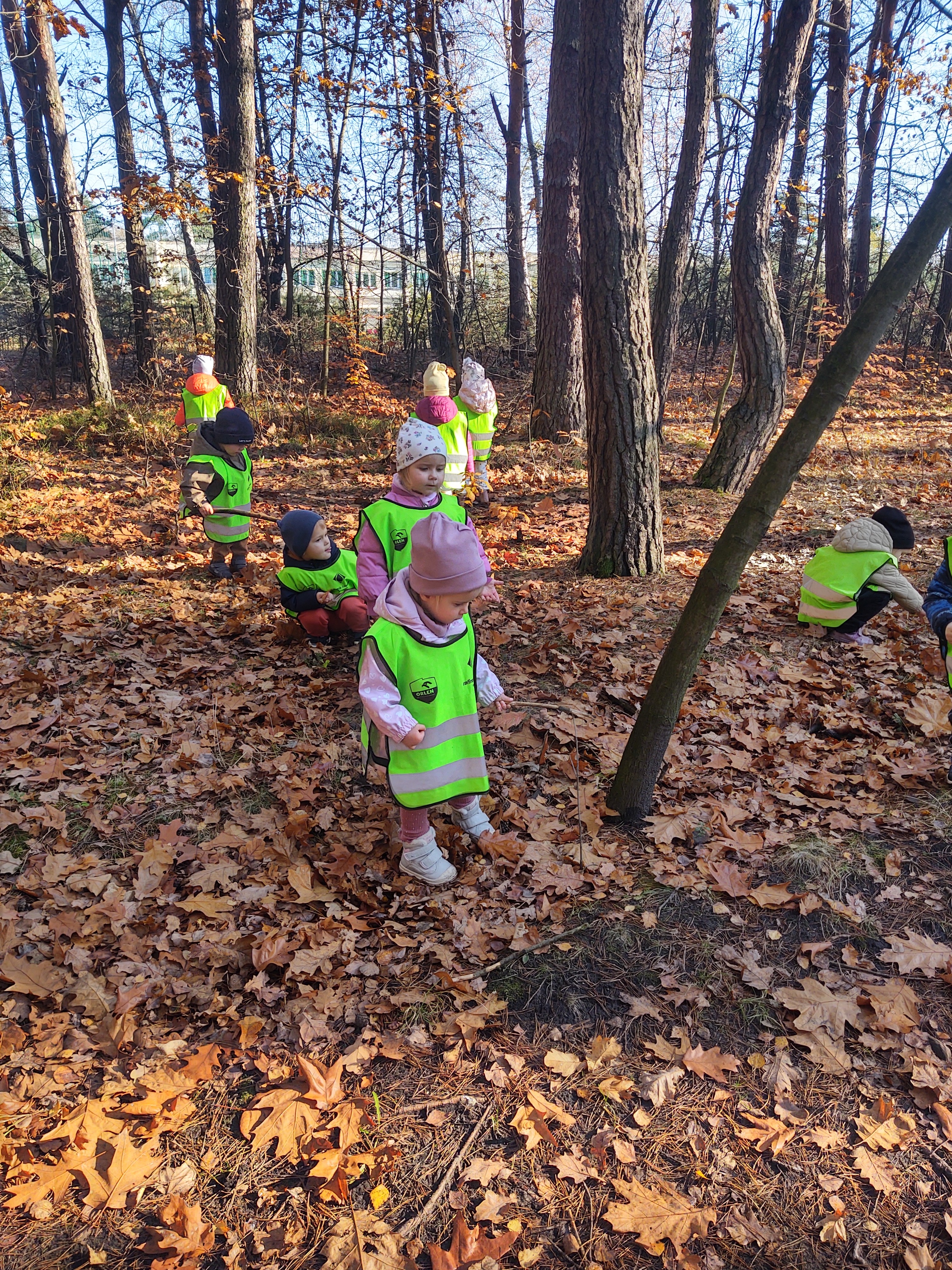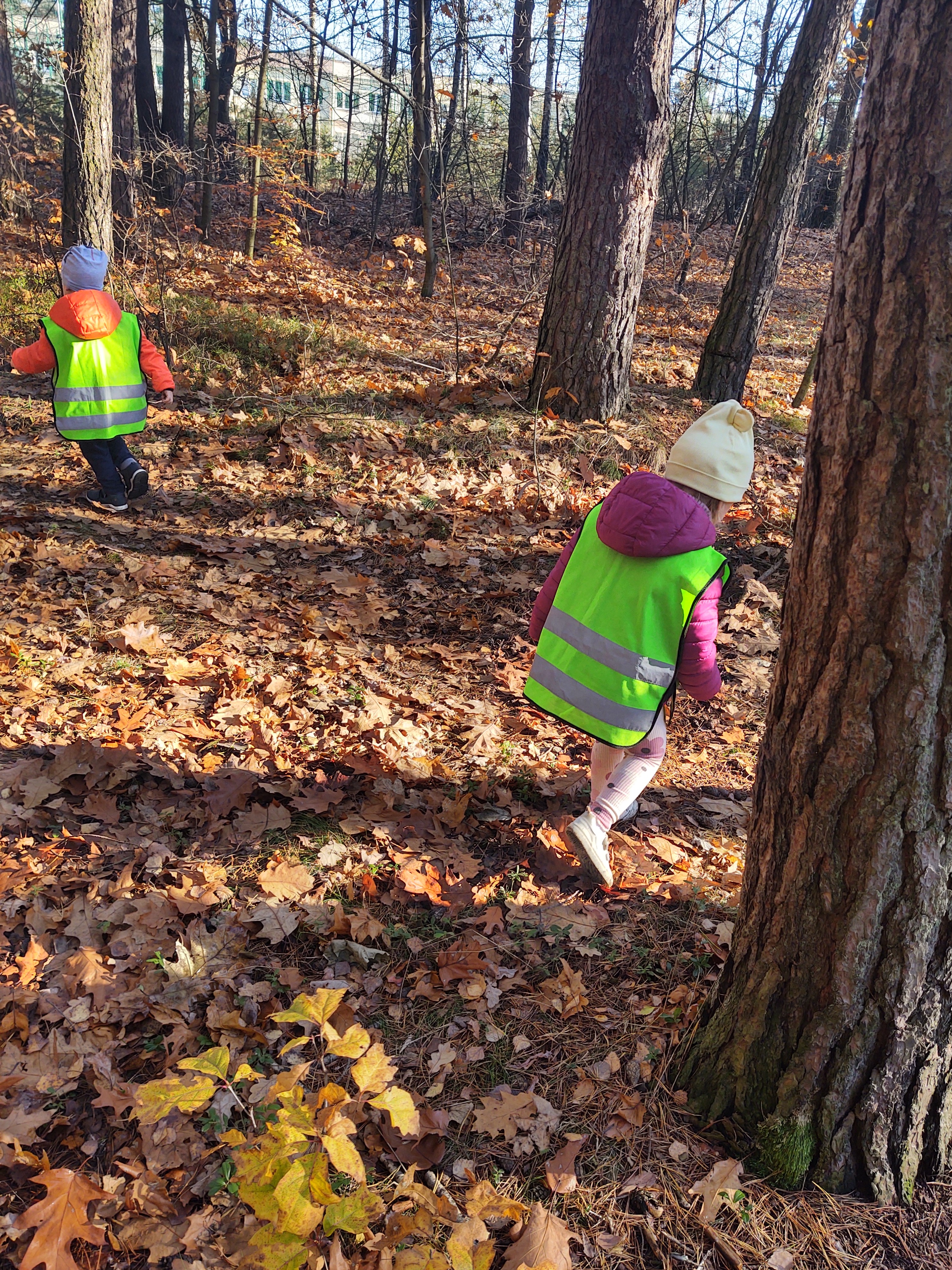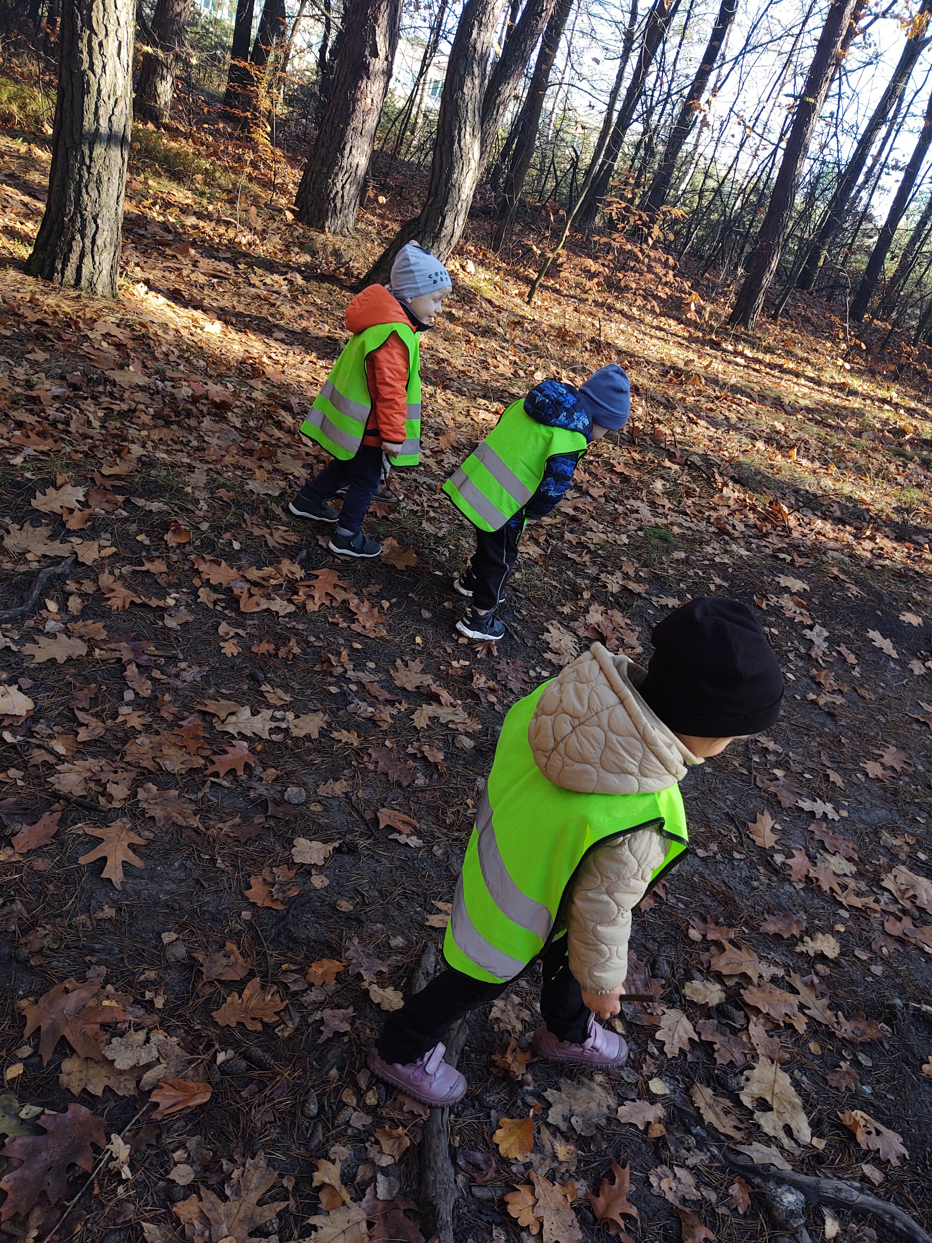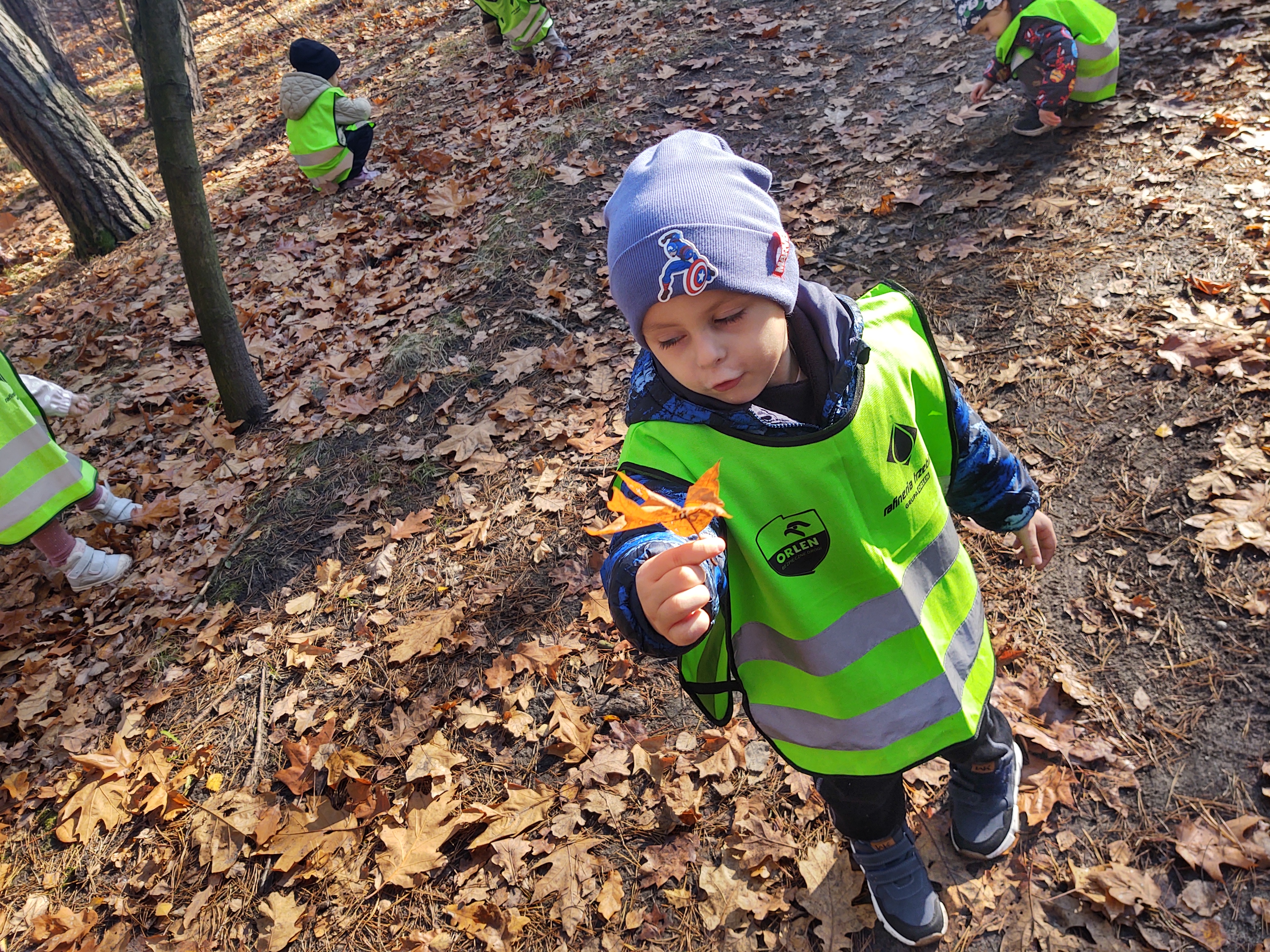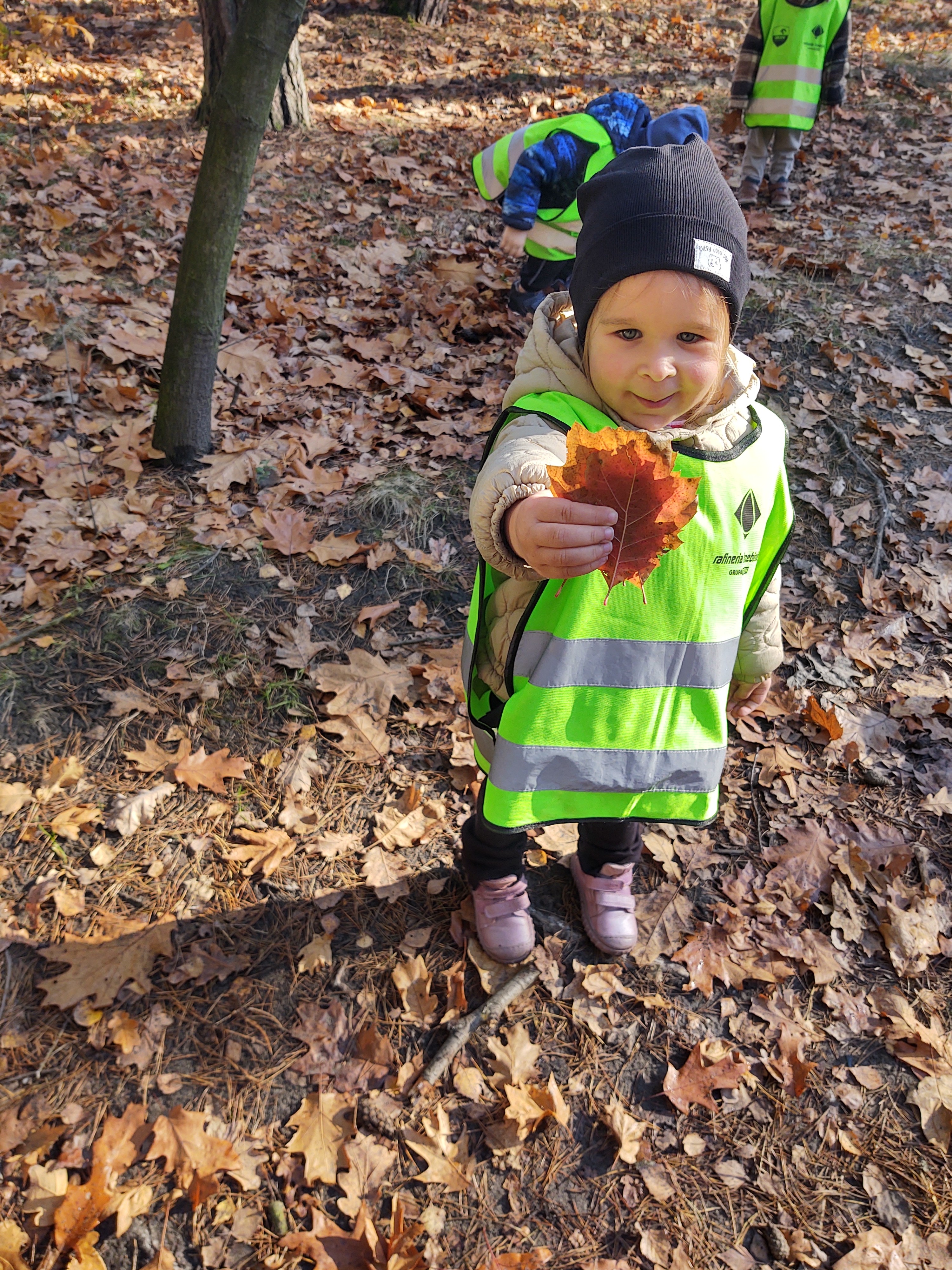 W tym dniu pogoda była wyjątkowa piękna. Nie brakowało promieni słońca i ciepłych podmuchów wiatru. Przedszkolaki bezpośrednio obcowały z przyrodą, rozpoznawały rodzaje drzew po liściach i owocach oraz zbierały jesienne skarby do kosza w celu wzbogacenia kącika przyrody. Na zakończenie dzieci świetnie się bawił się na świeżym powietrzu.