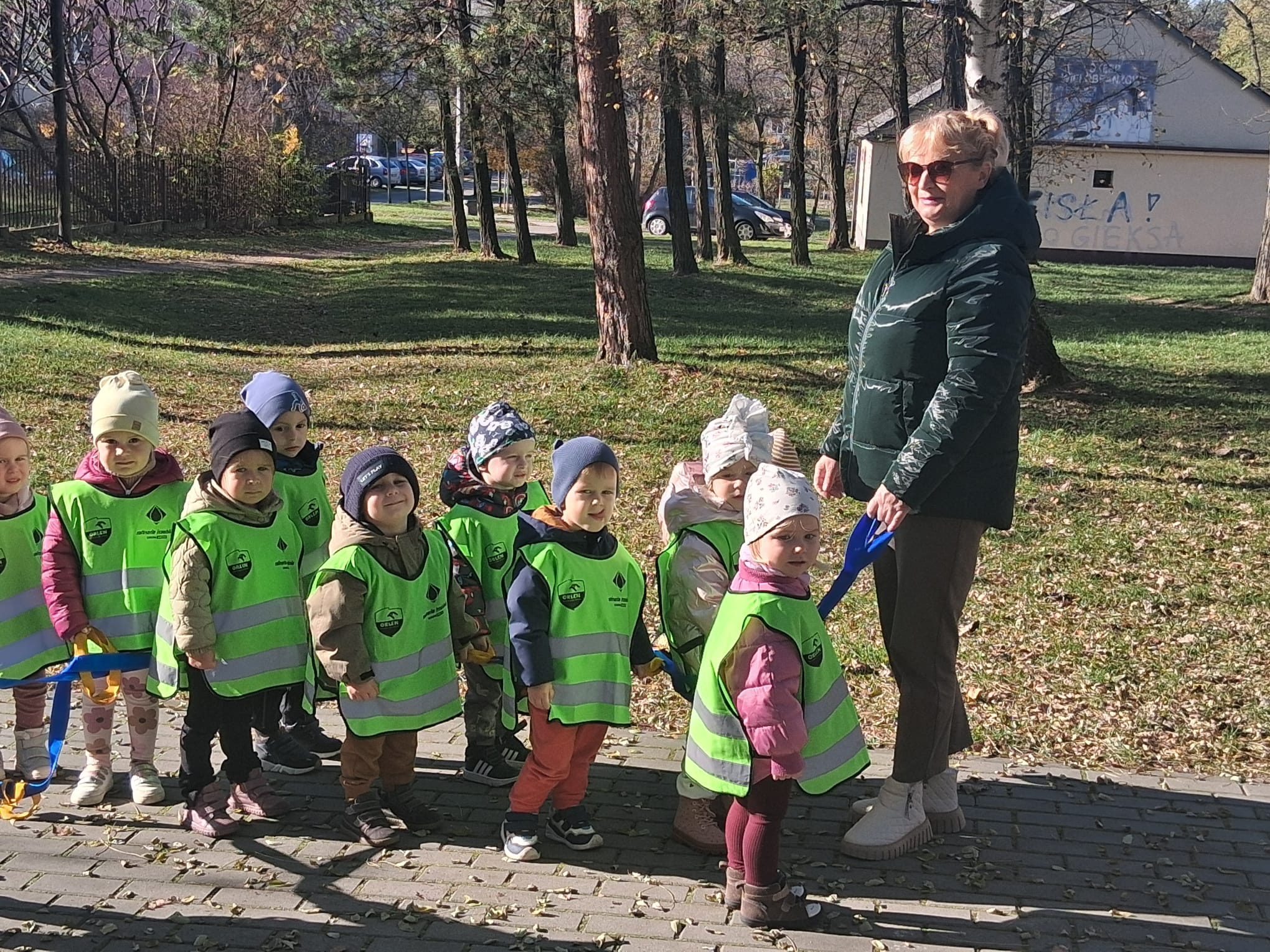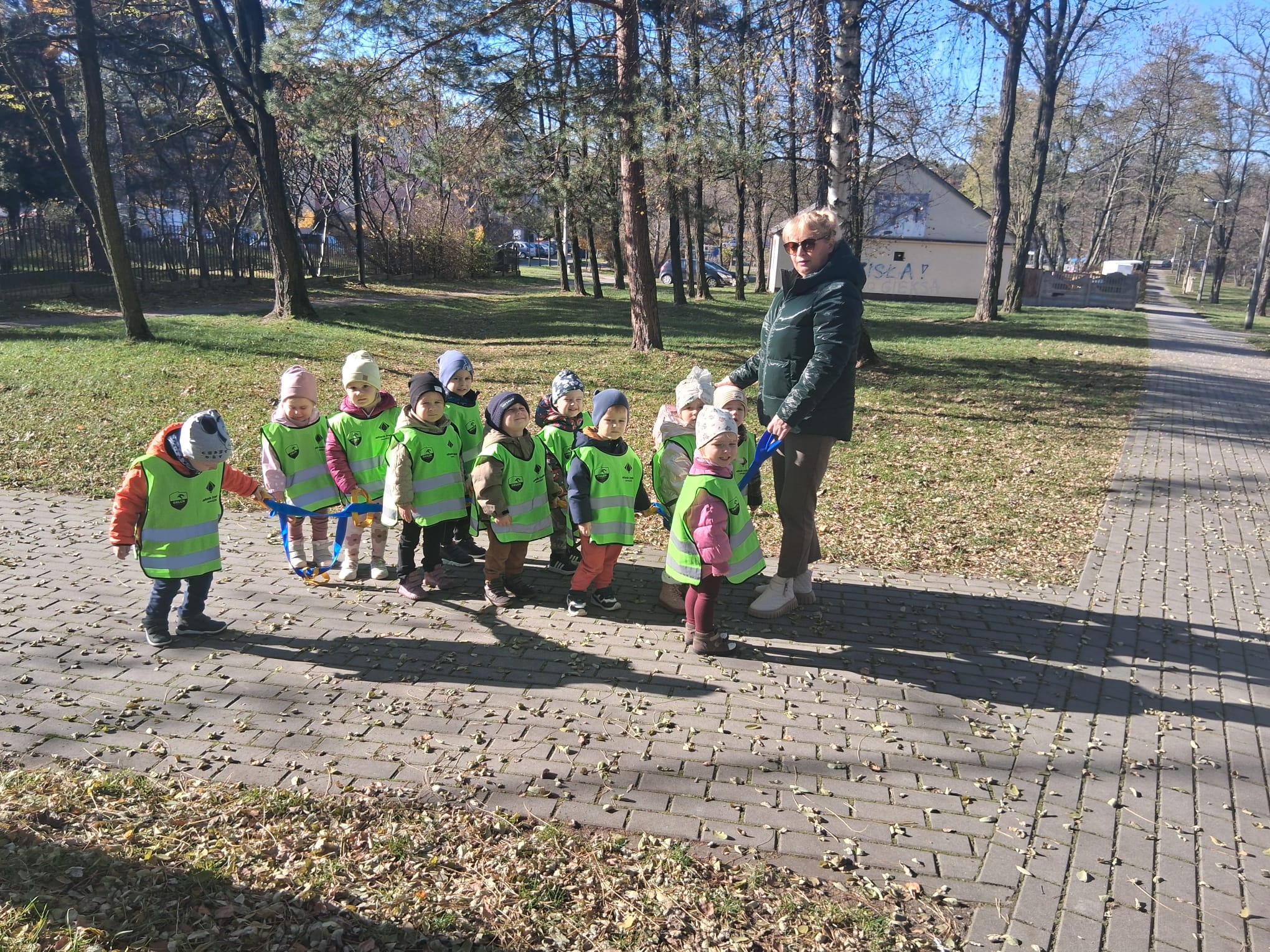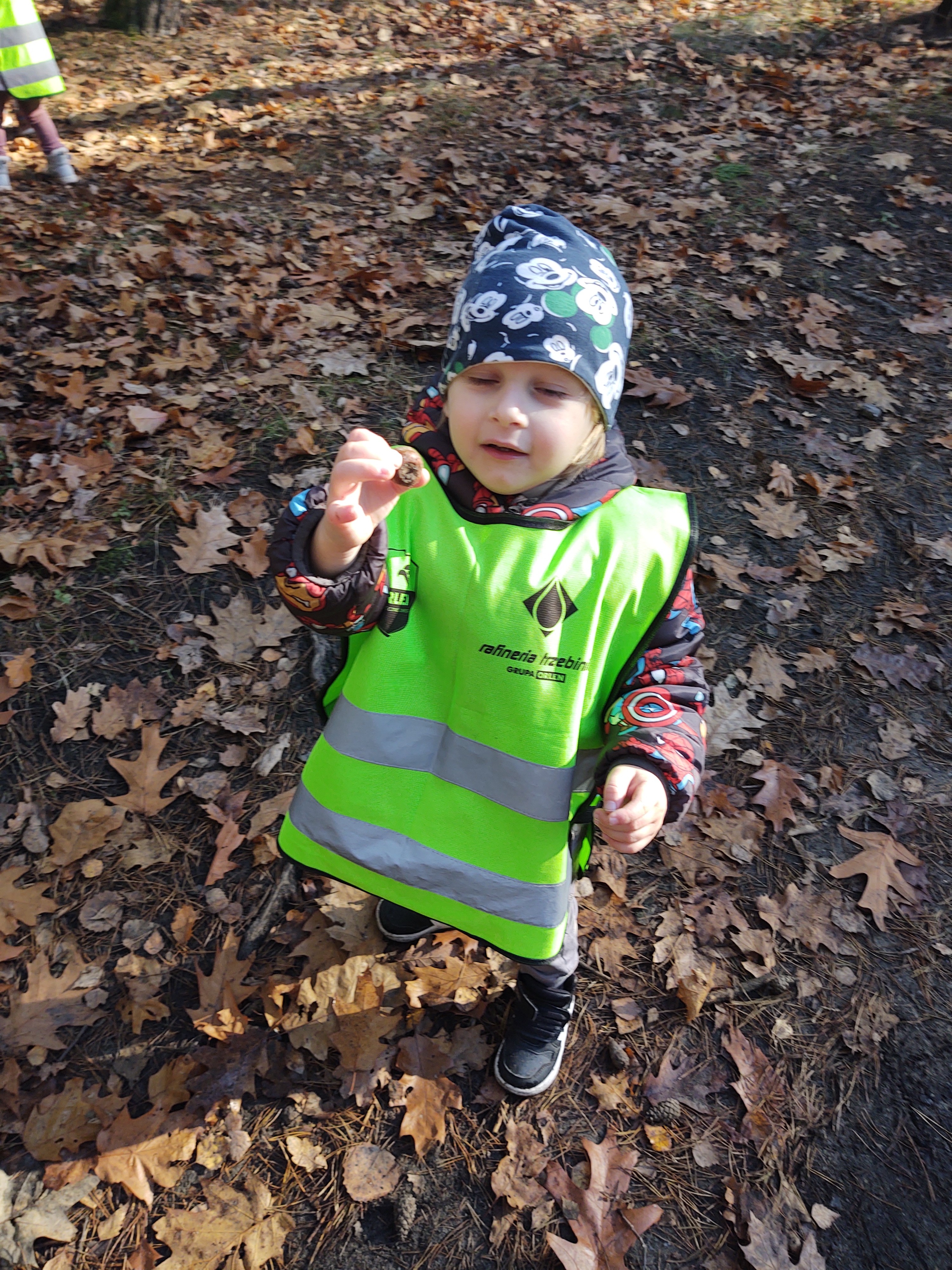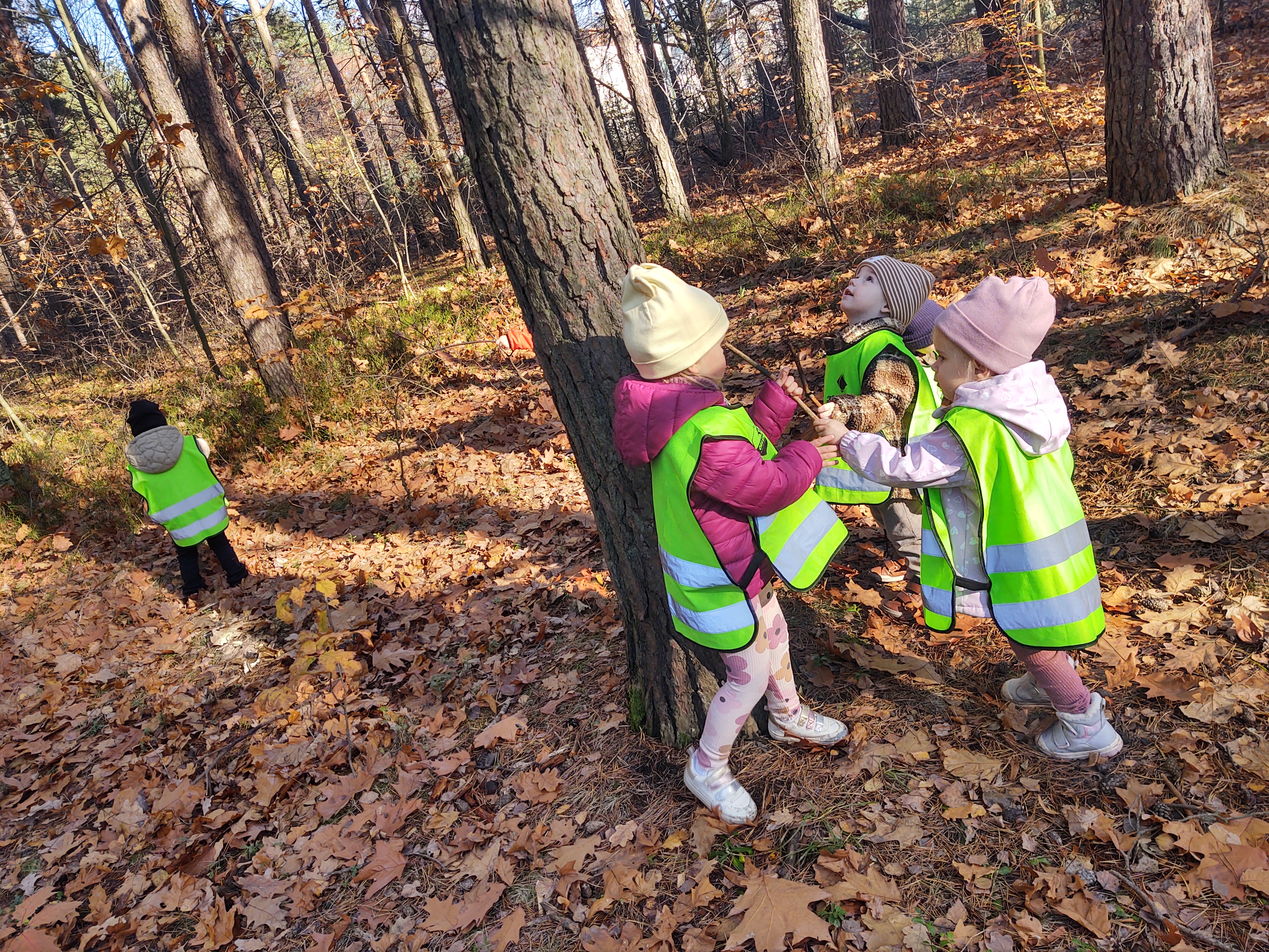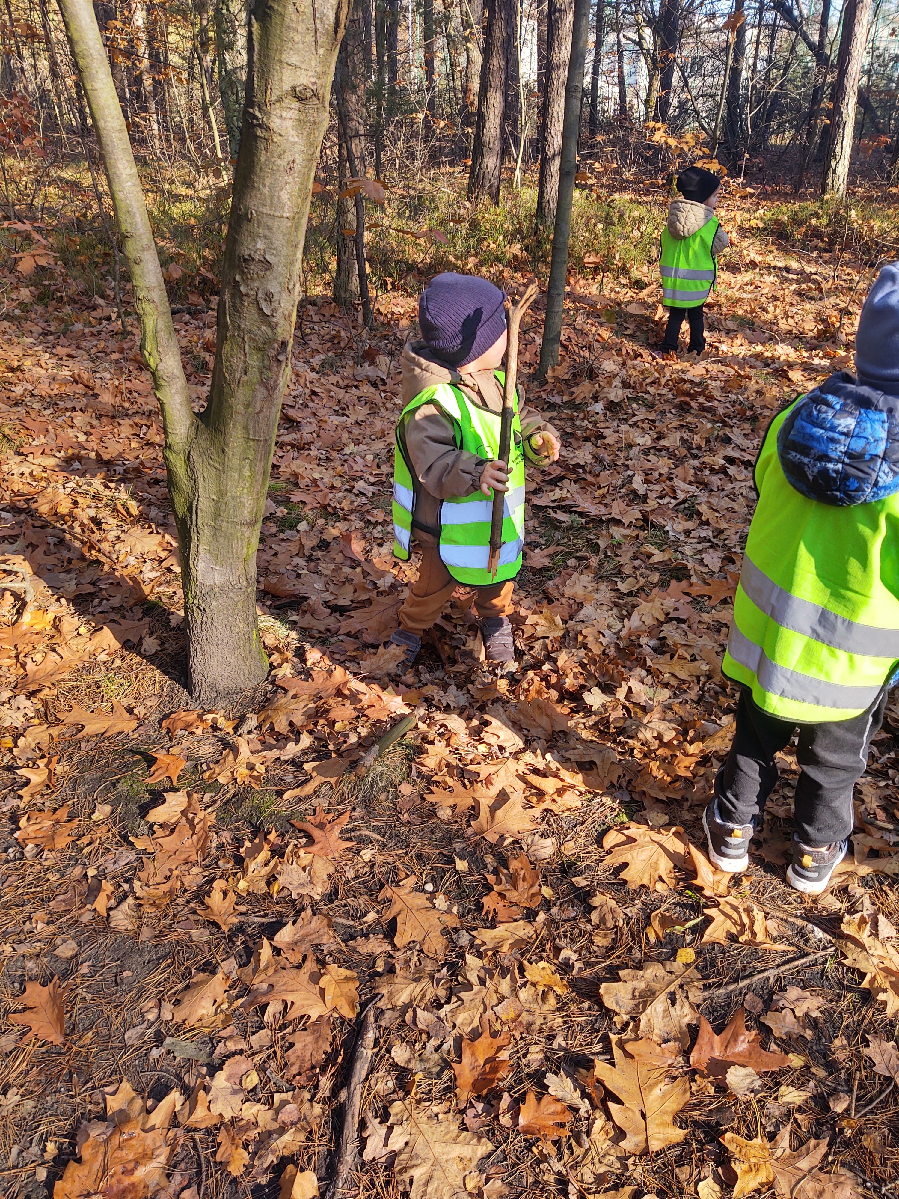 W tym dniu pogoda była wyjątkowa piękna. Nie brakowało promieni słońca i ciepłych podmuchów wiatru. Przedszkolaki bezpośrednio obcowały z przyrodą, rozpoznawały rodzaje drzew po liściach i owocach oraz zbierały jesienne skarby do kosza w celu wzbogacenia kącika przyrody. Na zakończenie dzieci świetnie się bawił się na świeżym powietrzu.