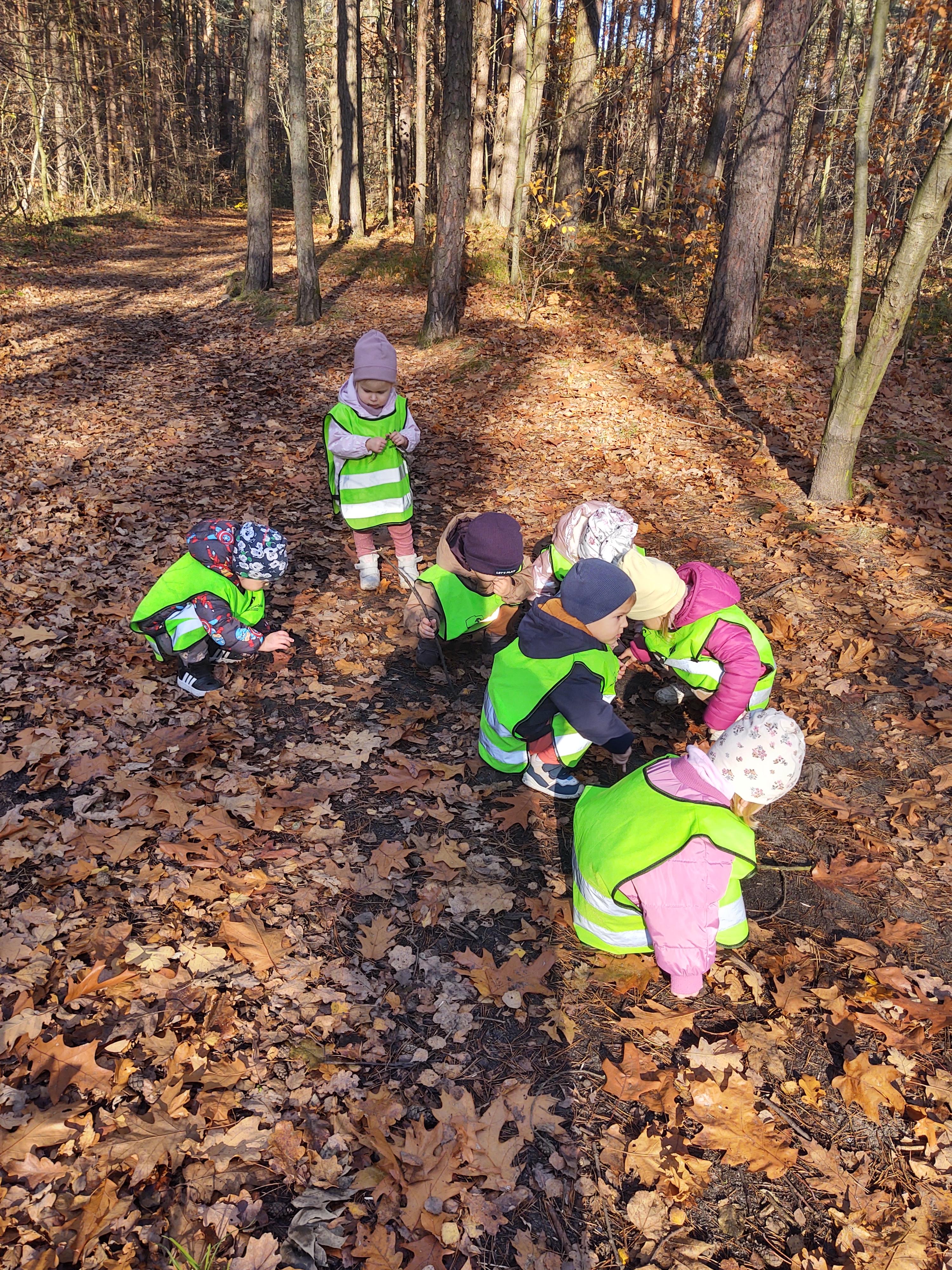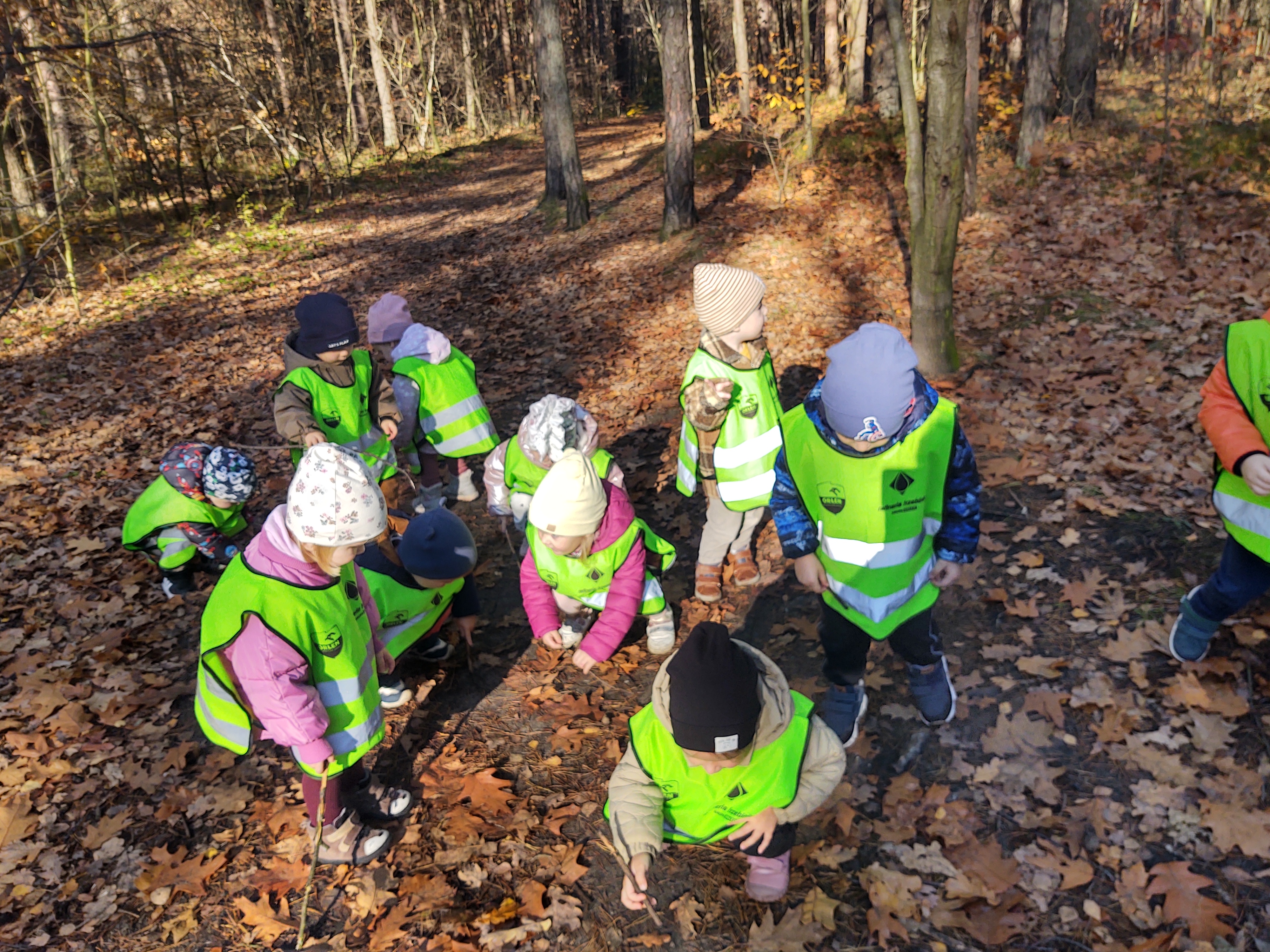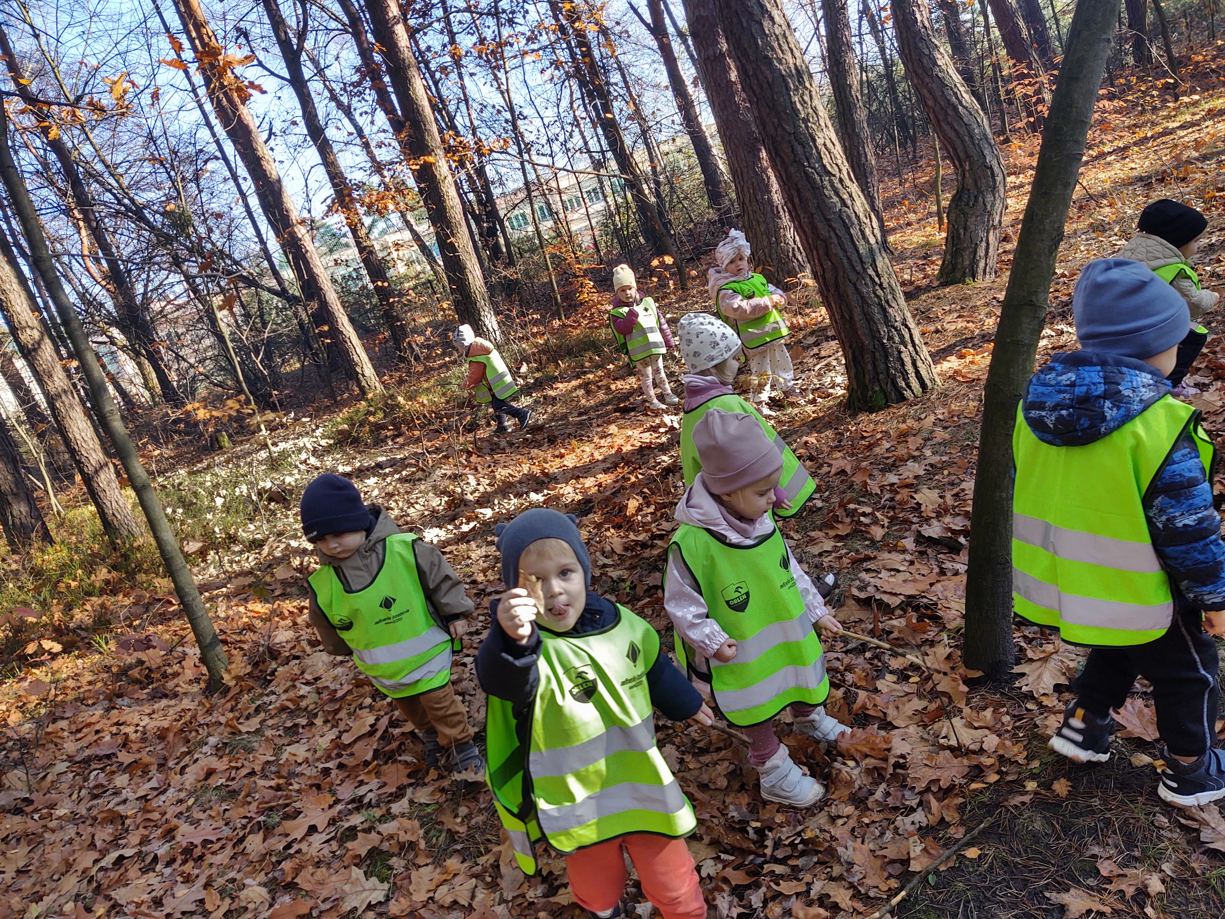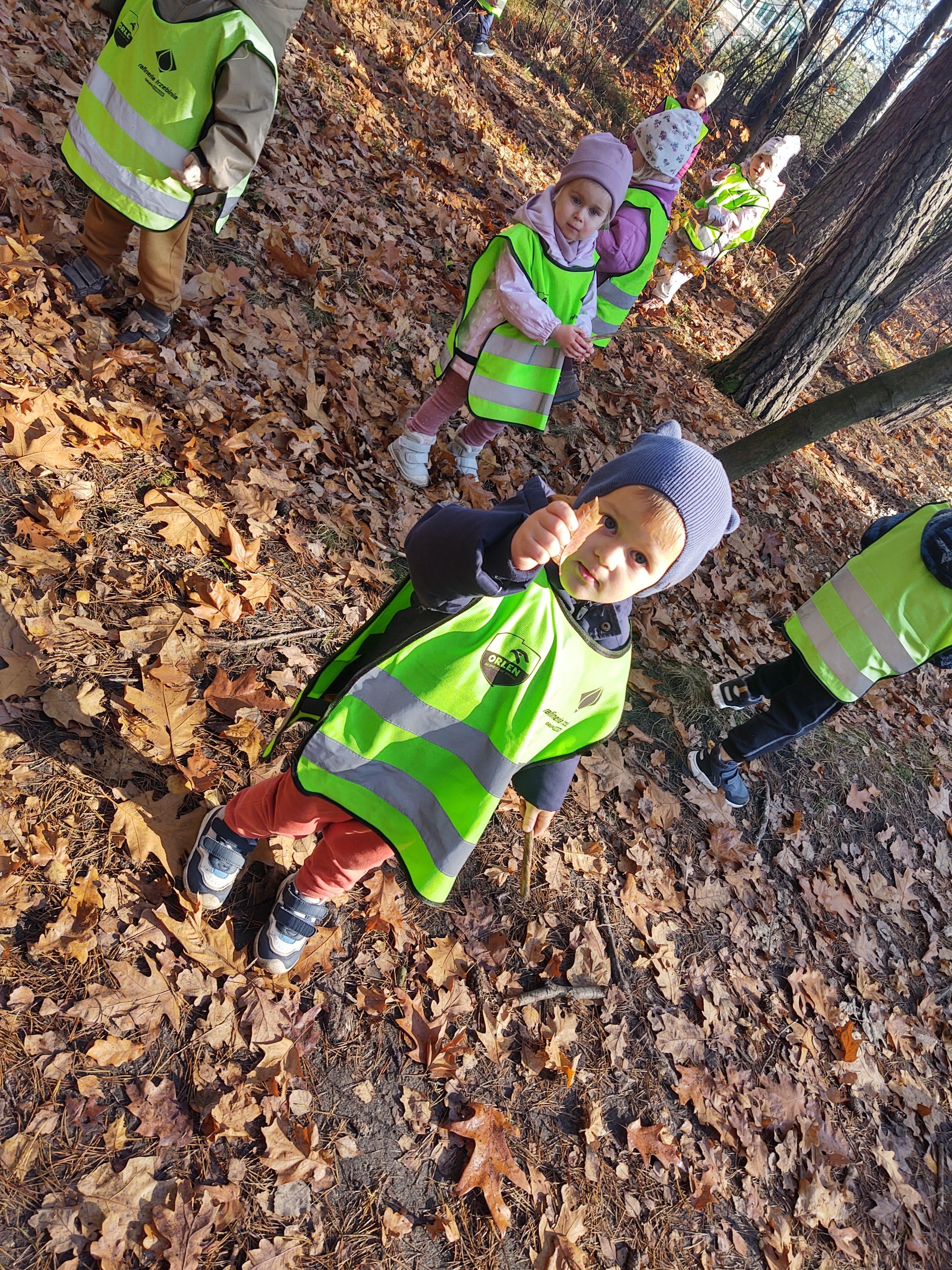 Jesień to piękna pora roku, pełna kolorów i cudownych widoków dlatego dzieci z przedszkola wyruszyły na spacerek do pobliskiego lasu obserwować zmiany, jakie zaszły wraz z nadejściem nowej pory roku – Jesieni.