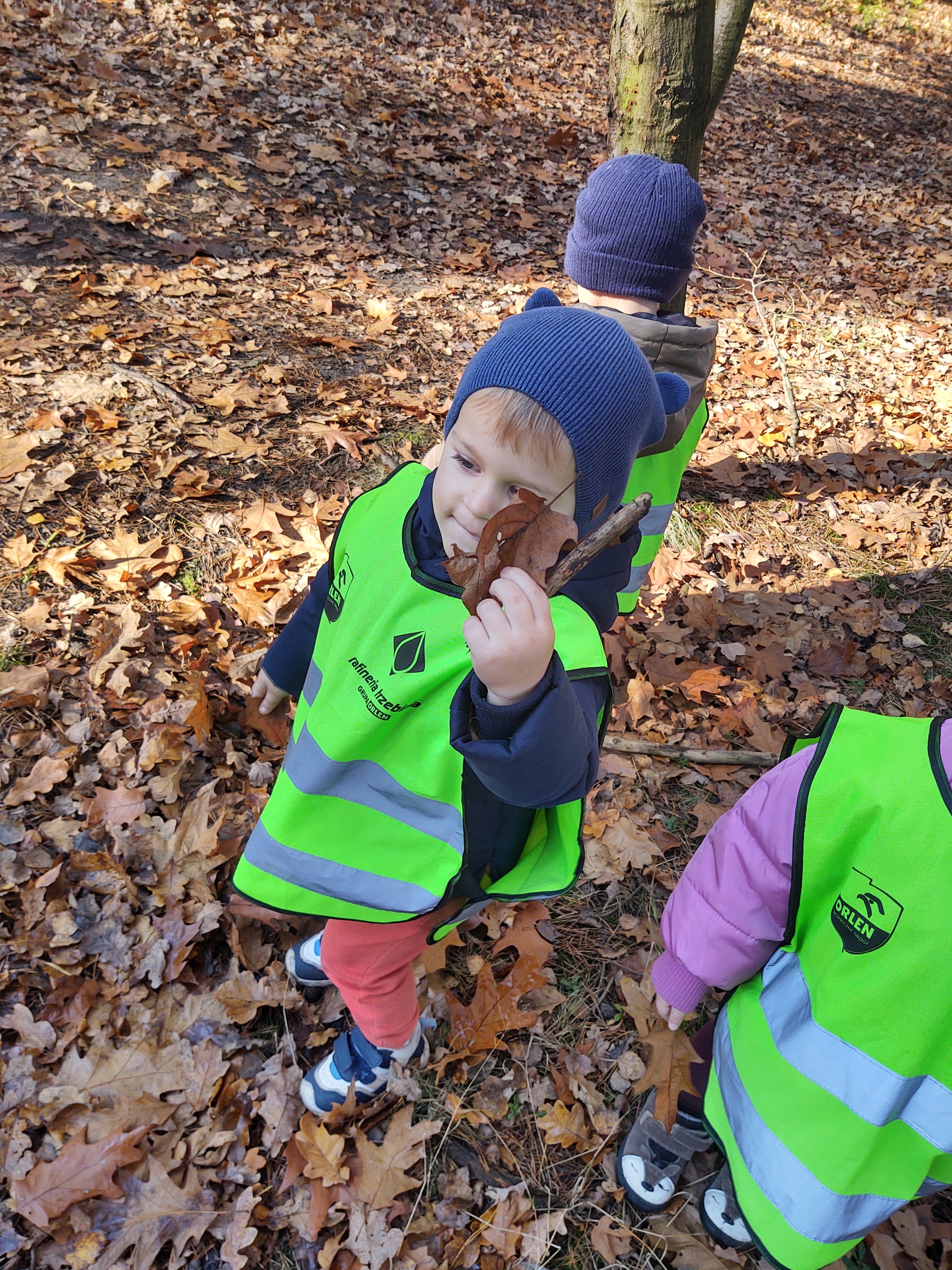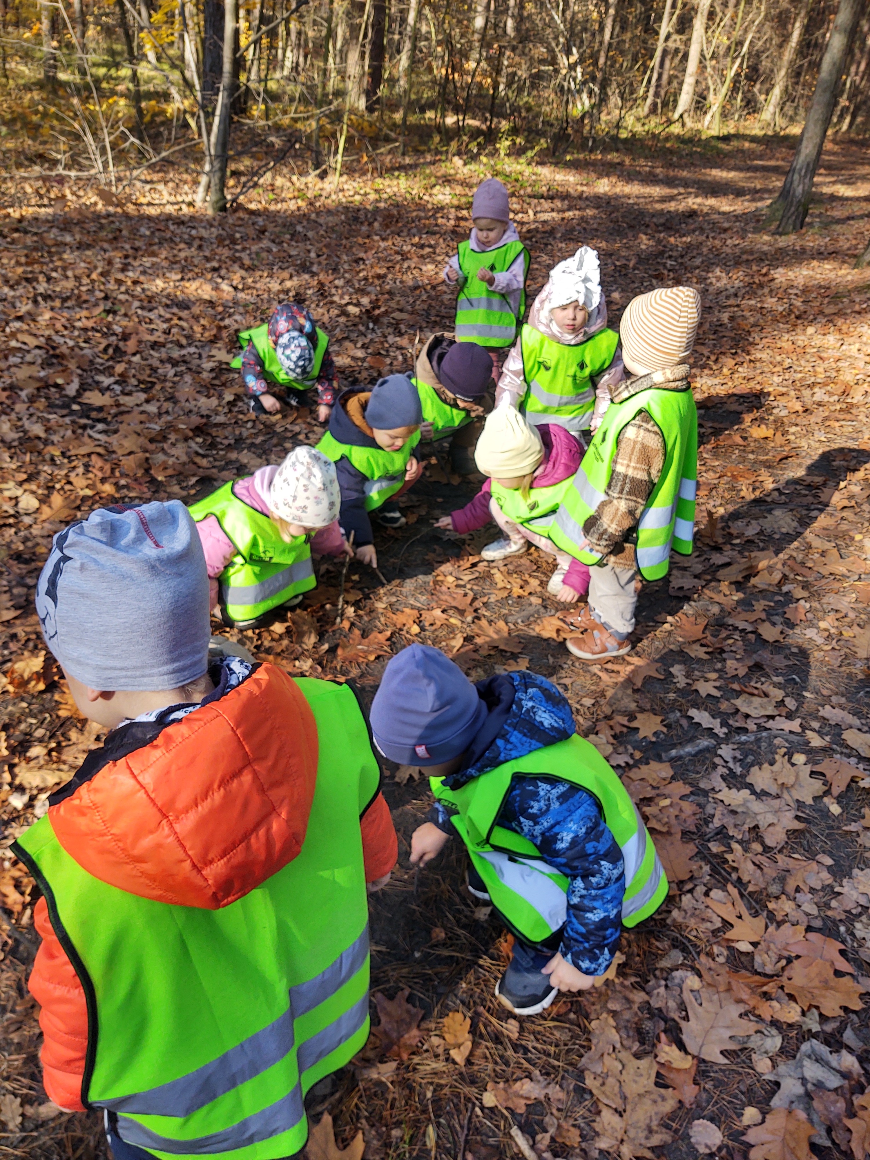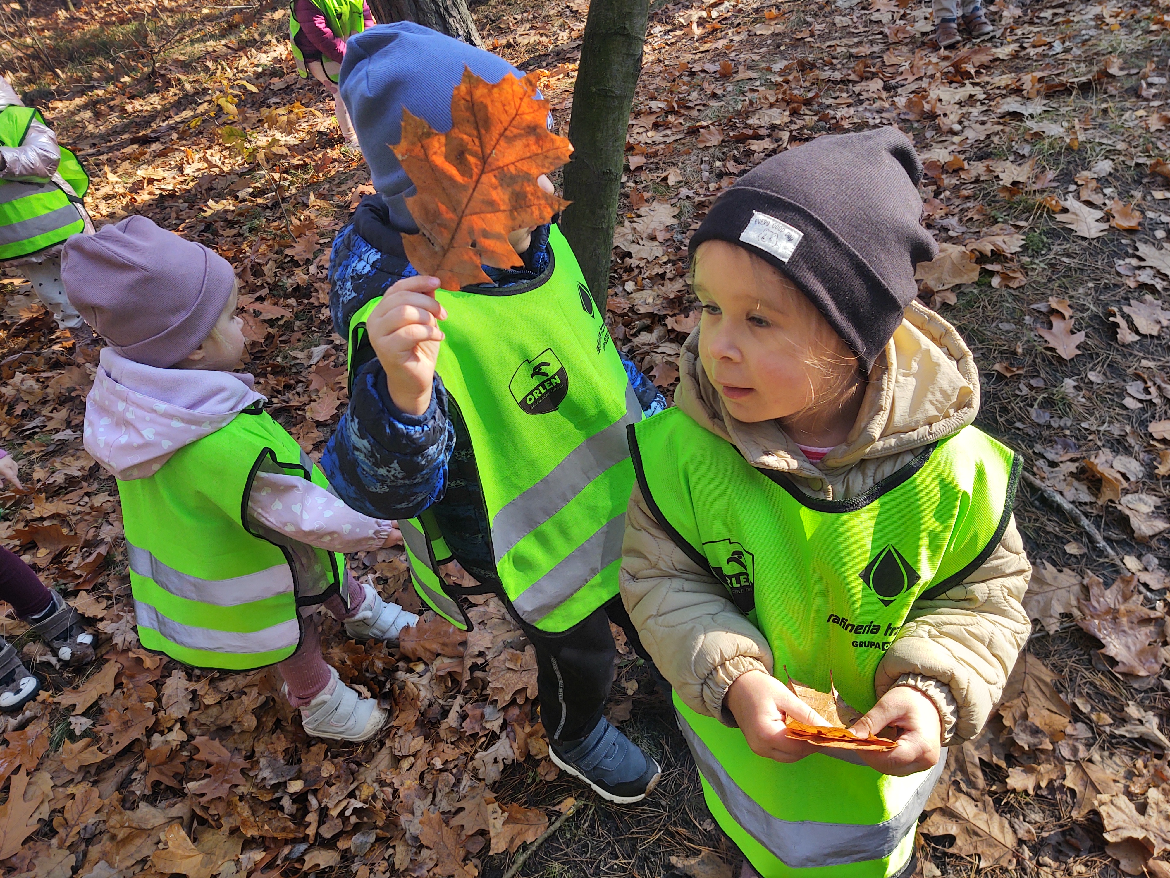 Jesień to piękna pora roku, pełna kolorów i cudownych widoków dlatego dzieci z przedszkola wyruszyły na spacerek do pobliskiego lasu obserwować zmiany, jakie zaszły wraz z nadejściem nowej pory roku – Jesieni.