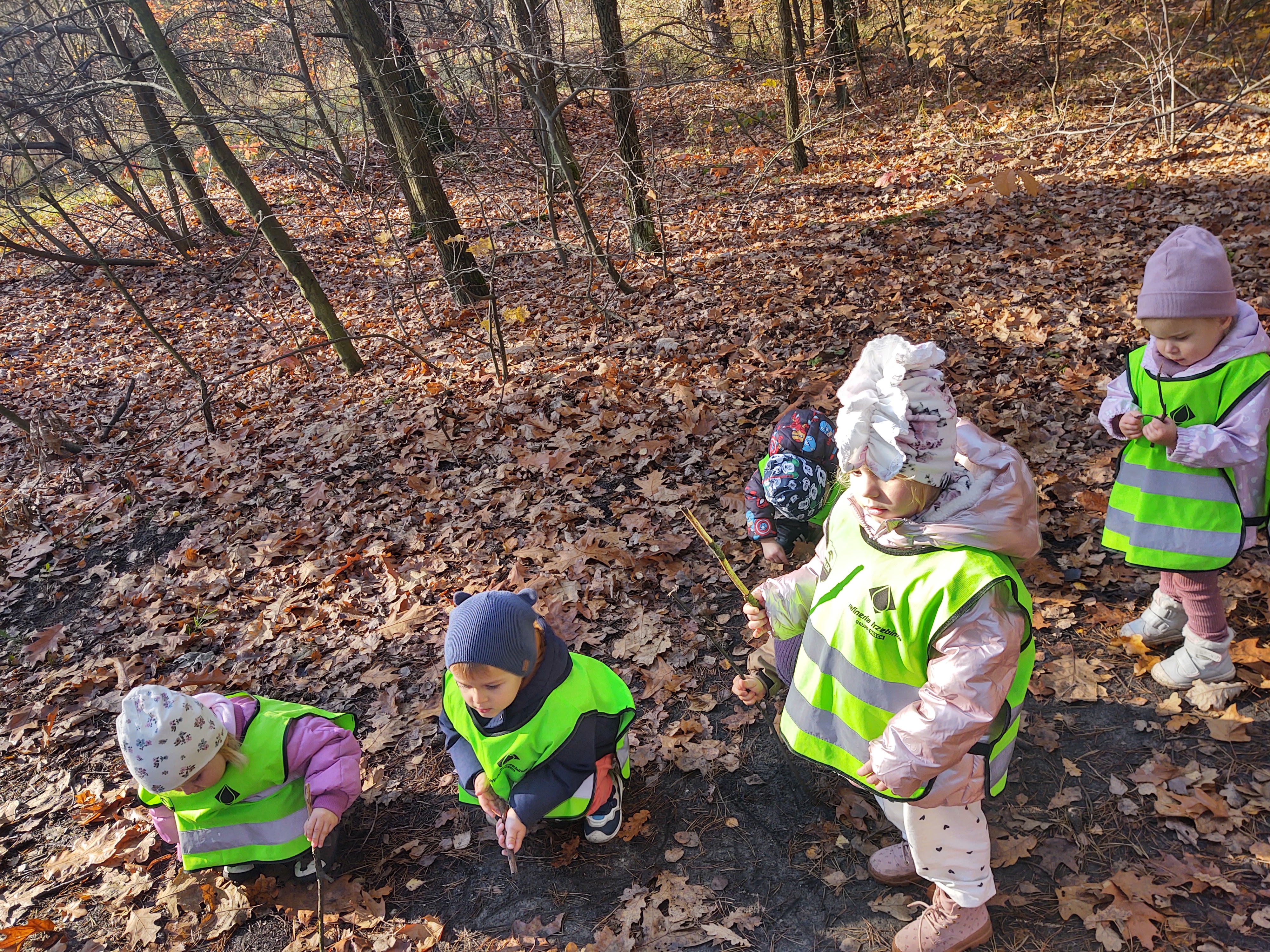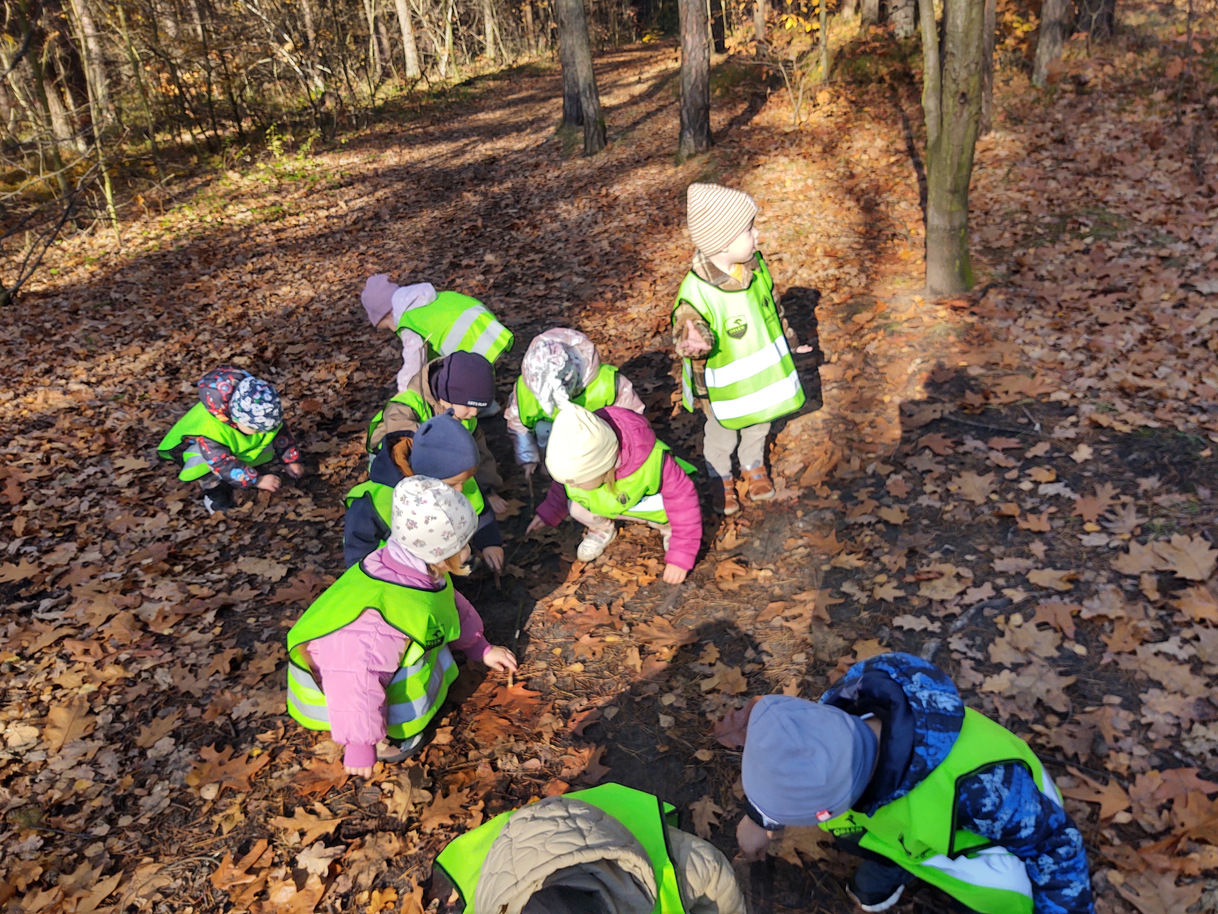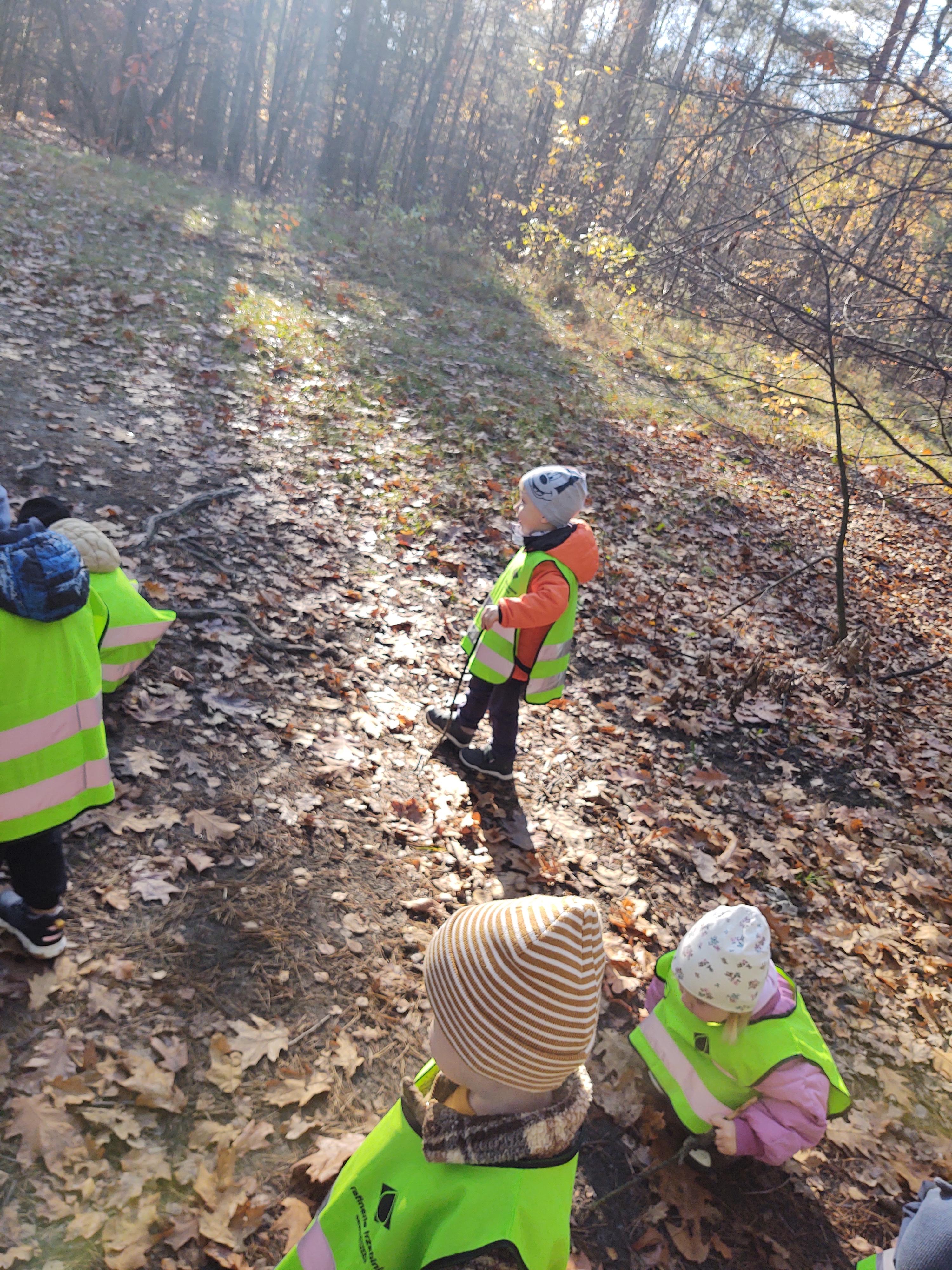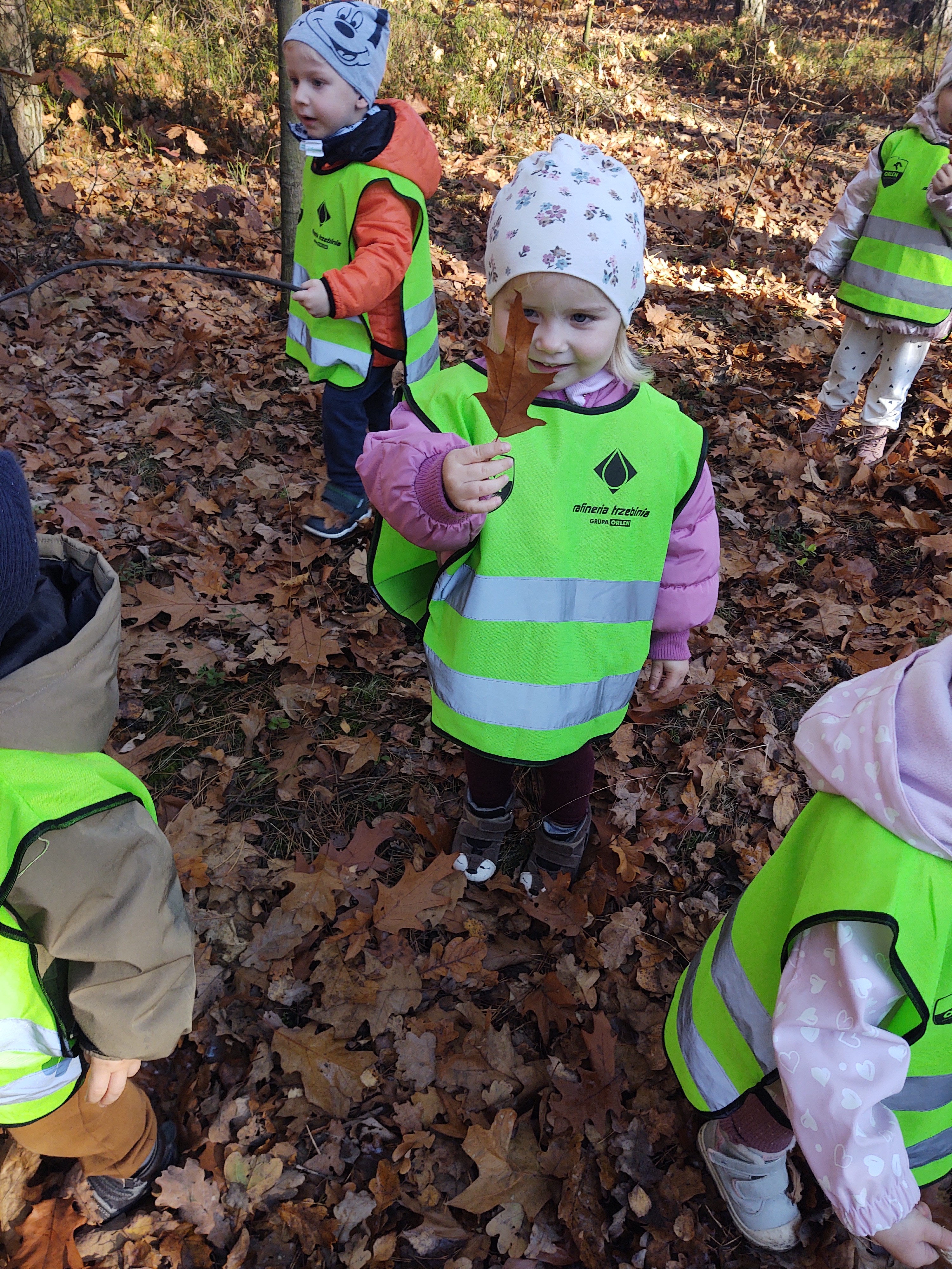 Jesień to piękna pora roku, pełna kolorów i cudownych widoków dlatego dzieci z przedszkola wyruszyły na spacerek do pobliskiego lasu obserwować zmiany, jakie zaszły wraz z nadejściem nowej pory roku – Jesieni.
