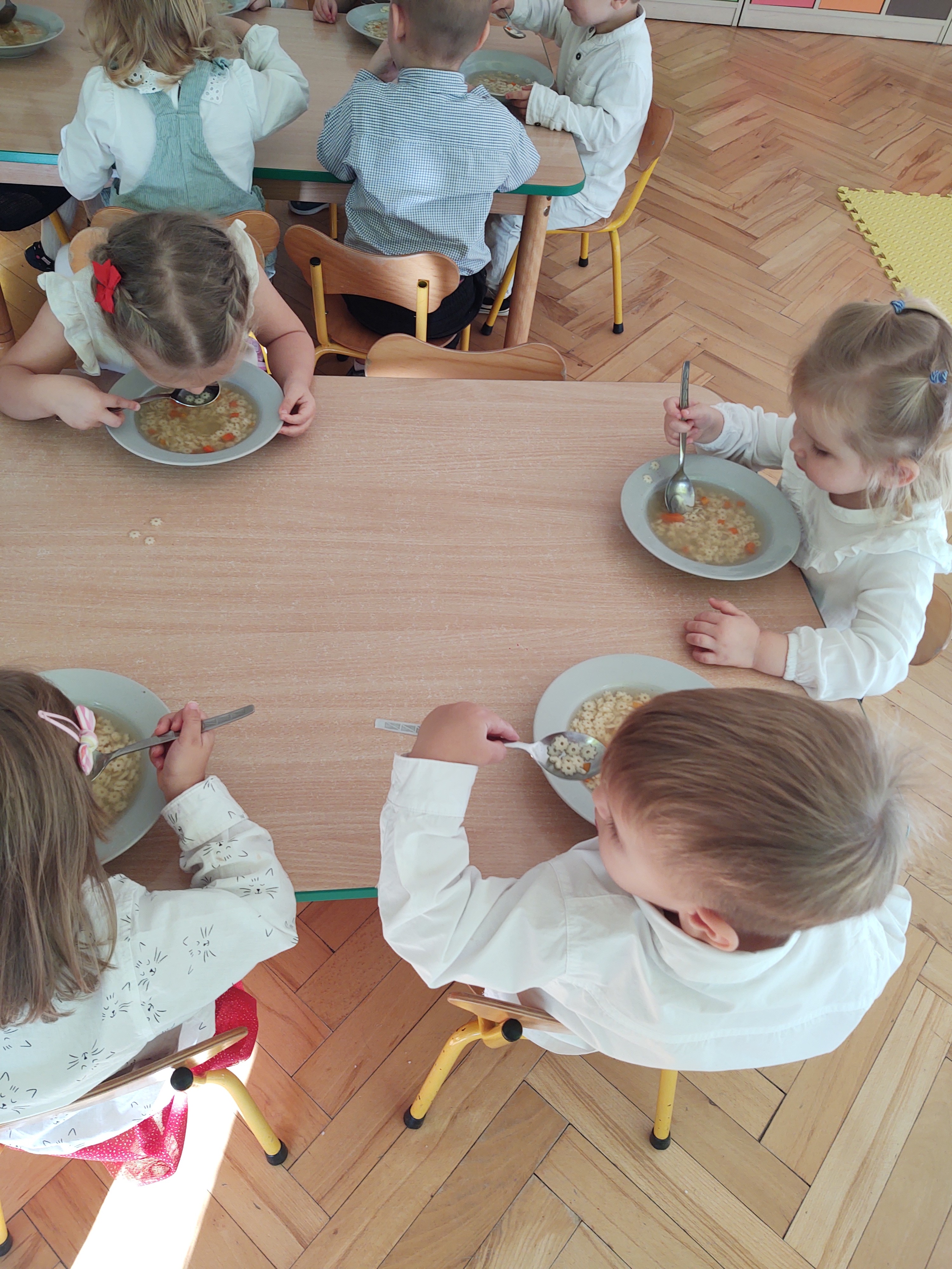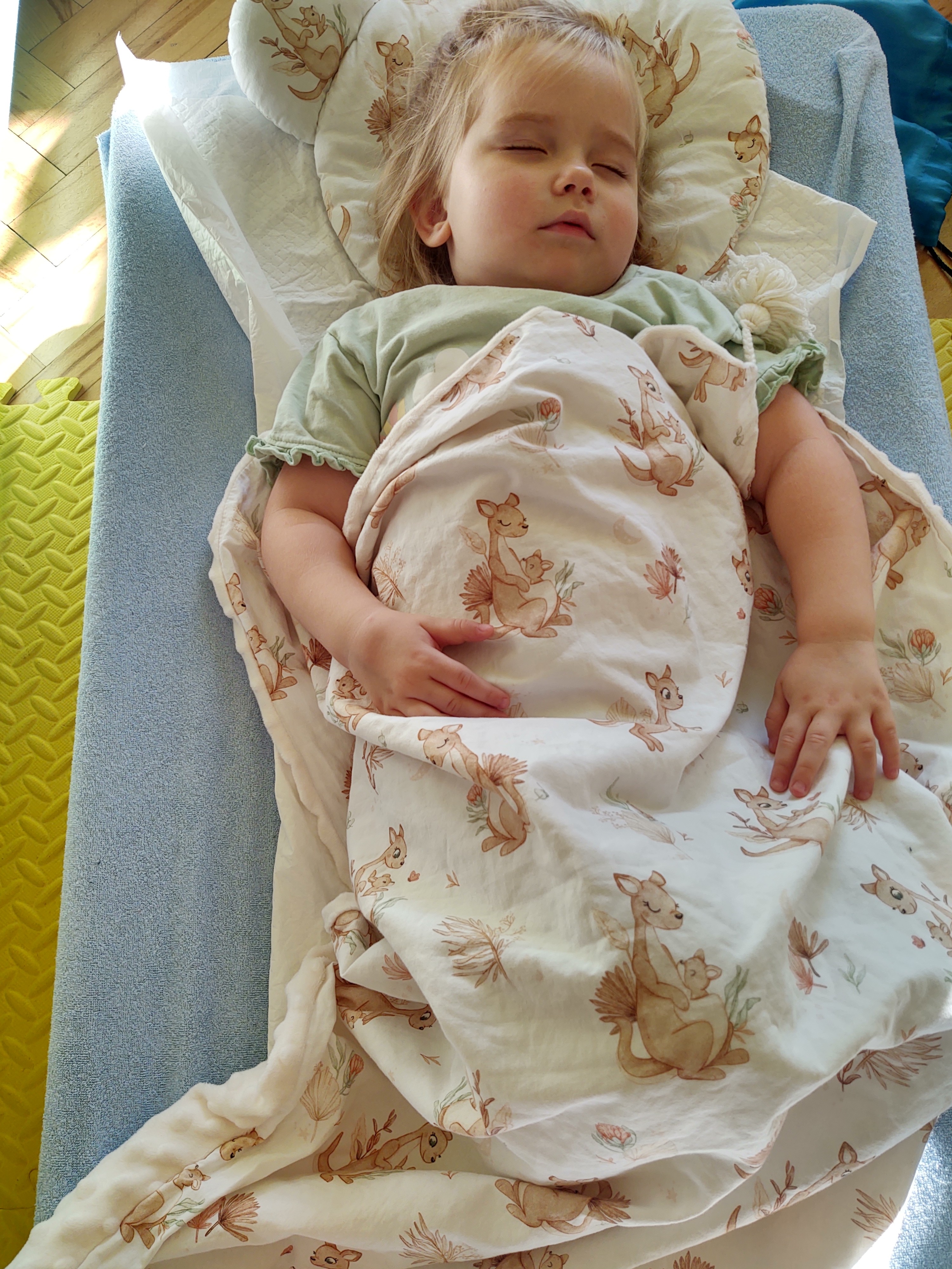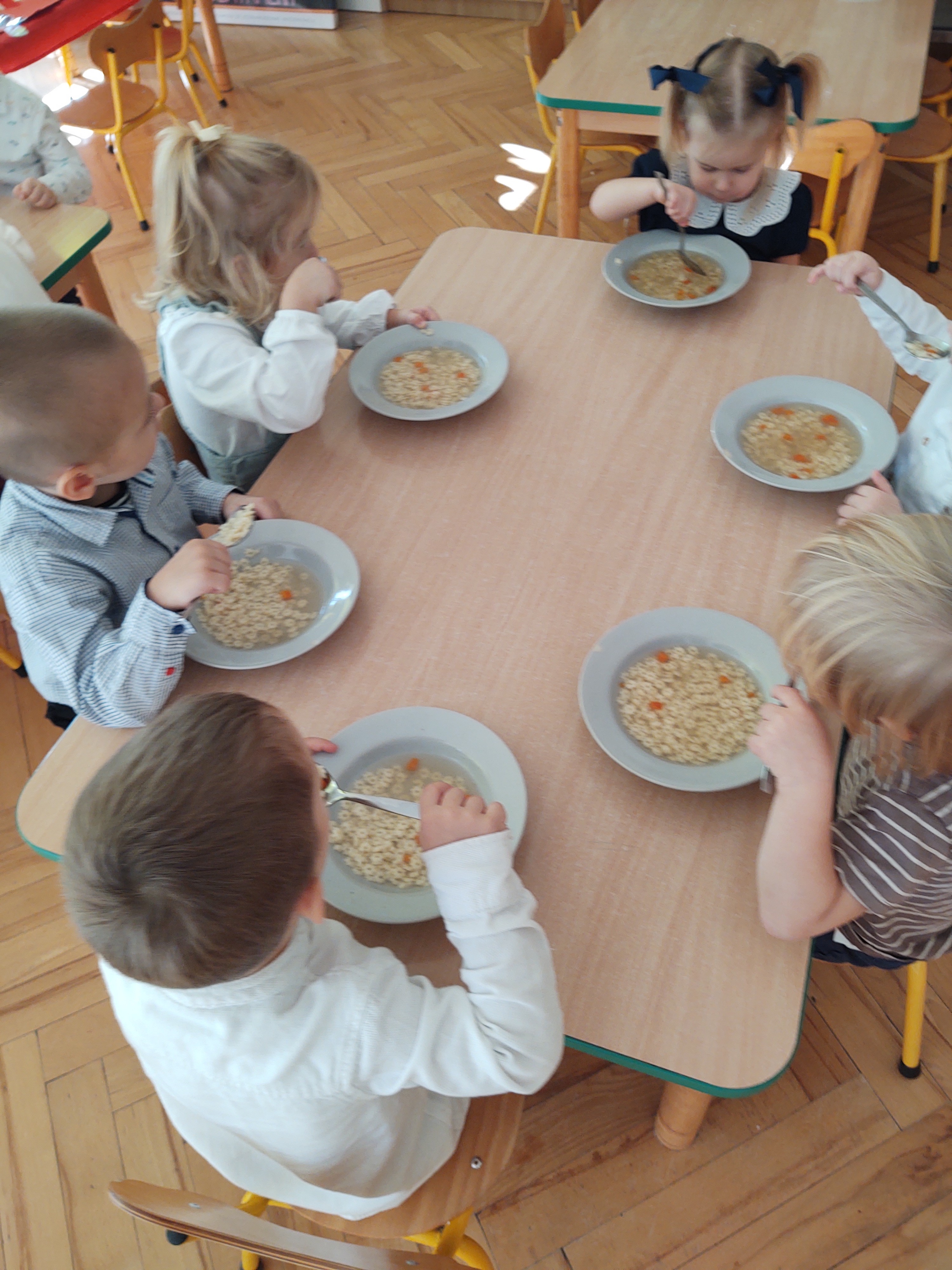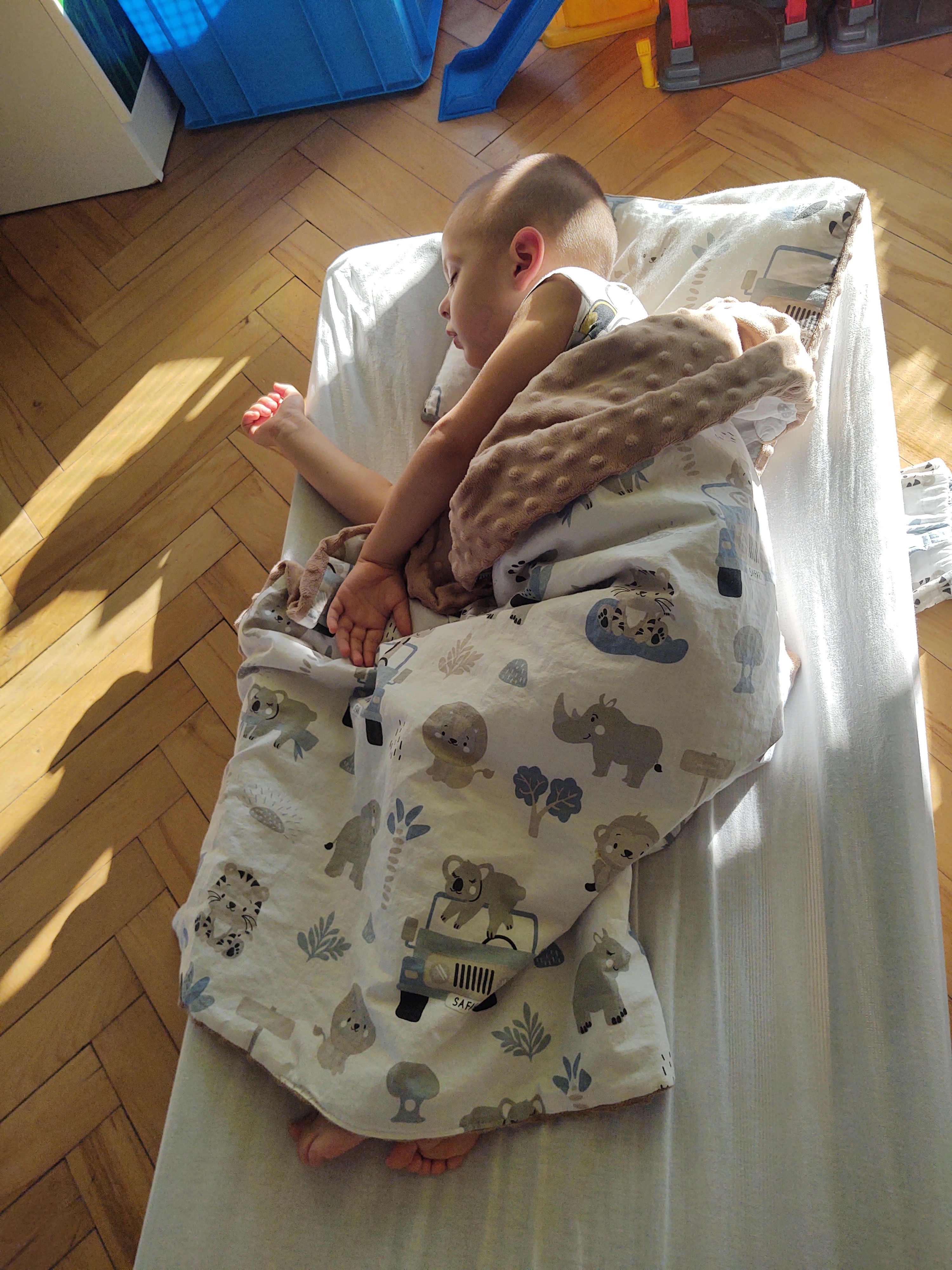 Po spacerku obiadek smakuje lepiej, zjadamy go sami, łyżka, widelec nam nie straszny. A teraz hop na leżaczek- drzemka to czas na regenerację sił po aktywnym poranku, spacerze, który jest ważny dla naszego rozwoju, ponieważ wpływa na koncentrację, pamięć i samopoczucie.