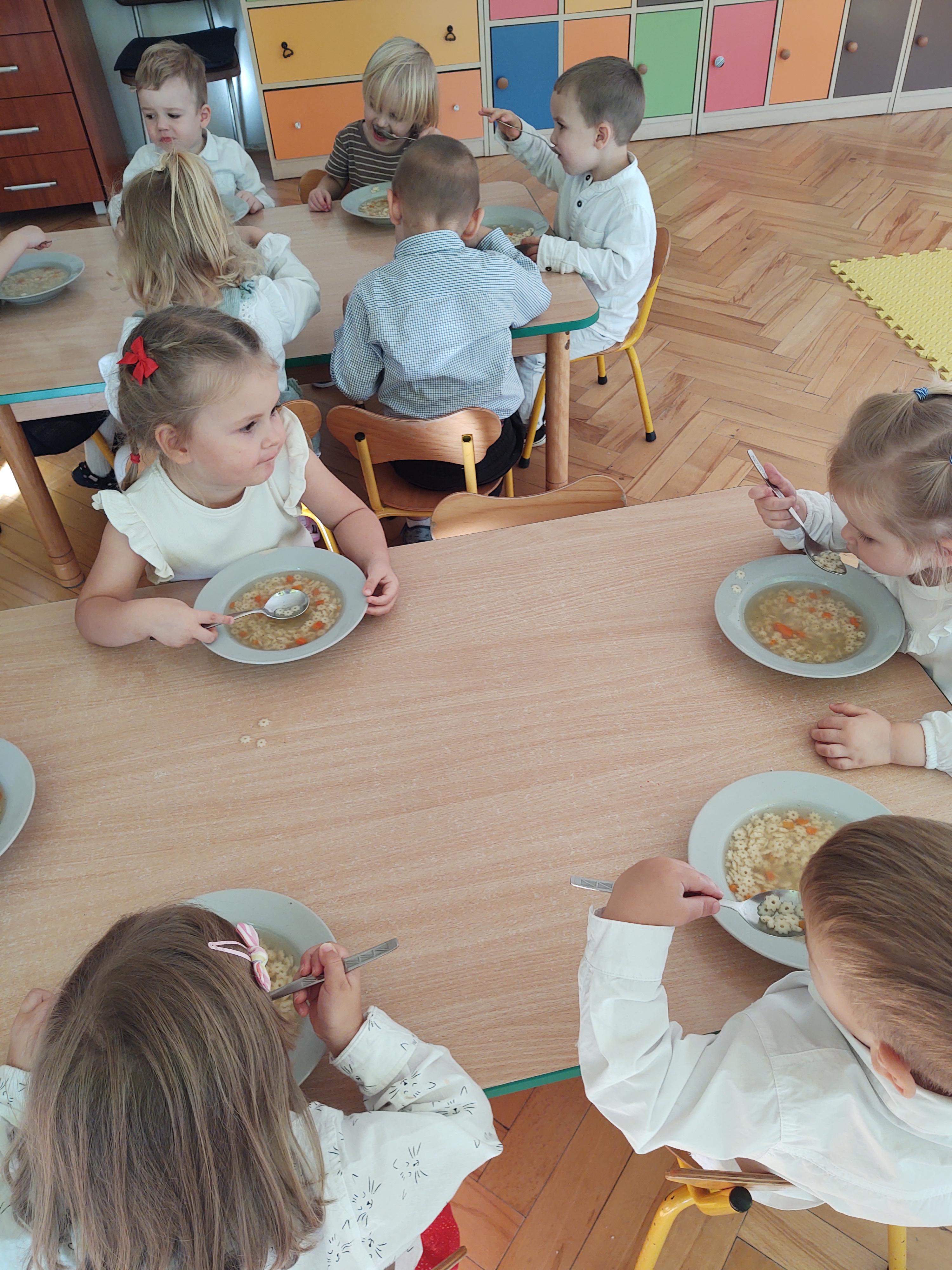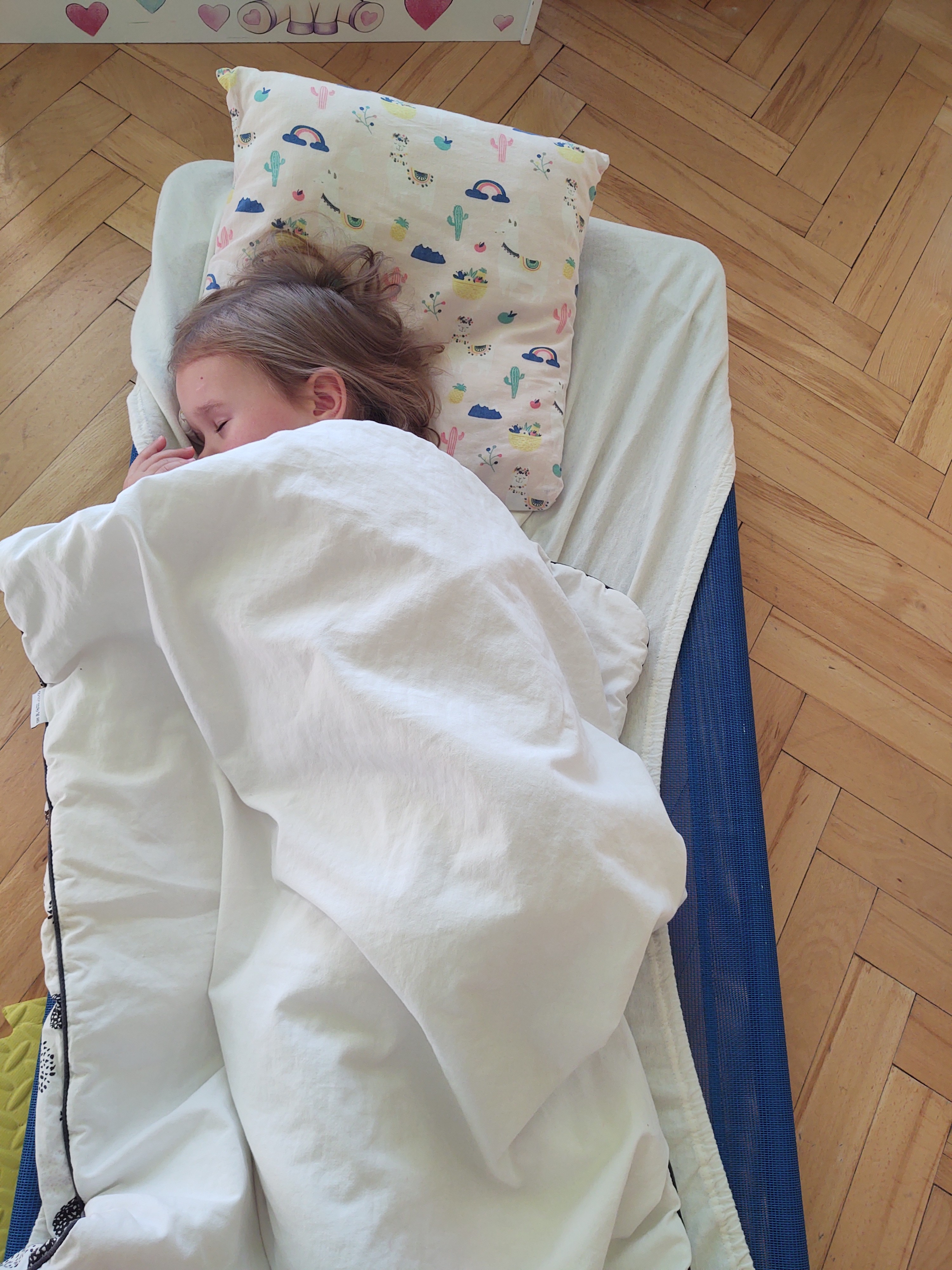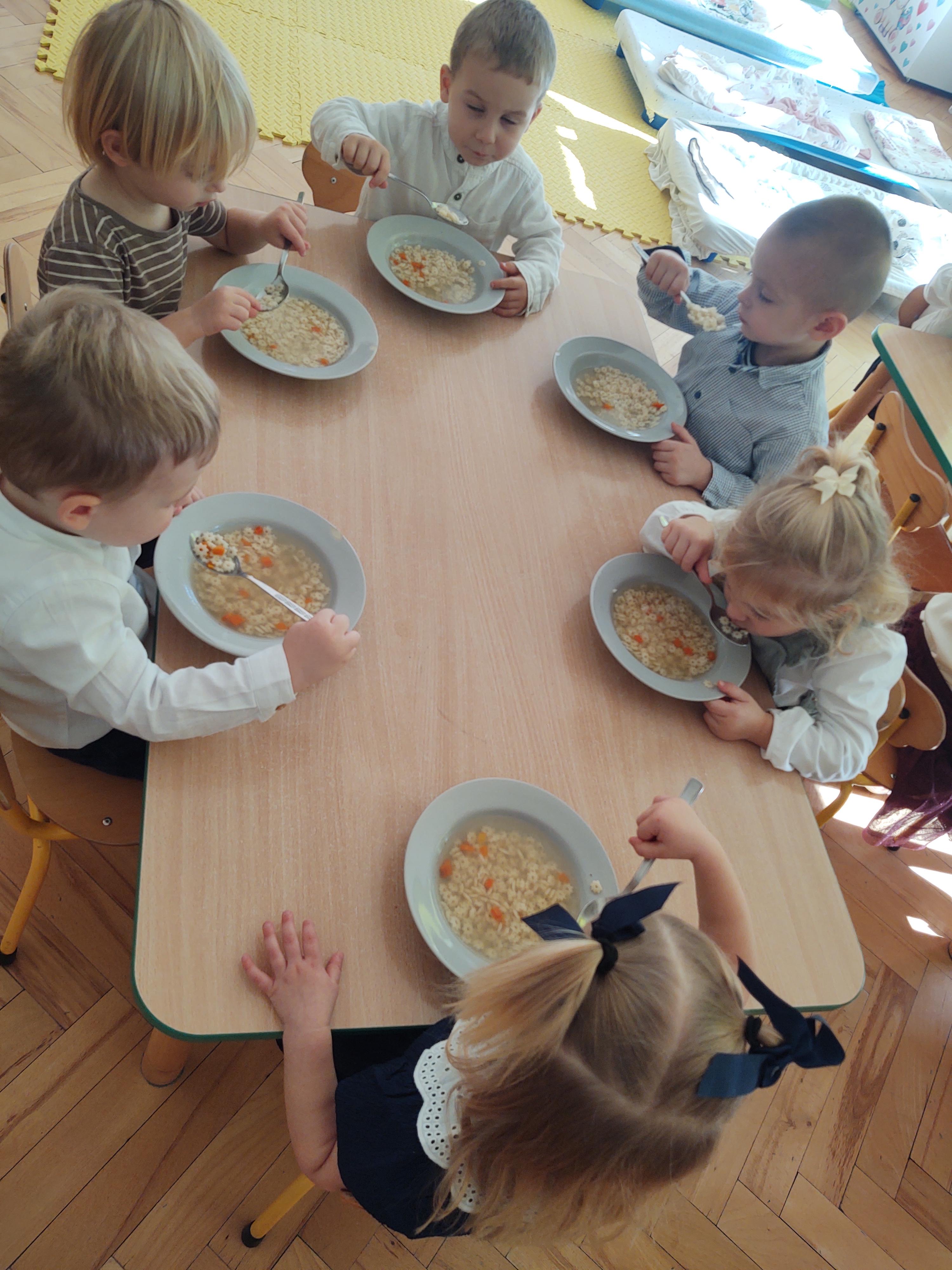 Po spacerku obiadek smakuje lepiej, zjadamy go sami, łyżka, widelec nam nie straszny. A teraz hop na leżaczek- drzemka to czas na regenerację sił po aktywnym poranku, spacerze, który jest ważny dla naszego rozwoju, ponieważ wpływa na koncentrację, pamięć i samopoczucie.